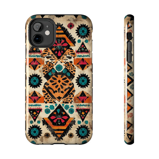 Bohemian Leopard & Tribal Floral Tough iPhone Case – Vibrant Eclectic Design, Dual-Layer Protection