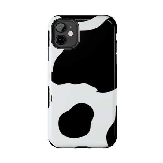 Bold Black and White Cow Print Tough iPhone Case – Modern Animal Pattern with Dual-Layer Protection