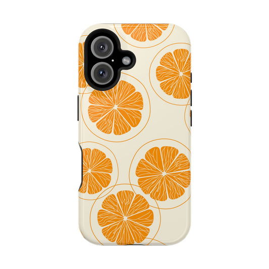 Citrus Burst Pattern Tough MagSafe iPhone Case – Bold Orange Design, Shockproof Protection