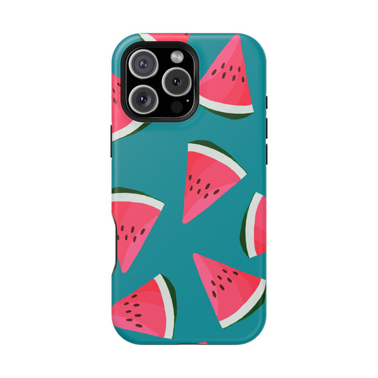 Watermelon Bliss MagSafe iPhone Case – Vibrant Summer Fruit Design on Teal Background