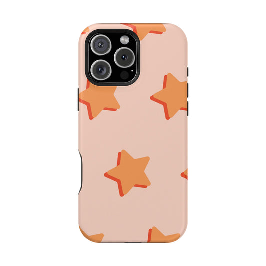 Retro Orange Stars MagSafe iPhone Case – Shock-Resistant, Smooth Matte Finish, Dual-Layer Design
