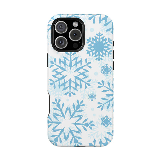 Frosty Blue Snowflakes MagSafe iPhone Case – Shockproof, Smooth Matte Finish, Dual-Layer Design