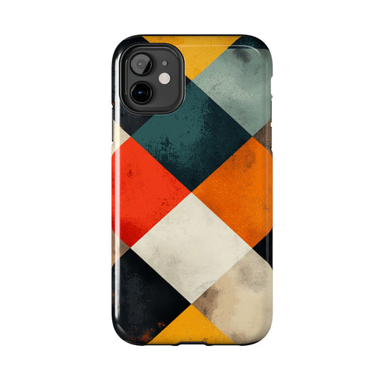Geometric Retro iPhone Case - Colorful Checkered Protective Cover