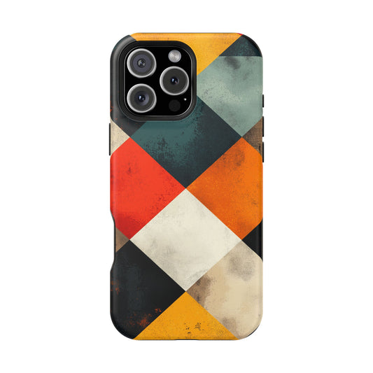Geometric Retro MagSafe iPhone Case - Colorful Checkered Protective Cover