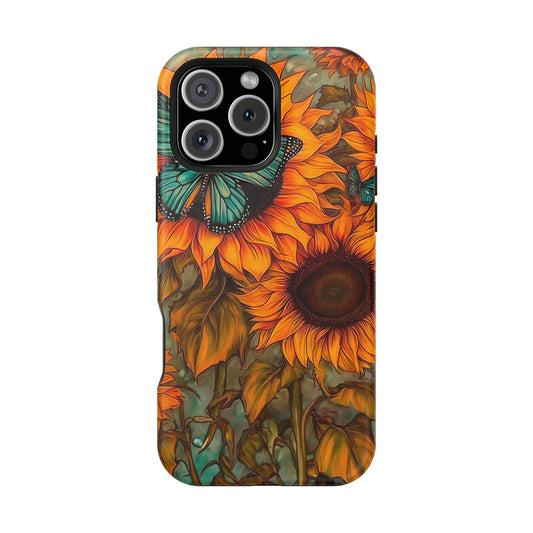Vintage Blue Butterfly & Sunflower Art – MagSafe iPhone Case