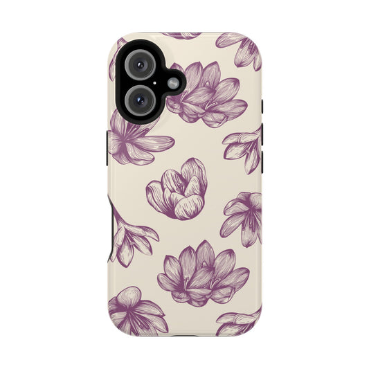 Vintage Botanical Floral Tough MagSafe iPhone Case – Hand-Drawn Purple Flowers, Shockproof Design