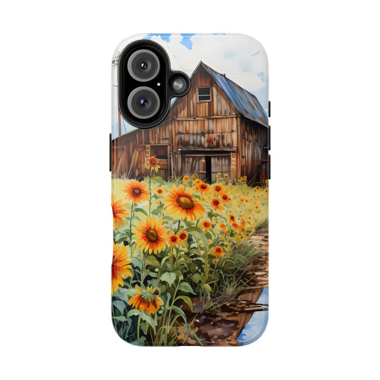 Country Road Sunflower iPhone Case: Rustic Barnyard Design, Cute Floral Case