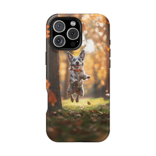 Energetic Blue Heeler Forest Pup MagSafe iPhone Case – Durable Outdoor-Inspired Design