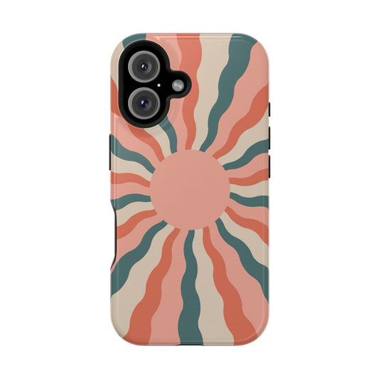 Retro Sunburst MagSafe iPhone Case – Bold 70s-Inspired Waves in Coral, Teal, and Cream