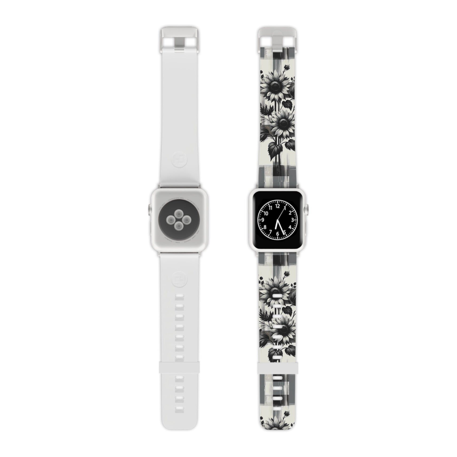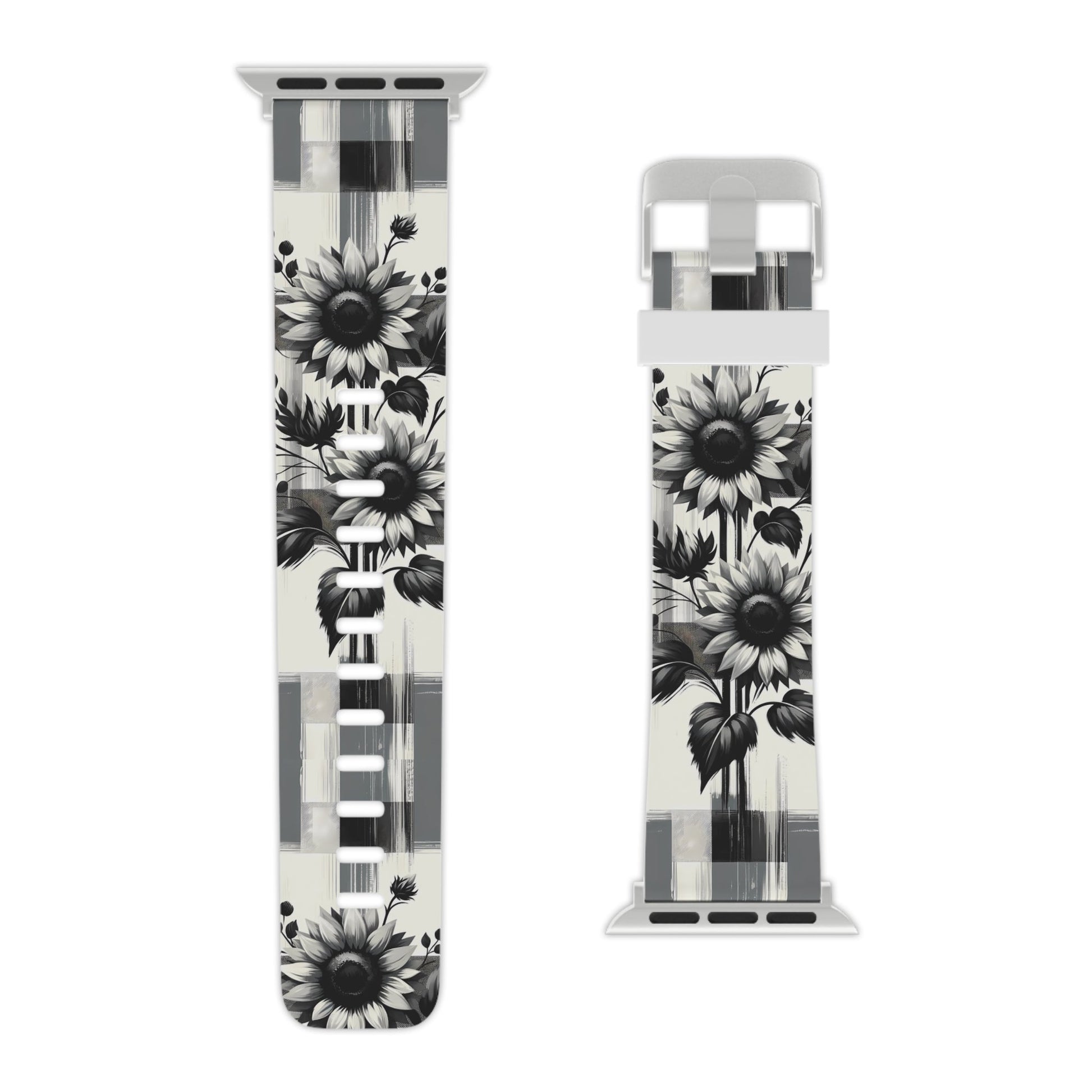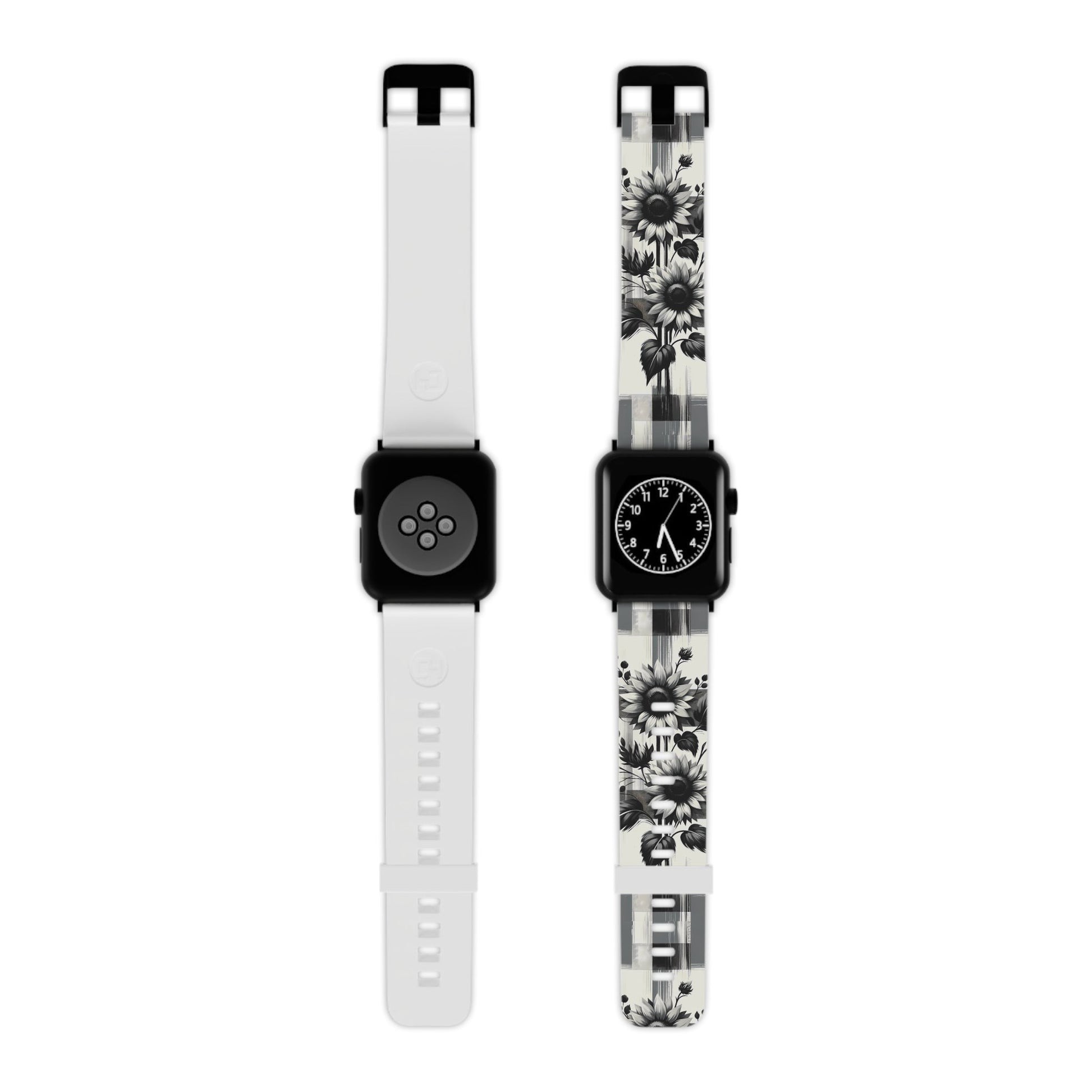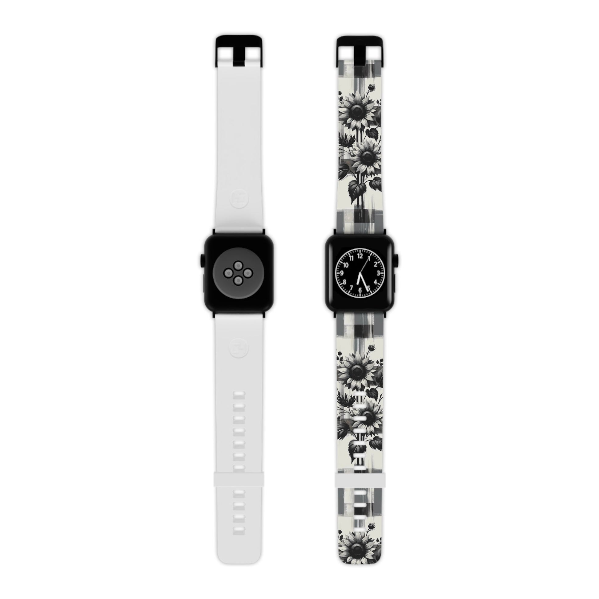 Embrace the bold, graphic beauty of the sunflower with the Black/White Sunflower Plaid Apple Watch Band. This striking band features a captivating design inspired by the iconic black and white sunflower, rendered in a striking plaid pattern. Crafted from premium silicone, it offers sweat-proof durability and all-day comfort.