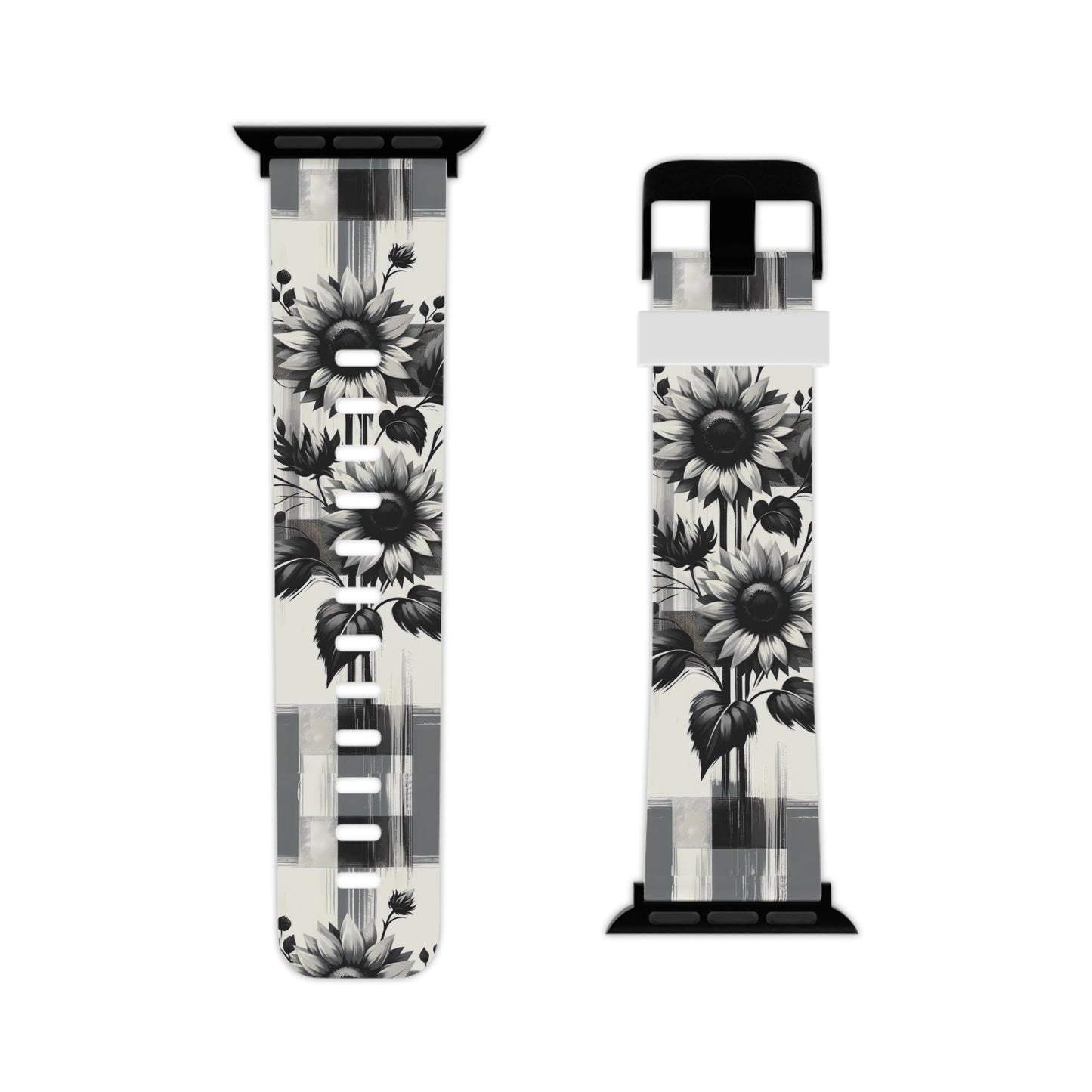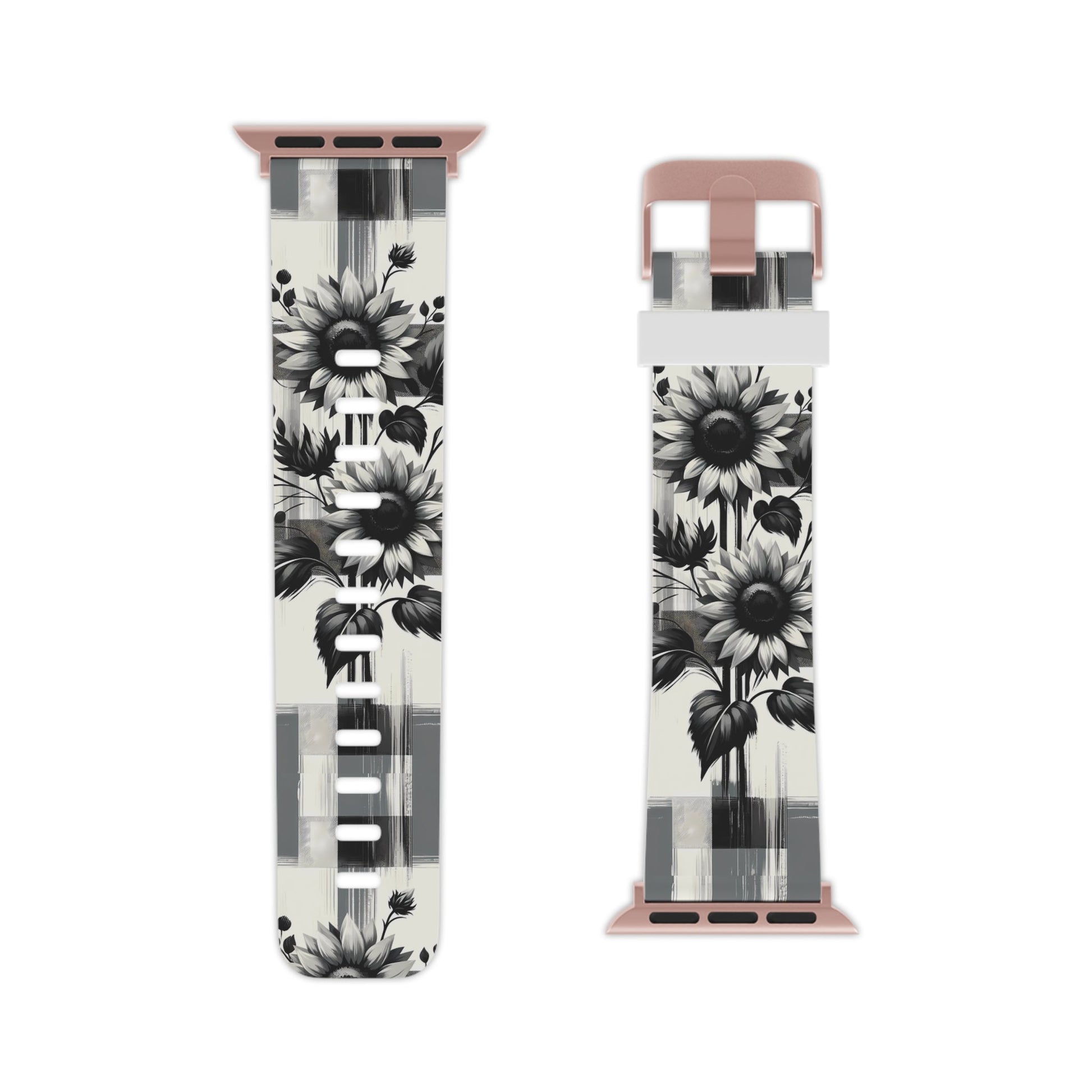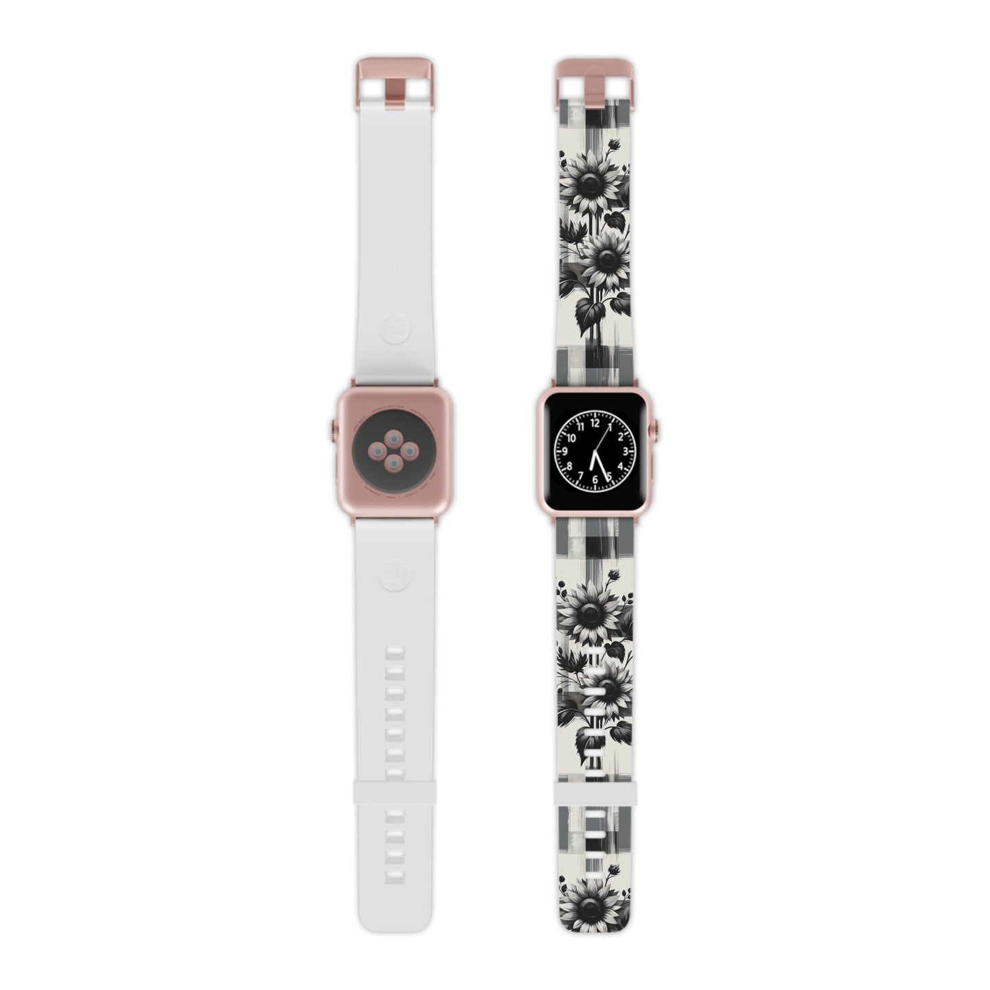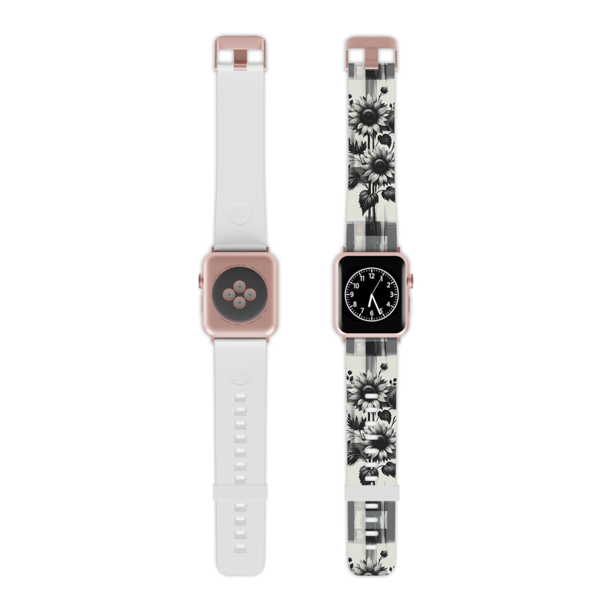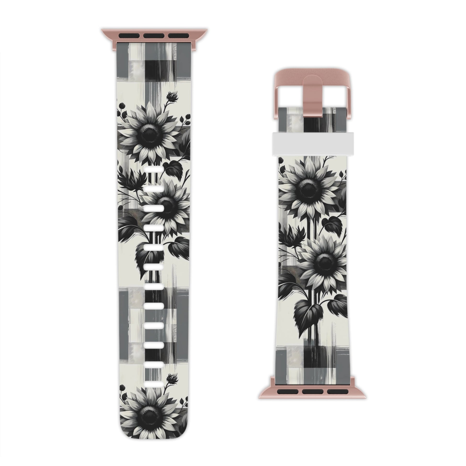 Embrace the bold, graphic beauty of the sunflower with the Black/White Sunflower Plaid Apple Watch Band. This striking band features a captivating design inspired by the iconic black and white sunflower, rendered in a striking plaid pattern. Crafted from premium silicone, it offers sweat-proof durability and all-day comfort.