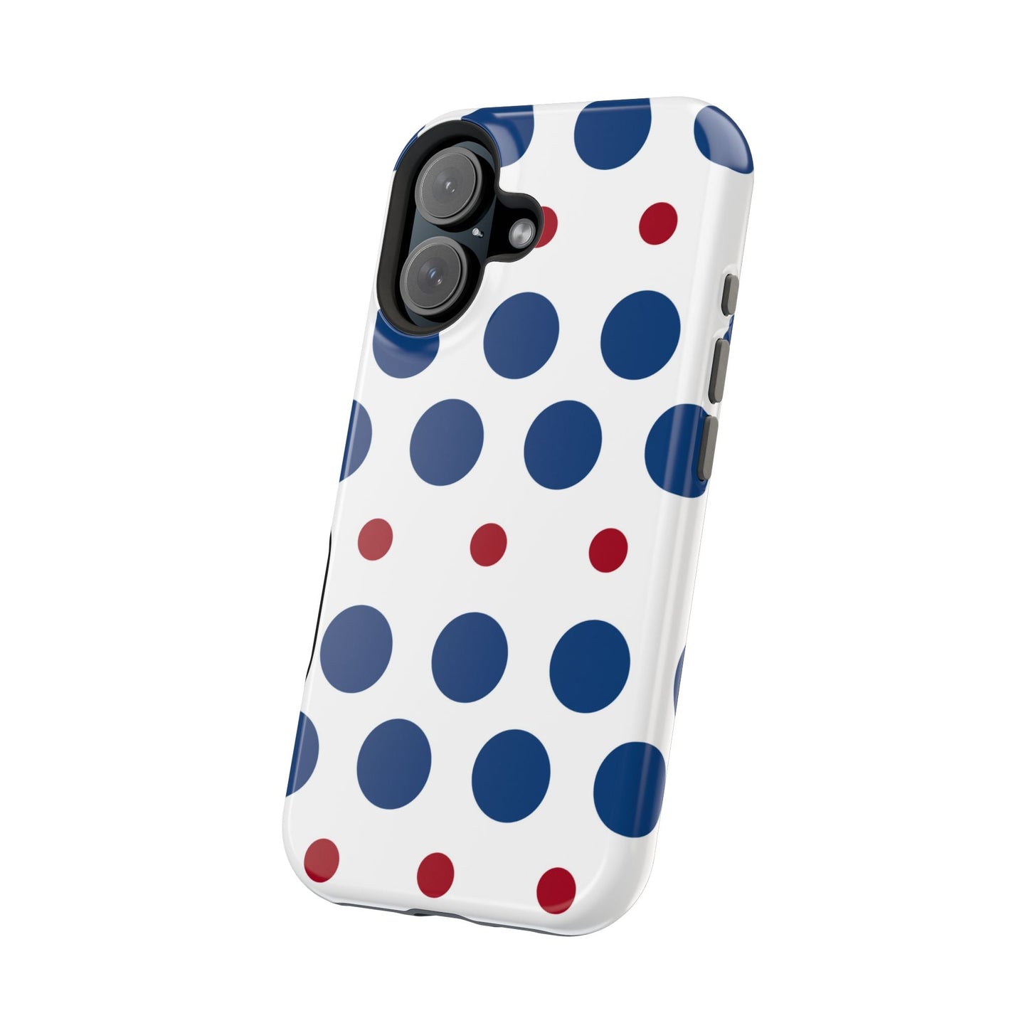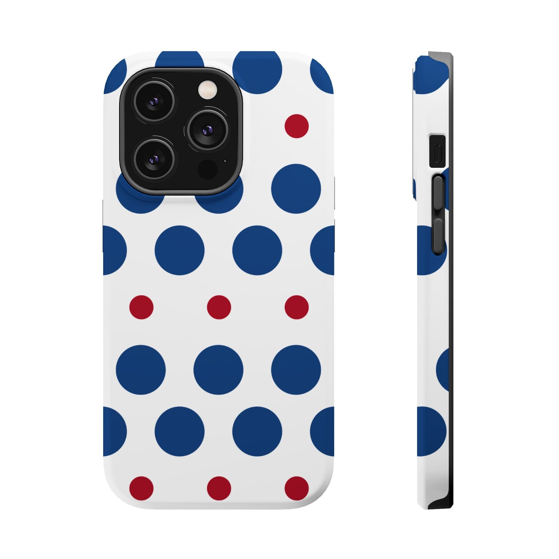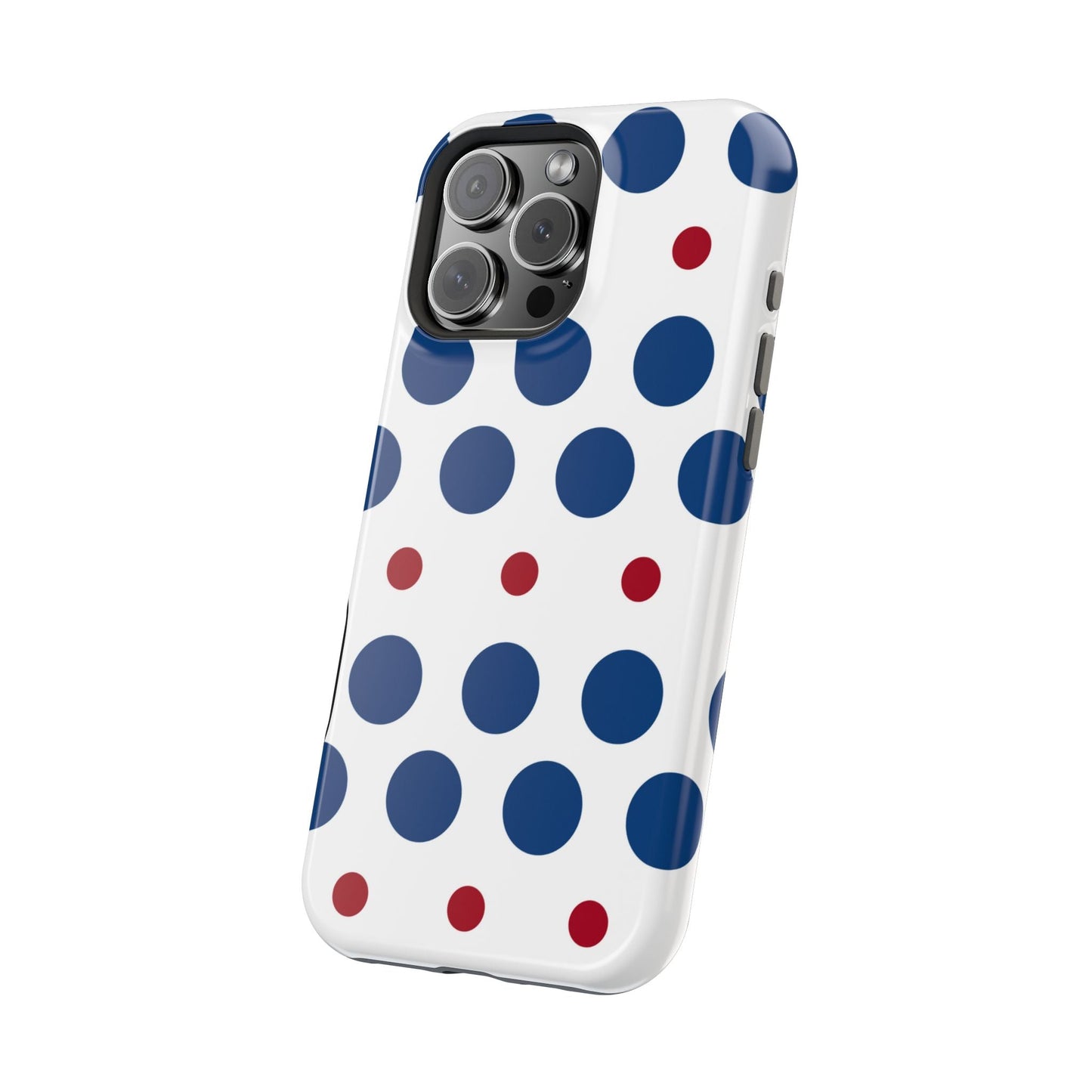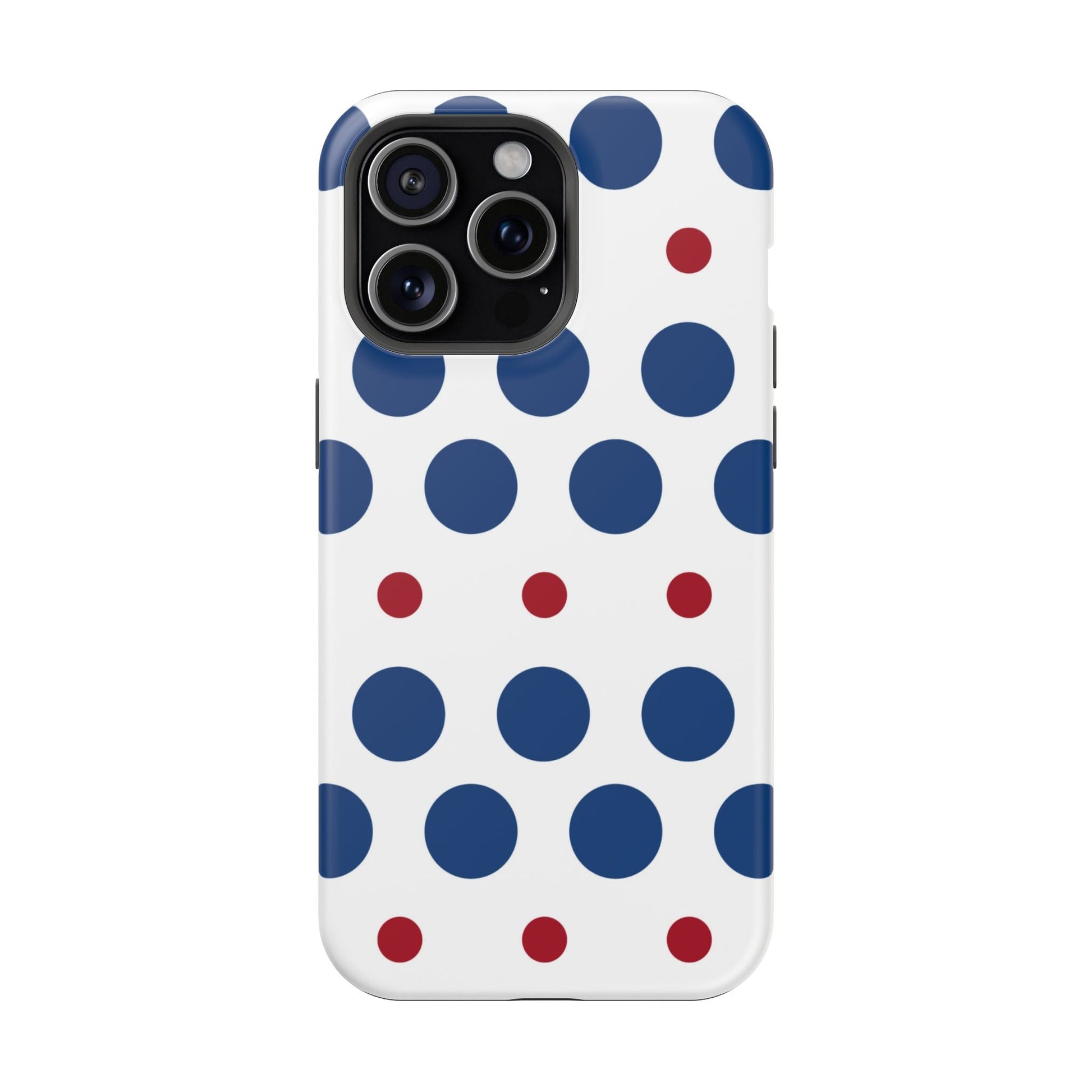 Bold Navy & Red Polka Dot Pattern – MagSafe iPhone Case