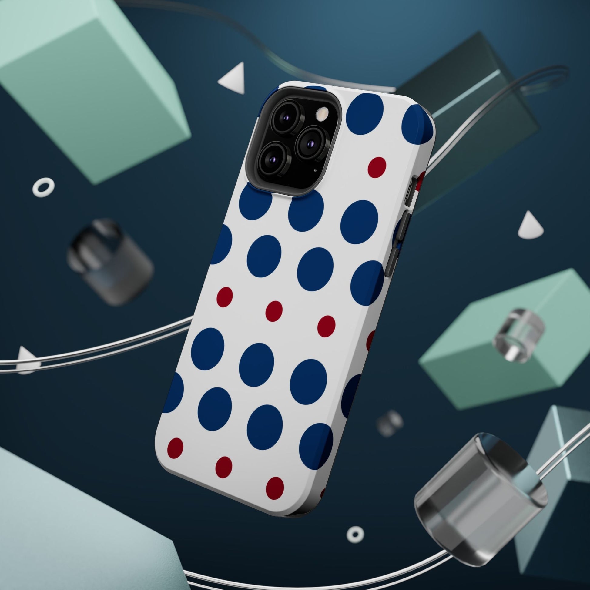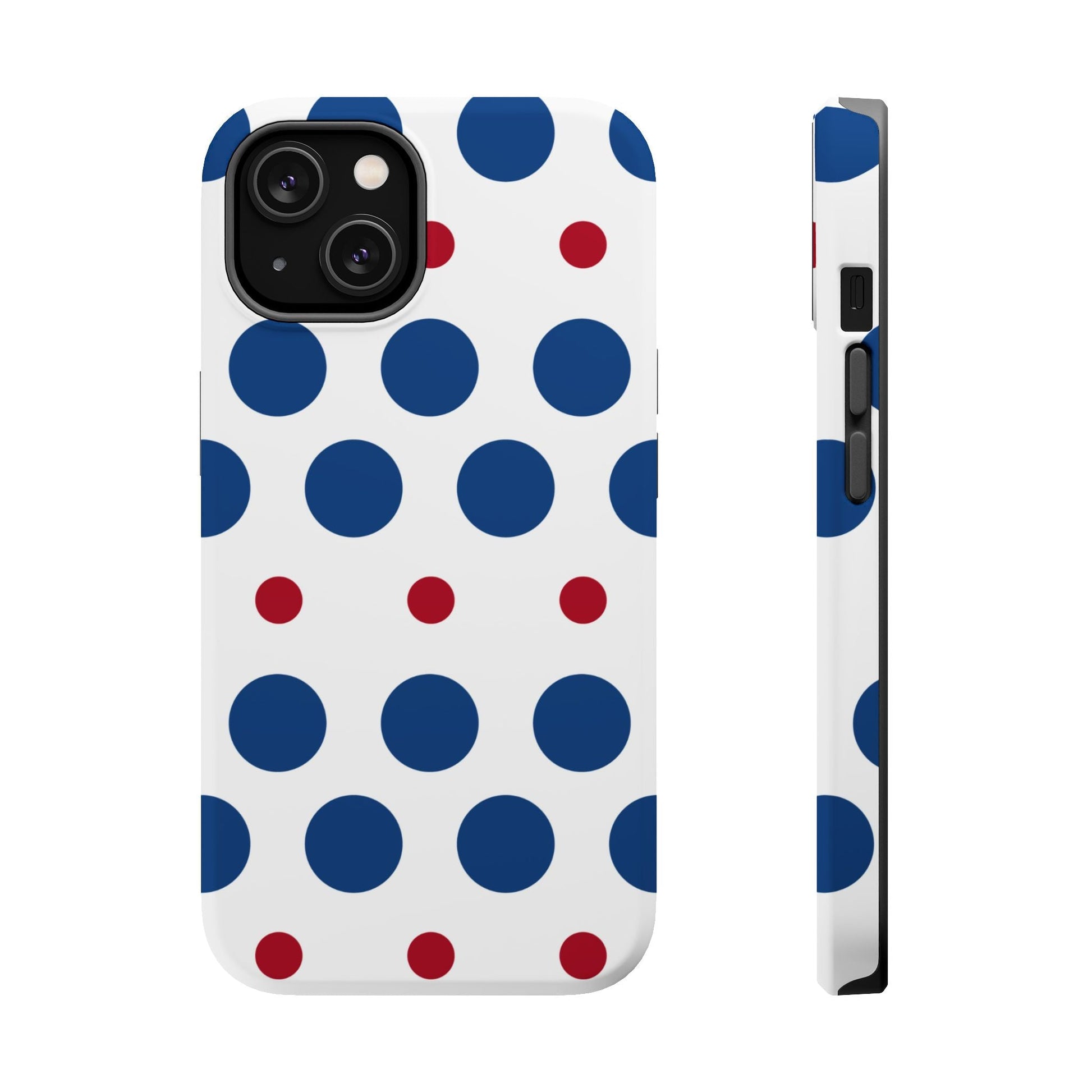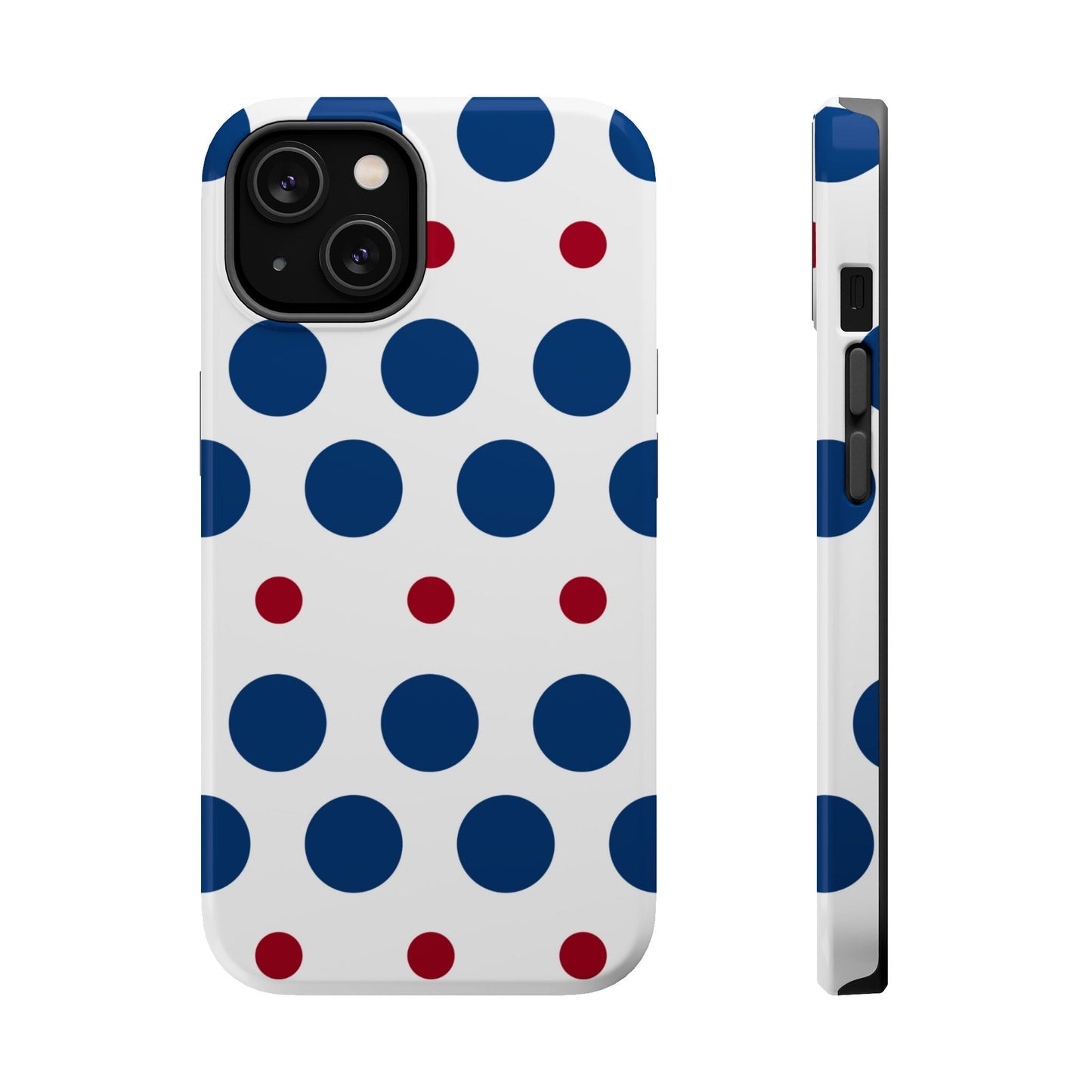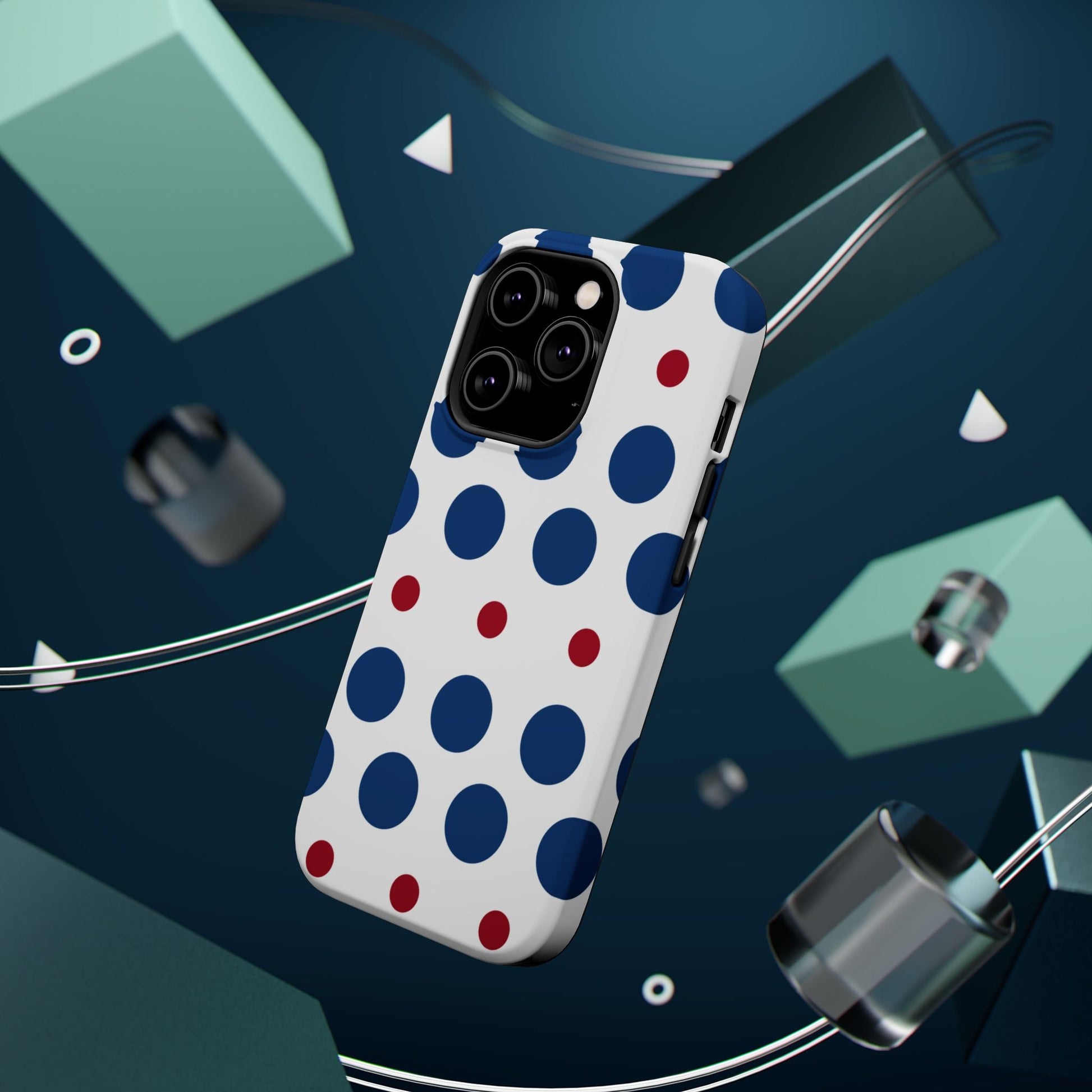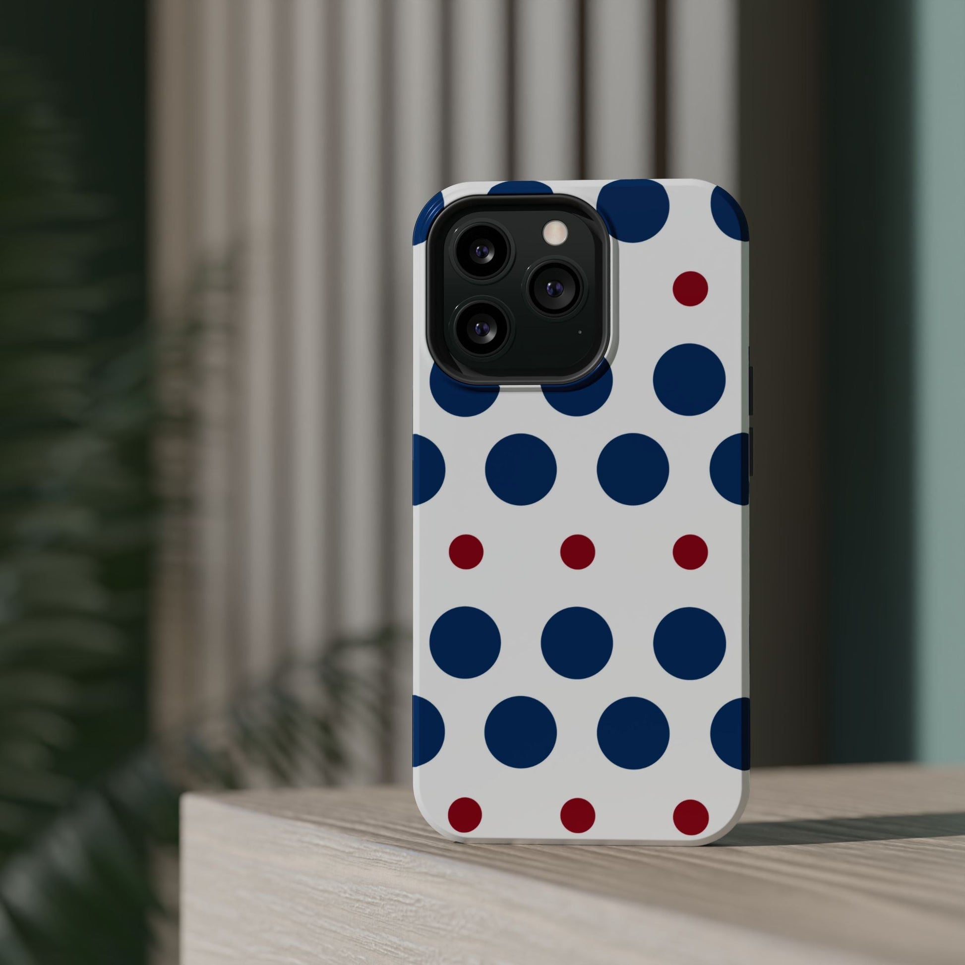 Bold Navy & Red Polka Dot Pattern – MagSafe iPhone Case