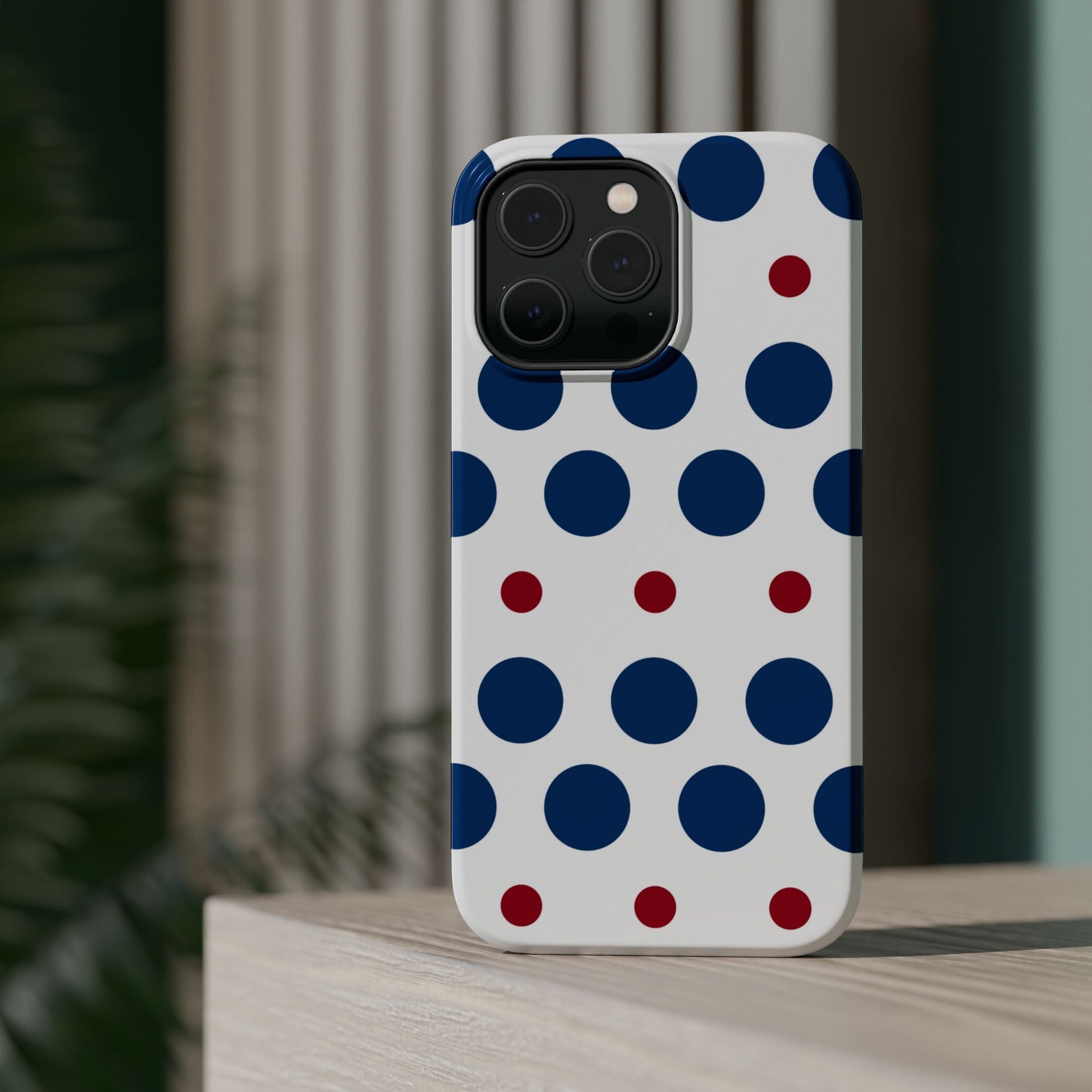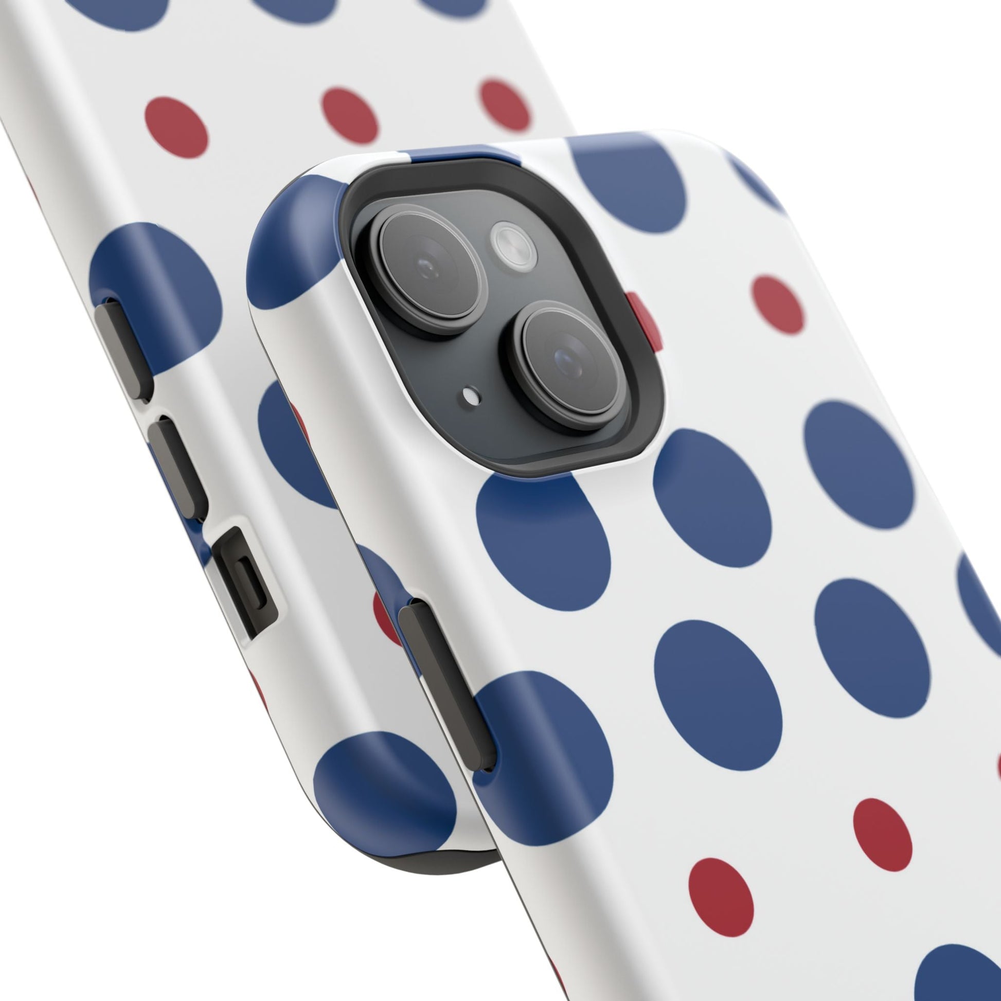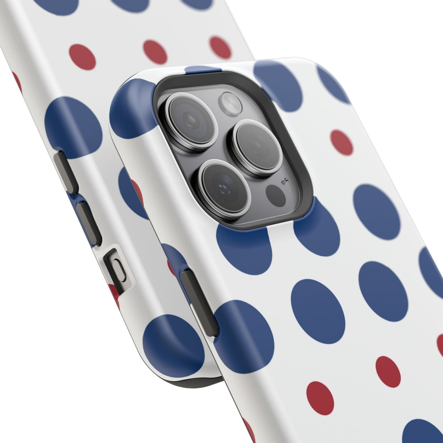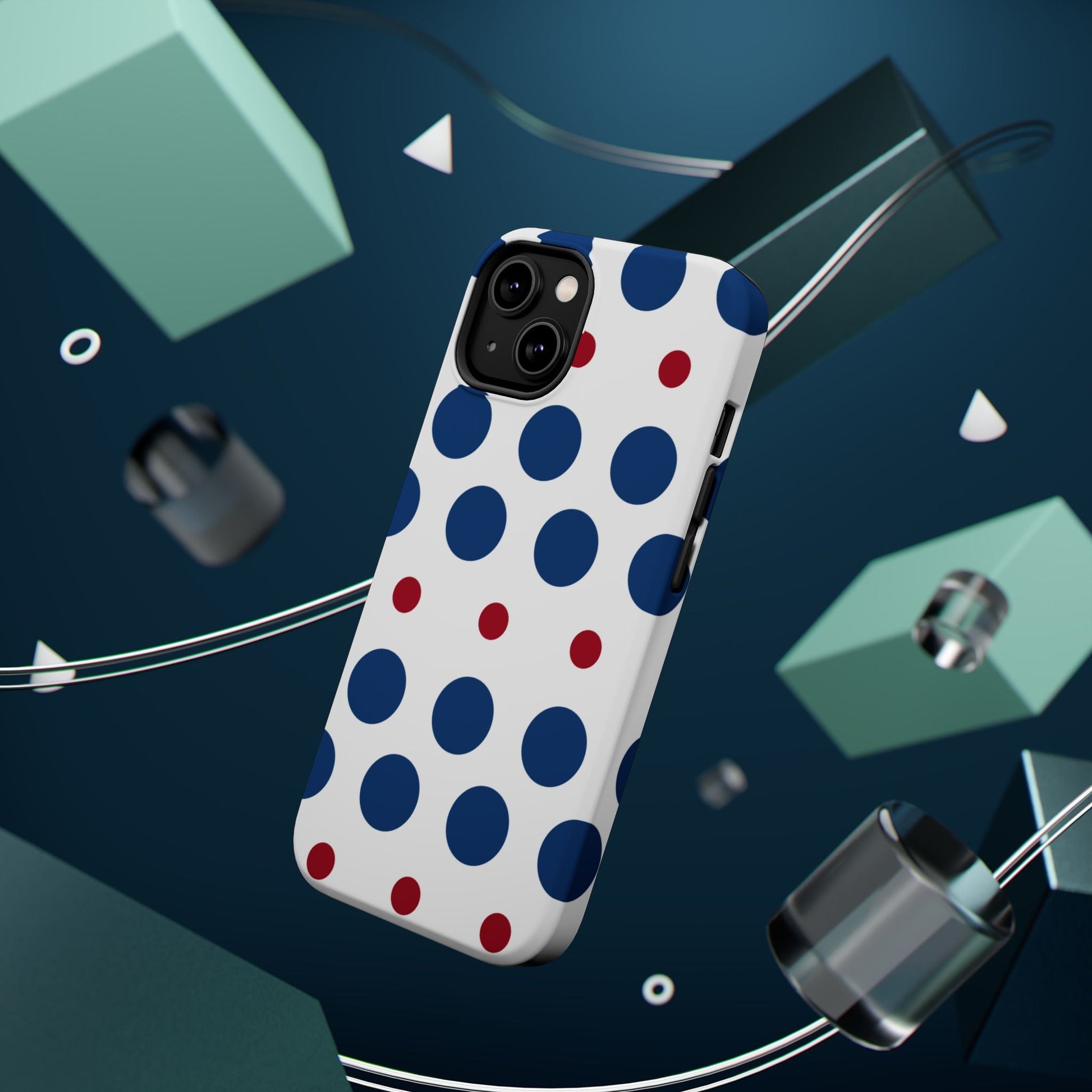 Bold Navy & Red Polka Dot Pattern – MagSafe iPhone Case