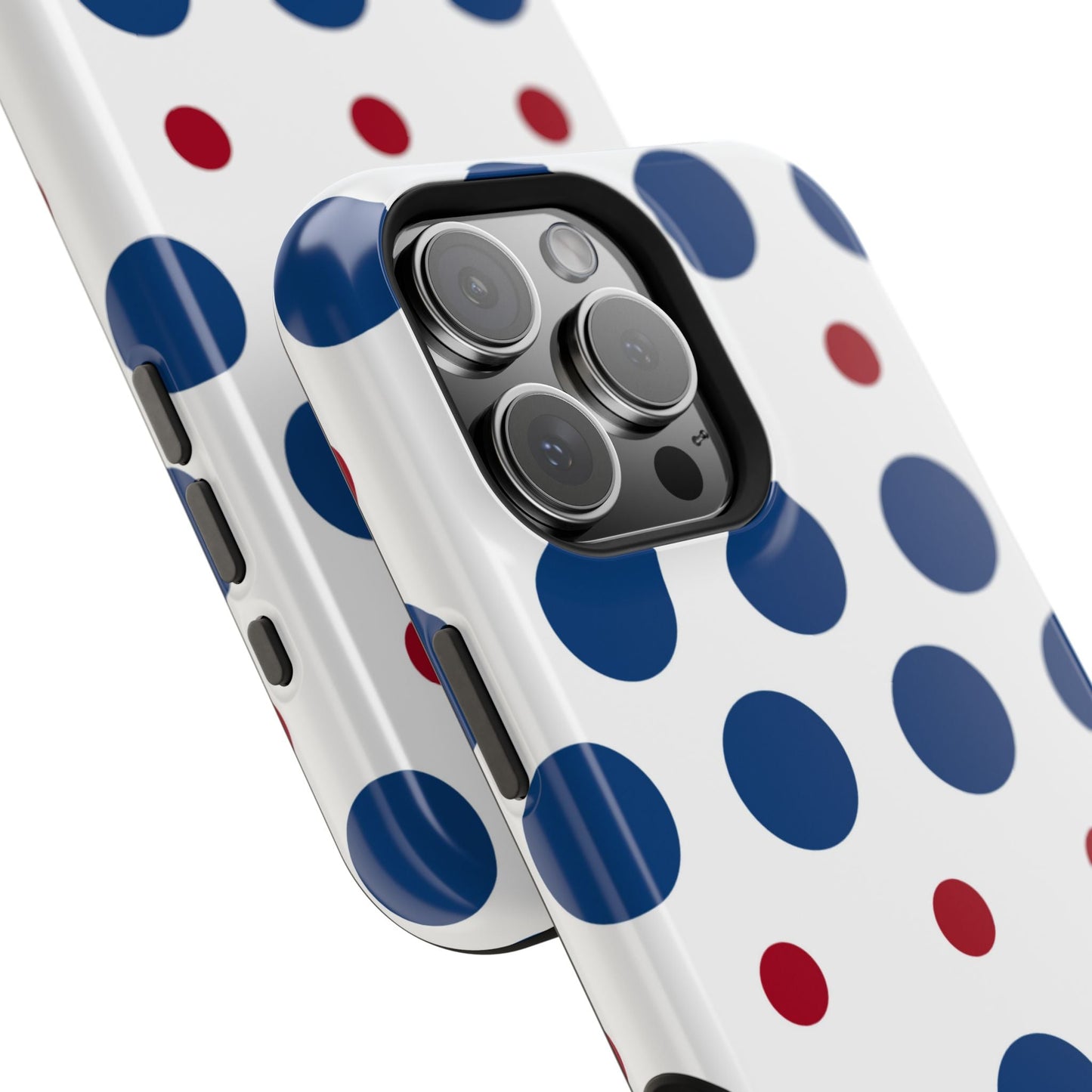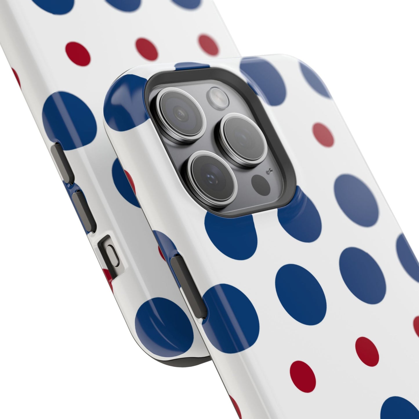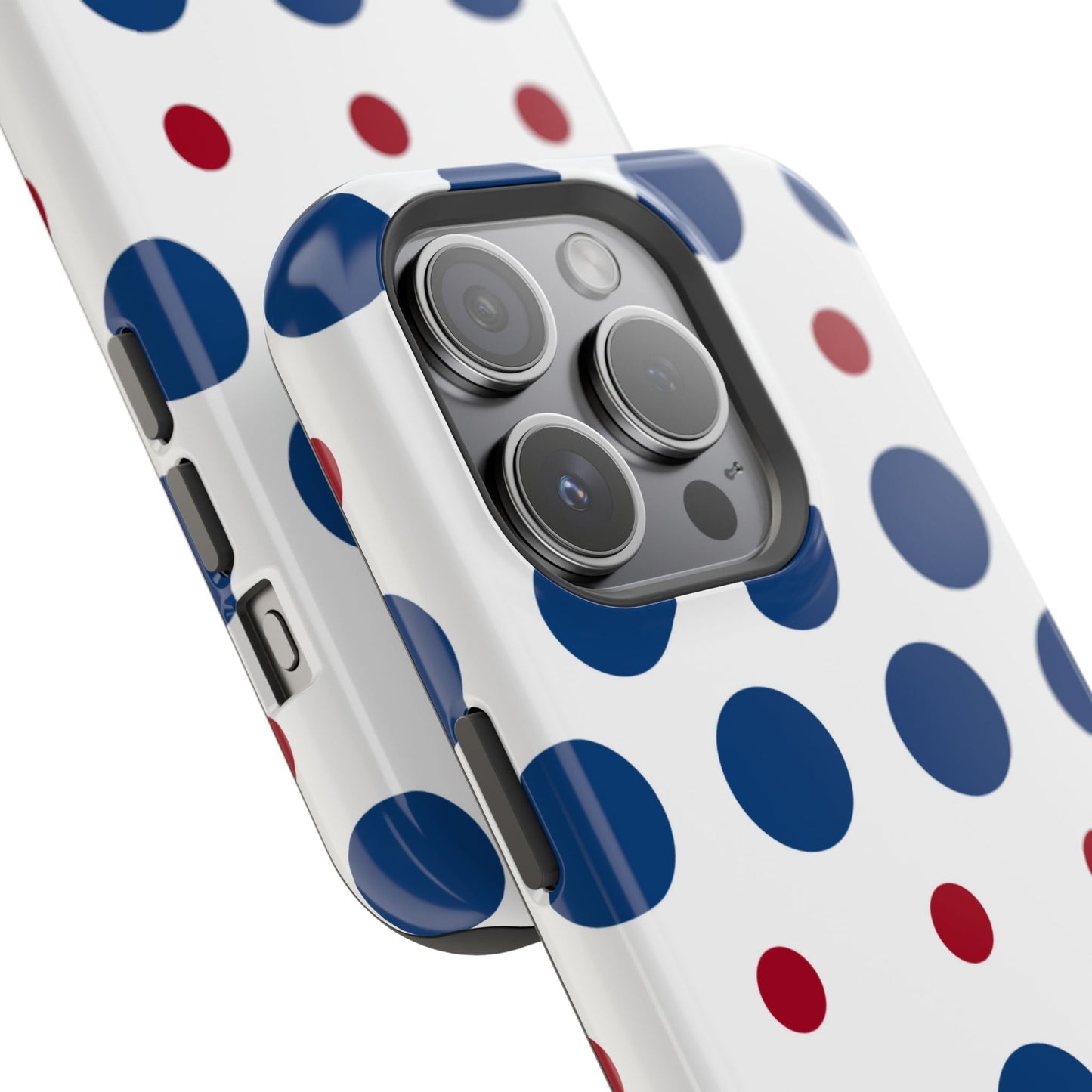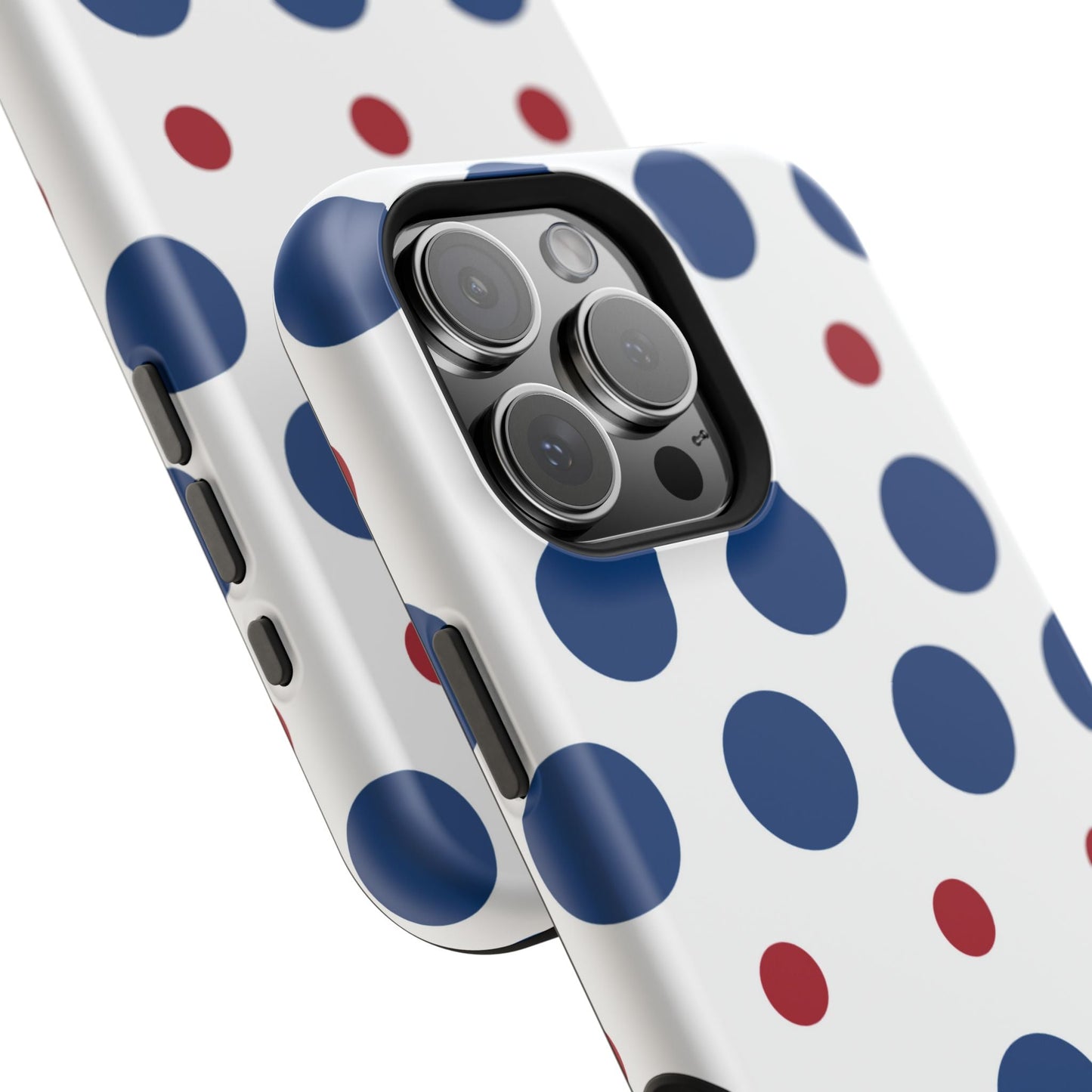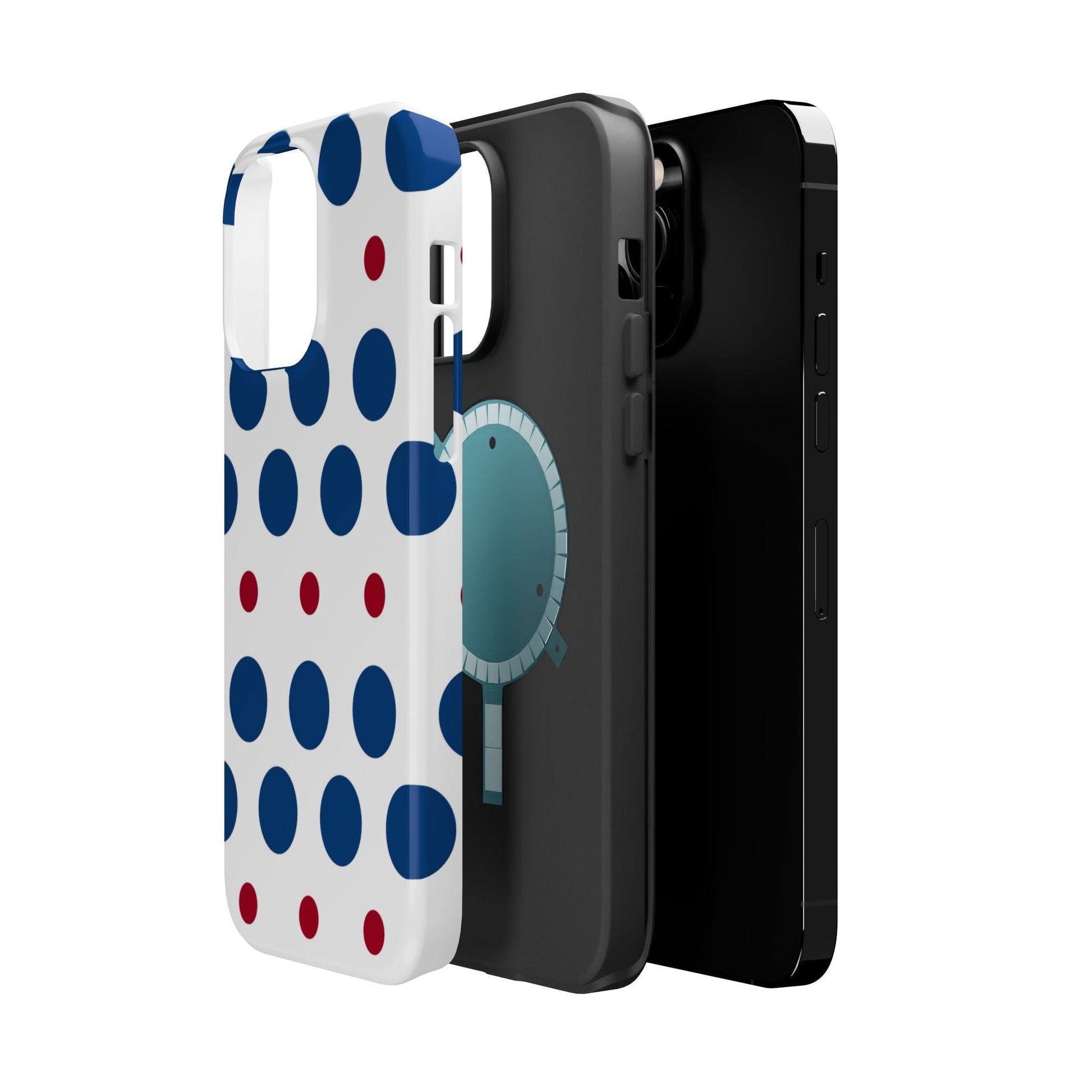 Bold Navy & Red Polka Dot Pattern – MagSafe iPhone Case