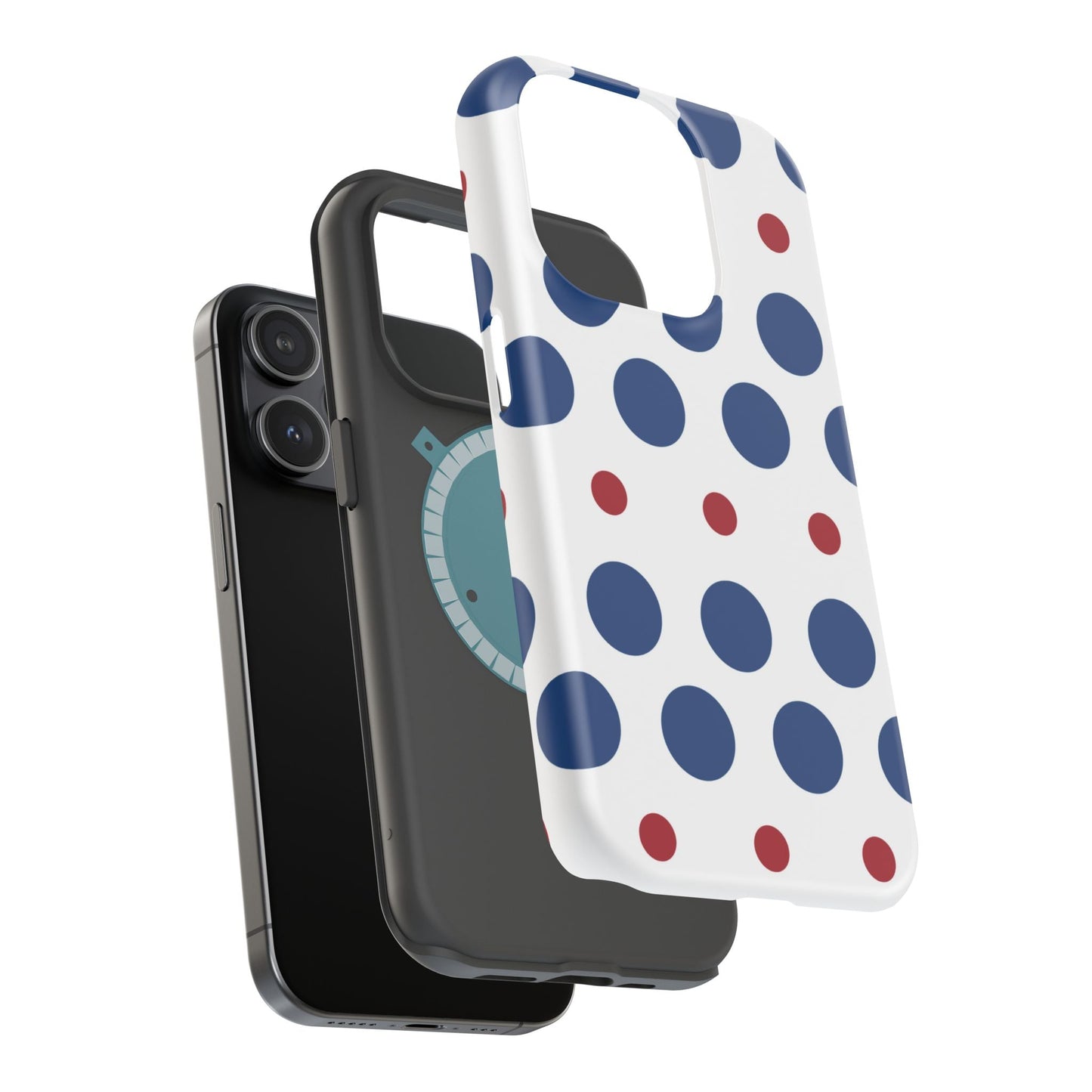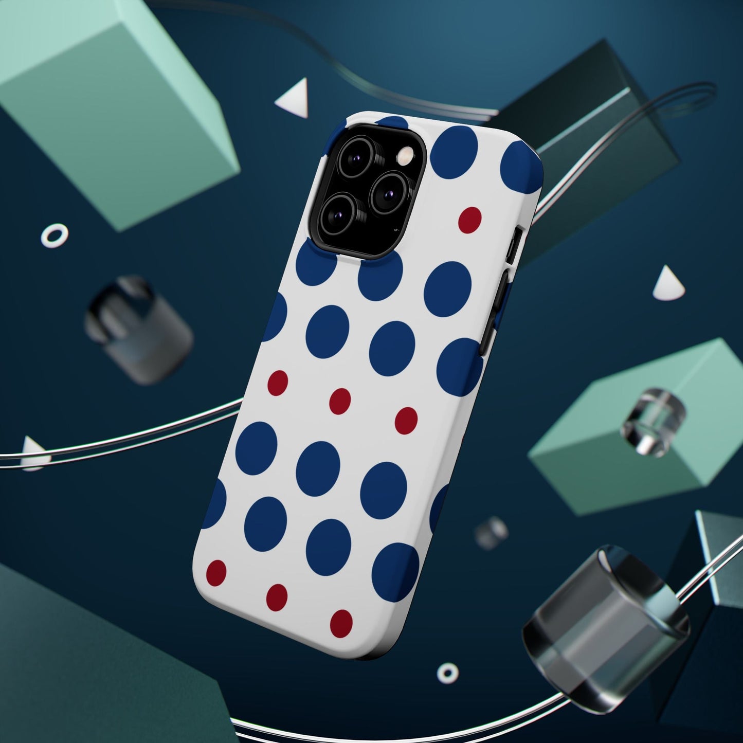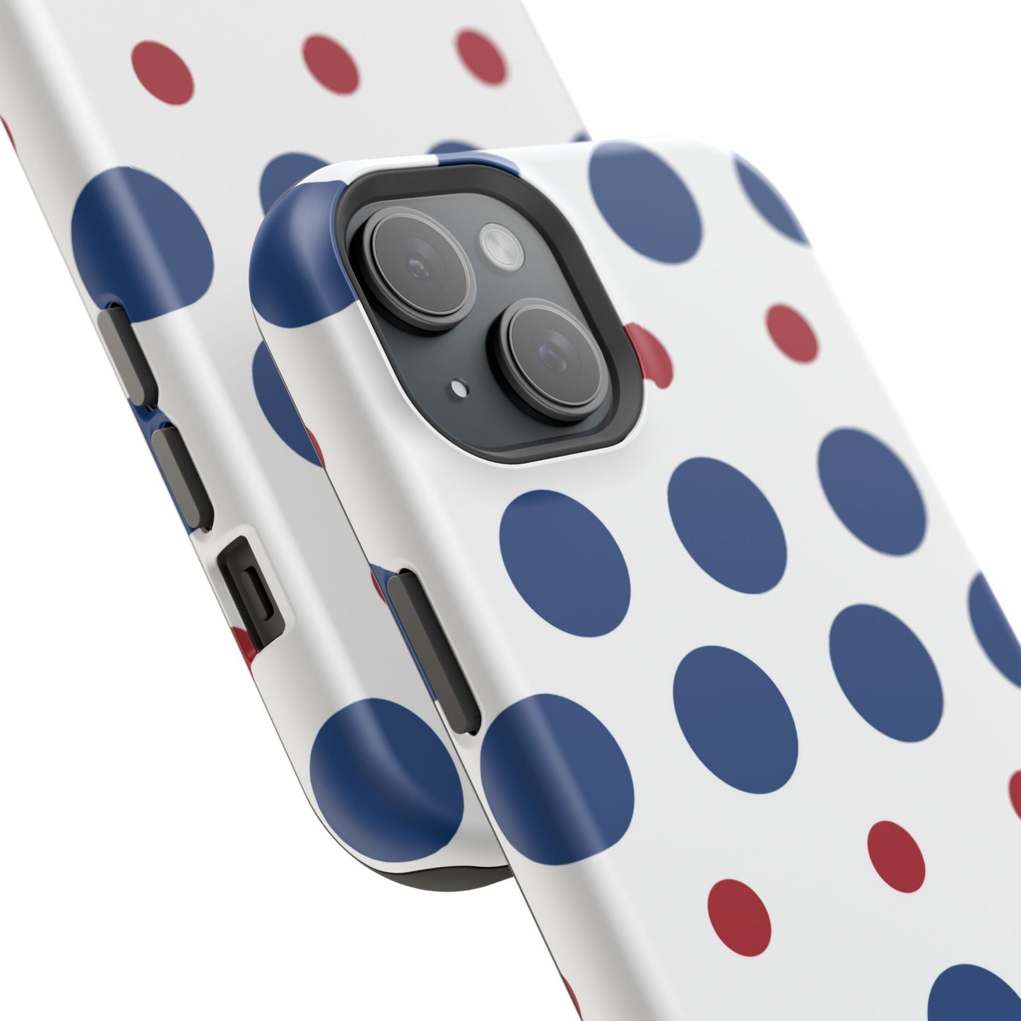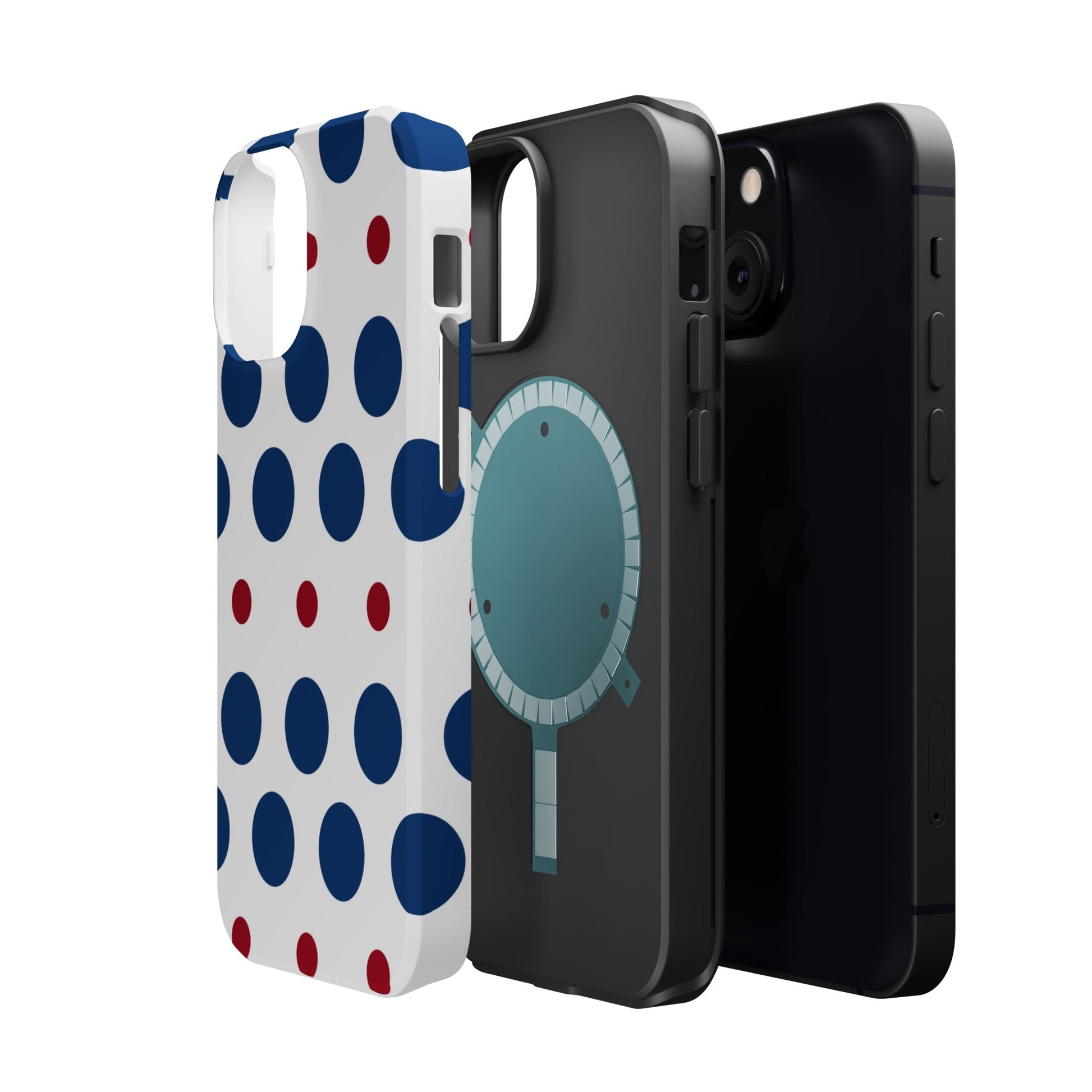 Bold Navy & Red Polka Dot Pattern – MagSafe iPhone Case