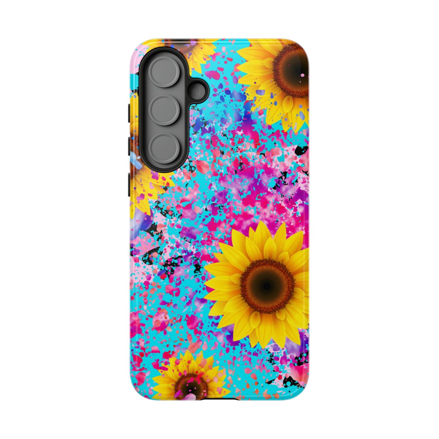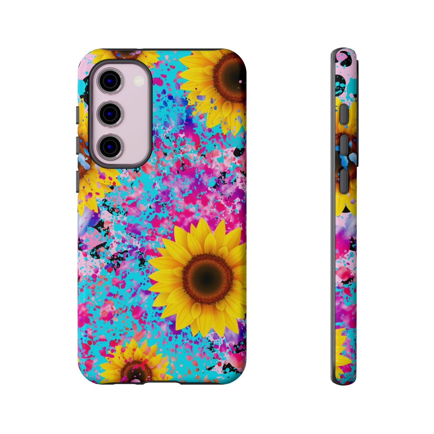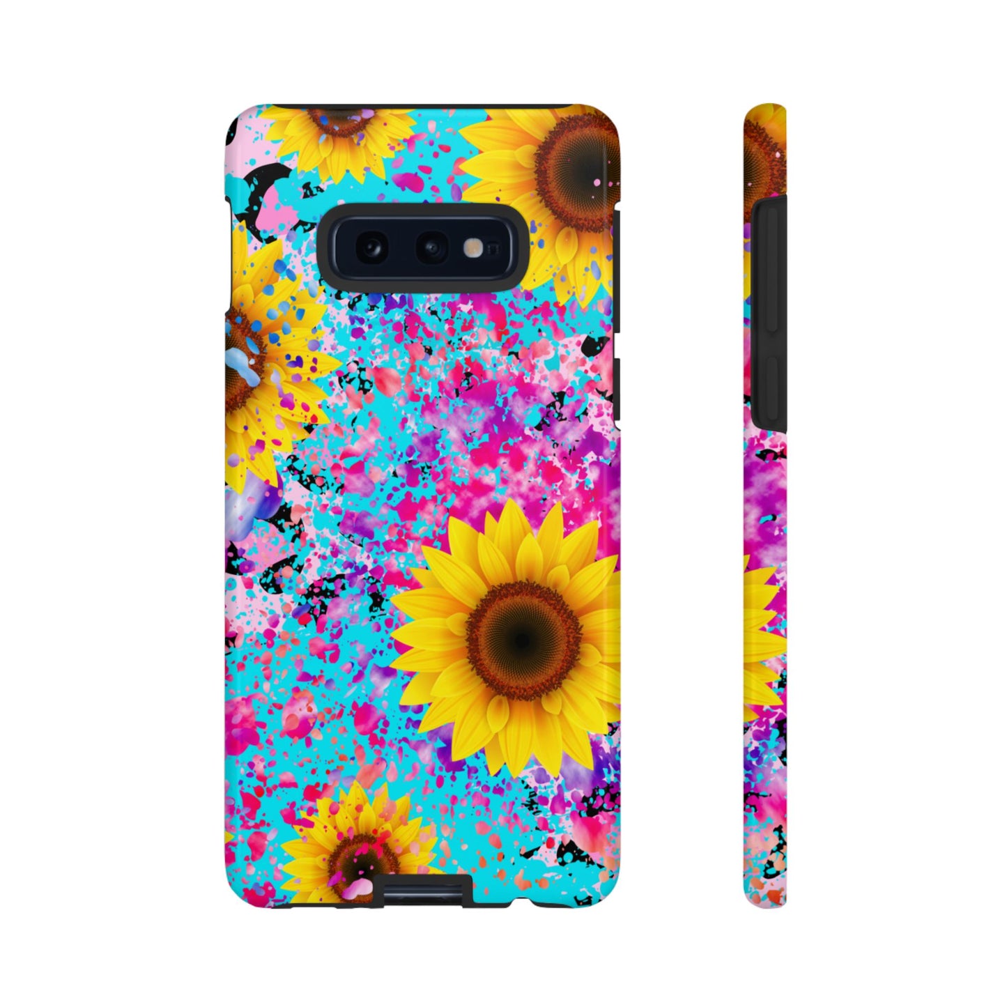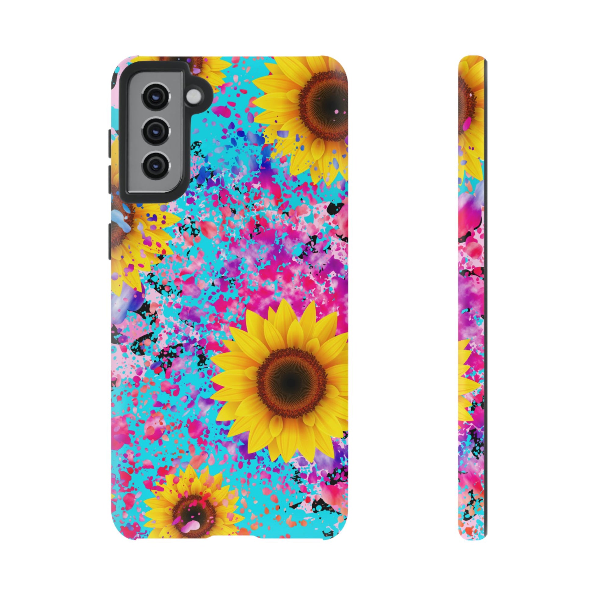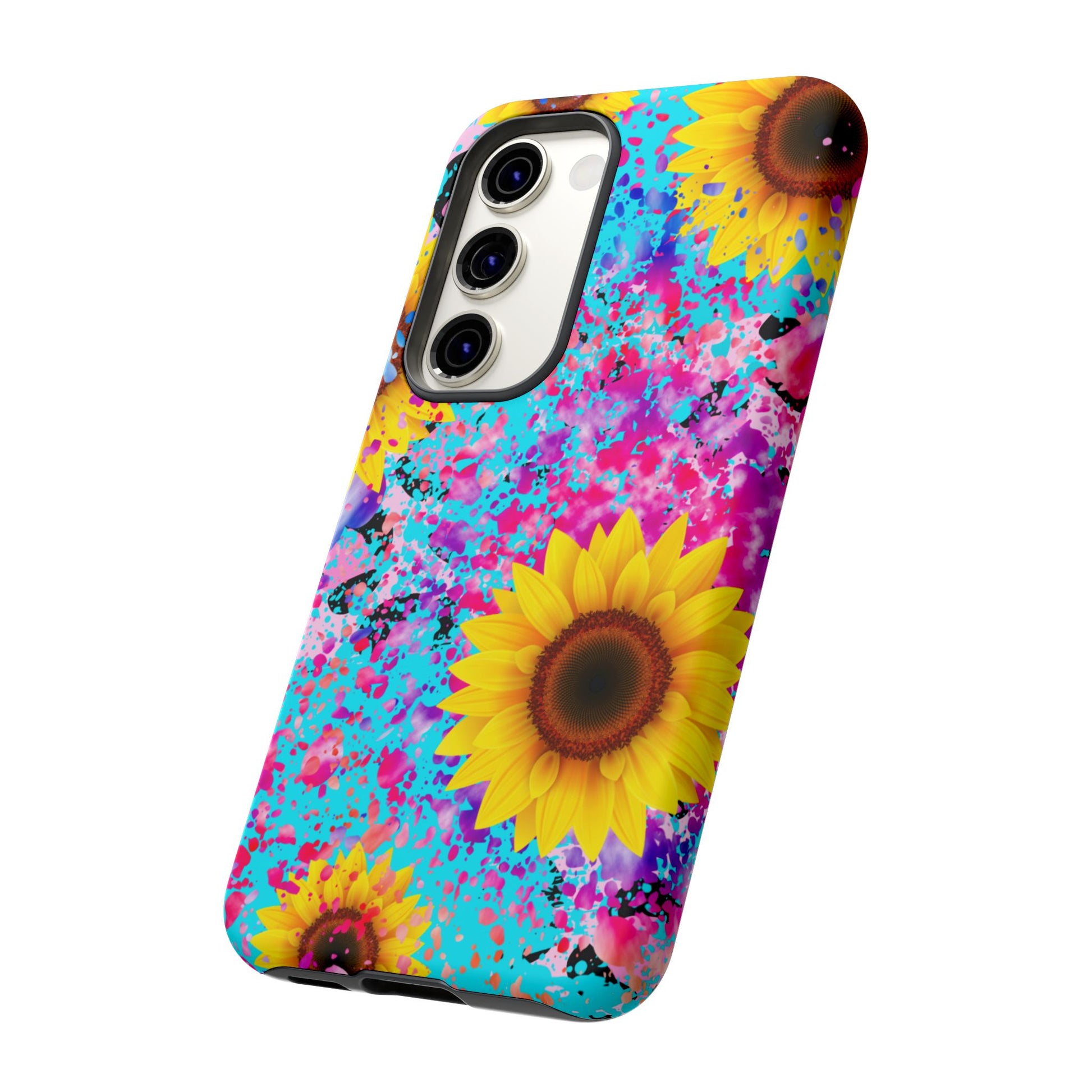Stand out with this Bright Sunflower Pop Art Samsung Galaxy Case! This bold design features vibrant yellow sunflowers scattered across a lively background of pink, blue, and purple paint splashes with hints of black leopard spots. The playful mix of colors and patterns gives a funky, retro vibe that’s perfect for anyone looking to make a statement. Crafted with a durable polycarbonate shell and shock-absorbing TPU liner, this case not only turns heads but also provides reliable protection. Elevate your style and brighten your day with this one-of-a-kind sunflower case!