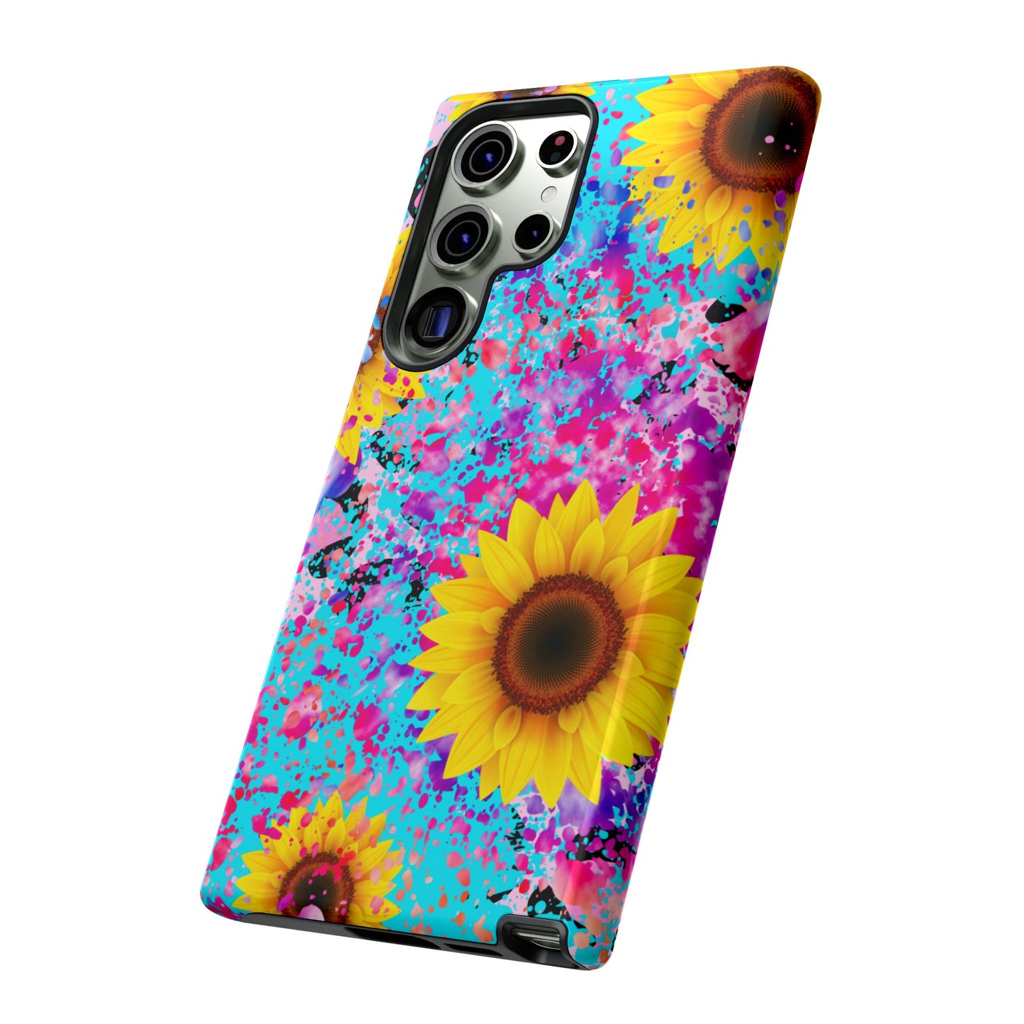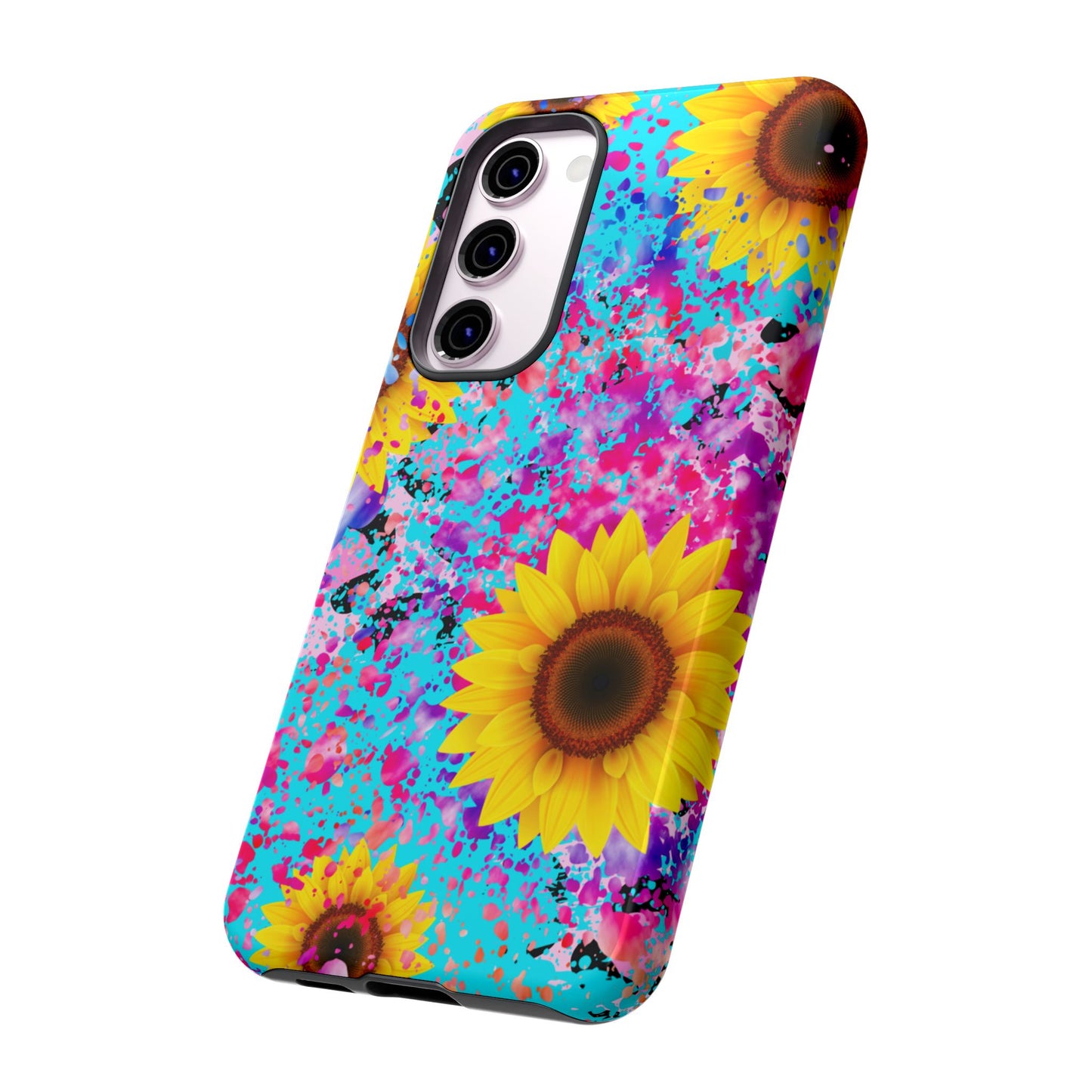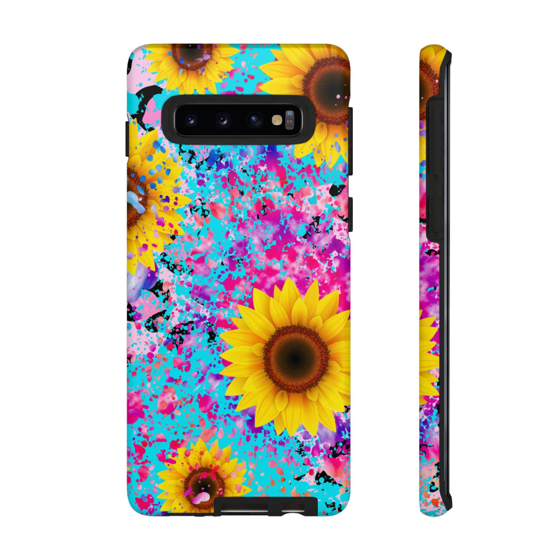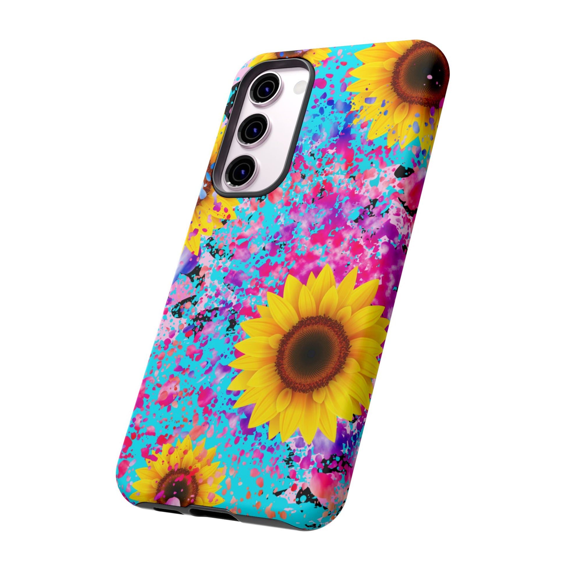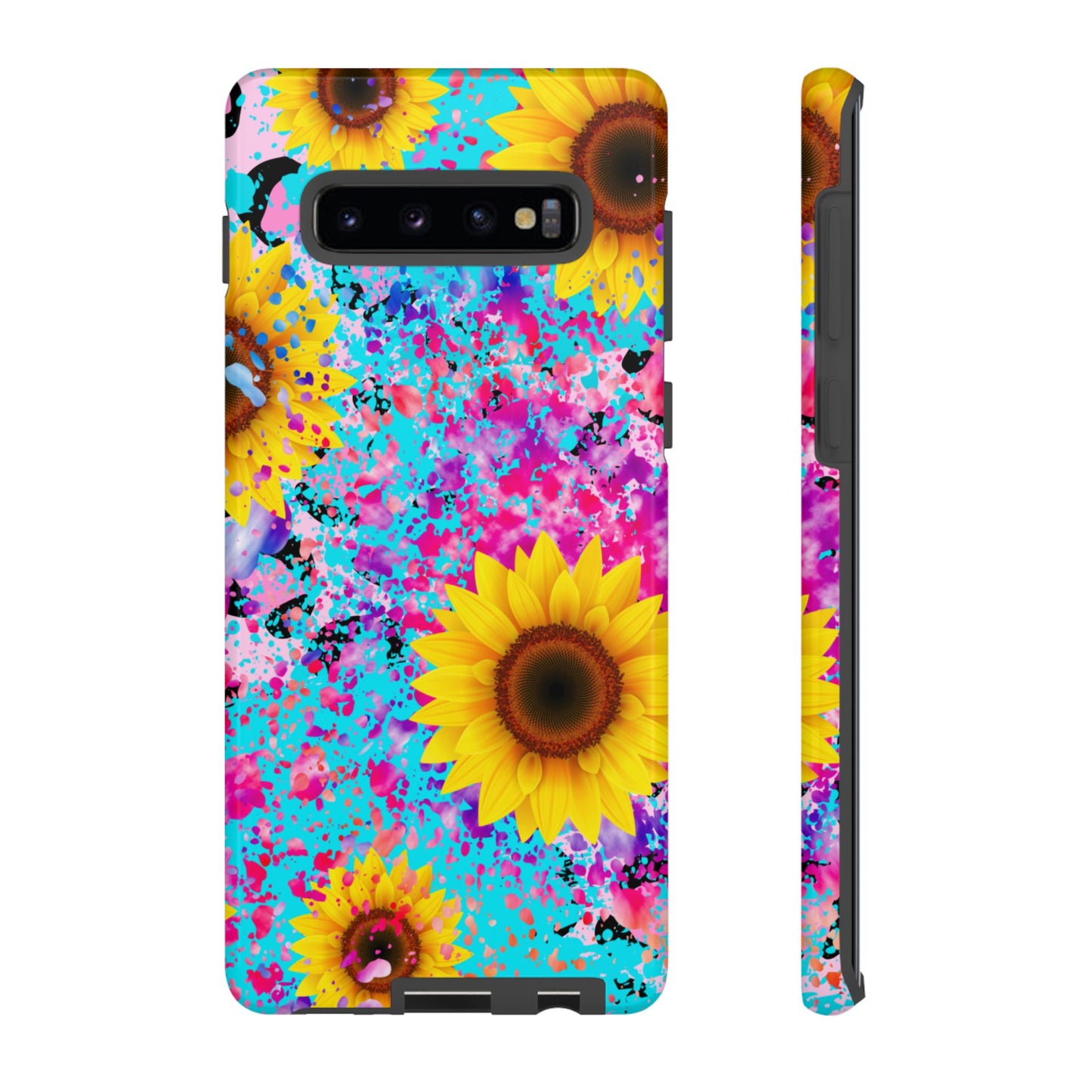 Stand out with this Bright Sunflower Pop Art Samsung Galaxy Case! This bold design features vibrant yellow sunflowers scattered across a lively background of pink, blue, and purple paint splashes with hints of black leopard spots. The playful mix of colors and patterns gives a funky, retro vibe that’s perfect for anyone looking to make a statement. Crafted with a durable polycarbonate shell and shock-absorbing TPU liner, this case not only turns heads but also provides reliable protection. Elevate your style and brighten your day with this one-of-a-kind sunflower case!