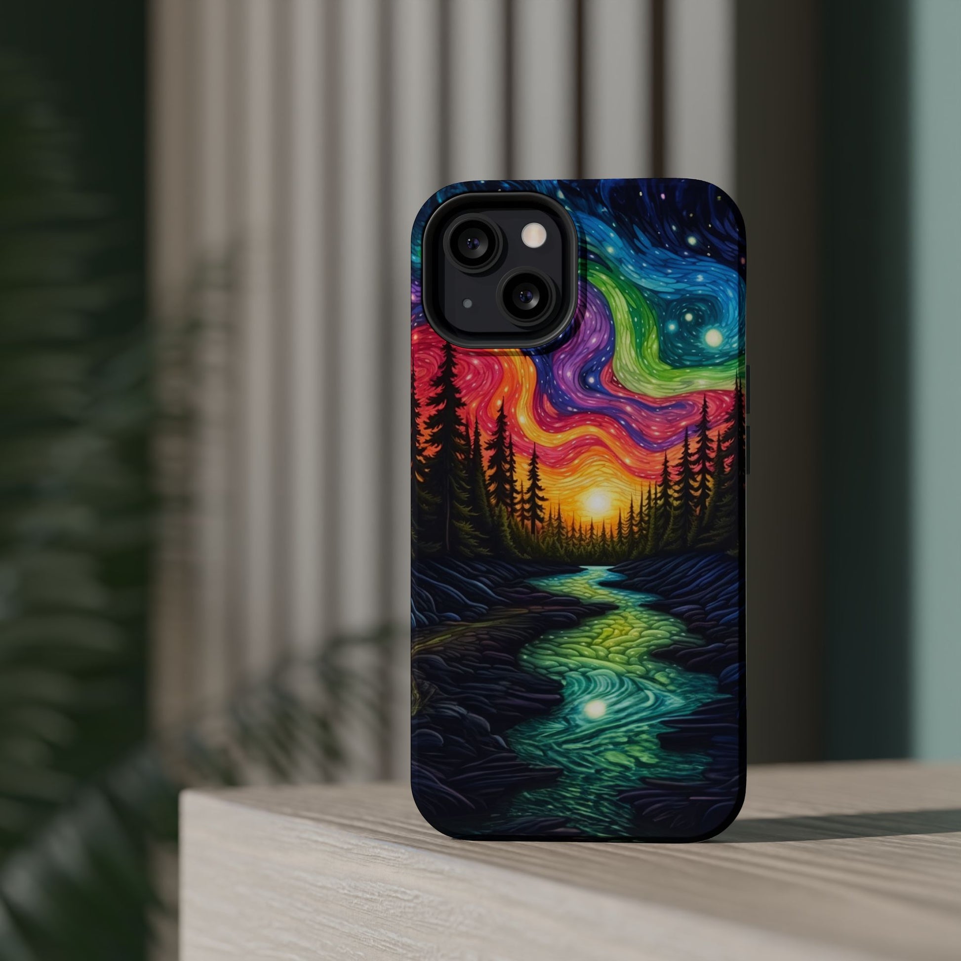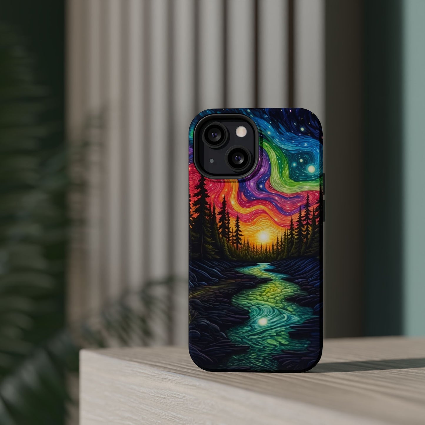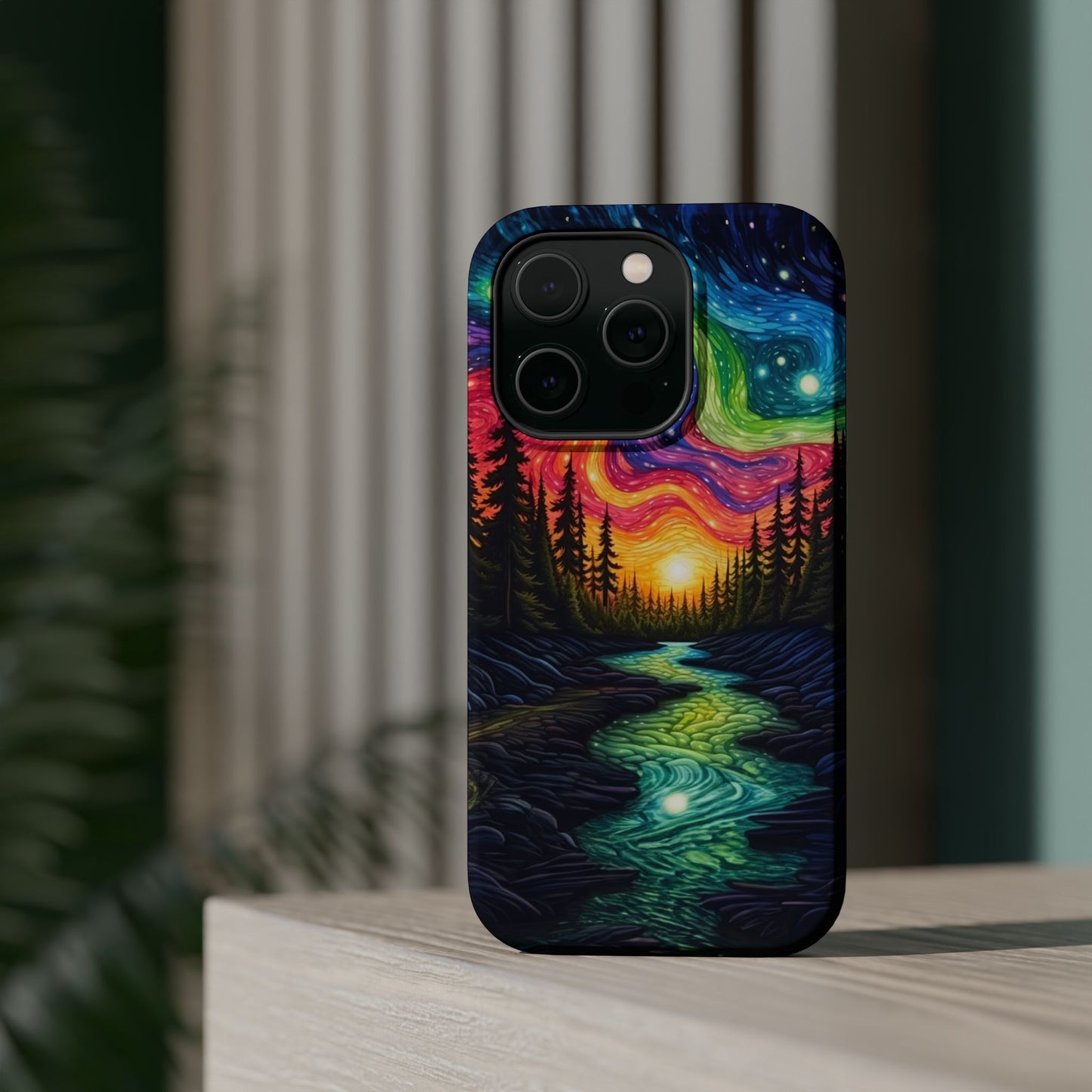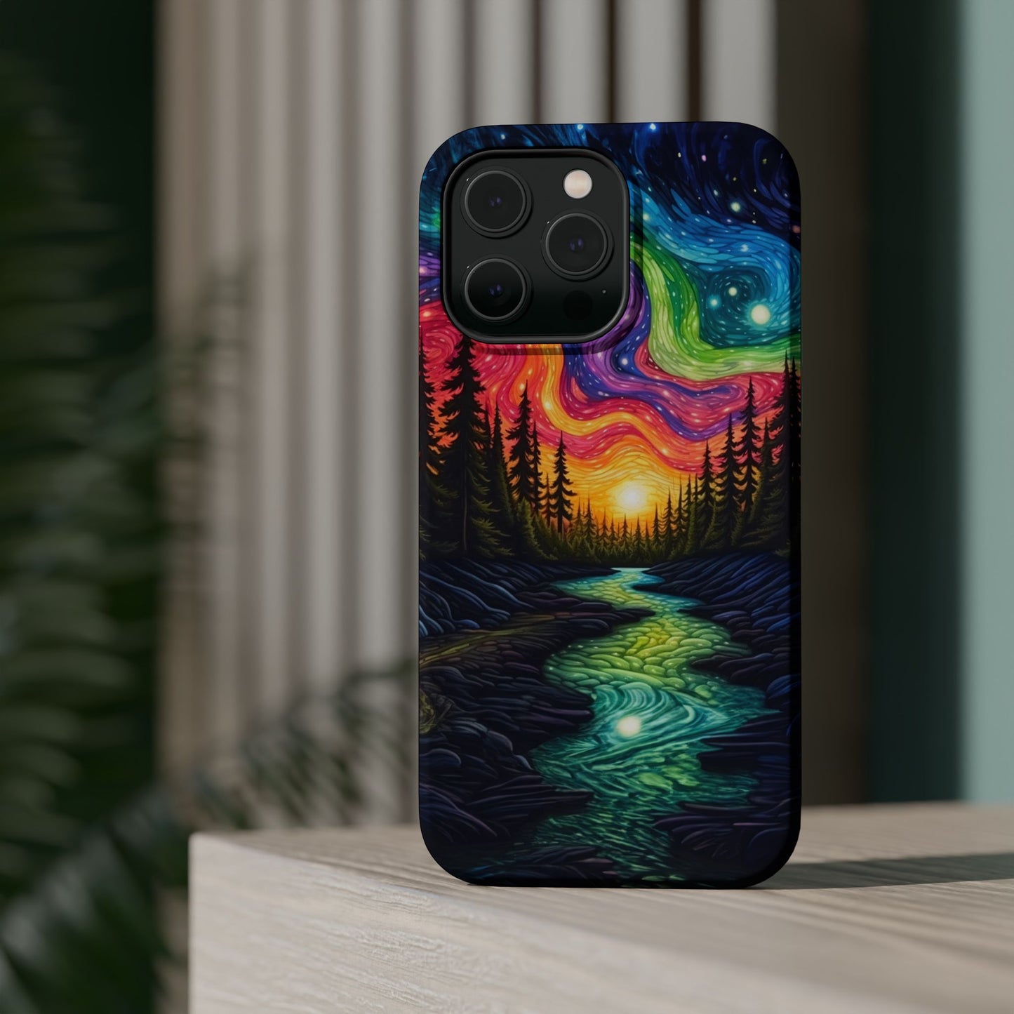 Celestial Nightscape MagSafe iPhone Case – Vibrant River and Starry Sky Design