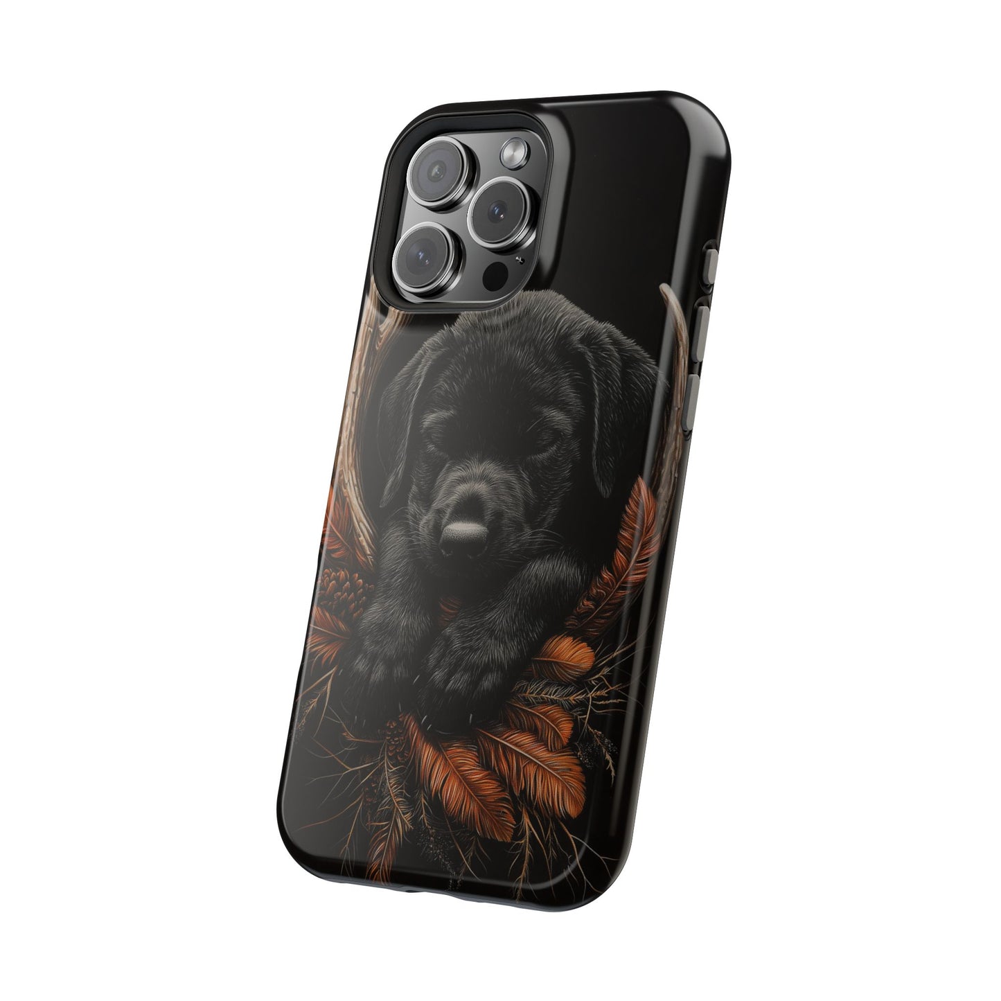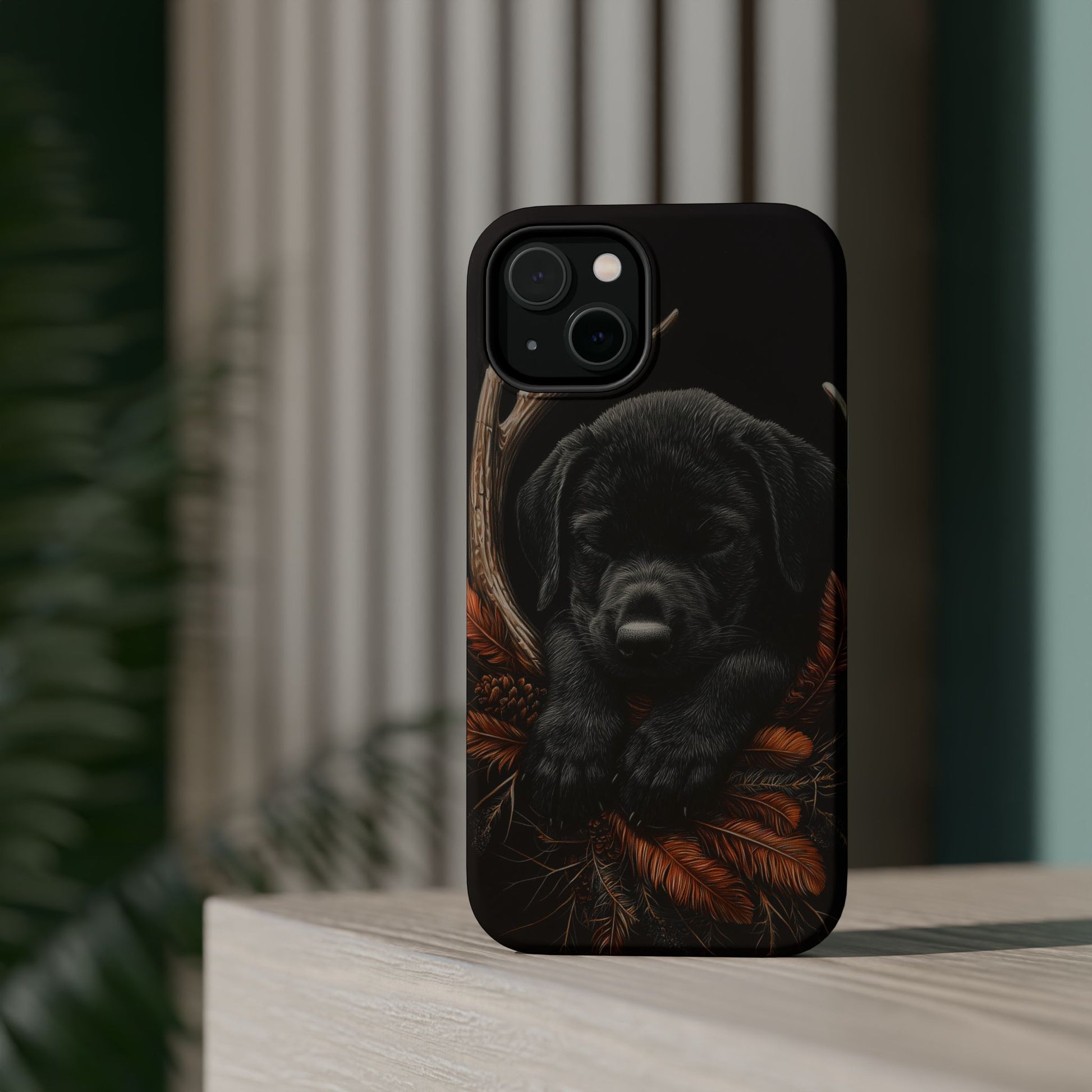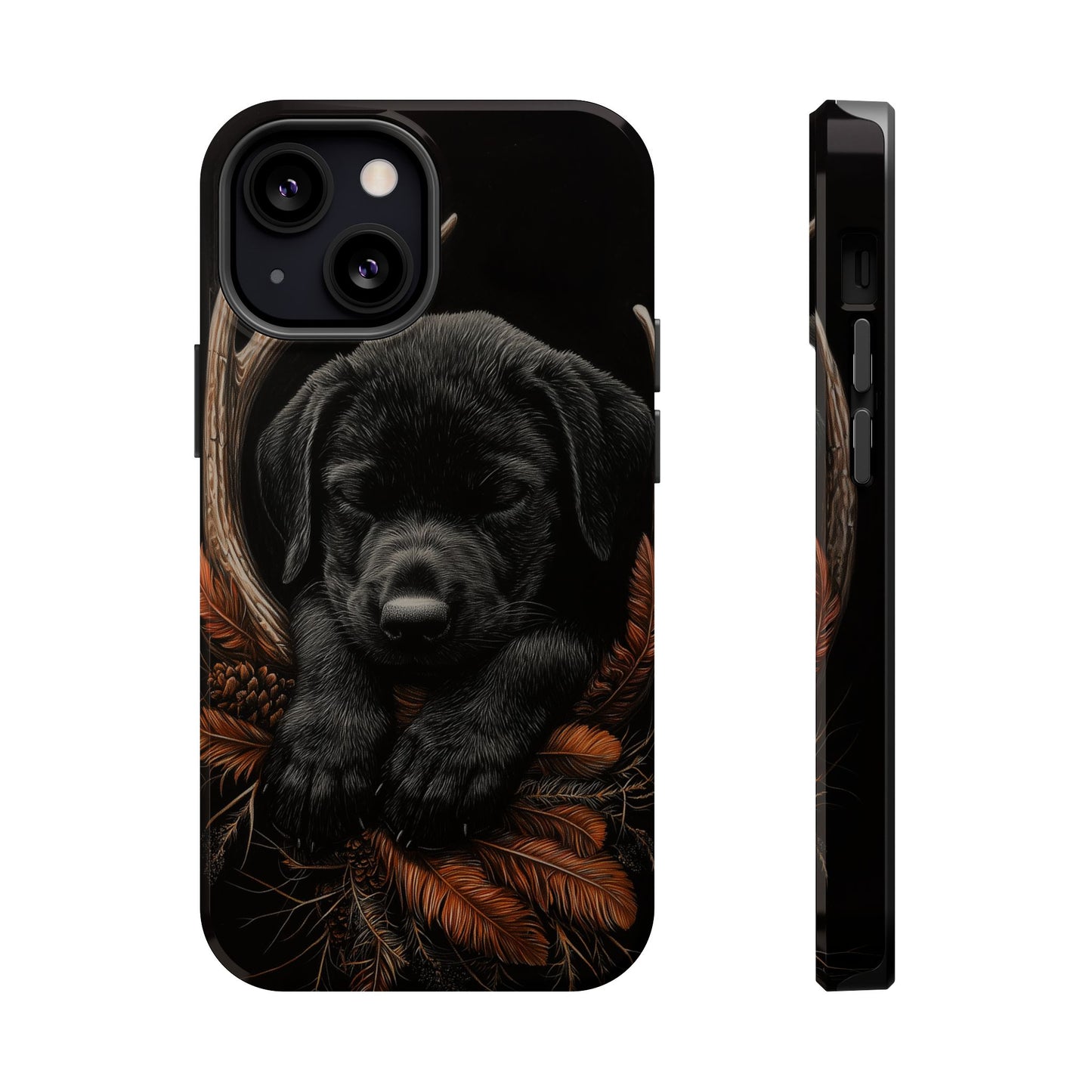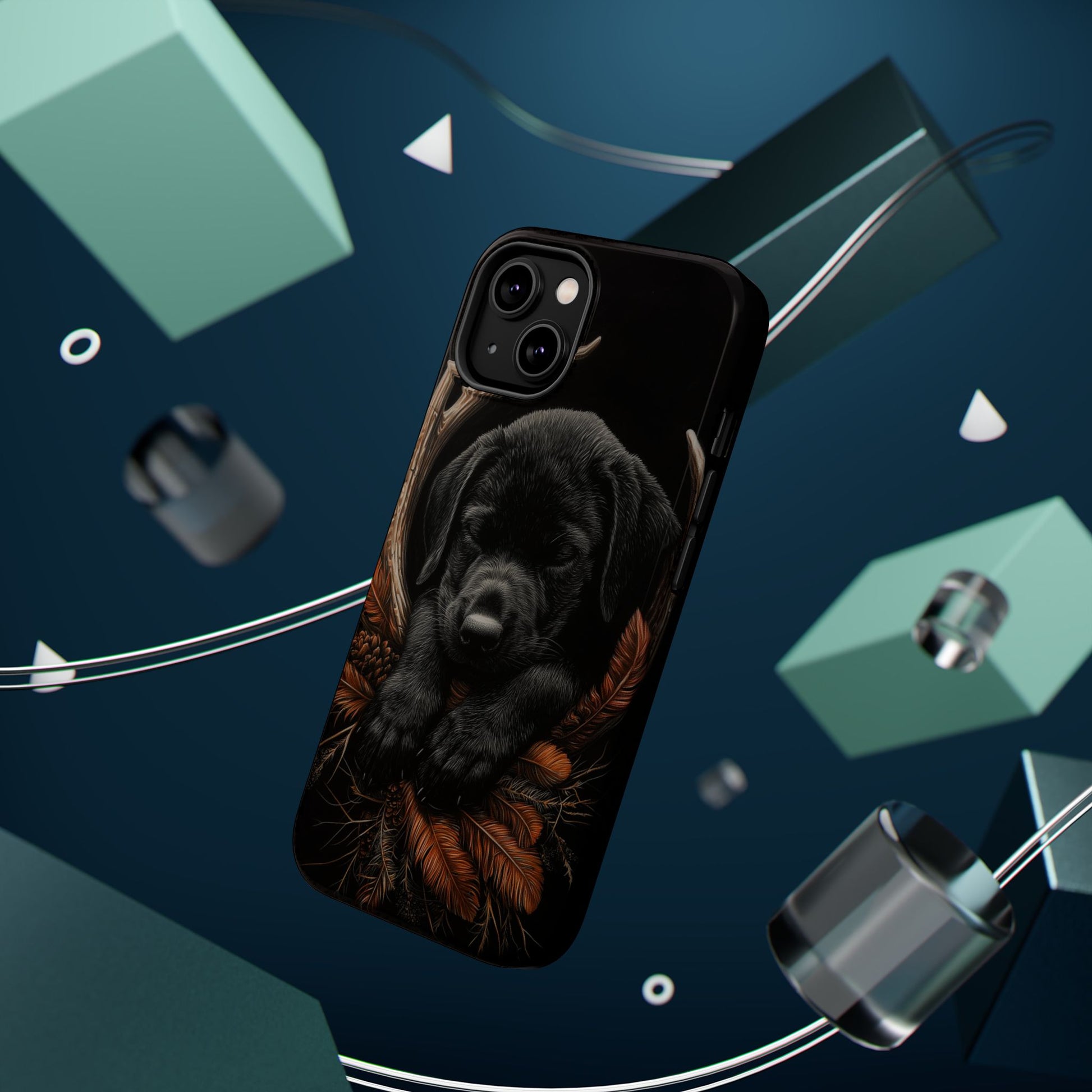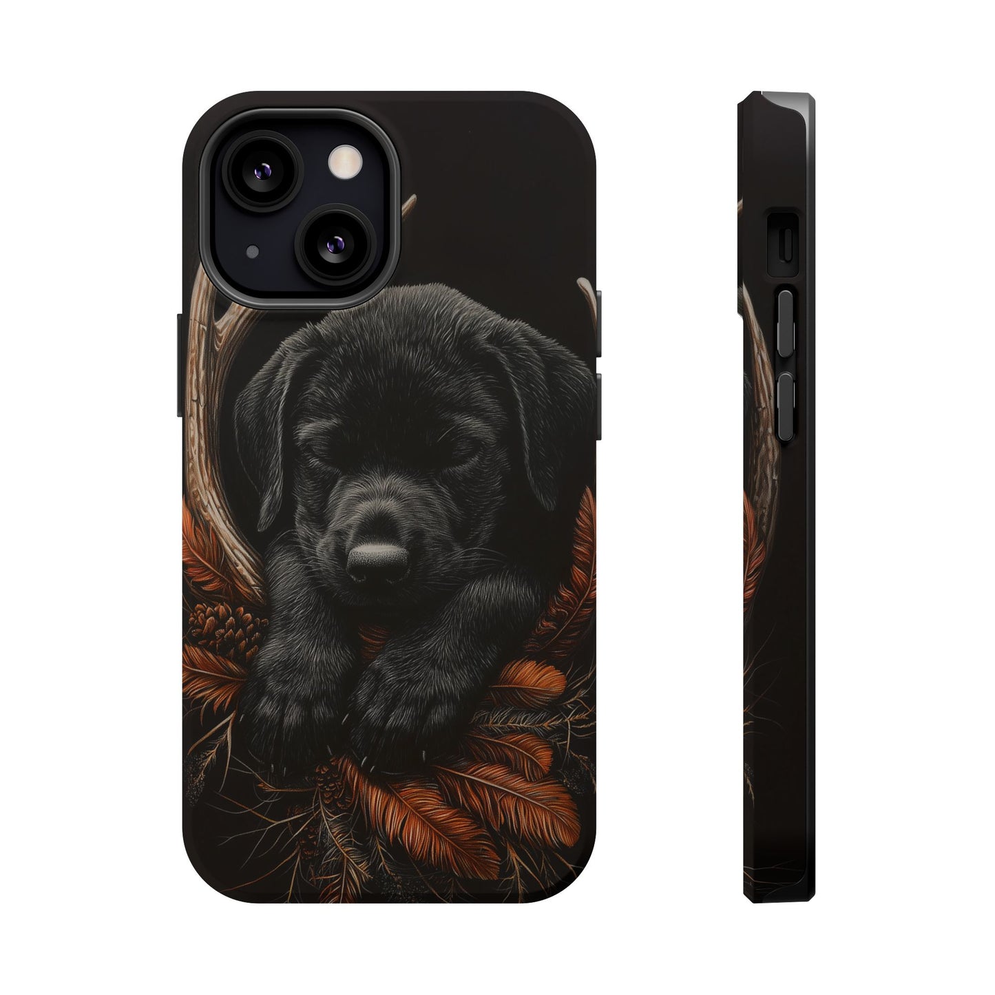 Charming Black Labrador Puppy on Feathers MagSafe iPhone Case