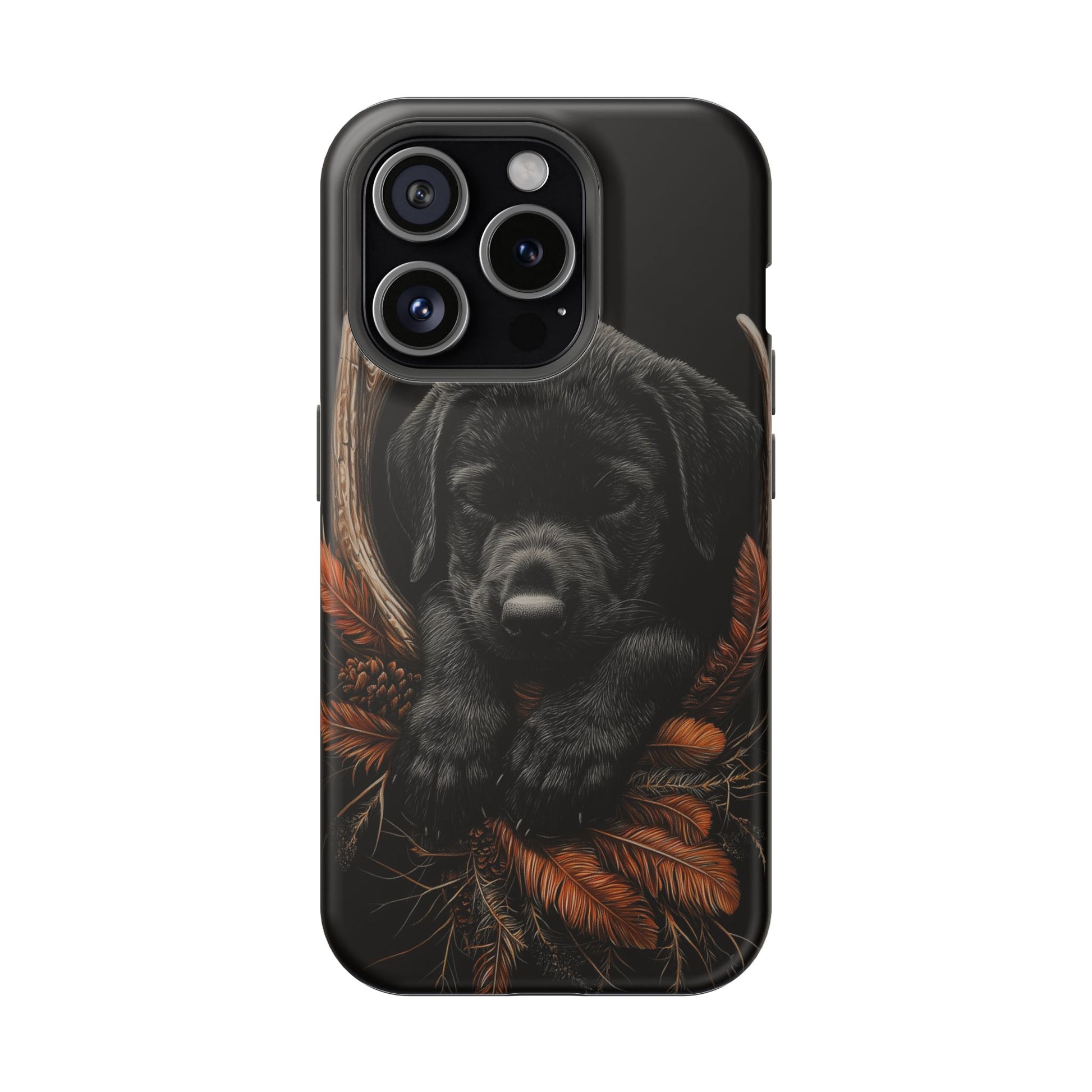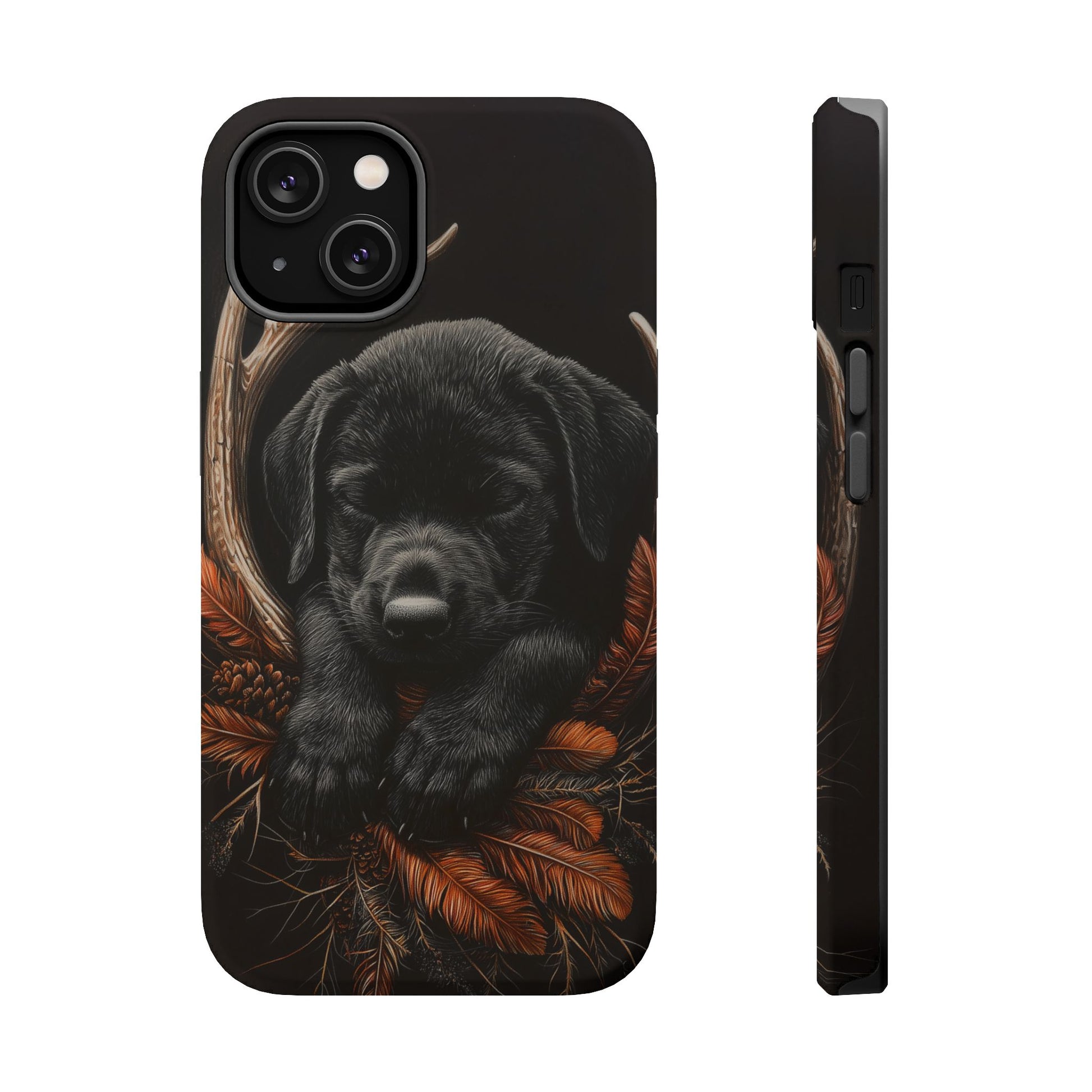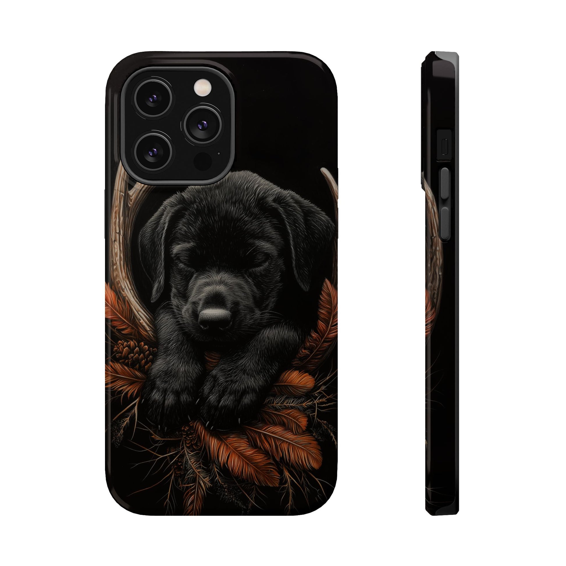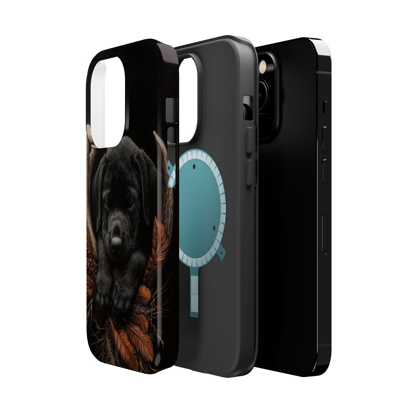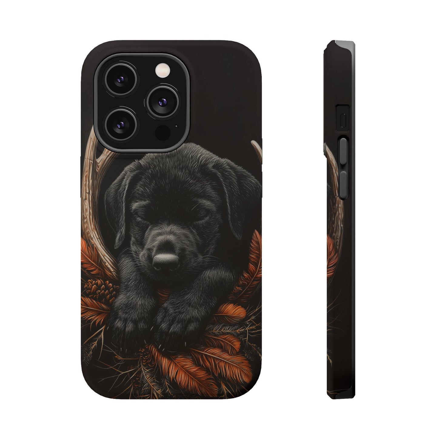 Charming Black Labrador Puppy on Feathers MagSafe iPhone Case