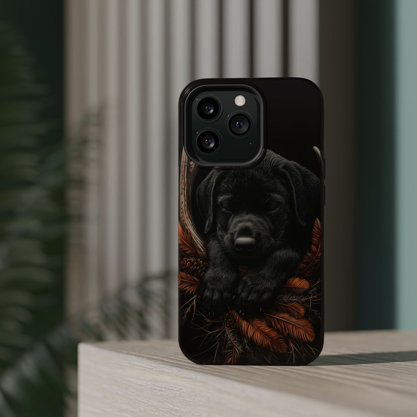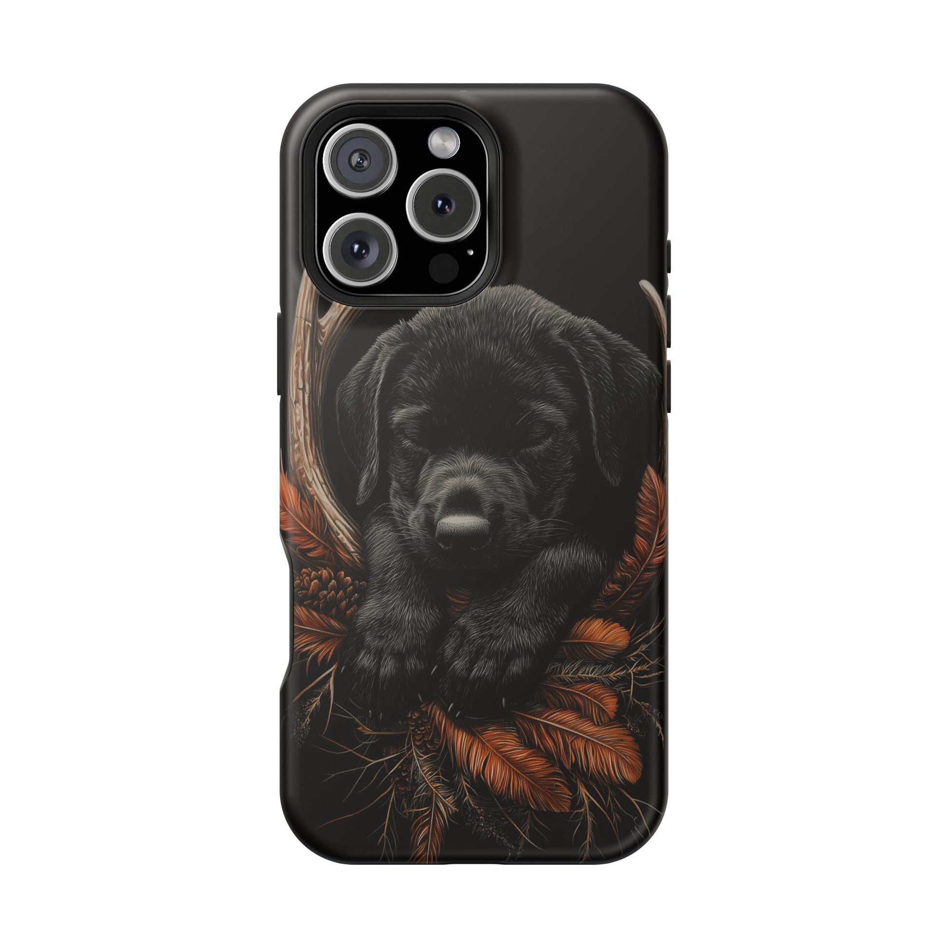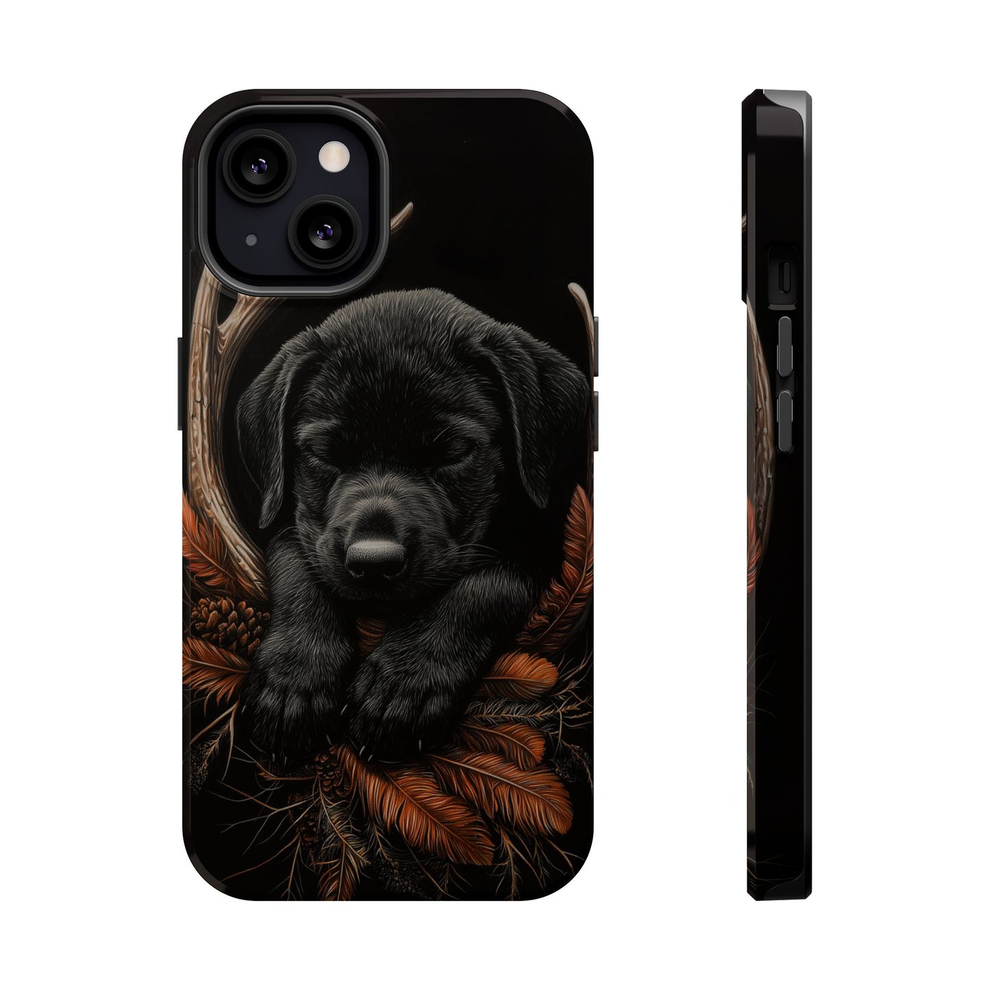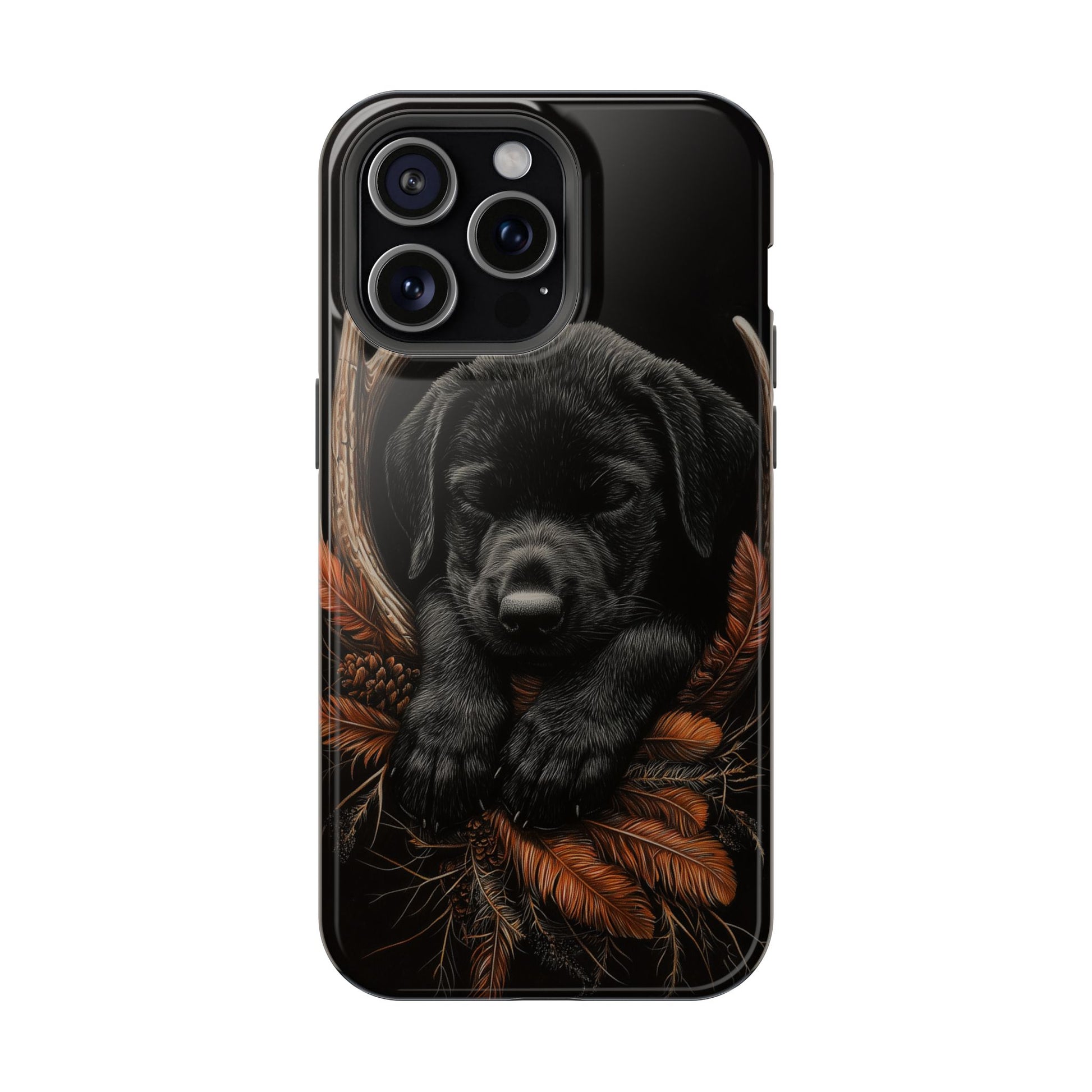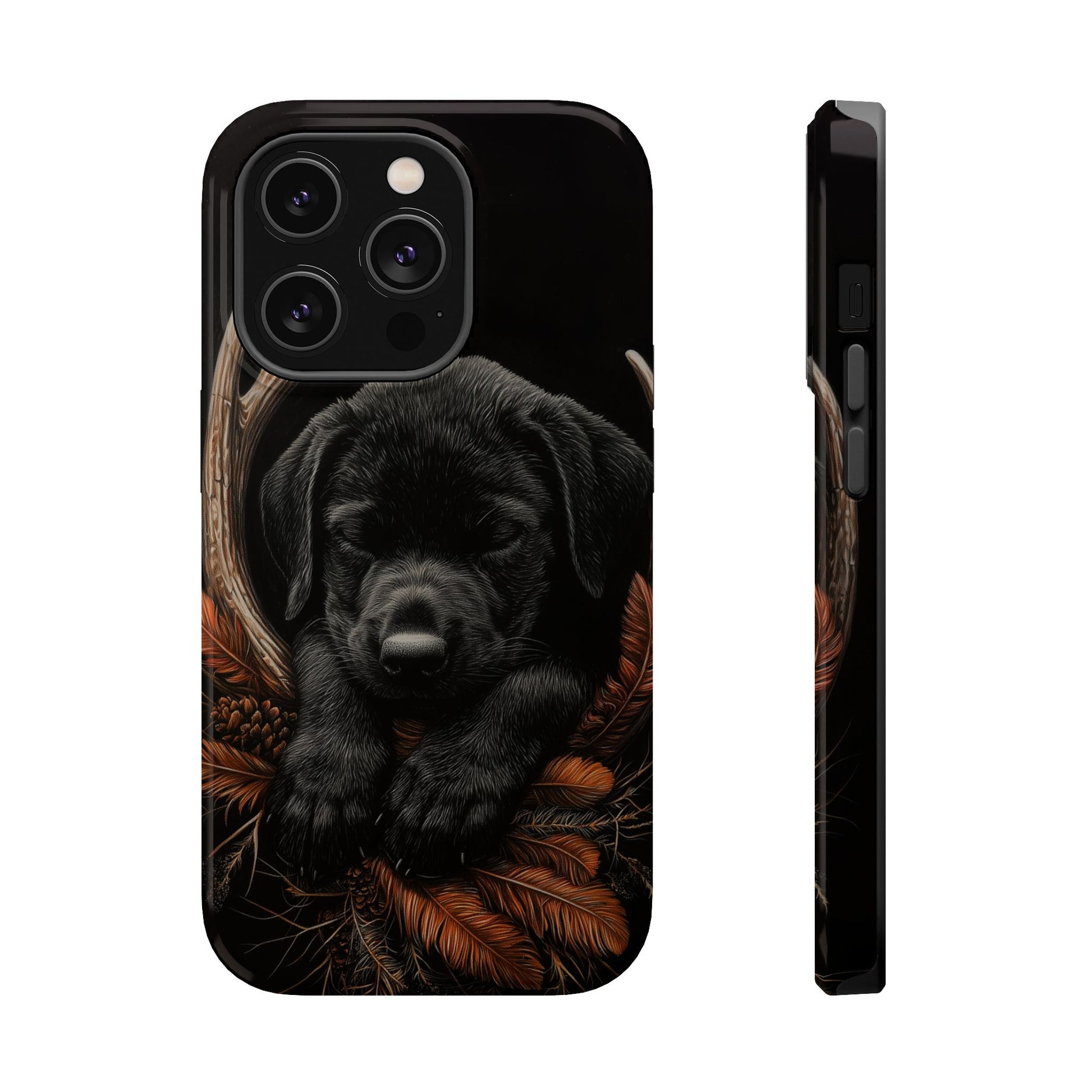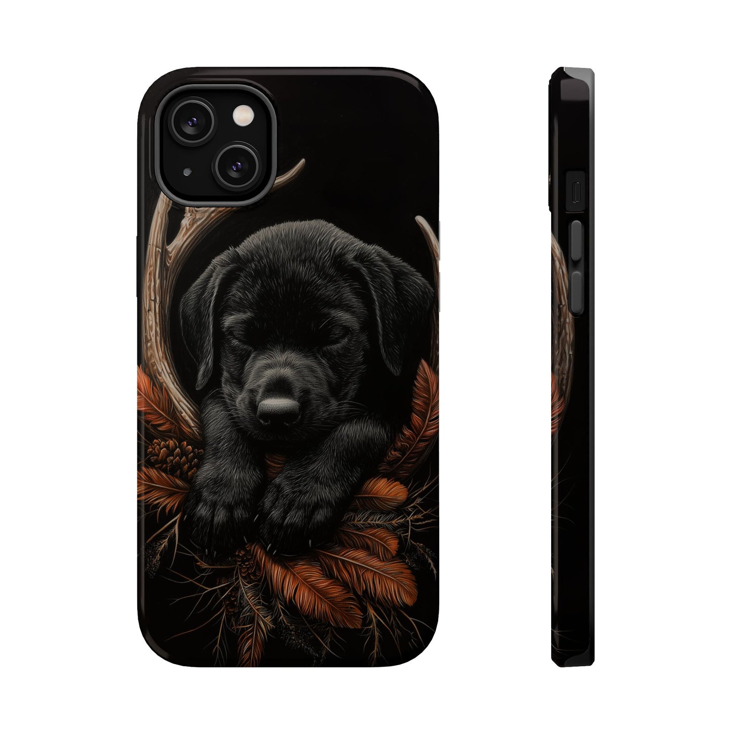 Charming Black Labrador Puppy on Feathers MagSafe iPhone Case