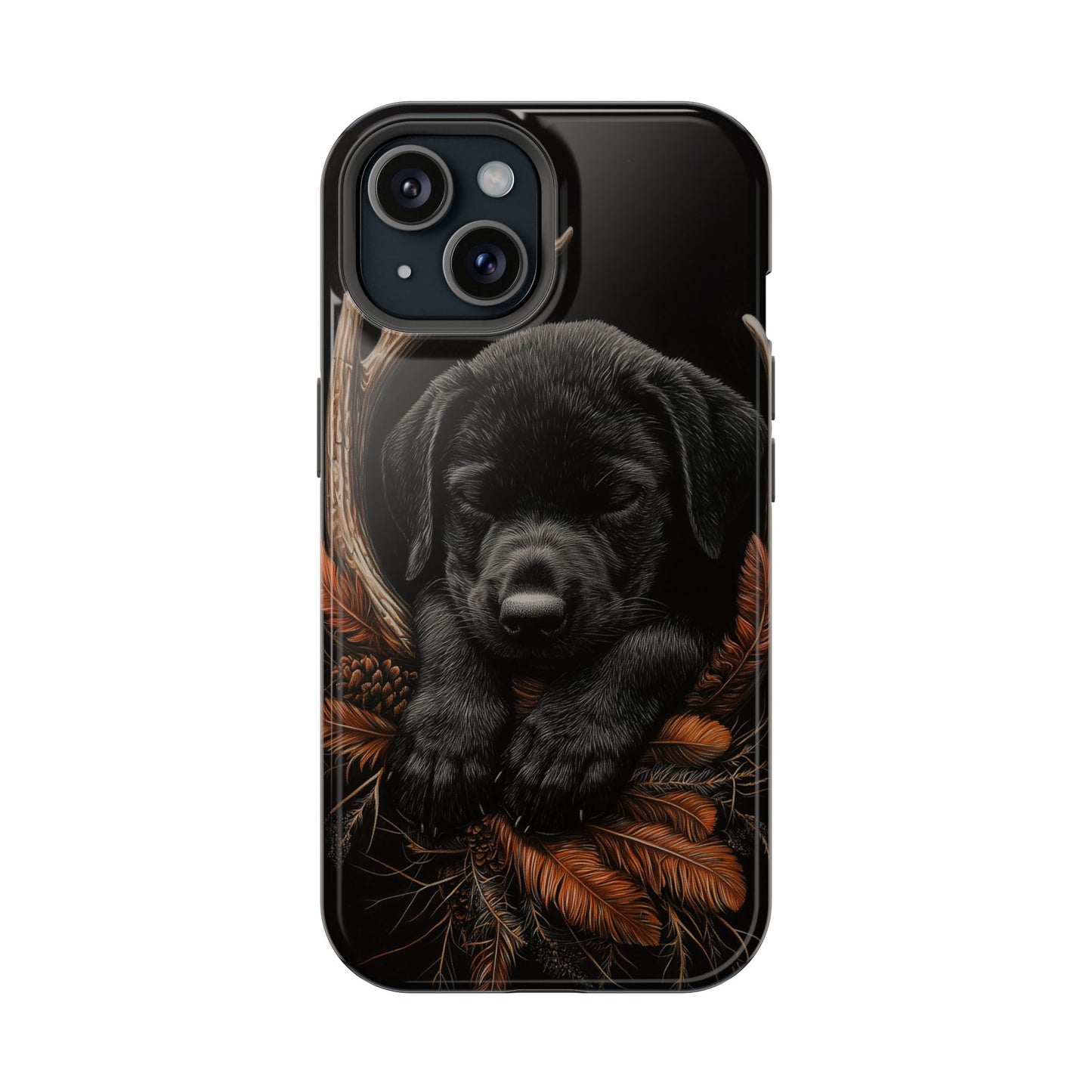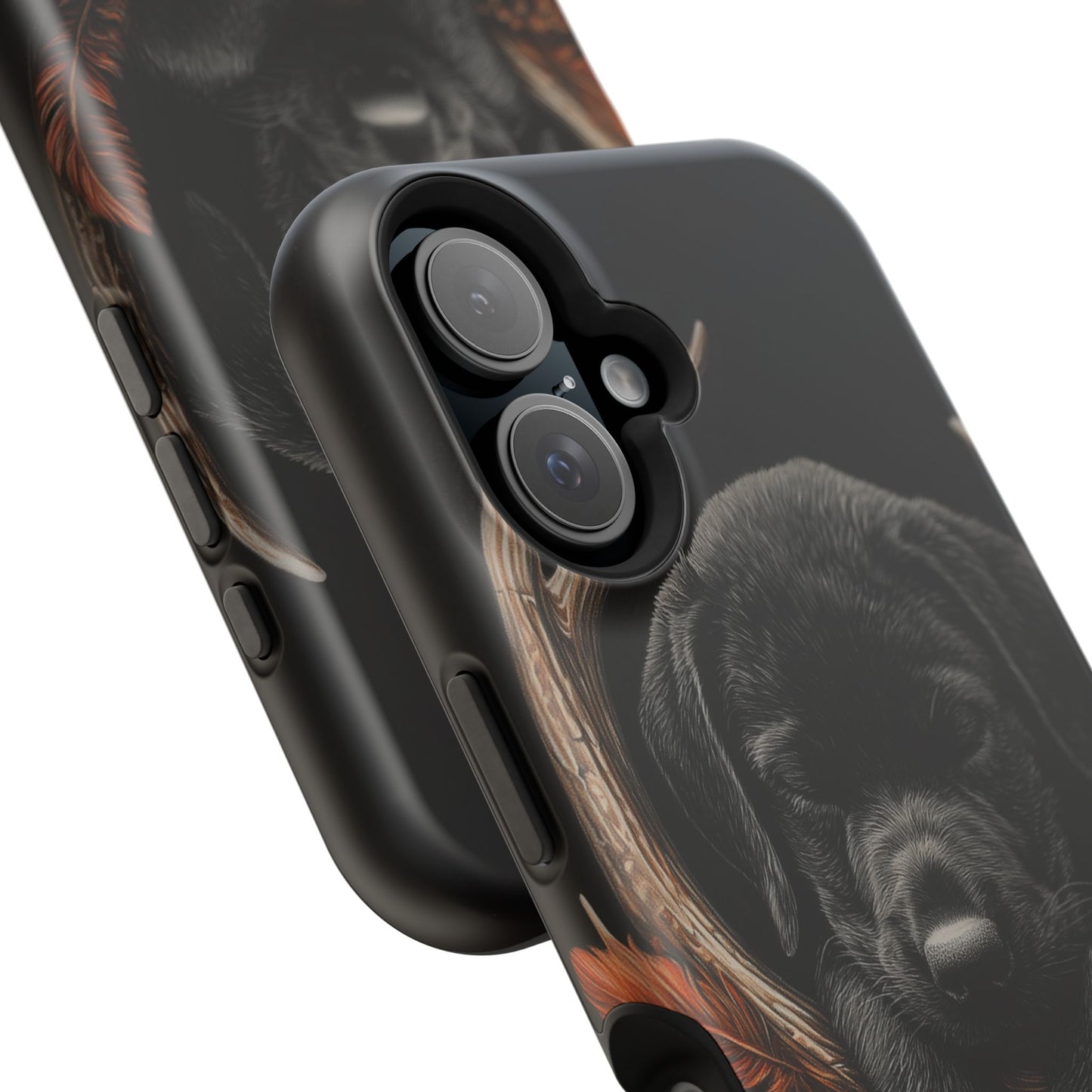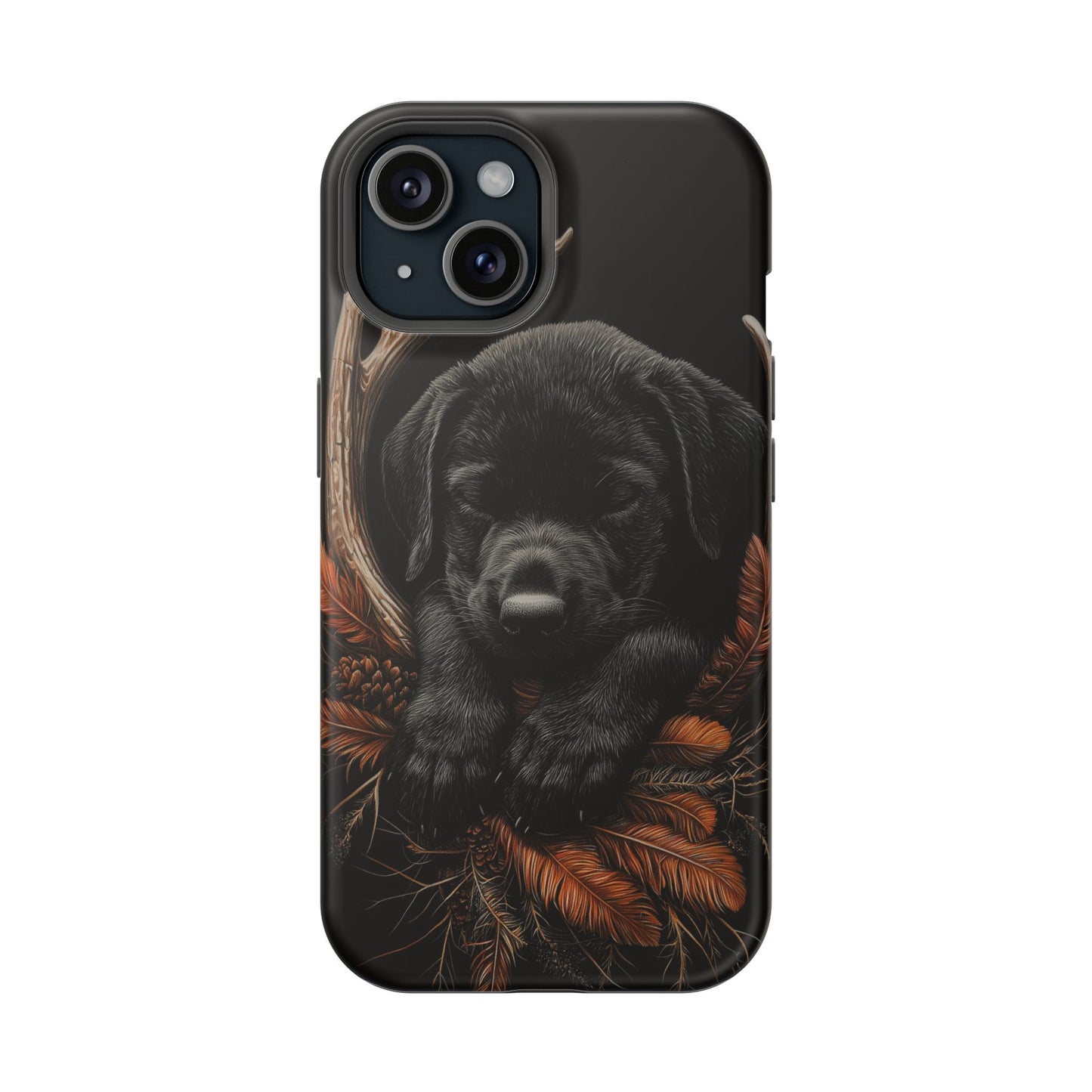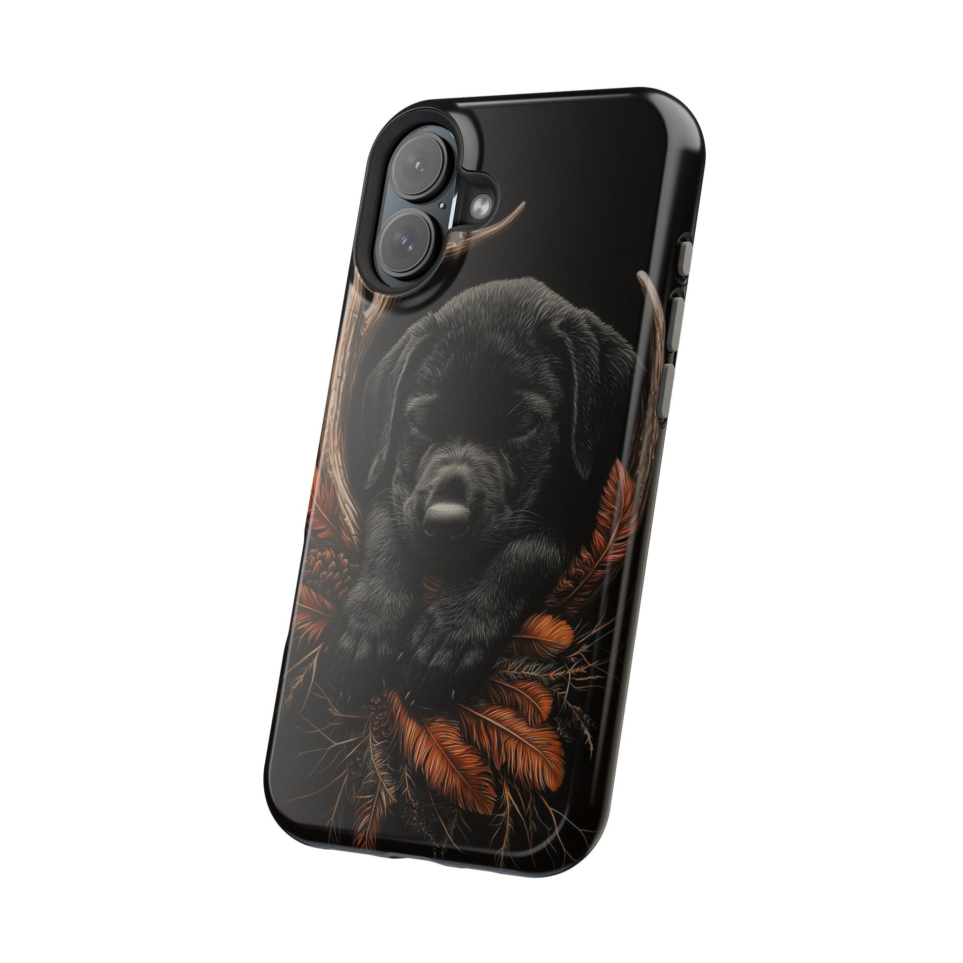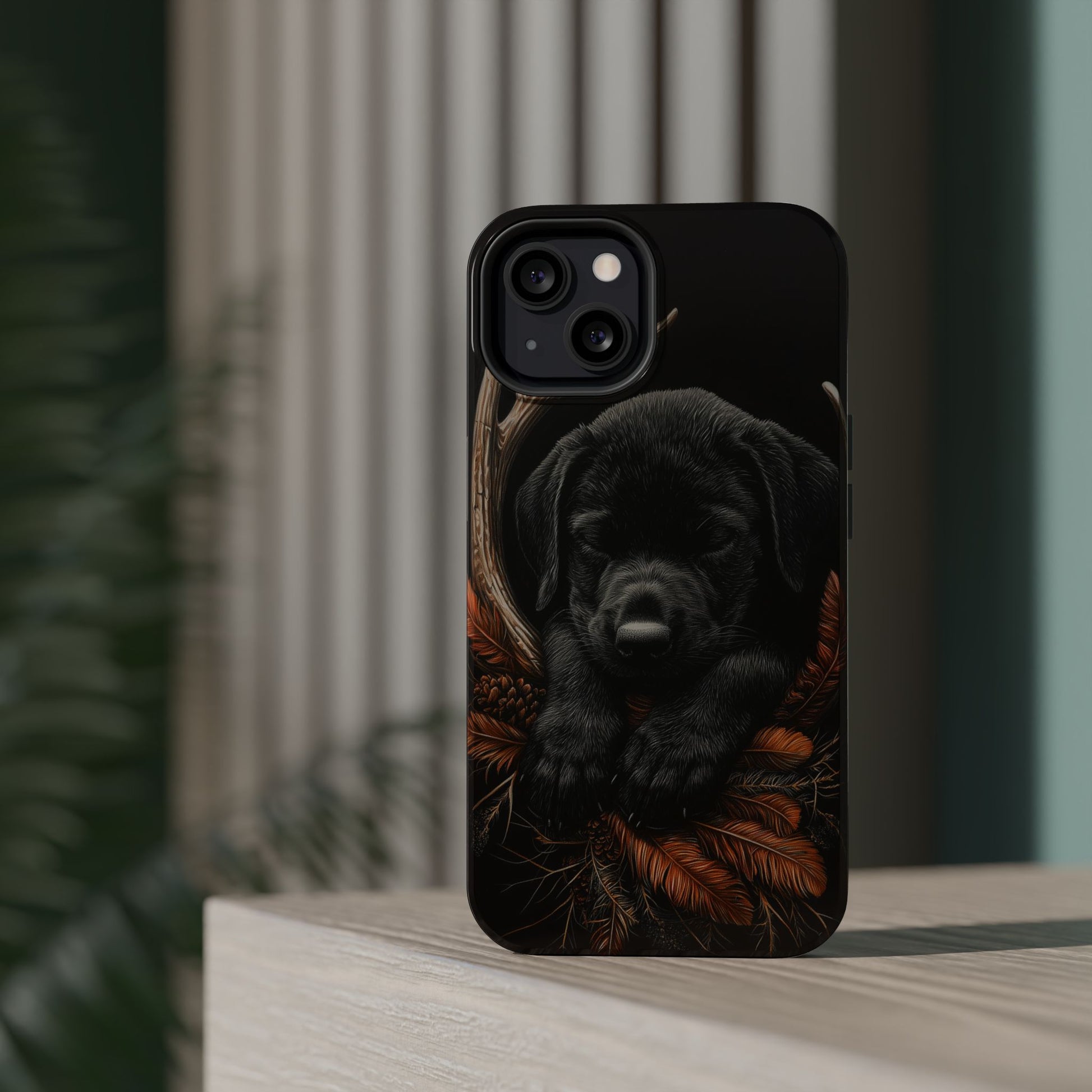 Charming Black Labrador Puppy on Feathers MagSafe iPhone Case