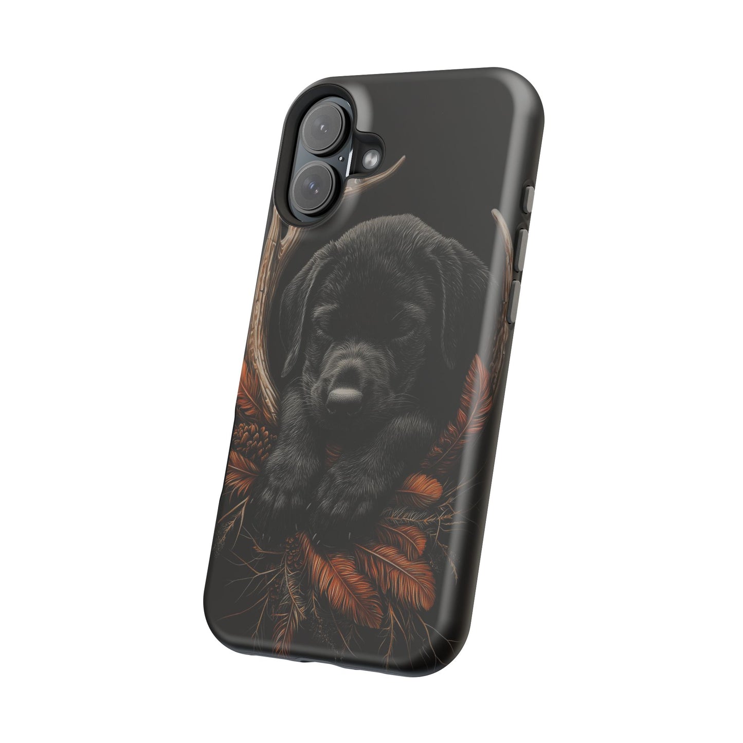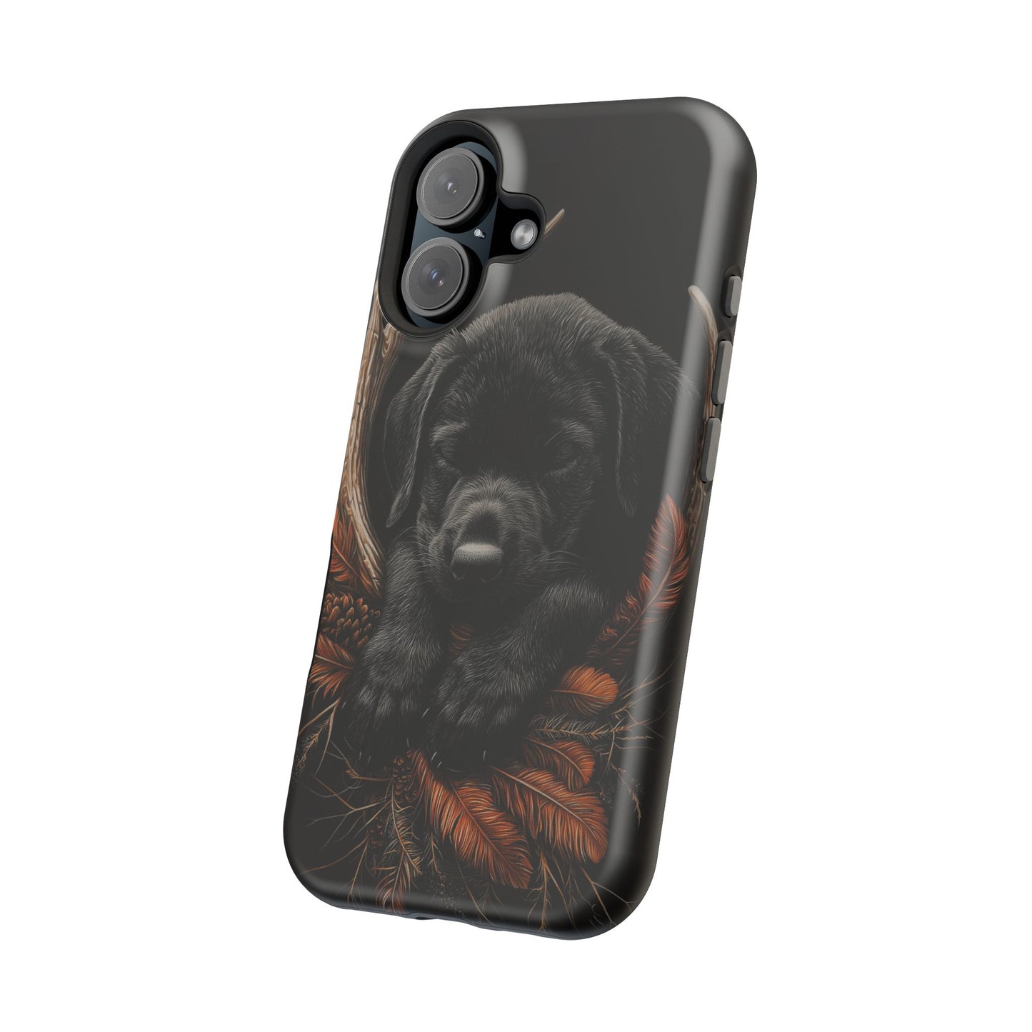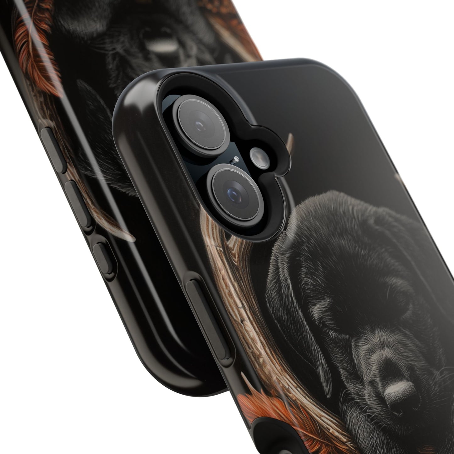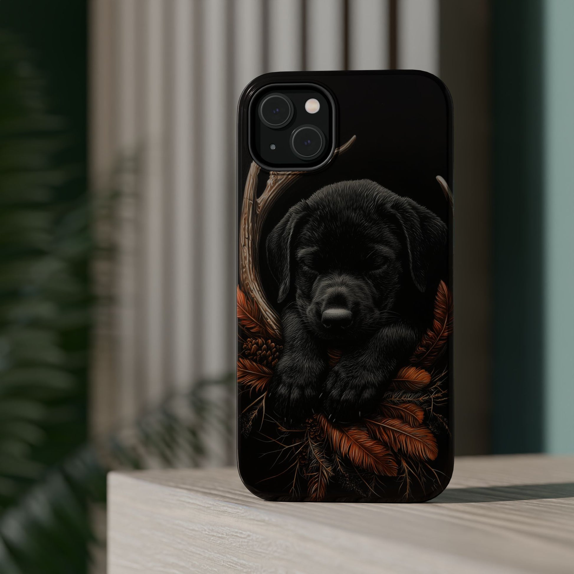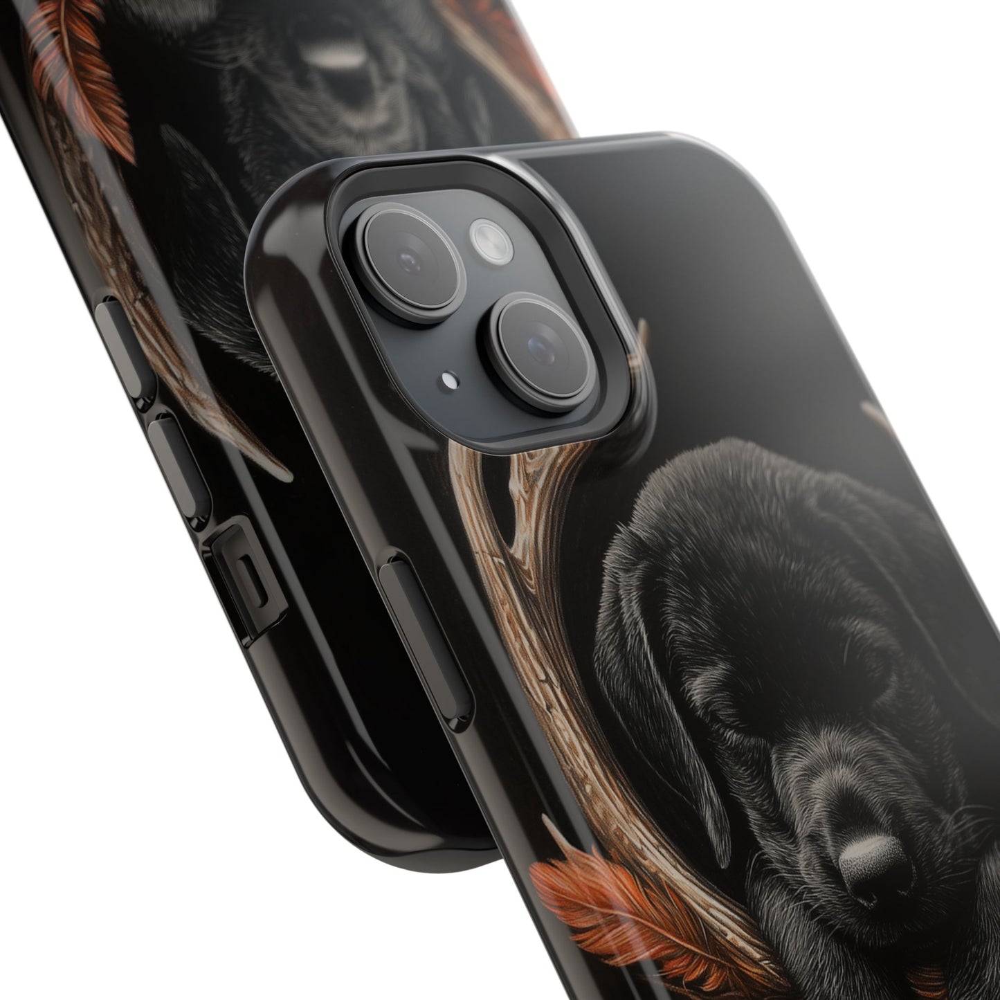 Charming Black Labrador Puppy on Feathers MagSafe iPhone Case