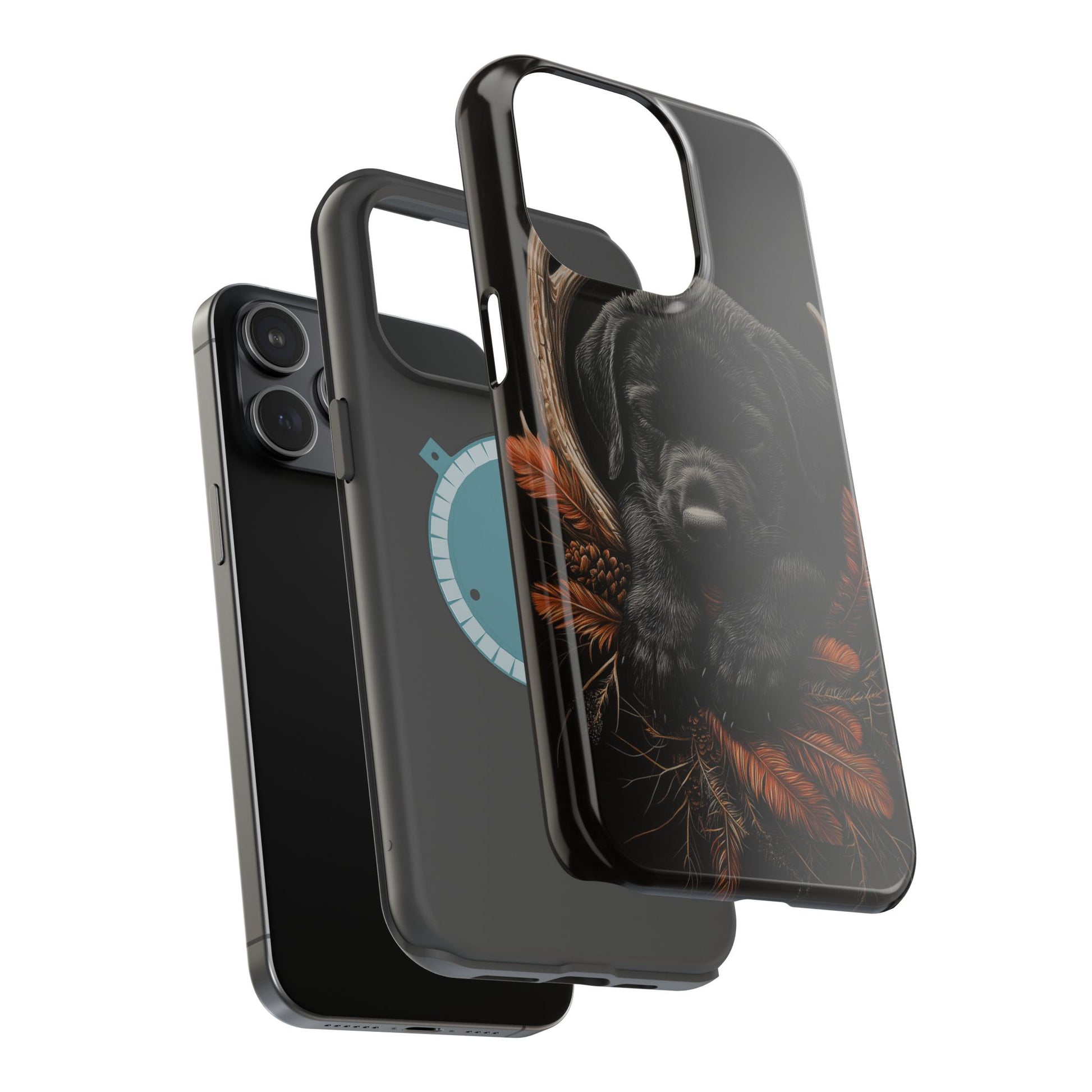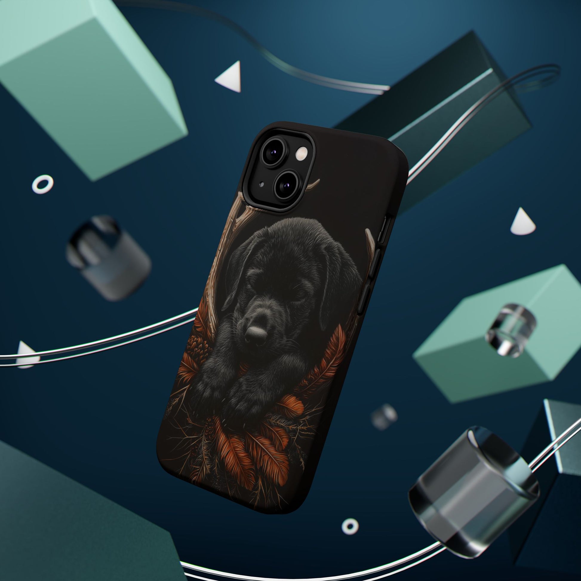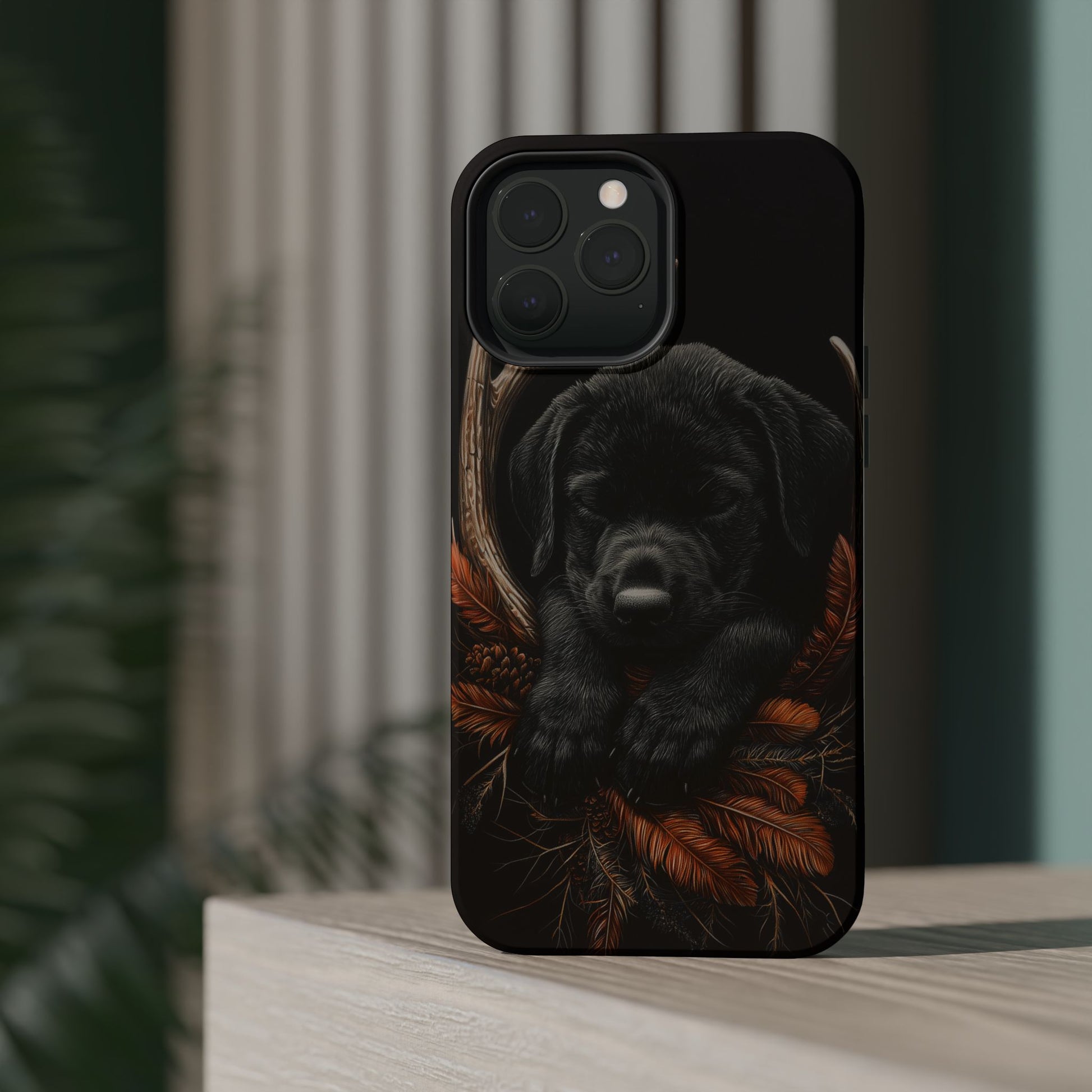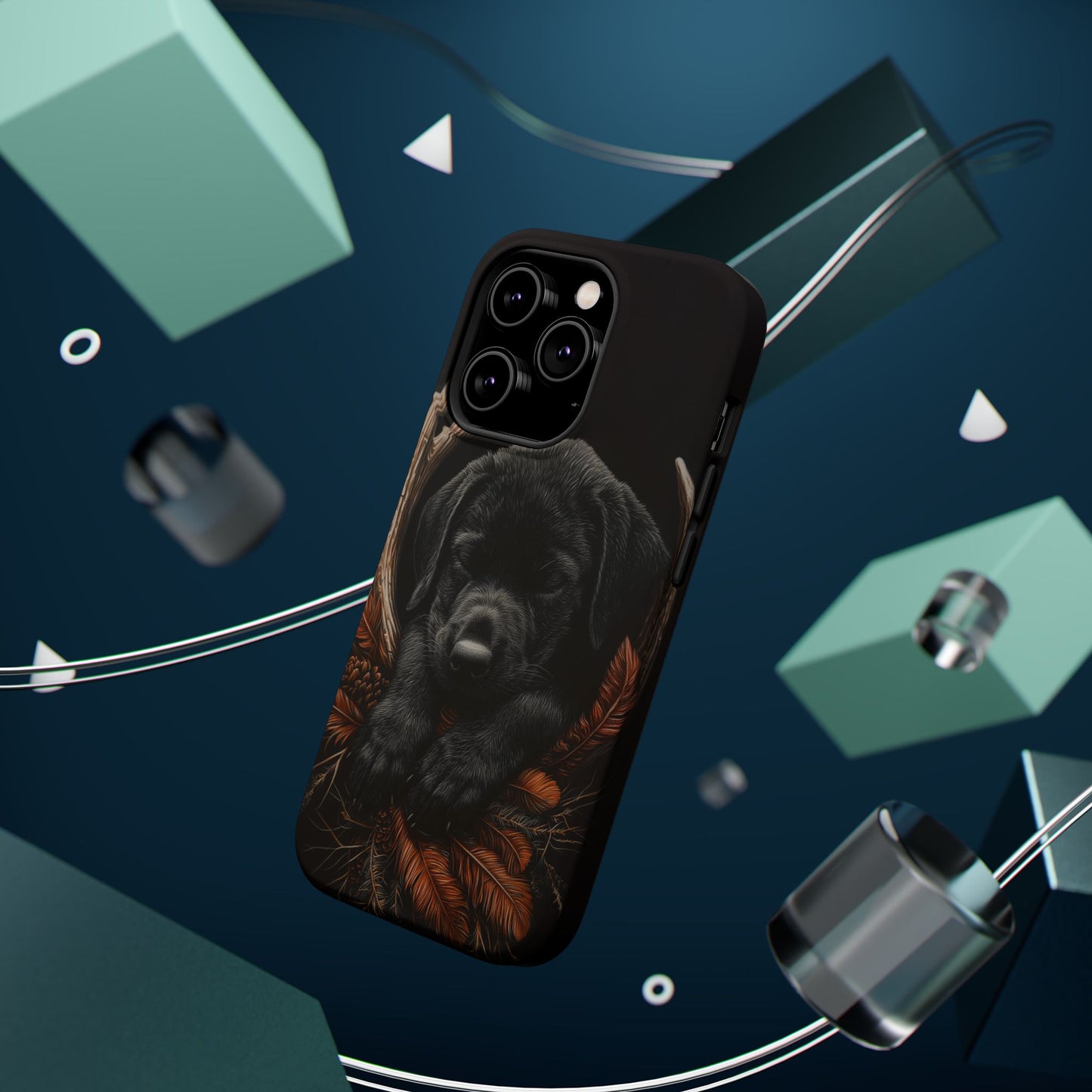 Elevate your MagSafe iPhone experience with the Charming Black Labrador Puppy on Feathers Case. Perfectly designed for seamless wireless charging and delightful aesthetics.