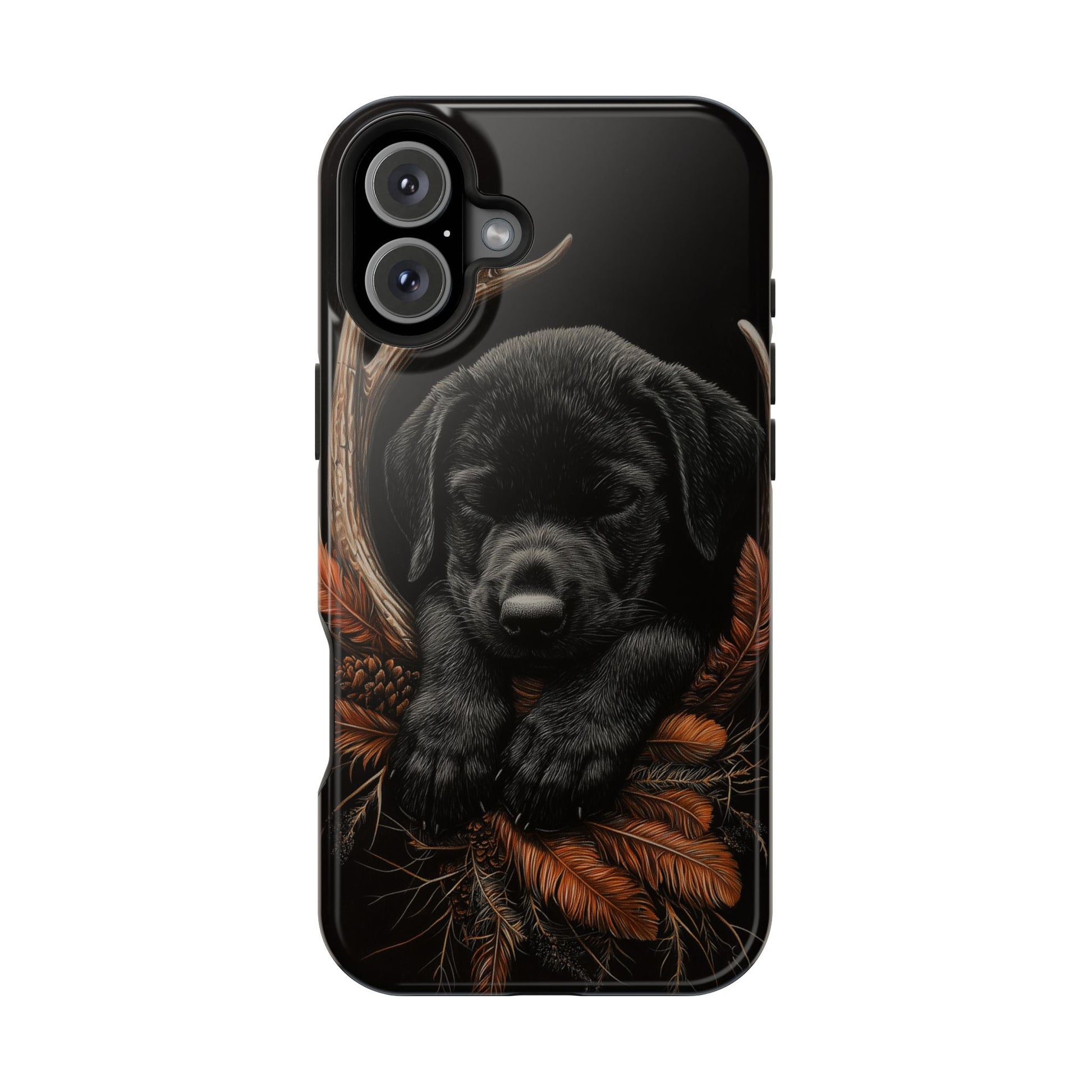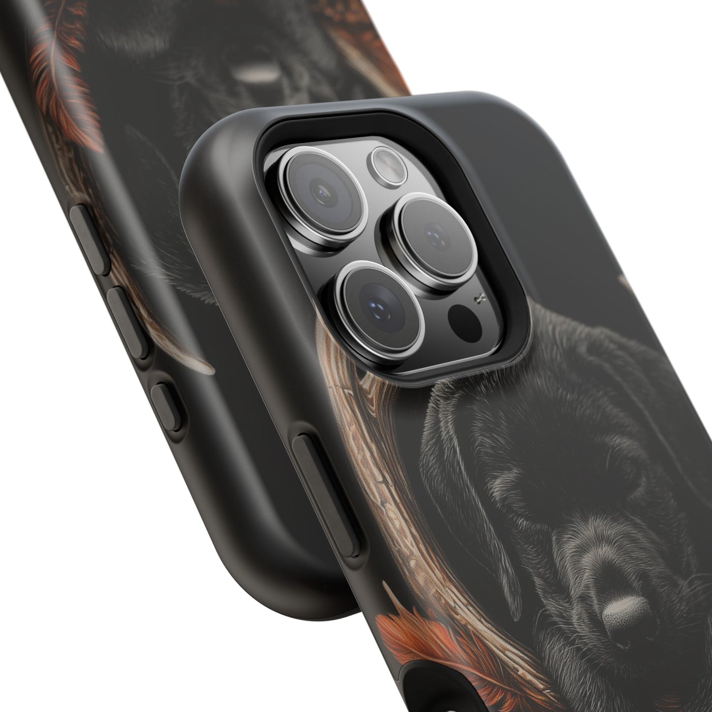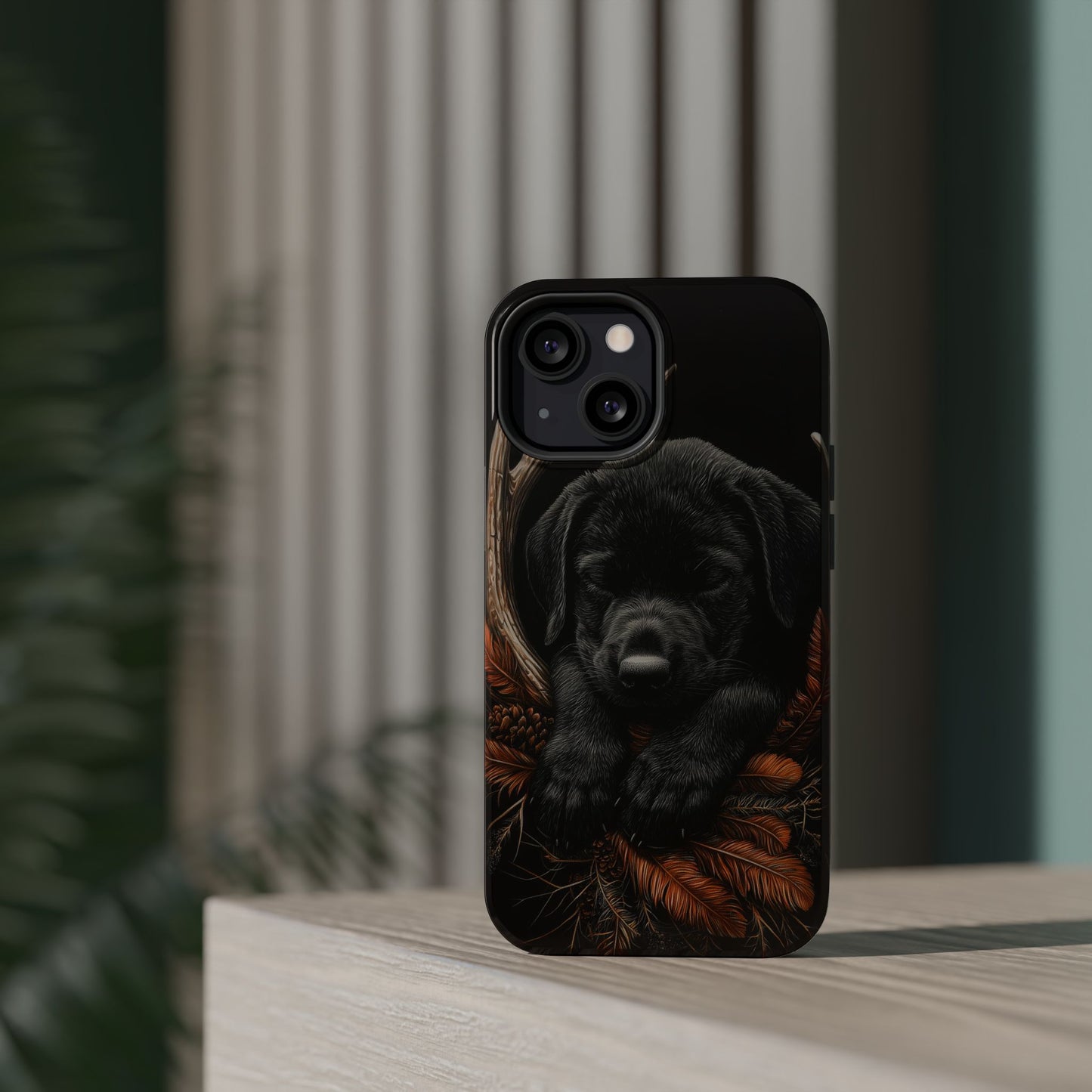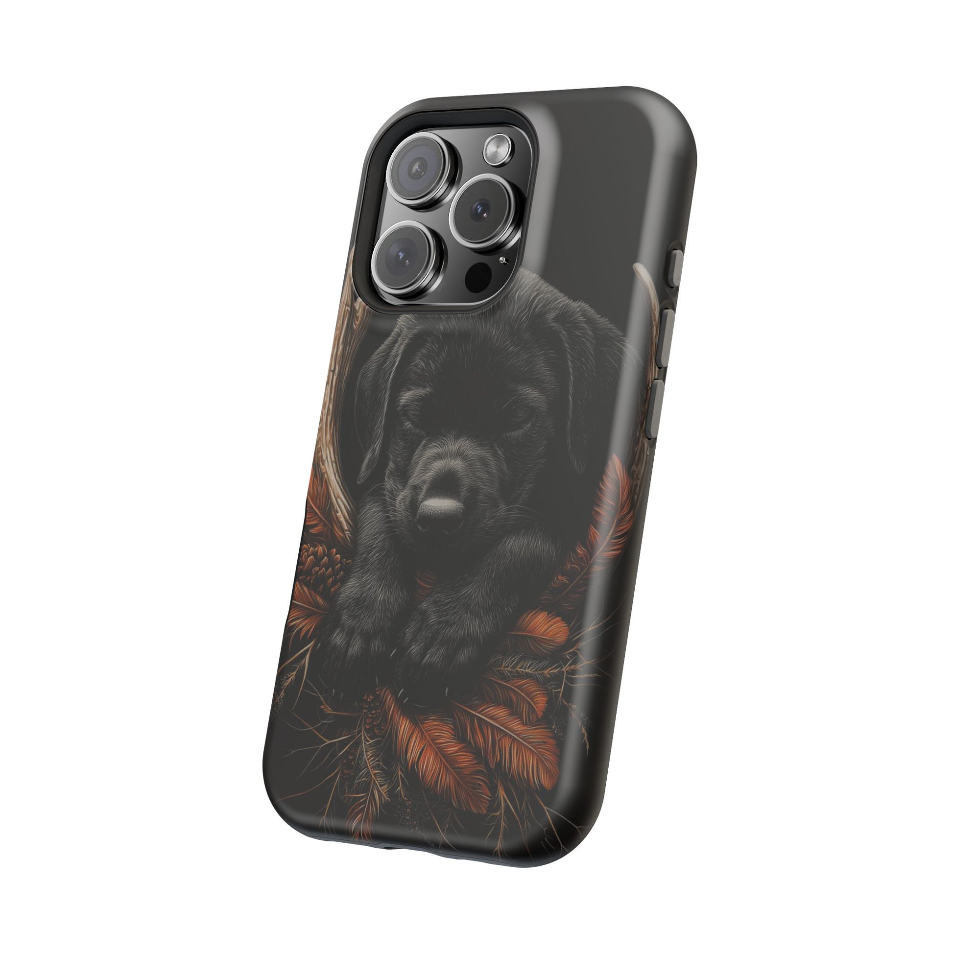 Elevate your MagSafe iPhone experience with the Charming Black Labrador Puppy on Feathers Case. Perfectly designed for seamless wireless charging and delightful aesthetics.