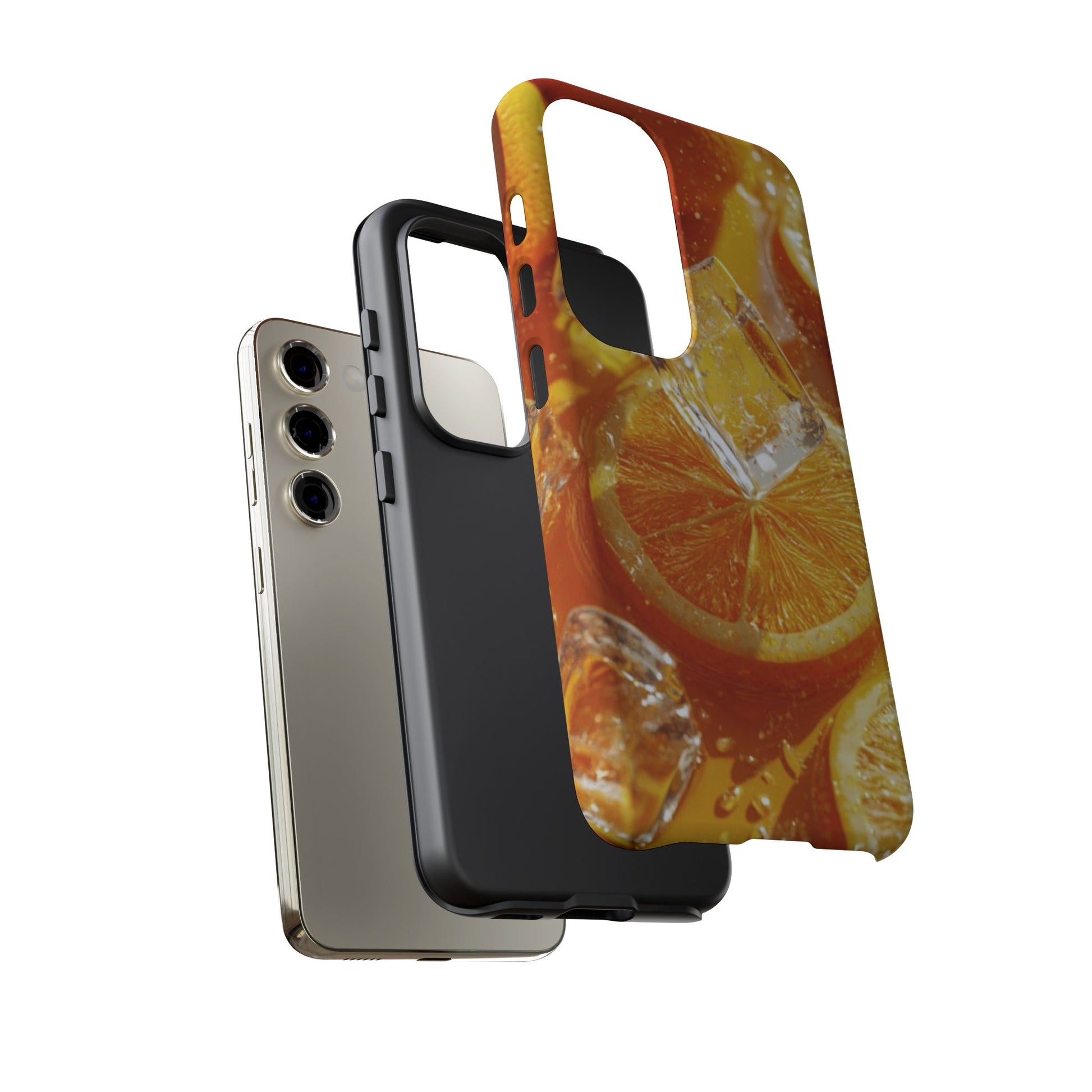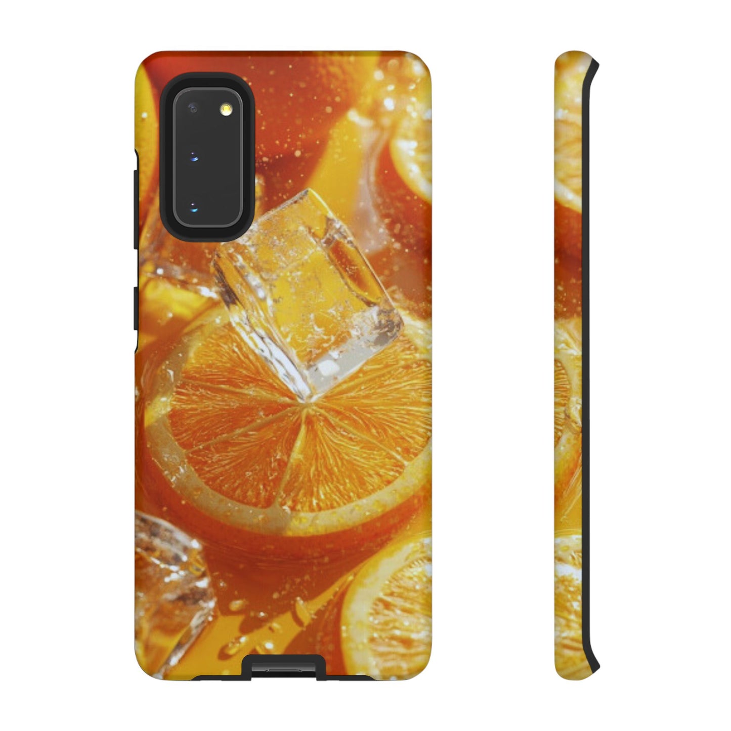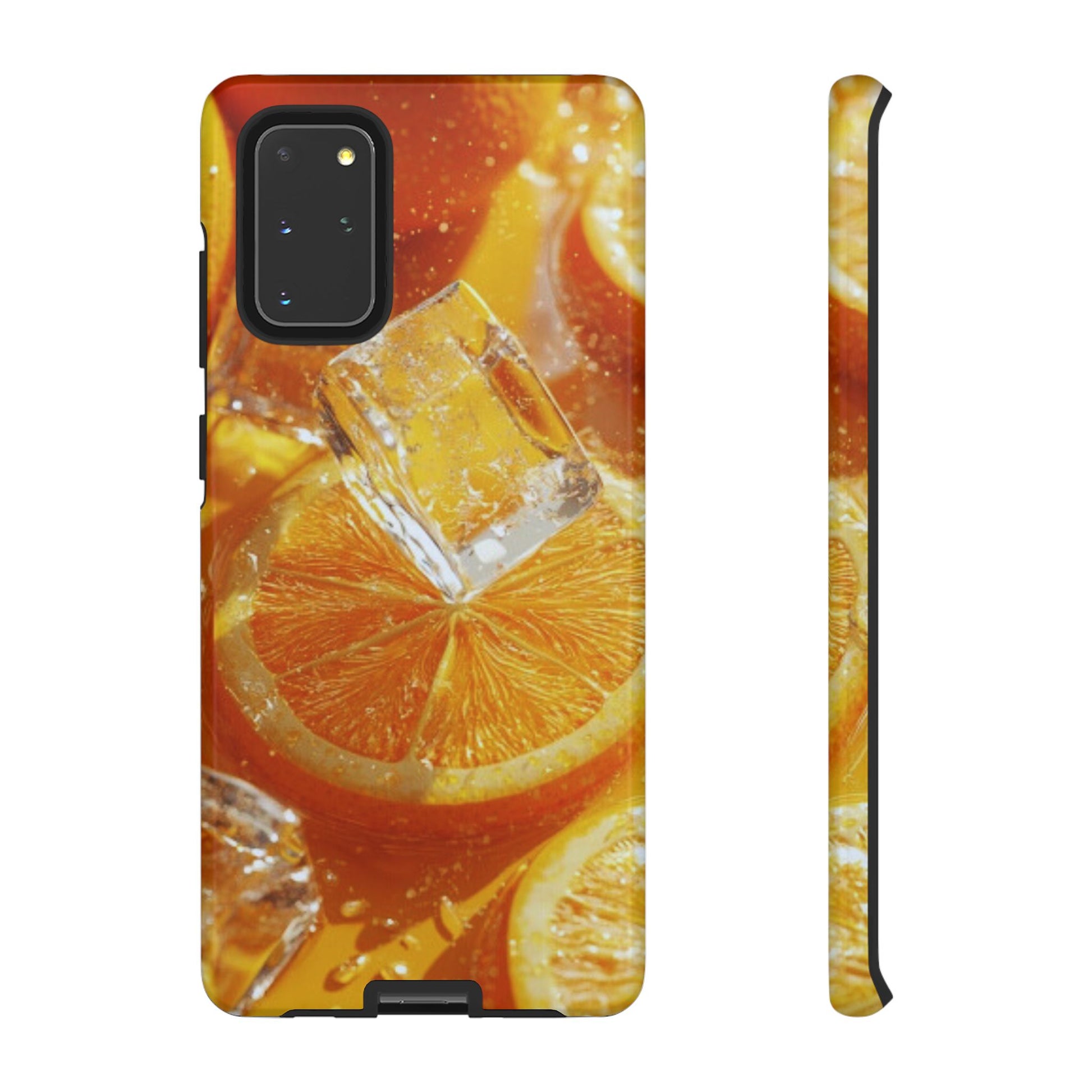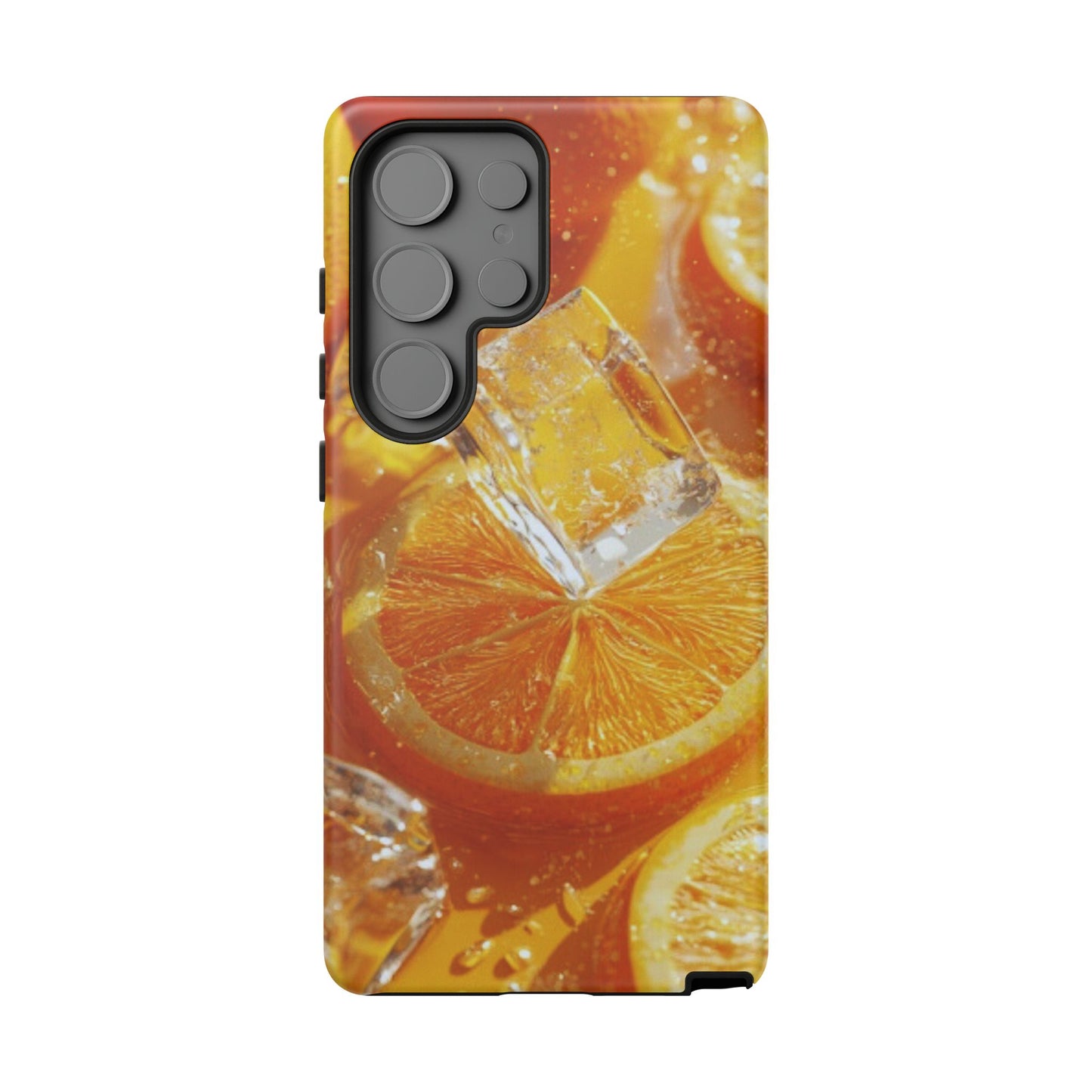 Brighten up your phone with the zesty vibes of our Citrus Orange Splash Samsung Galaxy  Case! Featuring a mouthwatering design of fresh orange slices surrounded by sparkling ice cubes, this case is perfect for those who love bold, vibrant colors and summer-inspired style. With its dual-layer protection, this case combines a shock-absorbing TPU inner lining and a sturdy polycarbonate outer shell, ensuring your phone stays protected from everyday bumps and drops while showcasing this refreshing and fun design.