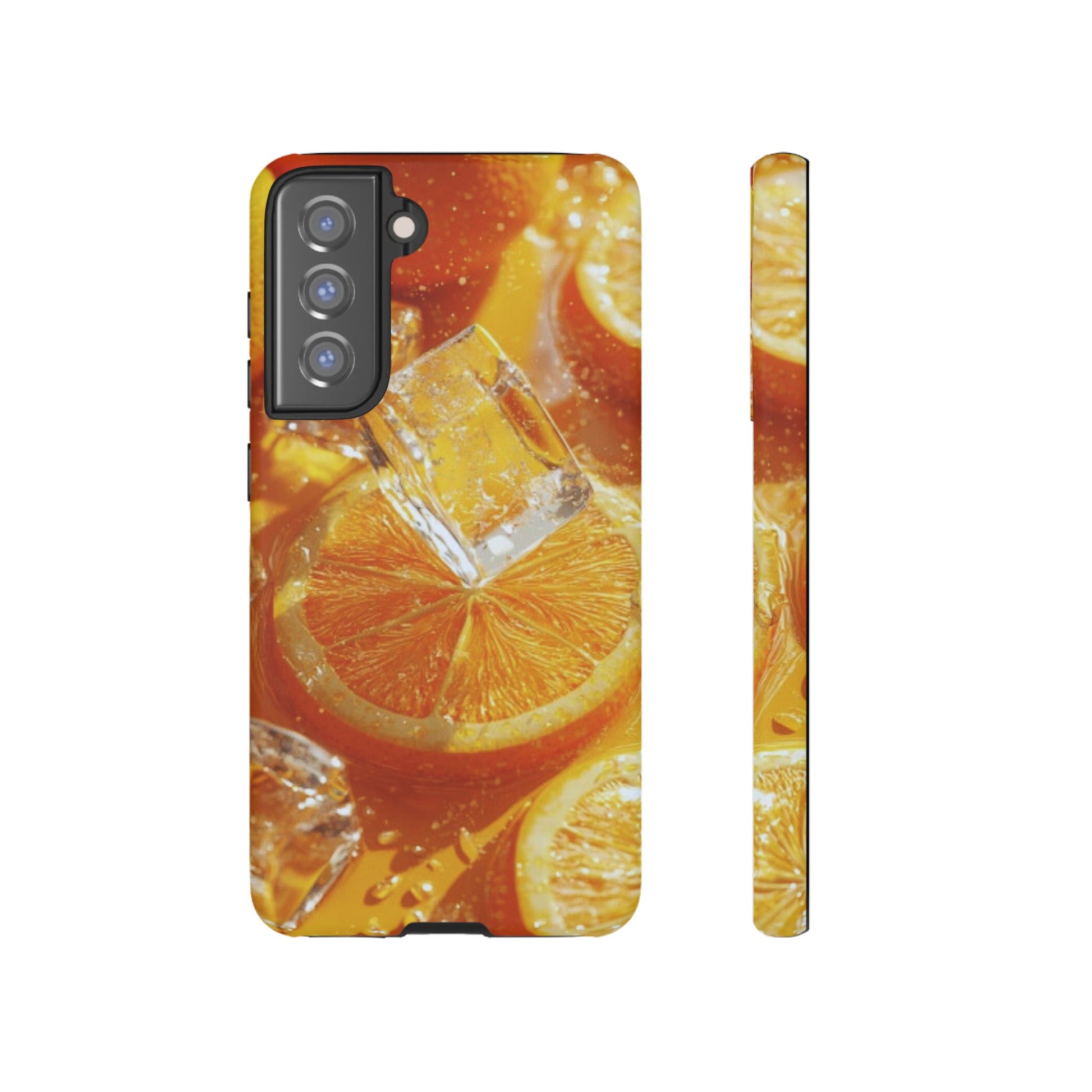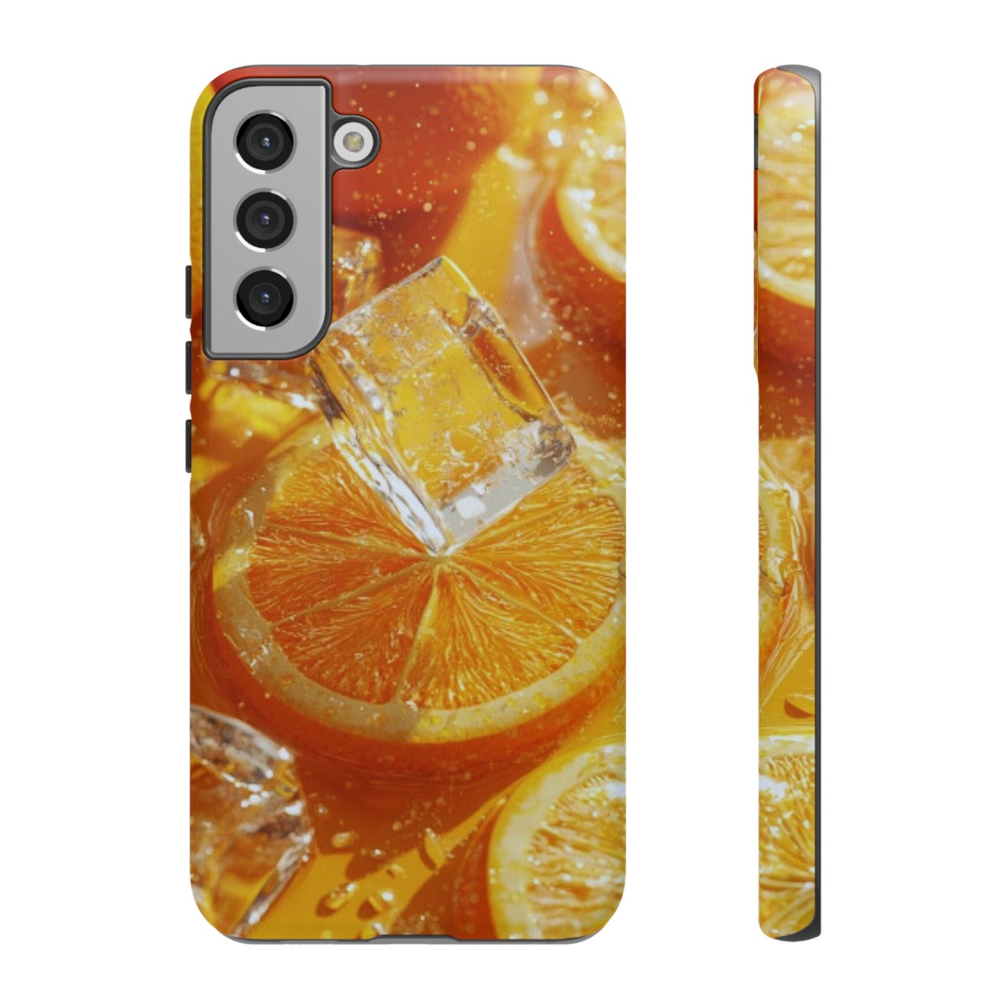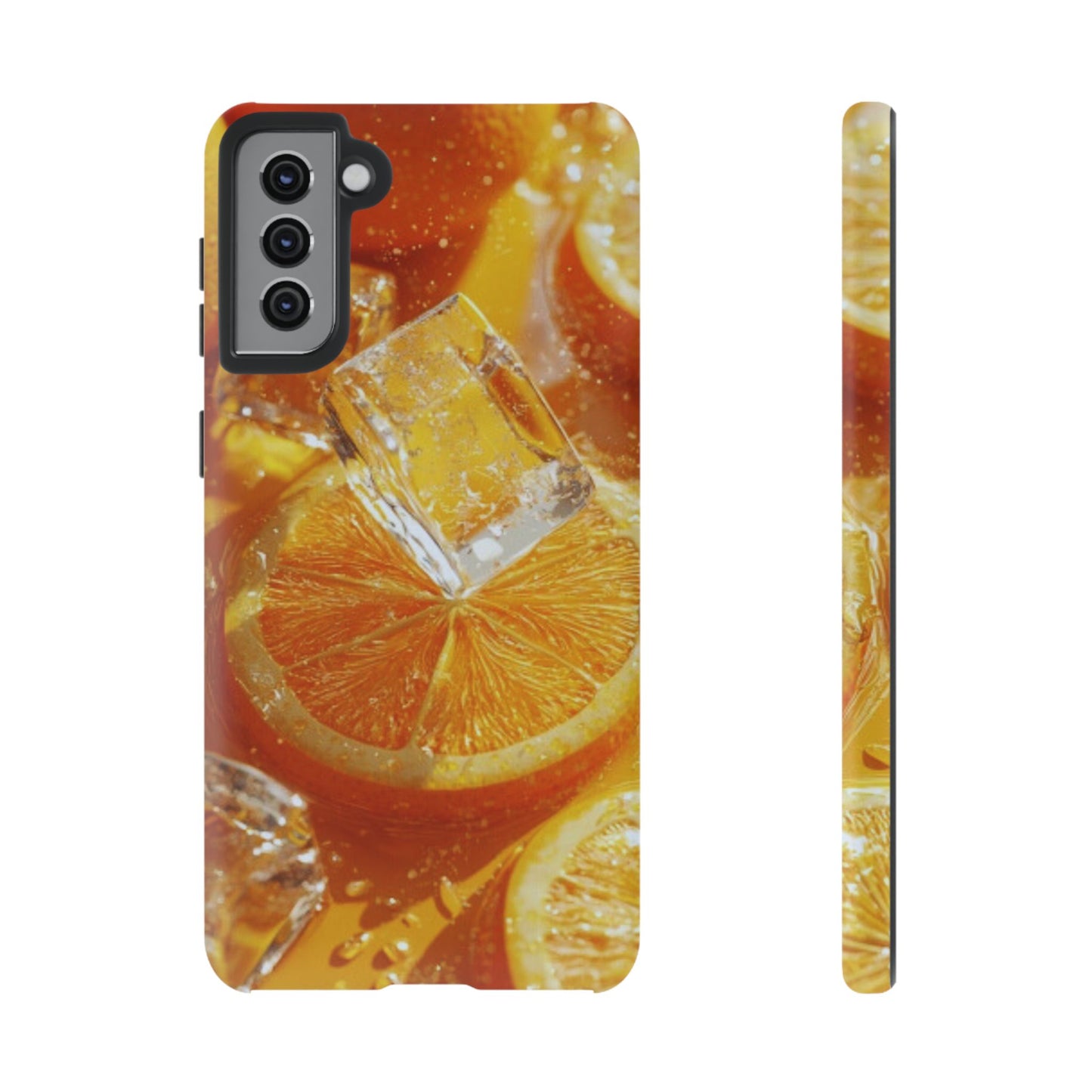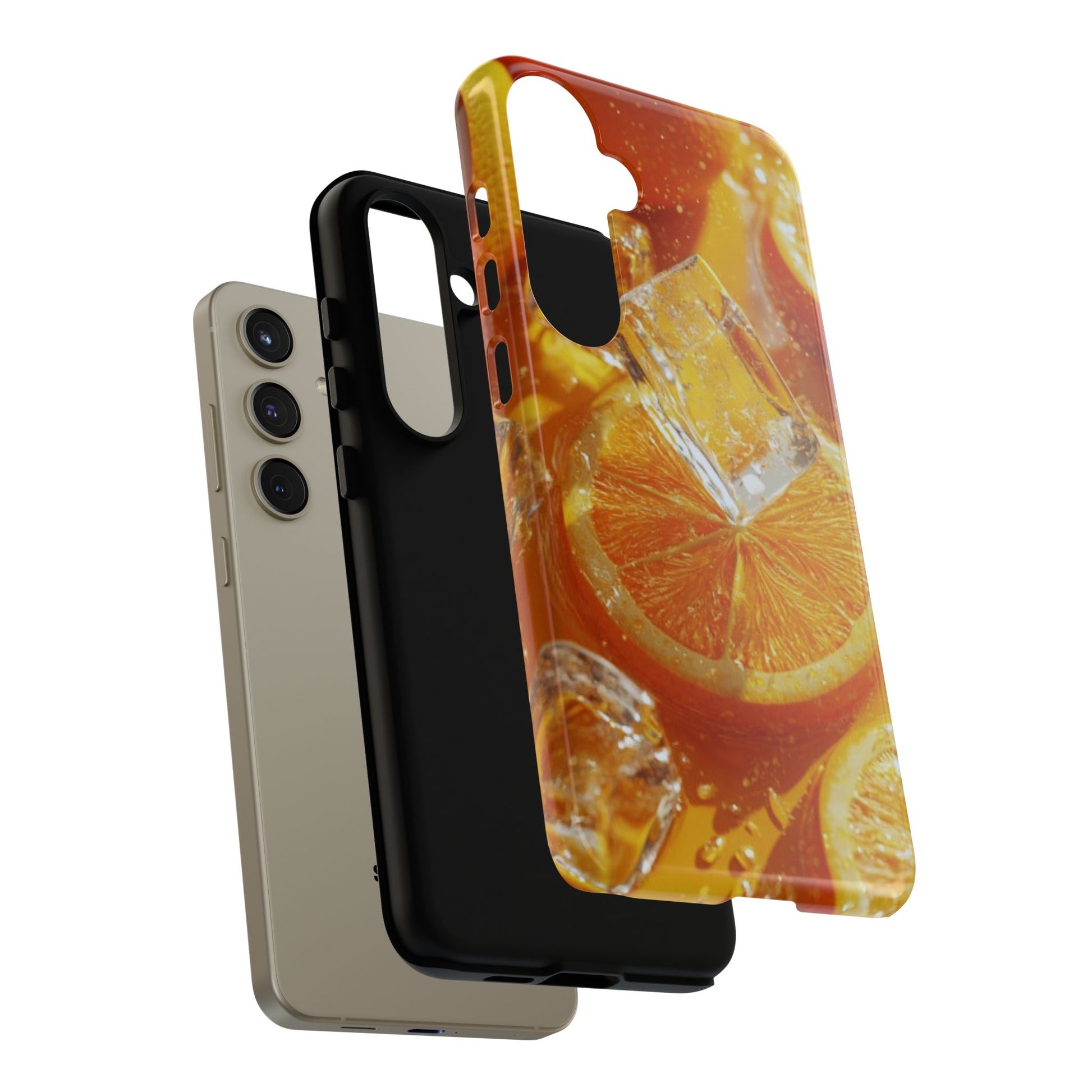 Brighten up your phone with the zesty vibes of our Citrus Orange Splash Samsung Galaxy  Case! Featuring a mouthwatering design of fresh orange slices surrounded by sparkling ice cubes, this case is perfect for those who love bold, vibrant colors and summer-inspired style. With its dual-layer protection, this case combines a shock-absorbing TPU inner lining and a sturdy polycarbonate outer shell, ensuring your phone stays protected from everyday bumps and drops while showcasing this refreshing and fun design.