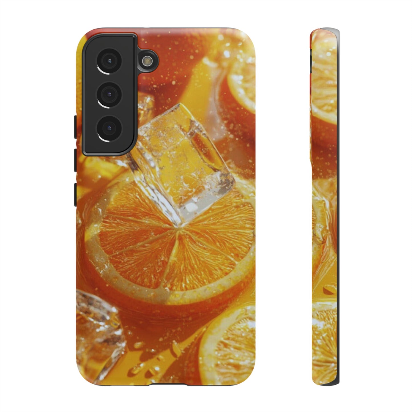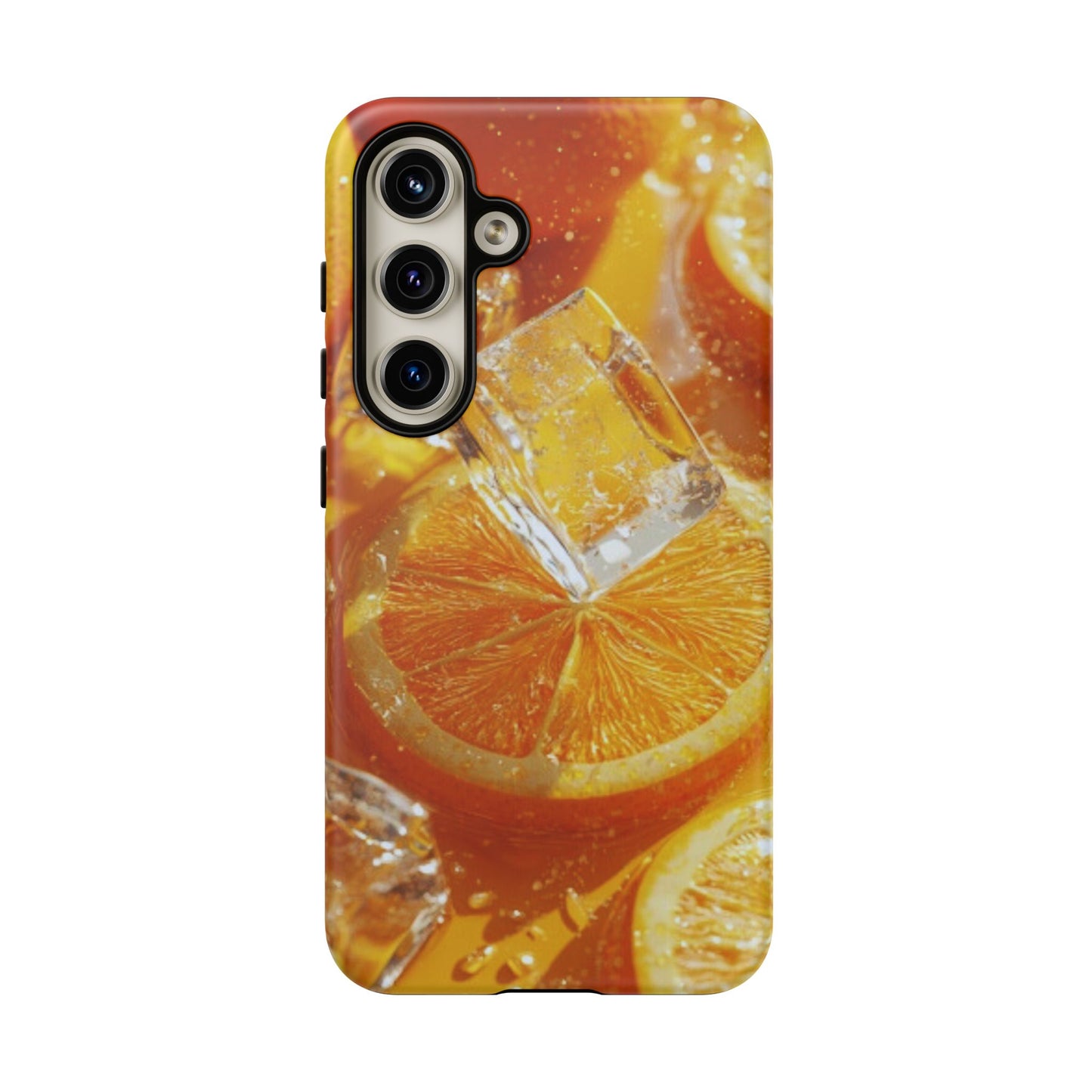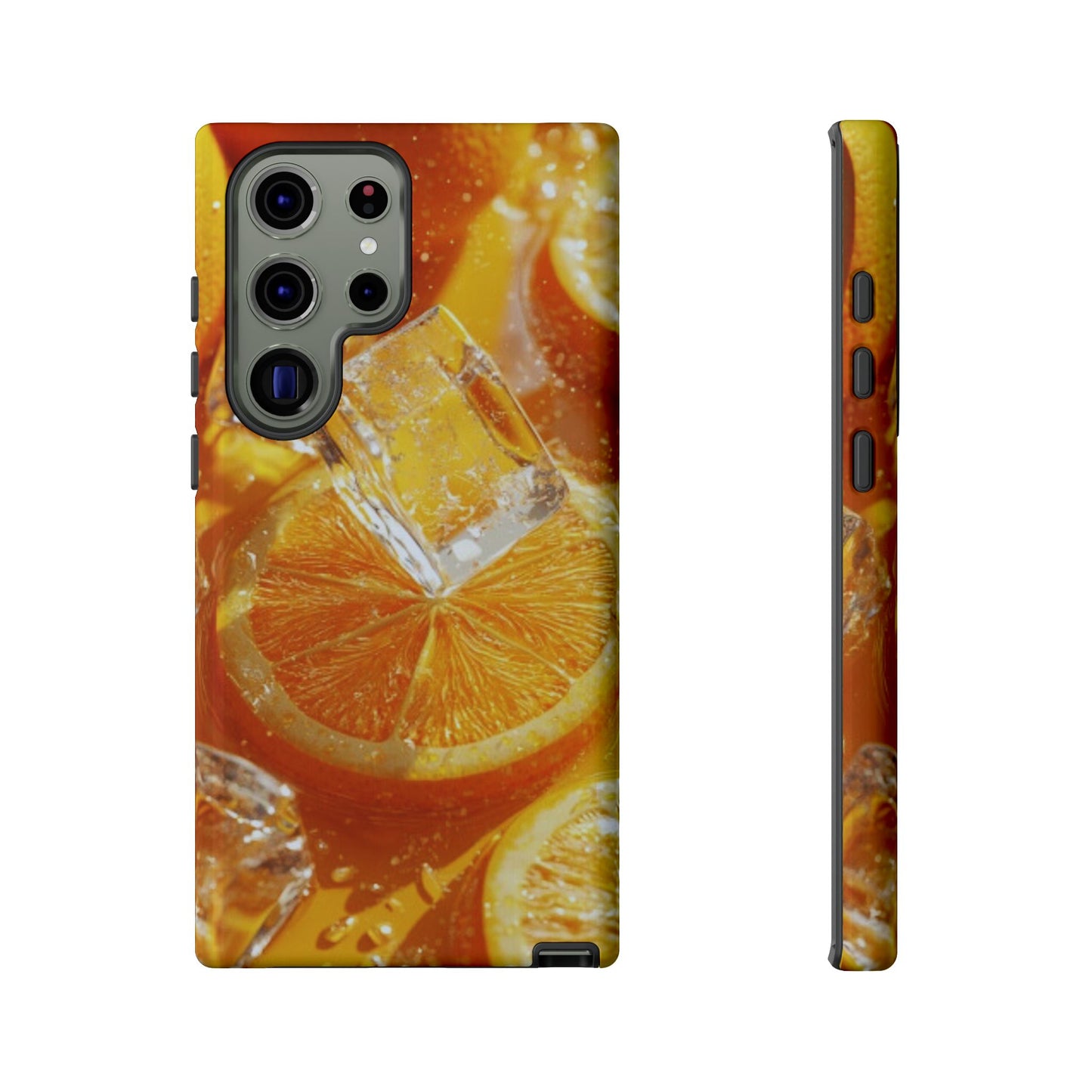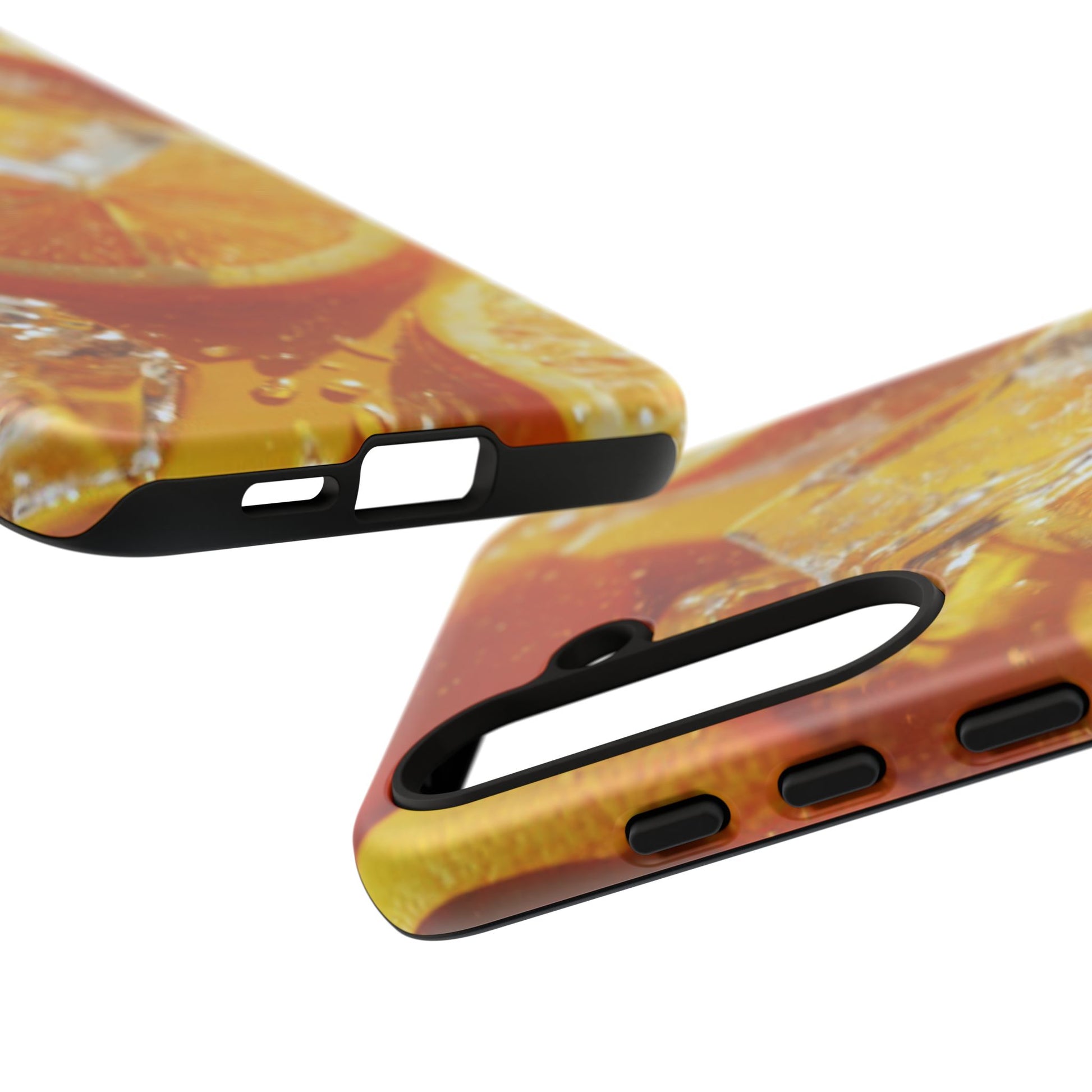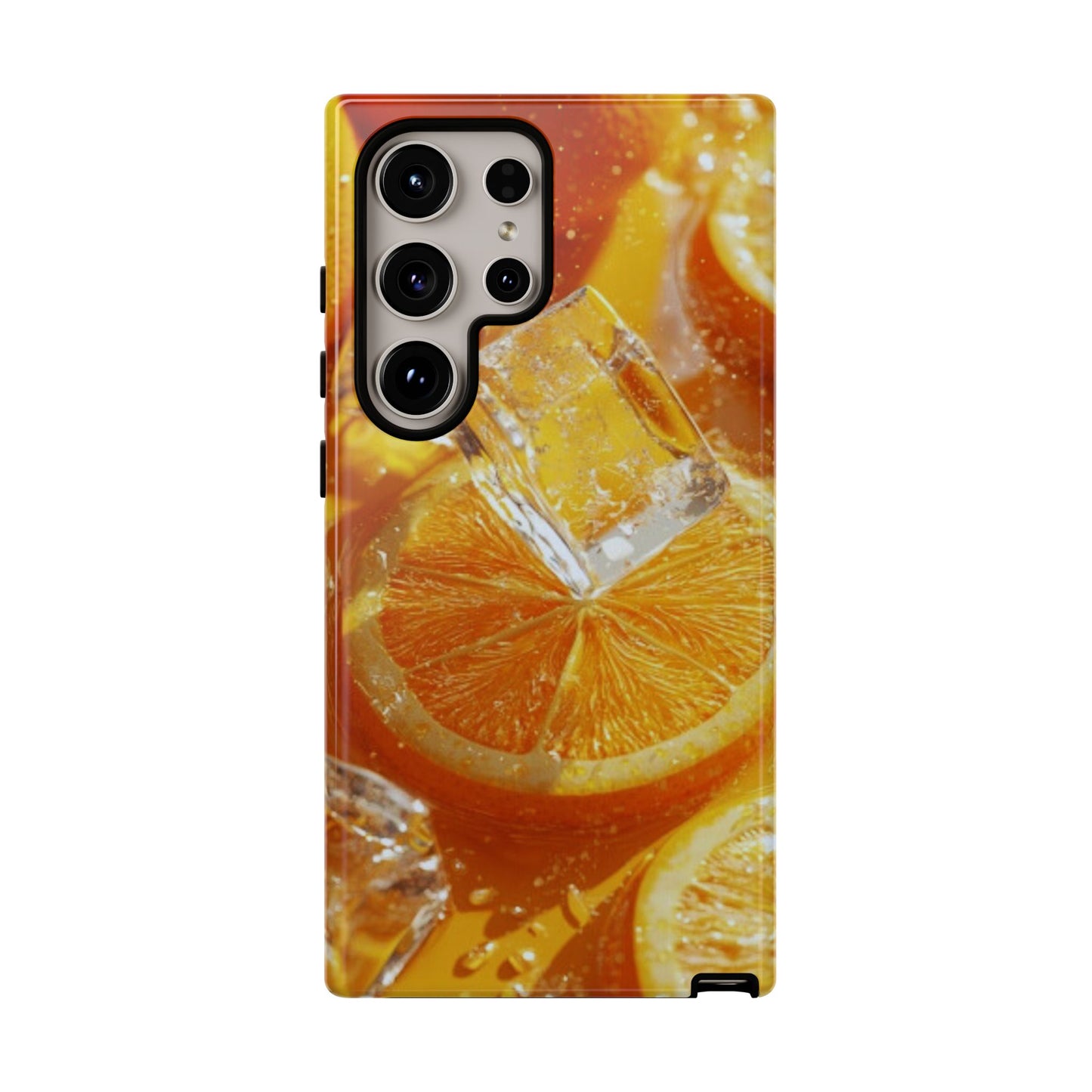Brighten up your phone with the zesty vibes of our Citrus Orange Splash Samsung Galaxy  Case! Featuring a mouthwatering design of fresh orange slices surrounded by sparkling ice cubes, this case is perfect for those who love bold, vibrant colors and summer-inspired style. With its dual-layer protection, this case combines a shock-absorbing TPU inner lining and a sturdy polycarbonate outer shell, ensuring your phone stays protected from everyday bumps and drops while showcasing this refreshing and fun design.