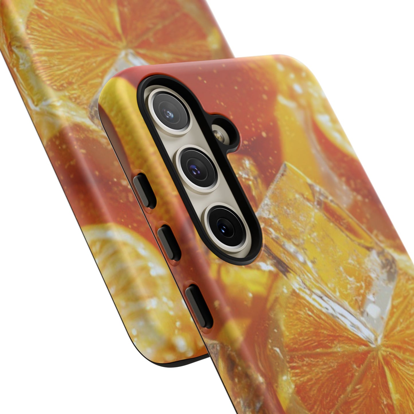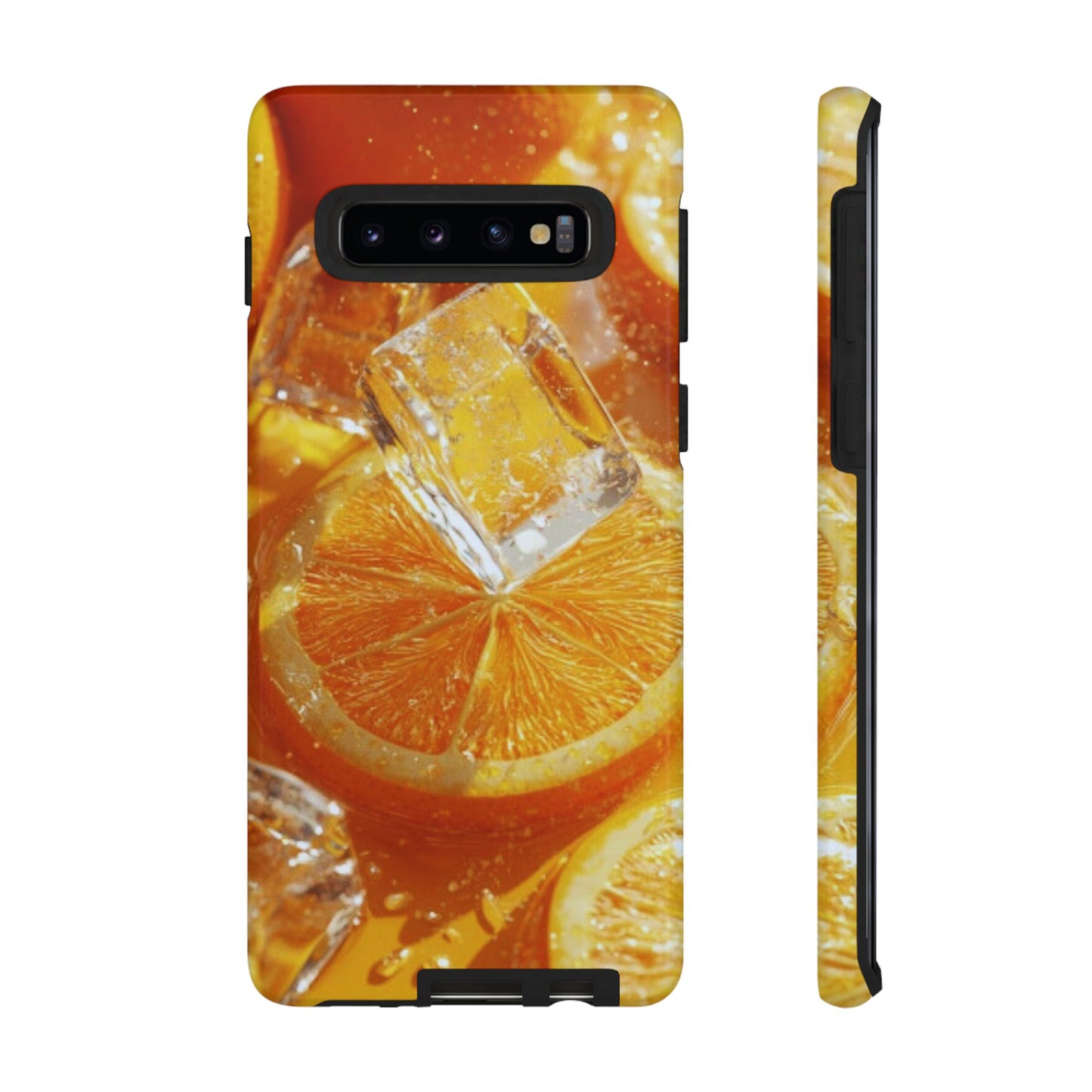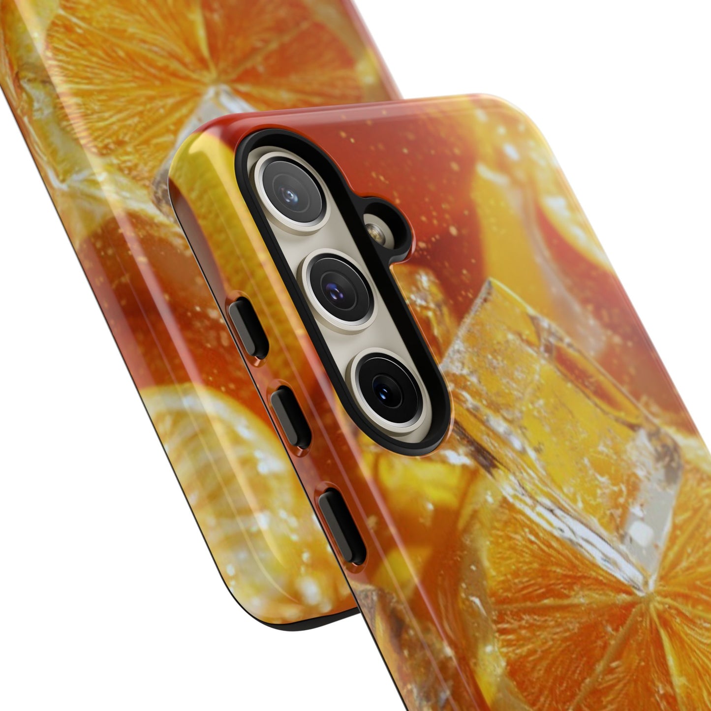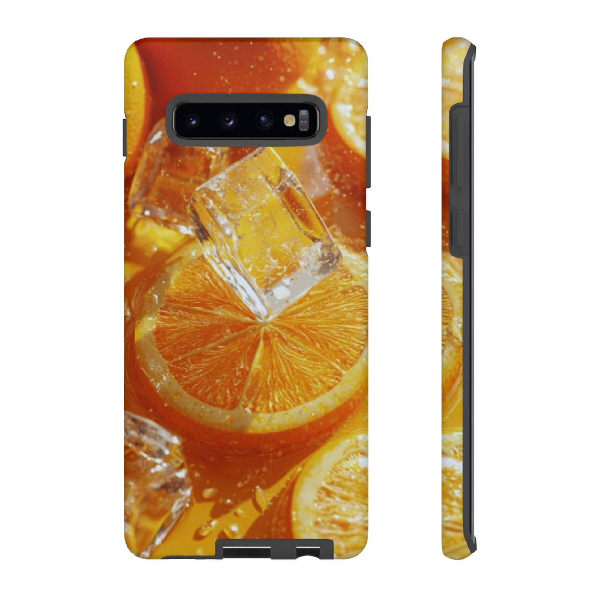 Brighten up your phone with the zesty vibes of our Citrus Orange Splash Samsung Galaxy  Case! Featuring a mouthwatering design of fresh orange slices surrounded by sparkling ice cubes, this case is perfect for those who love bold, vibrant colors and summer-inspired style. With its dual-layer protection, this case combines a shock-absorbing TPU inner lining and a sturdy polycarbonate outer shell, ensuring your phone stays protected from everyday bumps and drops while showcasing this refreshing and fun design.