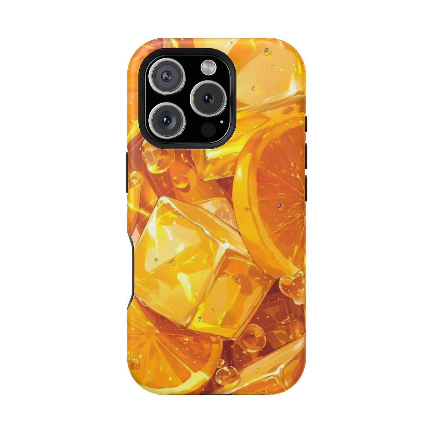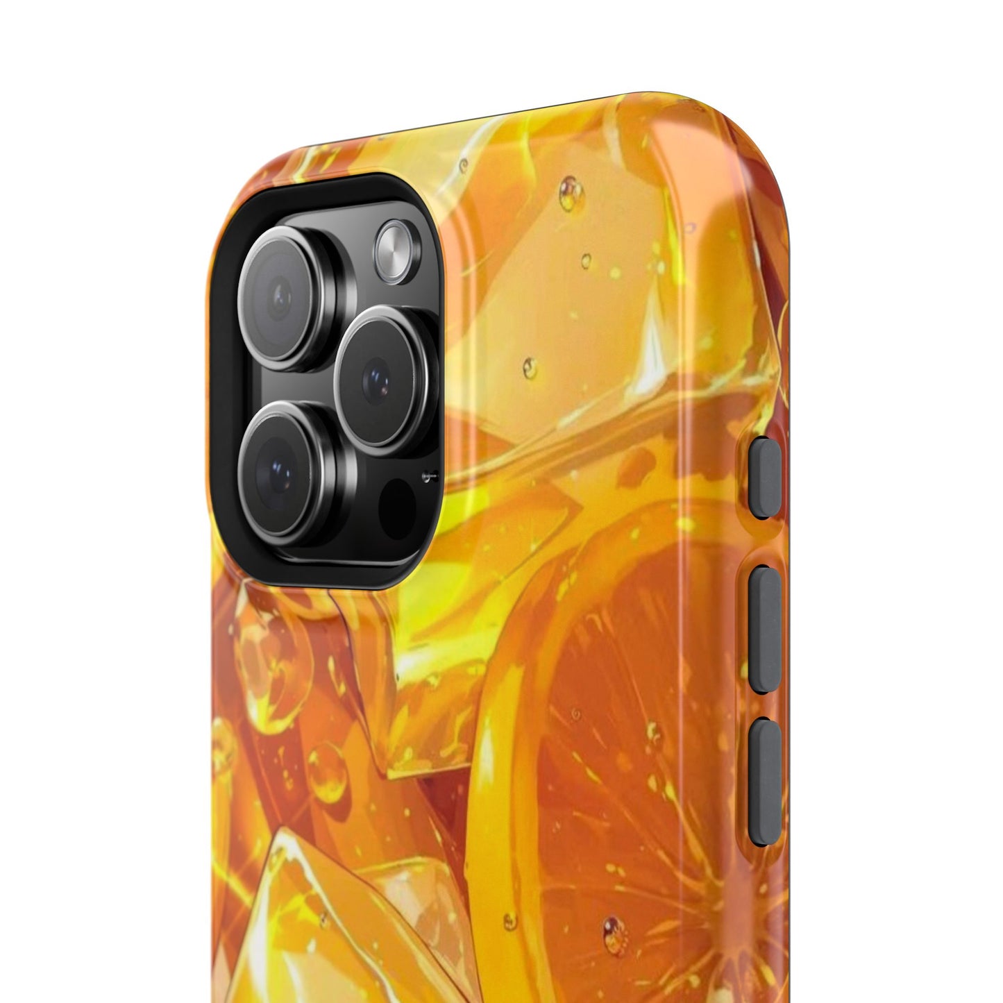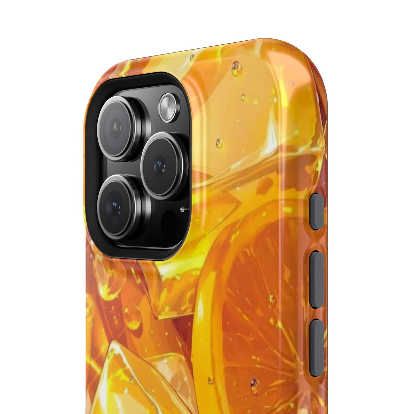 Citrus Splash MagSafe iPhone Case – Bright Orange Slices & Ice, Dual-Layer Protection