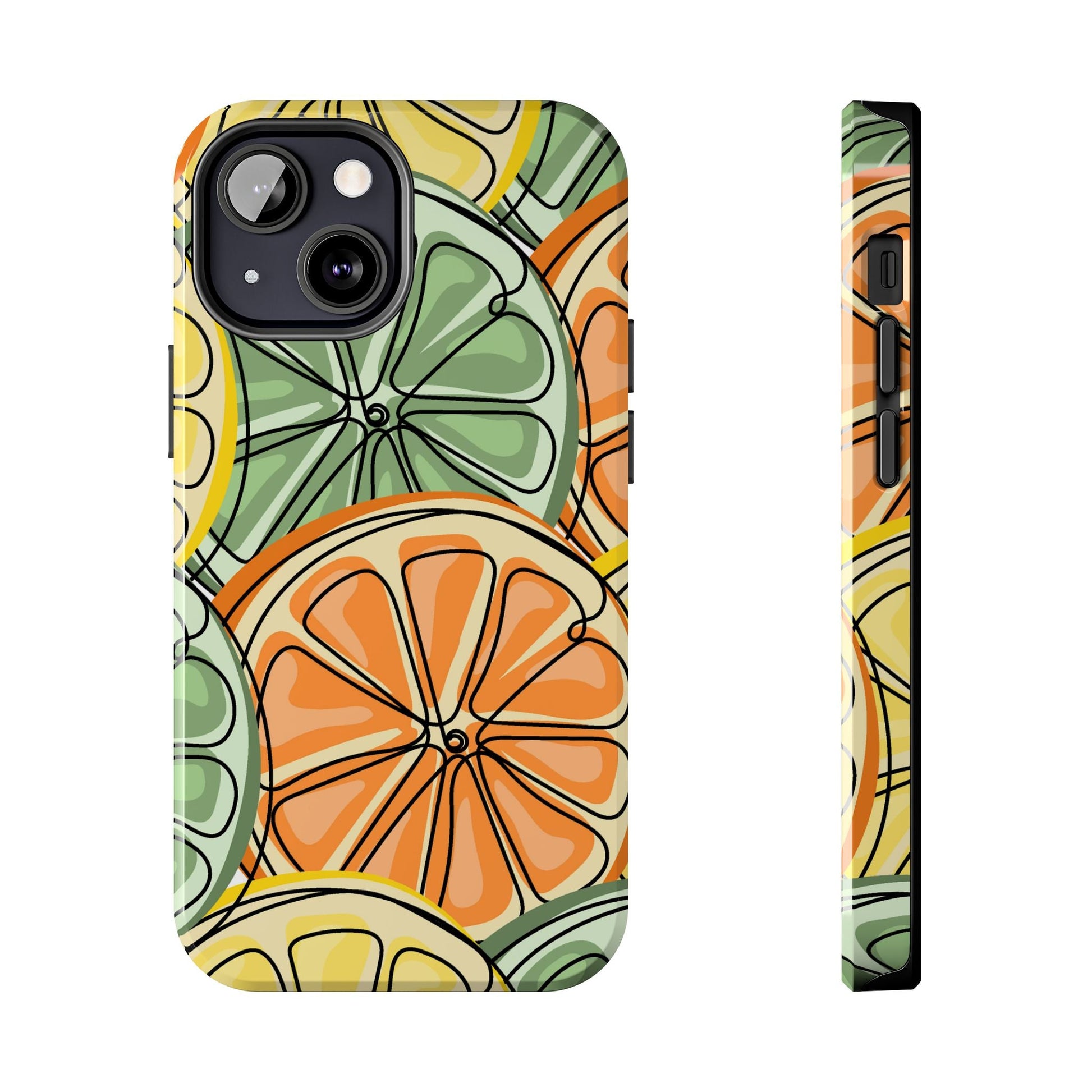 Brighten up your phone with our Citrus Zest Tough iPhone Case, featuring a bold and modern design of lime, lemon, and orange slices in vivid green, yellow, and orange hues. This playful pattern pops with its abstract, hand-drawn style, adding a fun, fresh touch to your daily tech. Built with dual-layer shockproof protection, it keeps your phone safe from drops, bumps, and scratches while offering a burst of color and style wherever you go.