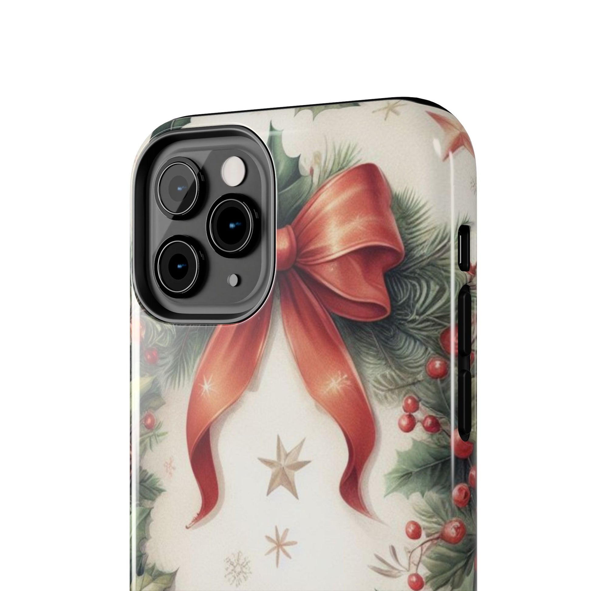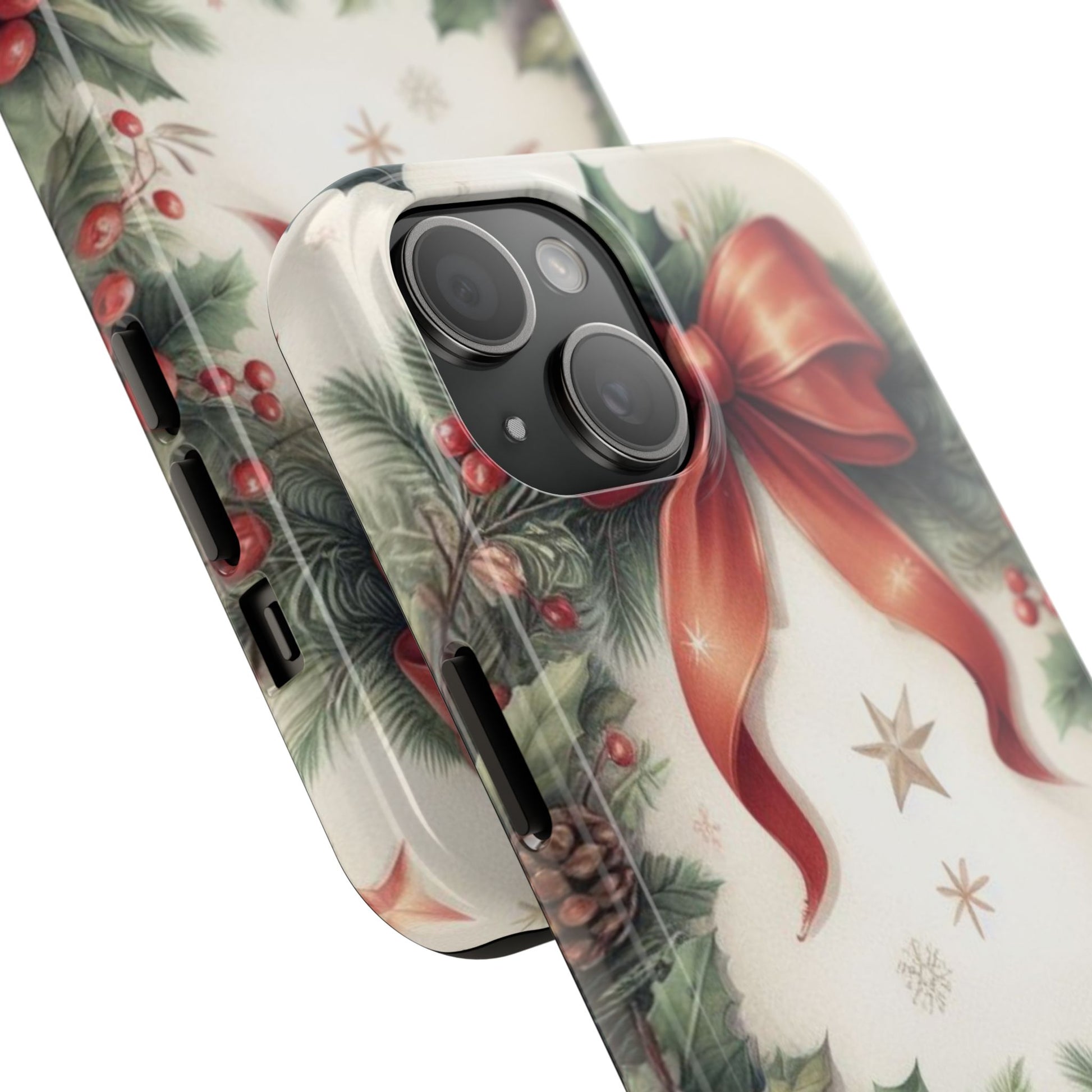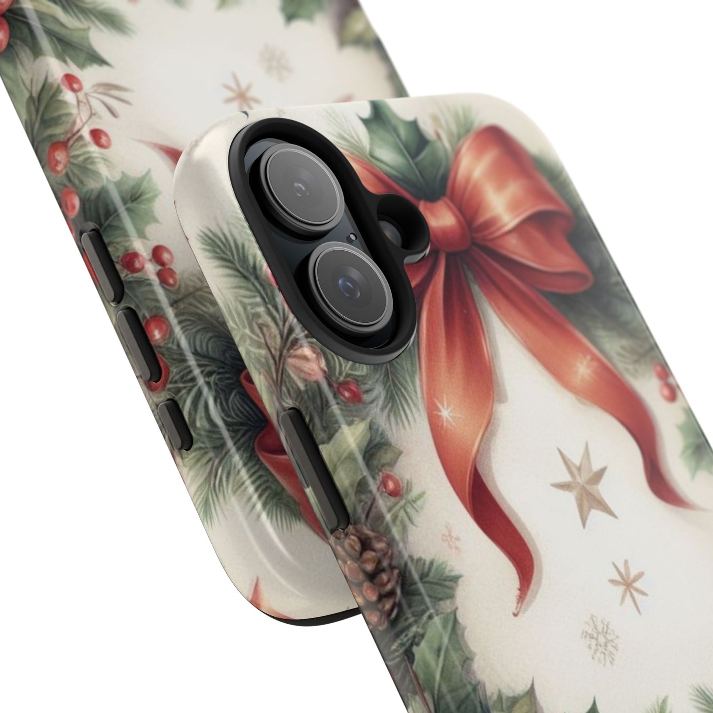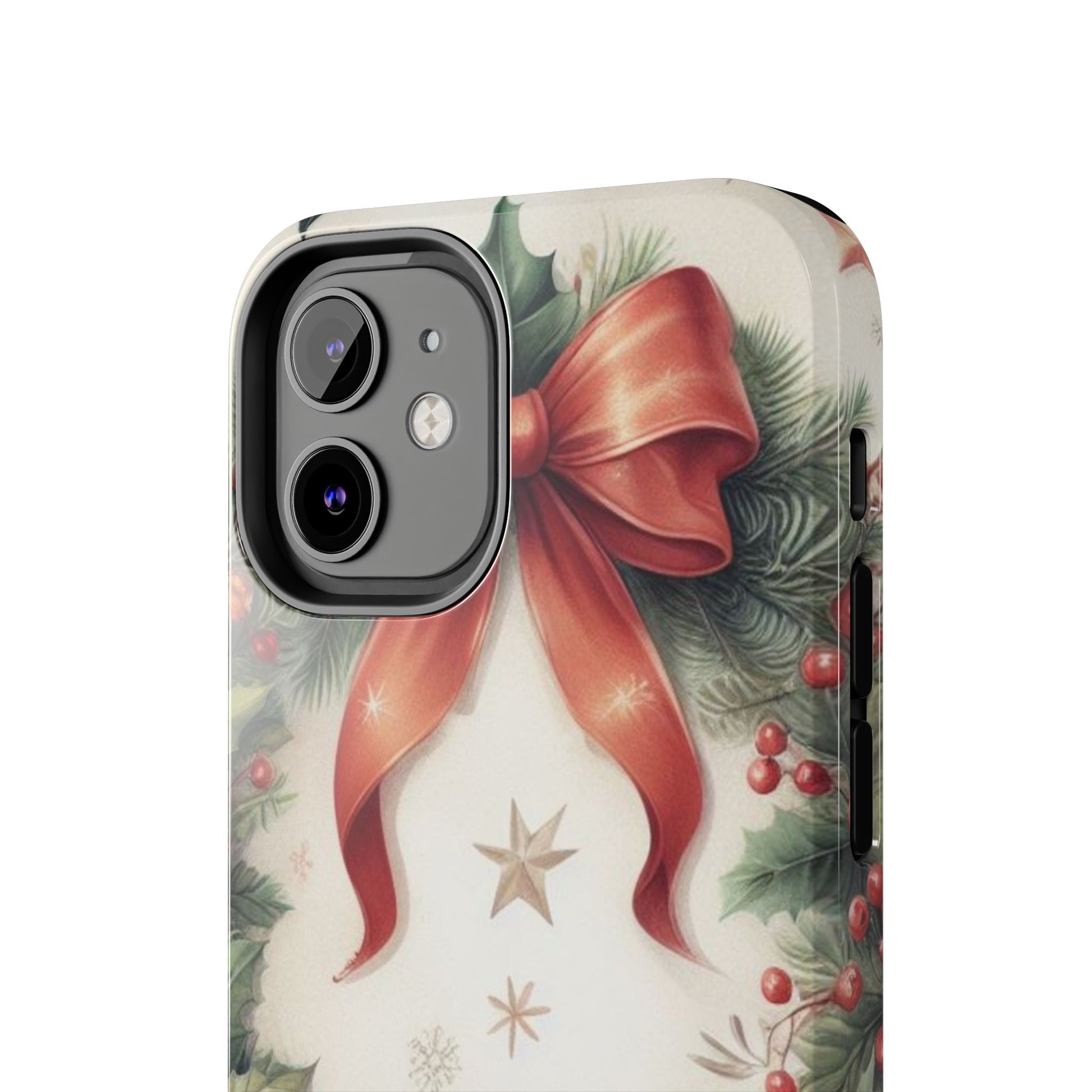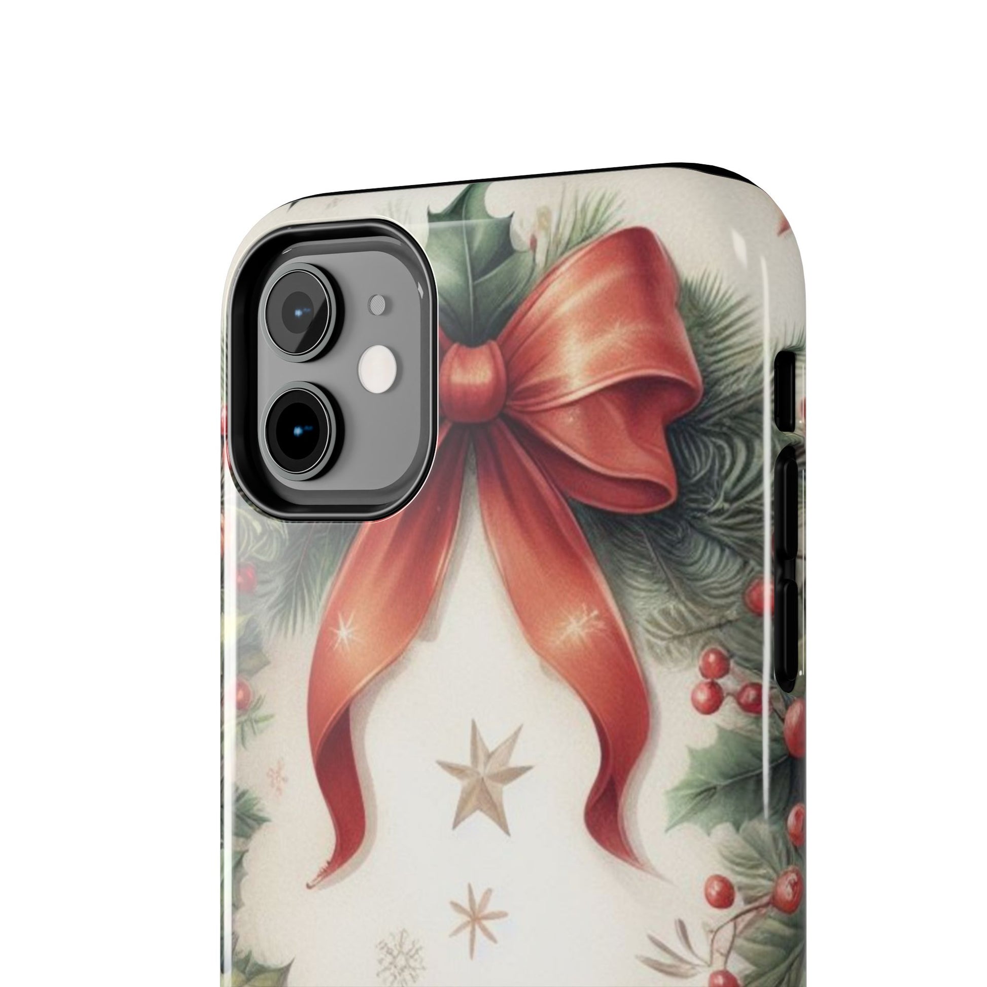 Wrap your phone in timeless holiday elegance with our Classic Christmas Wreath iPhone Case! Featuring a beautifully illustrated wreath adorned with red ribbons, pine cones, ornaments, holly berries, and evergreen branches, this case brings festive charm and a touch of vintage style. Perfect fo...