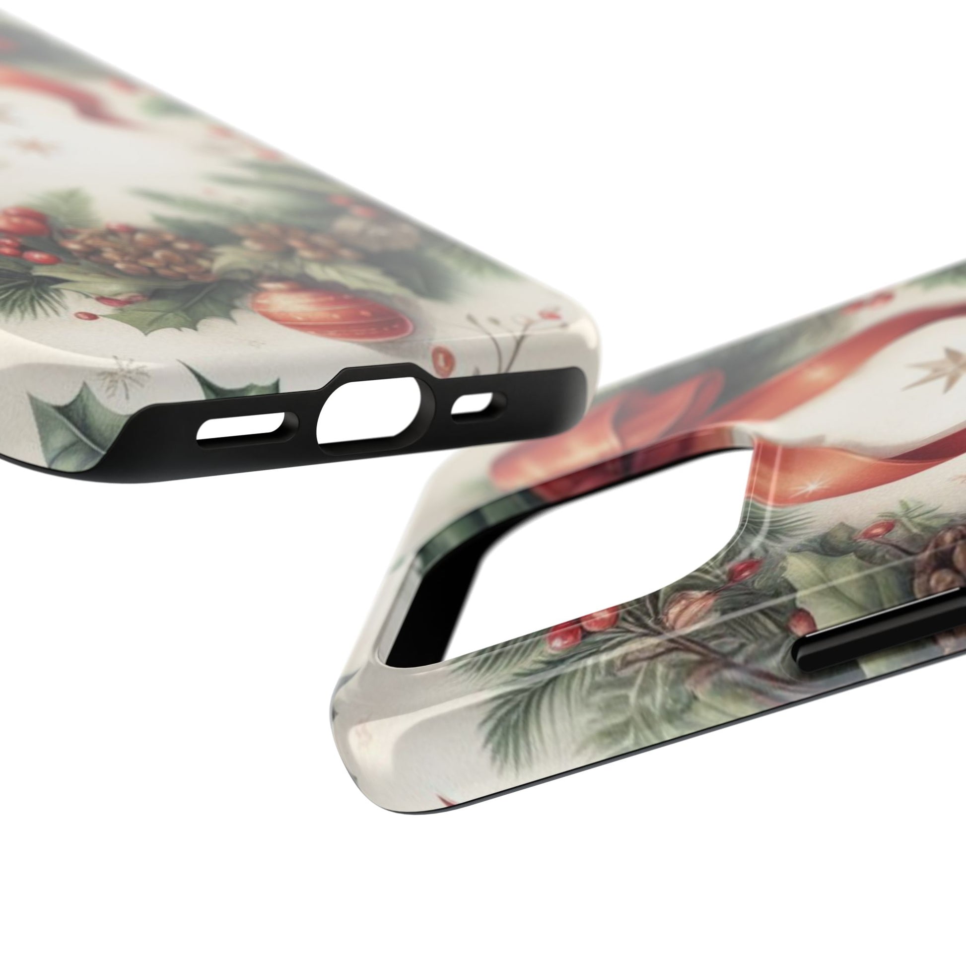 Wrap your phone in timeless holiday elegance with our Classic Christmas Wreath iPhone Case! Featuring a beautifully illustrated wreath adorned with red ribbons, pine cones, ornaments, holly berries, and evergreen branches, this case brings festive charm and a touch of vintage style. Perfect for getting into the holiday spirit, the intricate details and soft, warm colors make it a stunning seasonal accessory. Made from sturdy materials, it protects your phone from everyday bumps and scratches while adding a touch of Christmas cheer. Celebrate the season in style with this beautifully crafted case!