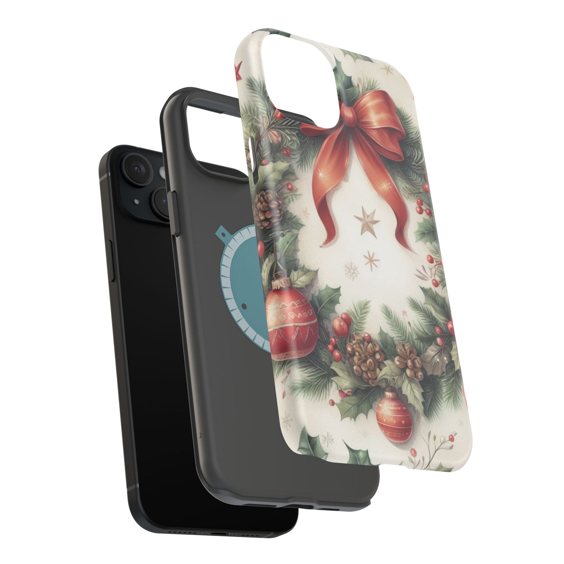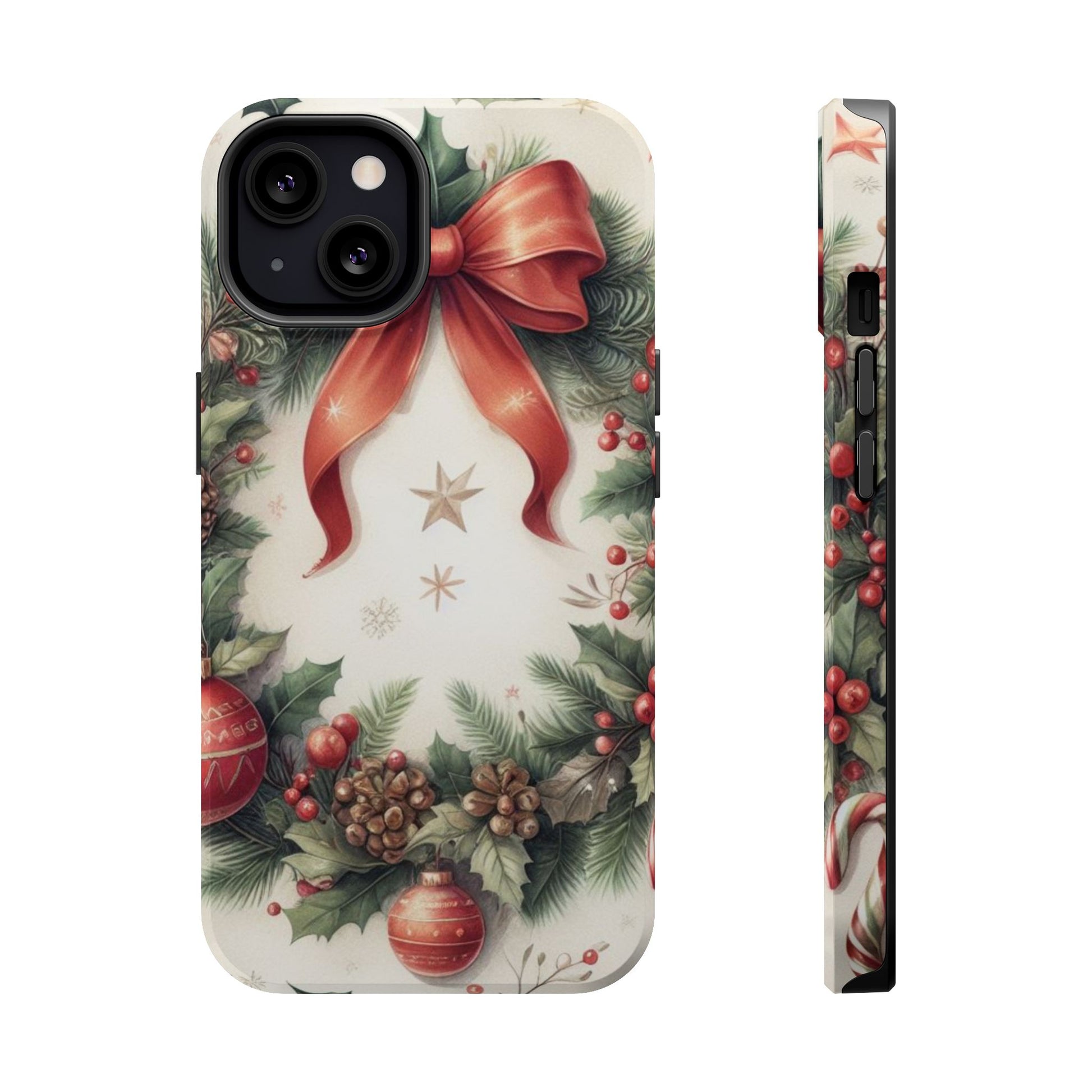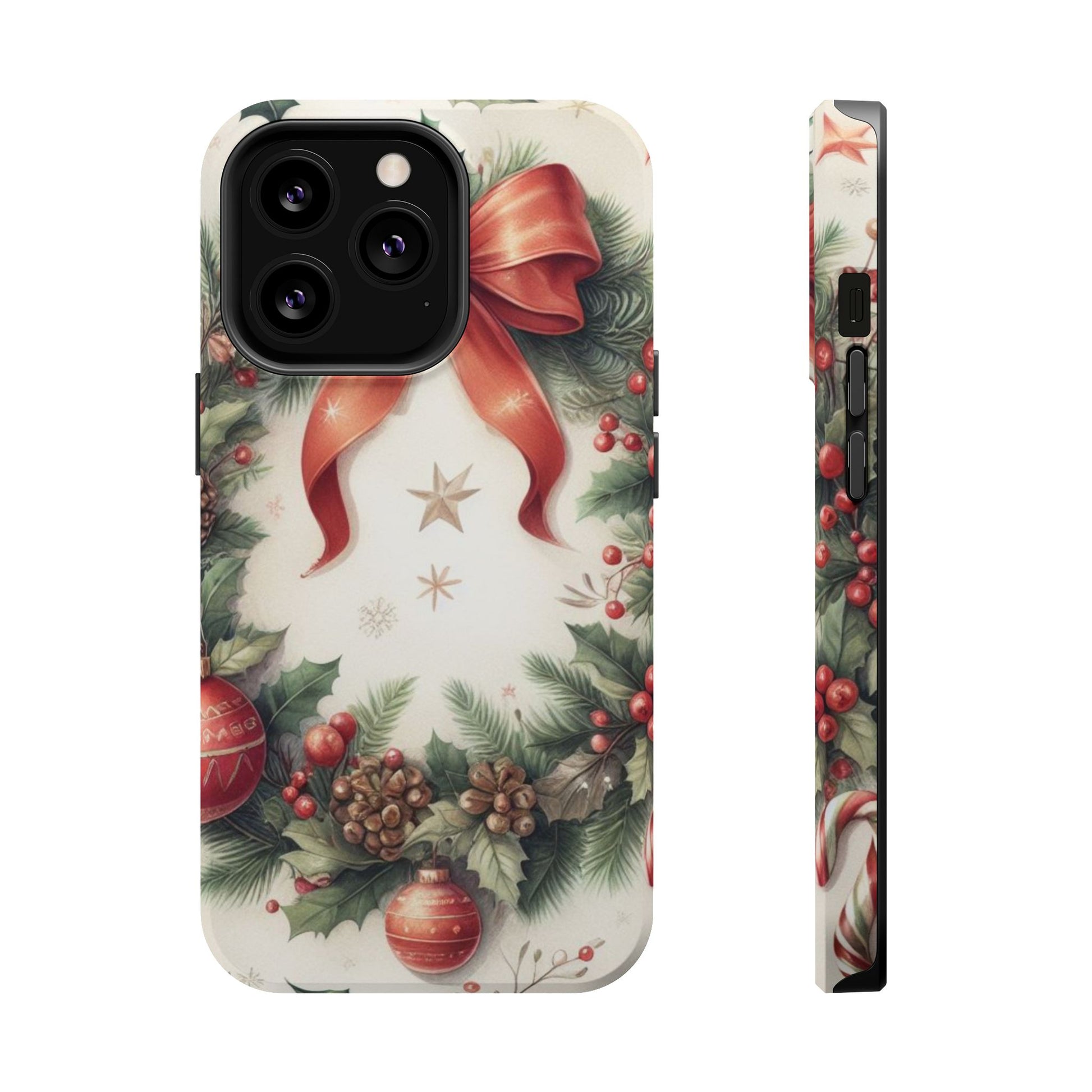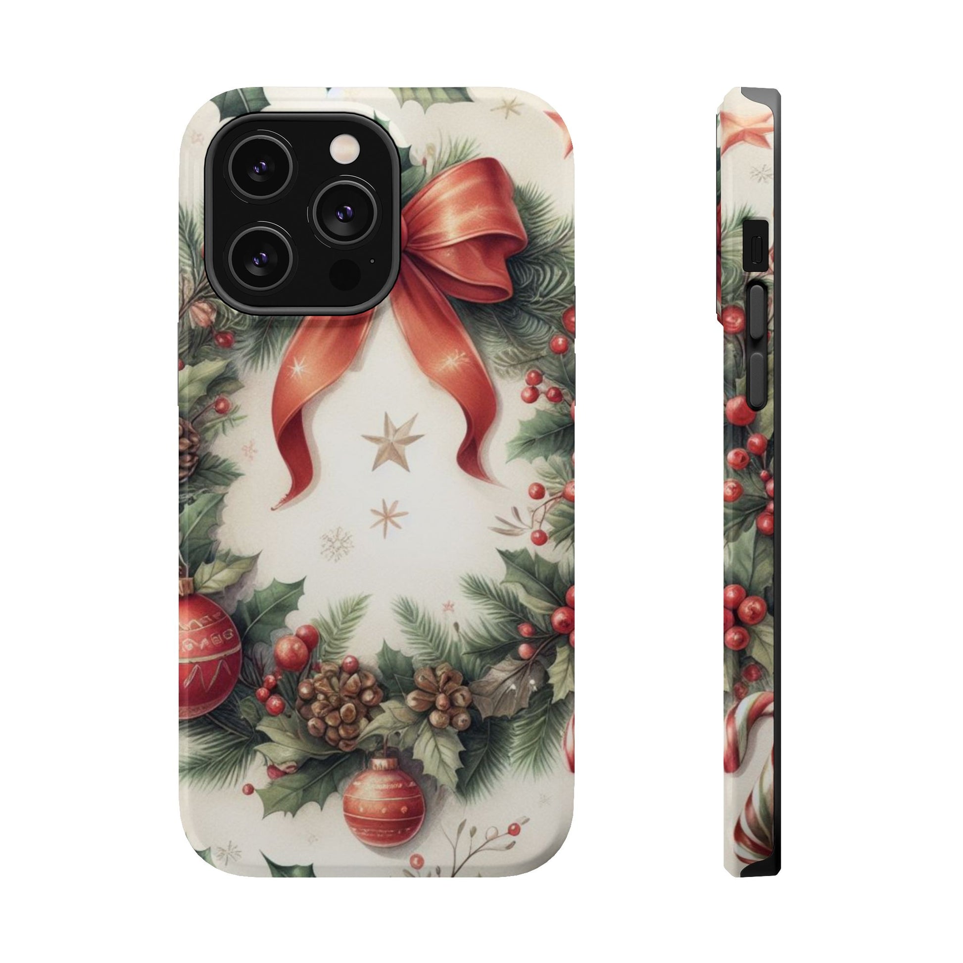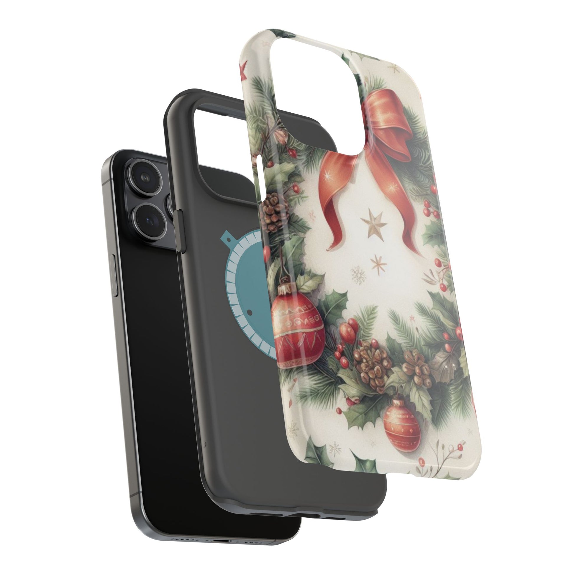 Wrap your phone in timeless holiday elegance with our Classic Christmas Wreath MagSafe  iPhone Case! Featuring a beautifully illustrated wreath adorned with red ribbons, pine cones, ornaments, holly berries, and evergreen branches, this case brings festive charm and a touch of vintage style. Perfect for getting into the holiday spirit, the intricate details and soft, warm colors make it a stunning seasonal accessory. Made from sturdy materials, it protects your phone from everyday bumps and scratches while adding a touch of Christmas cheer. Celebrate the season in style with this beautifully crafted case!