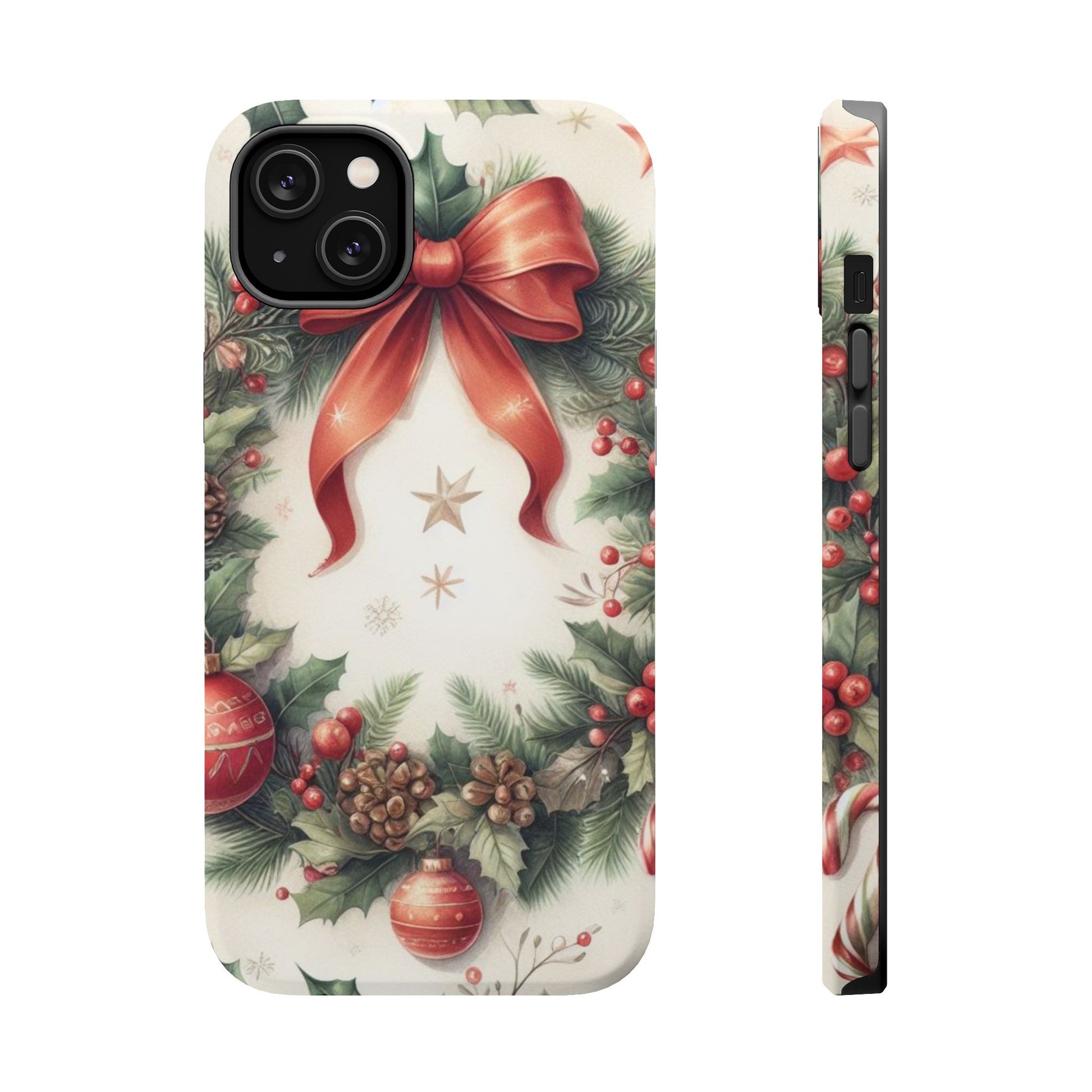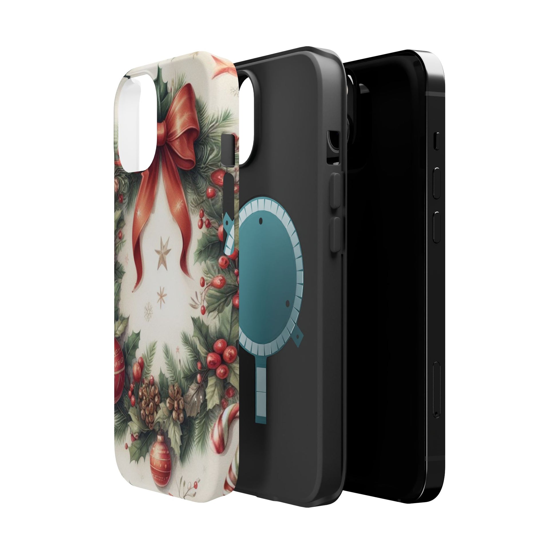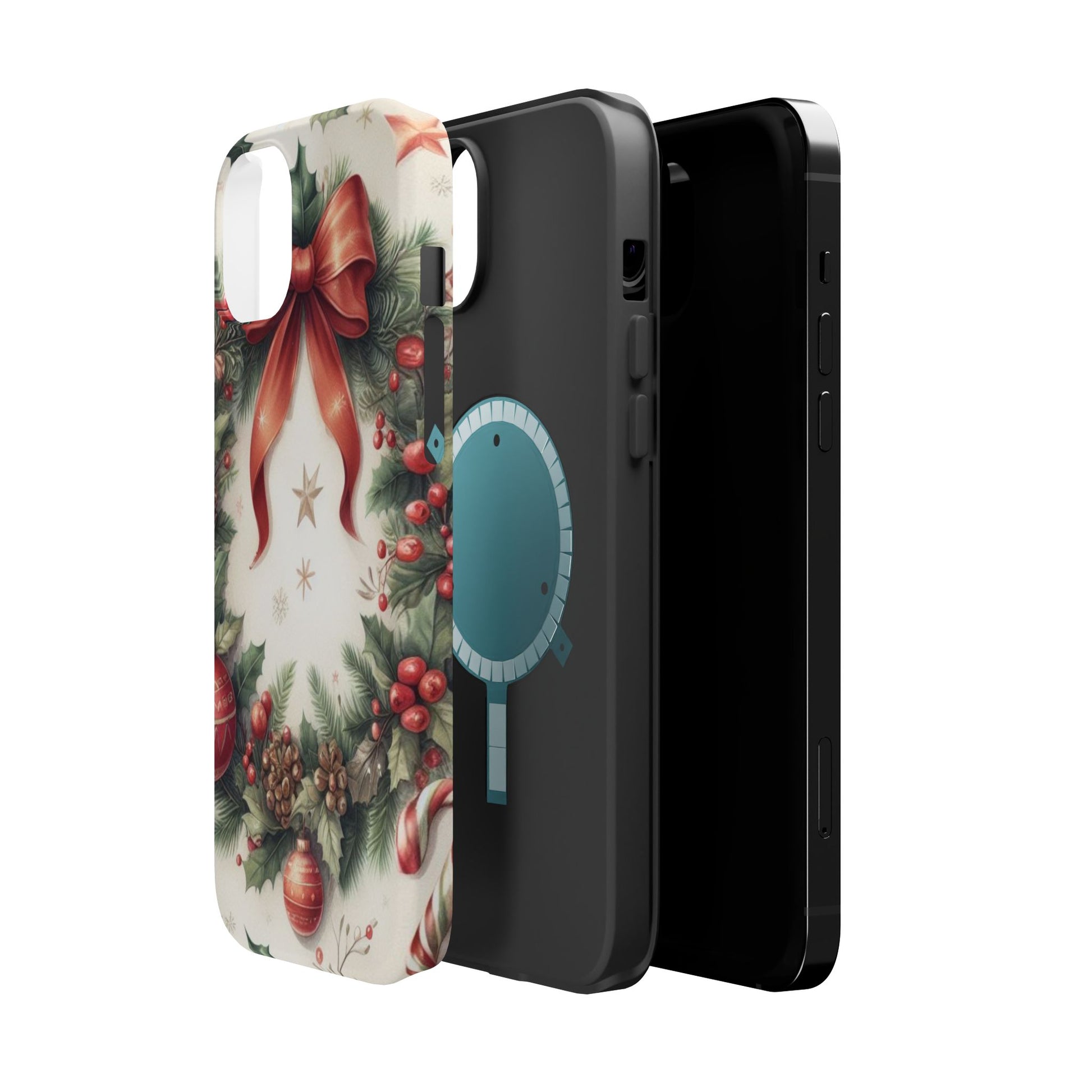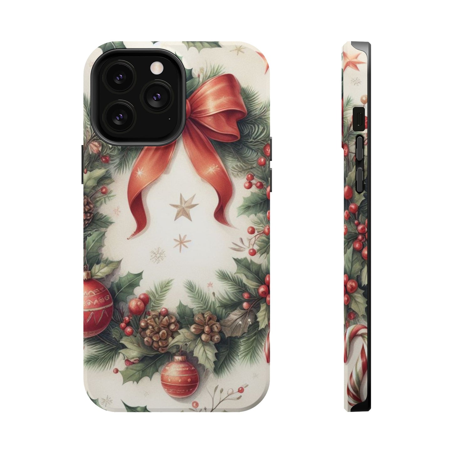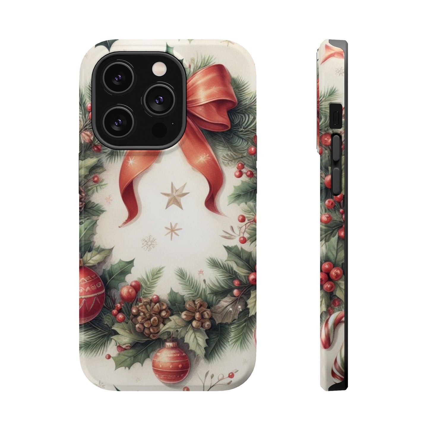 Wrap your phone in timeless holiday elegance with our Classic Christmas Wreath MagSafe  iPhone Case! Featuring a beautifully illustrated wreath adorned with red ribbons, pine cones, ornaments, holly berries, and evergreen branches, this case brings festive charm and a touch of vintage style. Perfect for getting into the holiday spirit, the intricate details and soft, warm colors make it a stunning seasonal accessory. Made from sturdy materials, it protects your phone from everyday bumps and scratches while adding a touch of Christmas cheer. Celebrate the season in style with this beautifully crafted case!