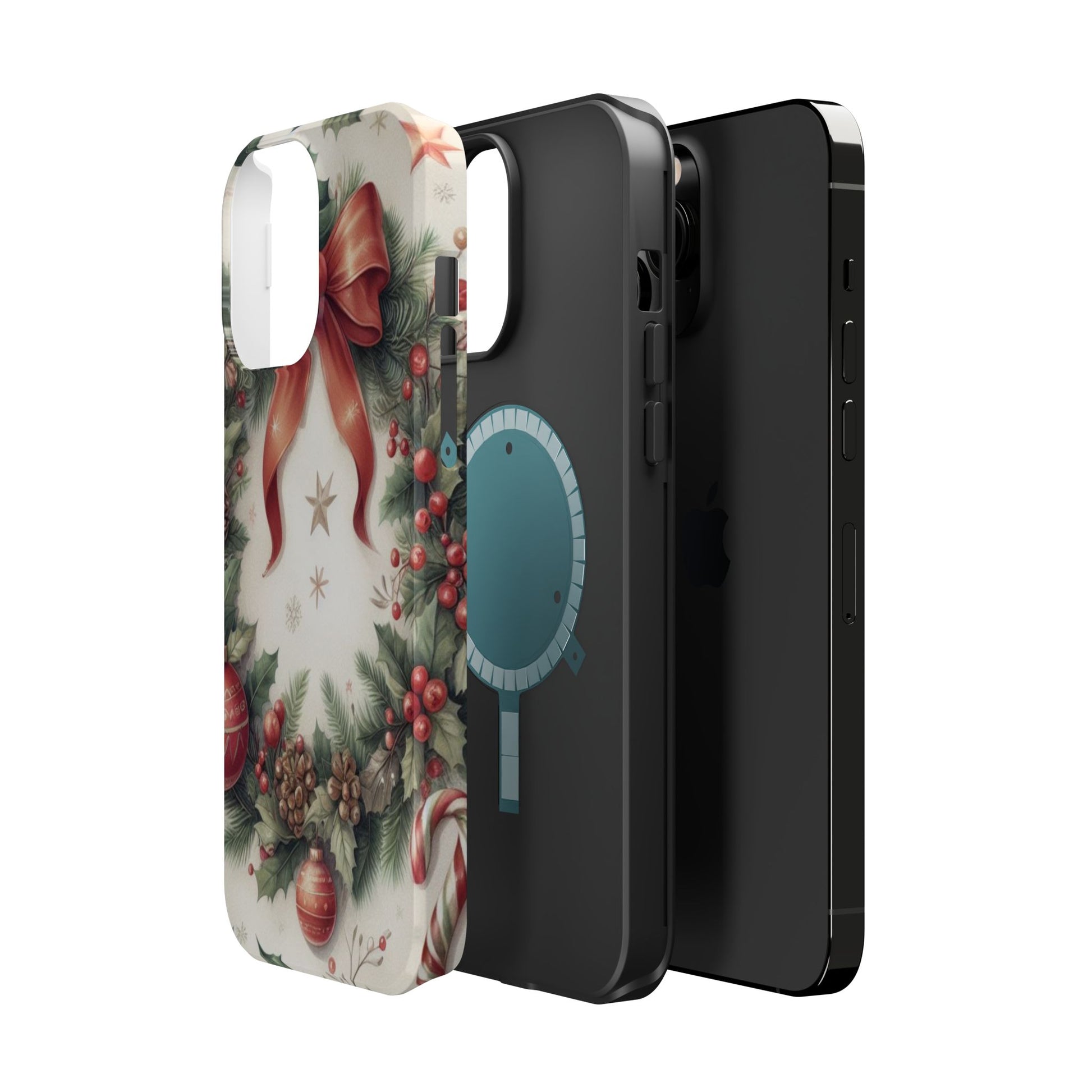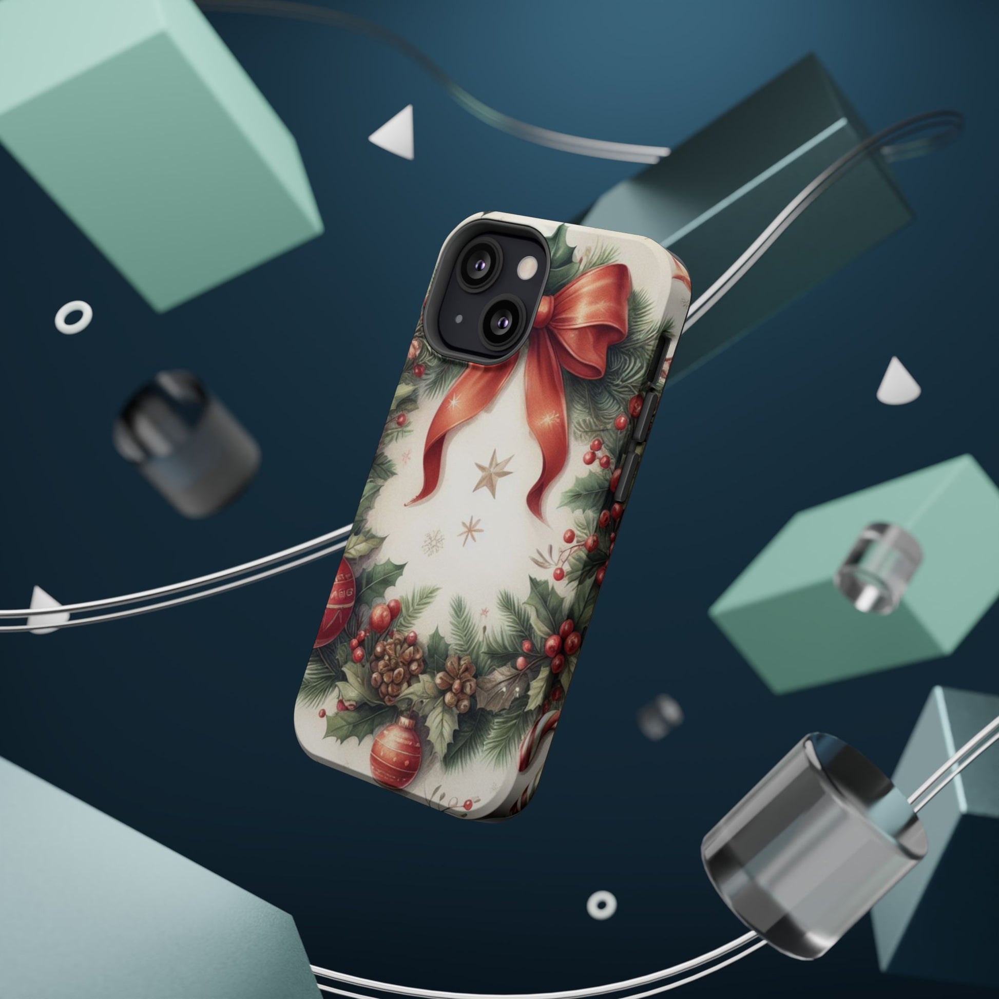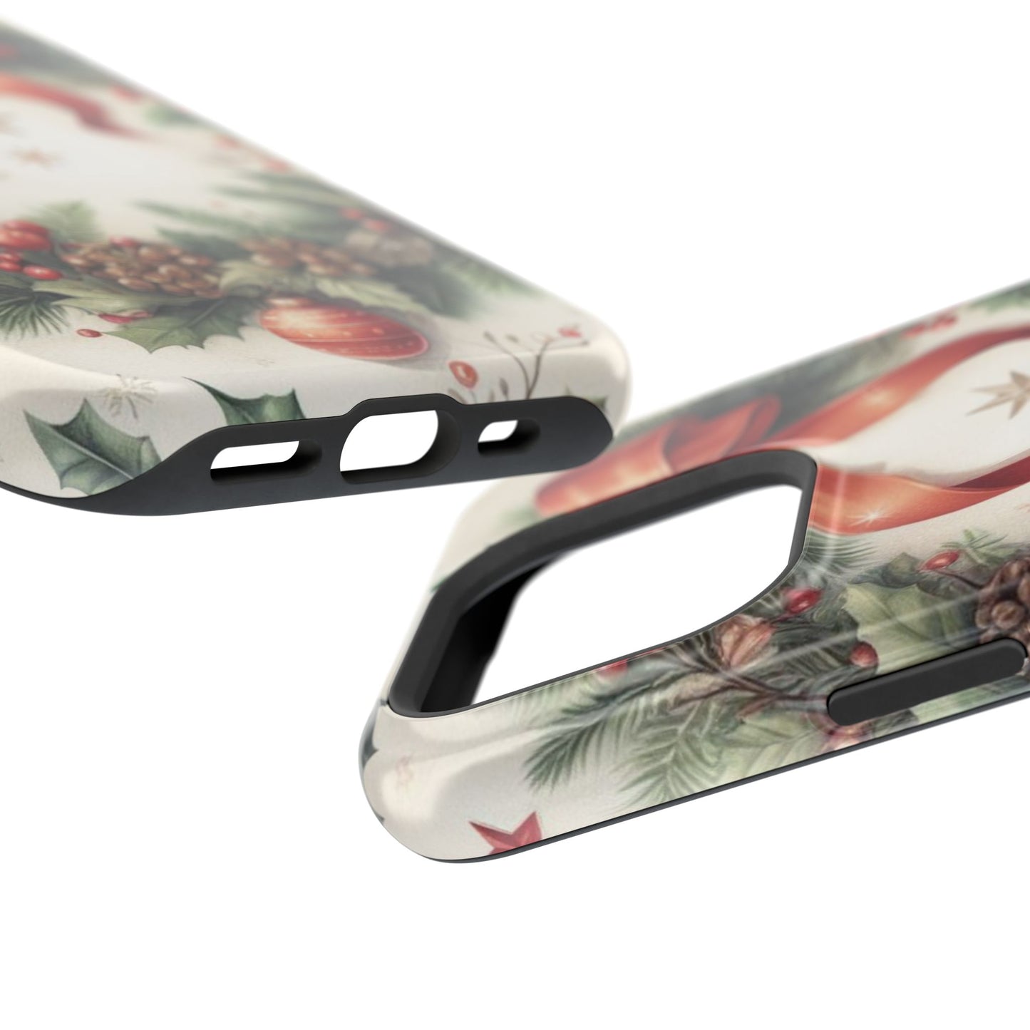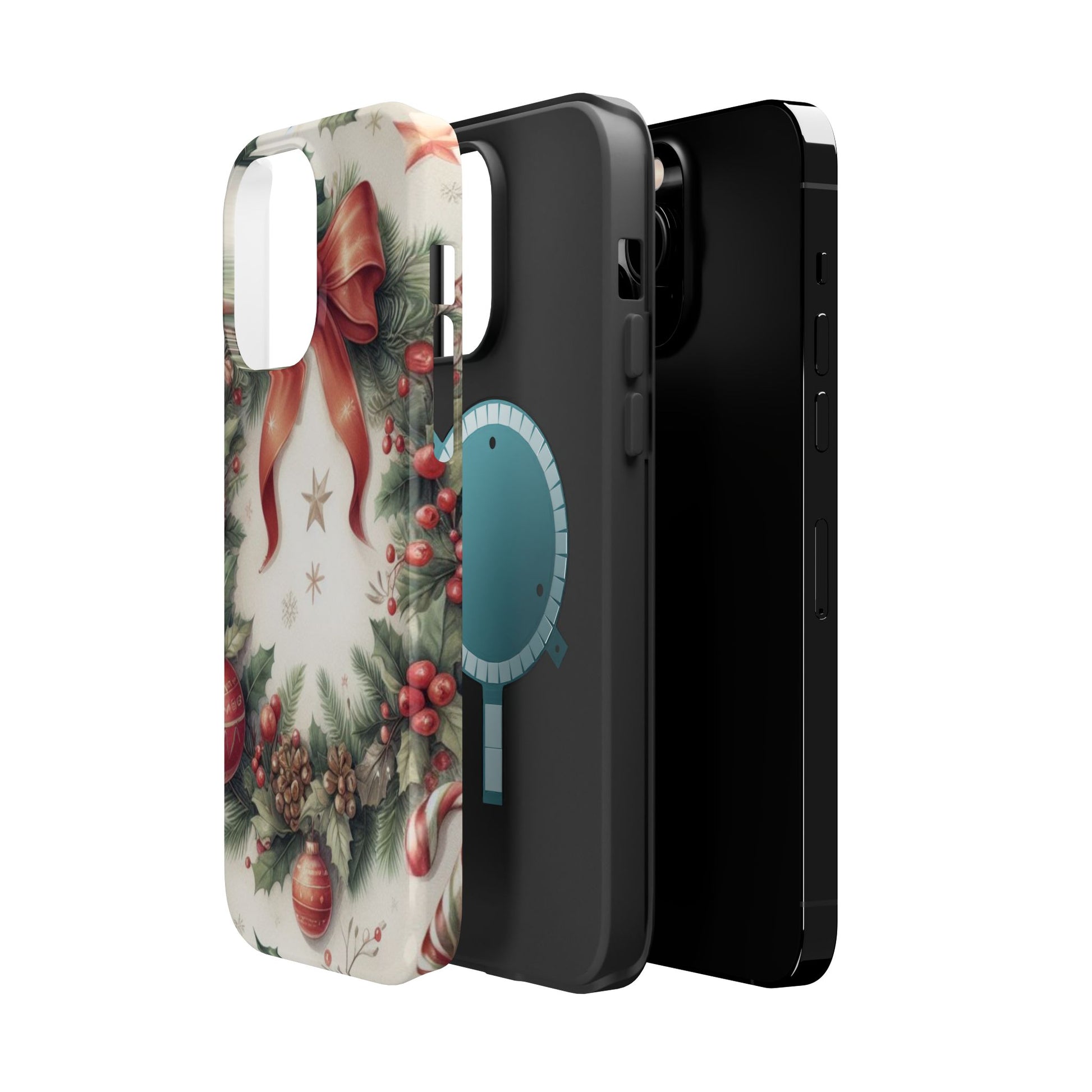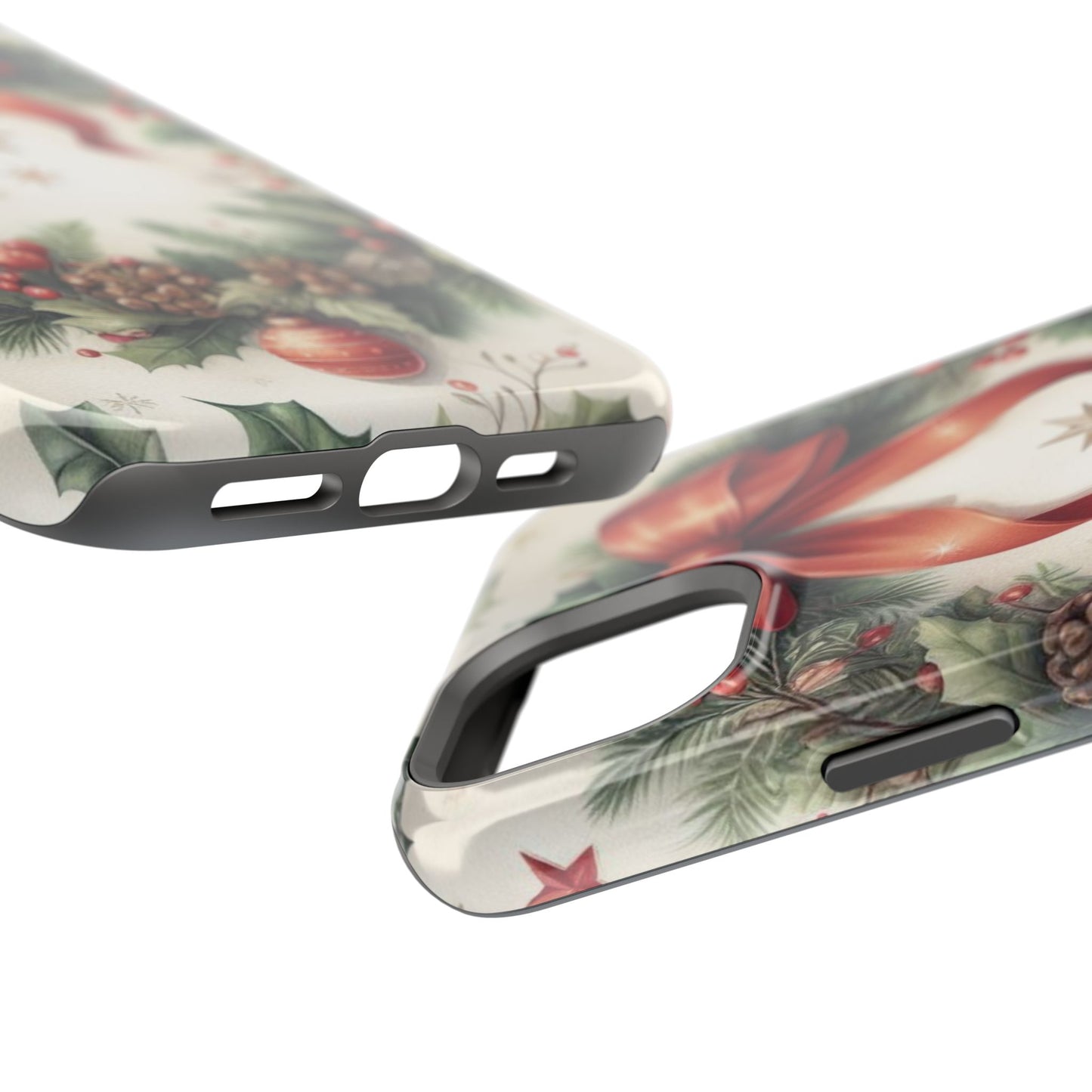 Wrap your phone in timeless holiday elegance with our Classic Christmas Wreath MagSafe  iPhone Case! Featuring a beautifully illustrated wreath adorned with red ribbons, pine cones, ornaments, holly berries, and evergreen branches, this case brings festive charm and a touch of vintage style. Perfect for getting into the holiday spirit, the intricate details and soft, warm colors make it a stunning seasonal accessory. Made from sturdy materials, it protects your phone from everyday bumps and scratches while adding a touch of Christmas cheer. Celebrate the season in style with this beautifully crafted case!