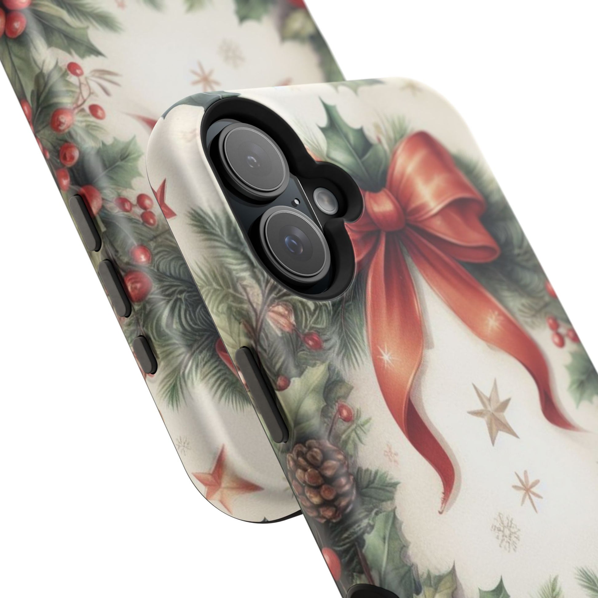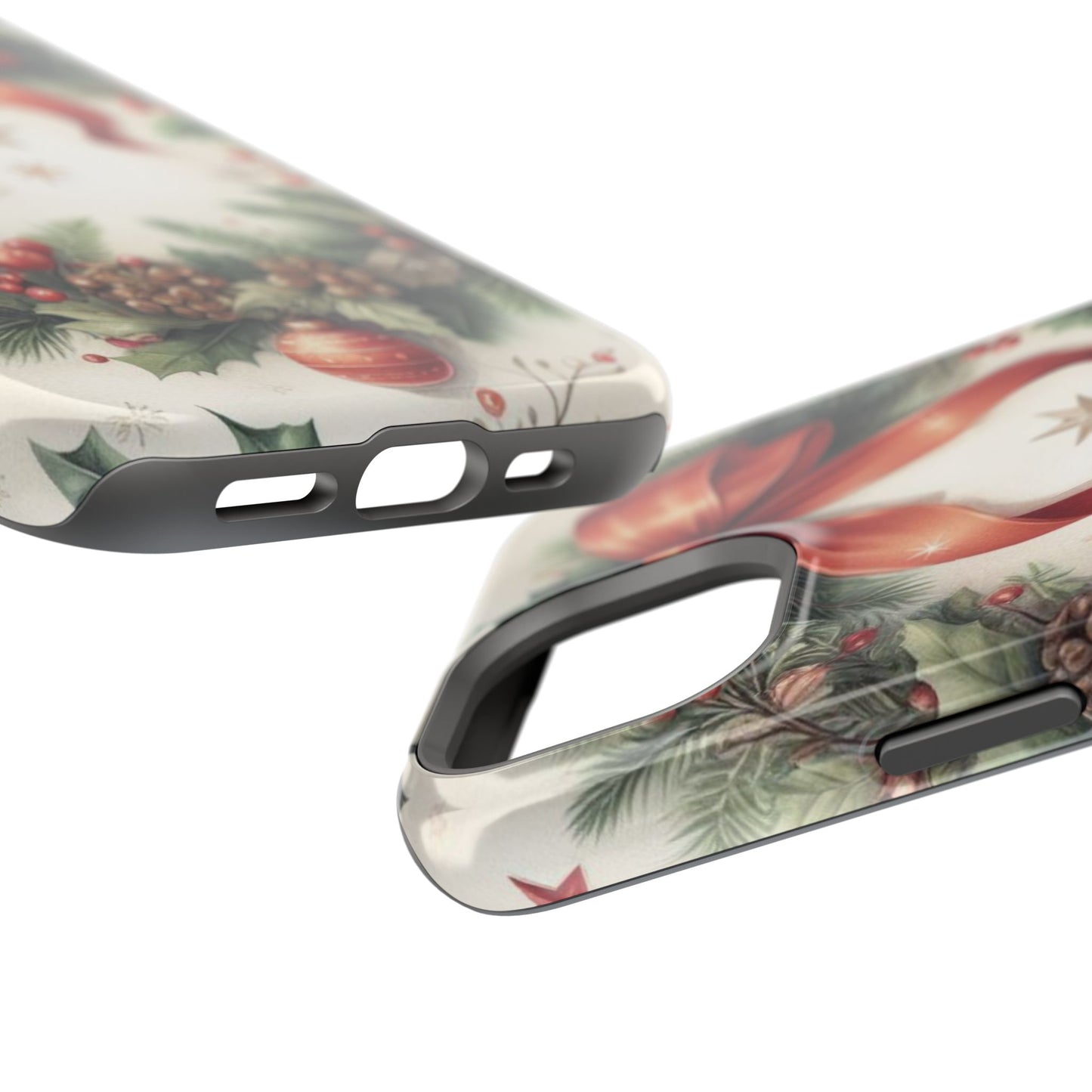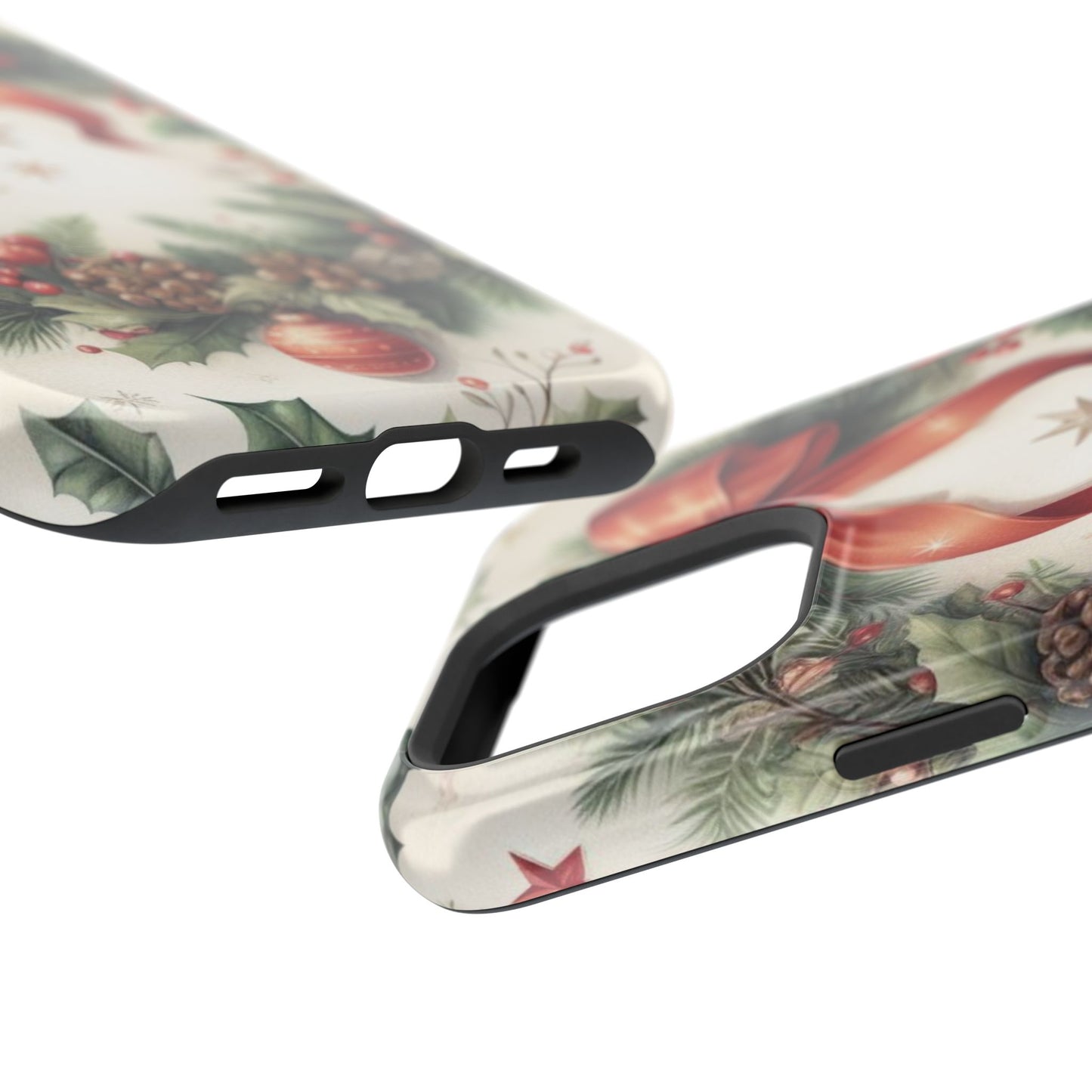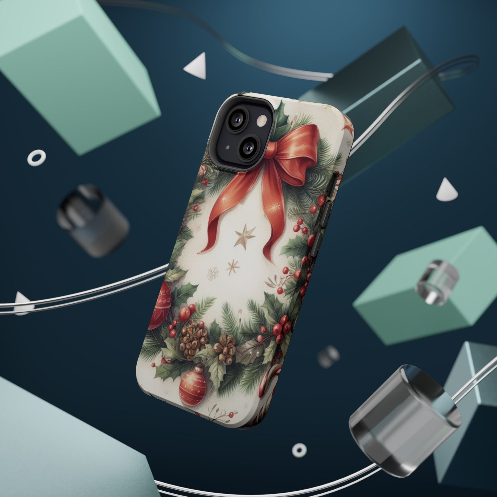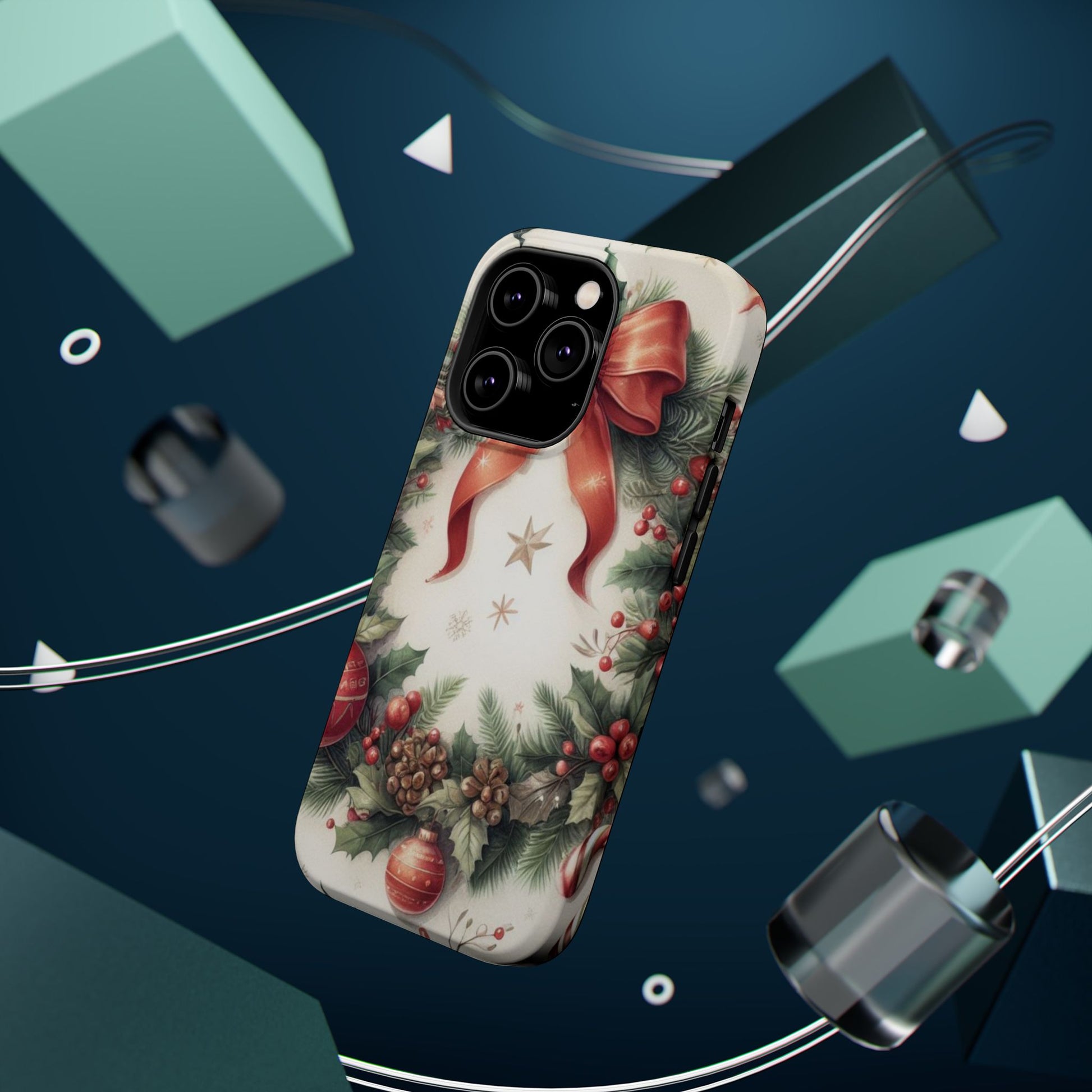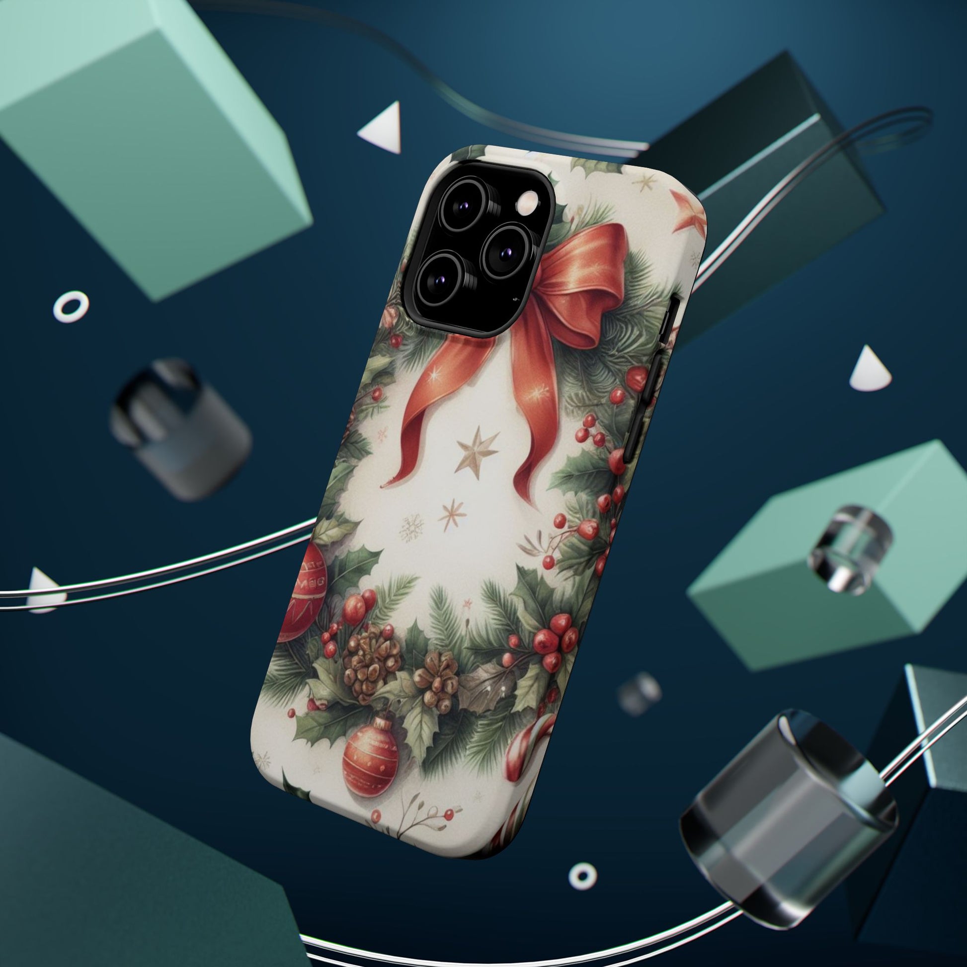 Wrap your phone in timeless holiday elegance with our Classic Christmas Wreath MagSafe  iPhone Case! Featuring a beautifully illustrated wreath adorned with red ribbons, pine cones, ornaments, holly berries, and evergreen branches, this case brings festive charm and a touch of vintage style. Perfect for getting into the holiday spirit, the intricate details and soft, warm colors make it a stunning seasonal accessory. Made from sturdy materials, it protects your phone from everyday bumps and scratches while adding a touch of Christmas cheer. Celebrate the season in style with this beautifully crafted case!