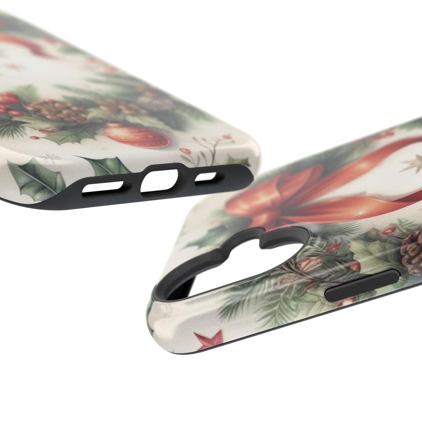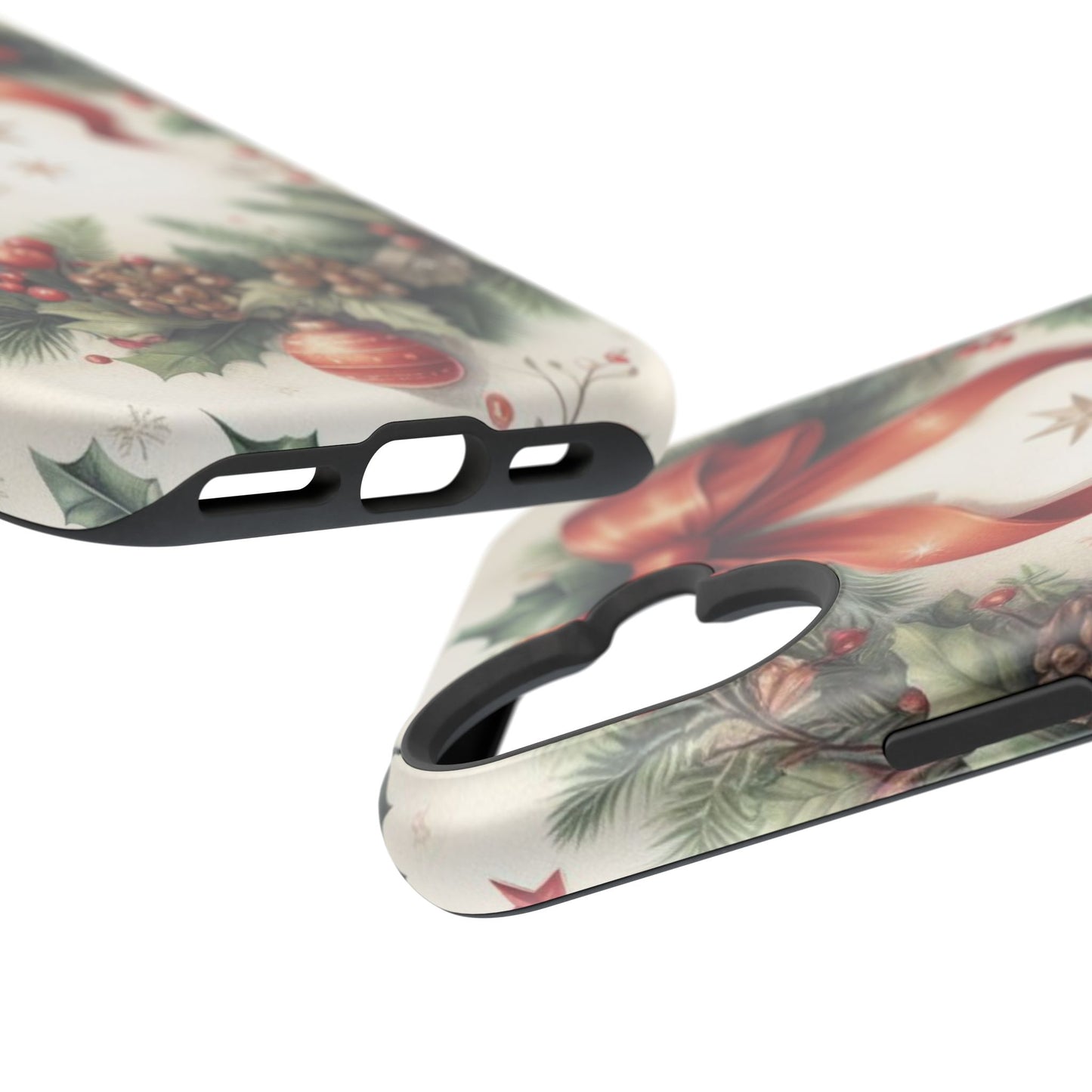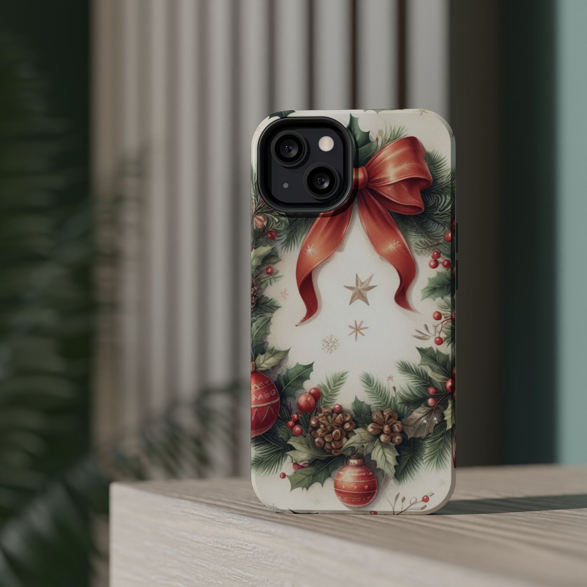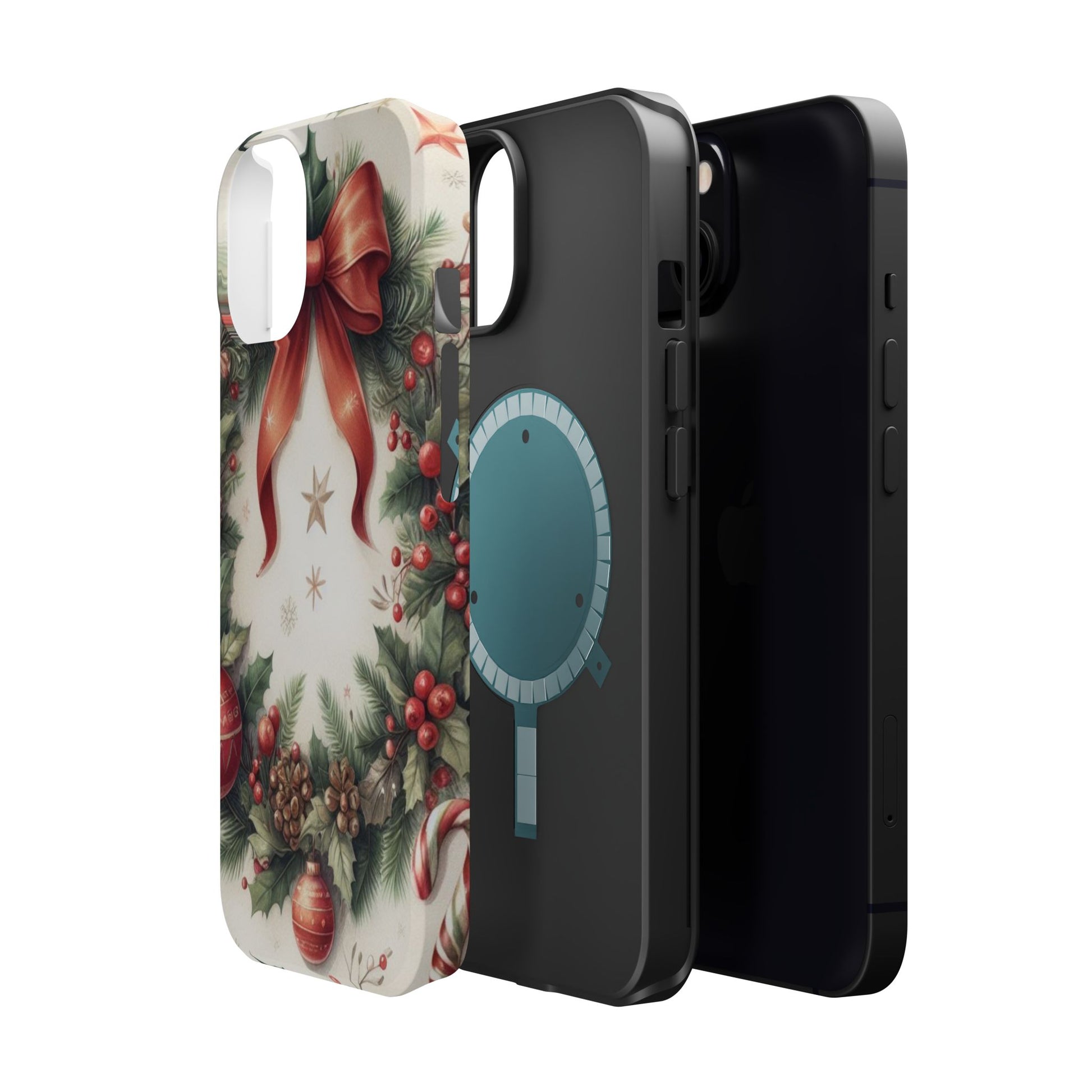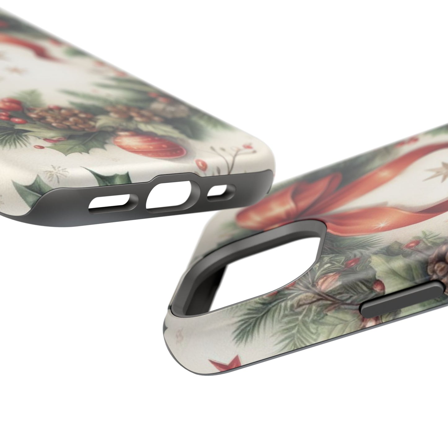 Wrap your phone in timeless holiday elegance with our Classic Christmas Wreath MagSafe  iPhone Case! Featuring a beautifully illustrated wreath adorned with red ribbons, pine cones, ornaments, holly berries, and evergreen branches, this case brings festive charm and a touch of vintage style. Perfect for getting into the holiday spirit, the intricate details and soft, warm colors make it a stunning seasonal accessory. Made from sturdy materials, it protects your phone from everyday bumps and scratches while adding a touch of Christmas cheer. Celebrate the season in style with this beautifully crafted case!