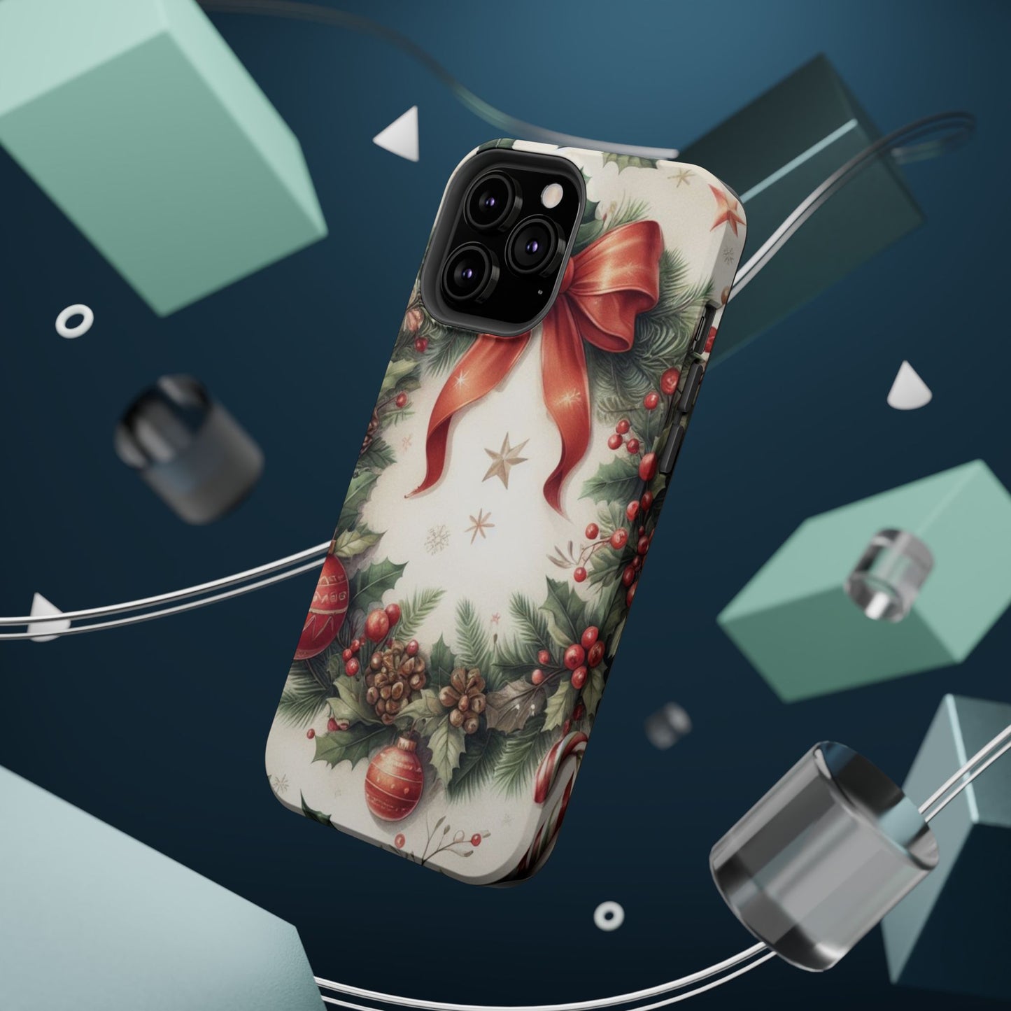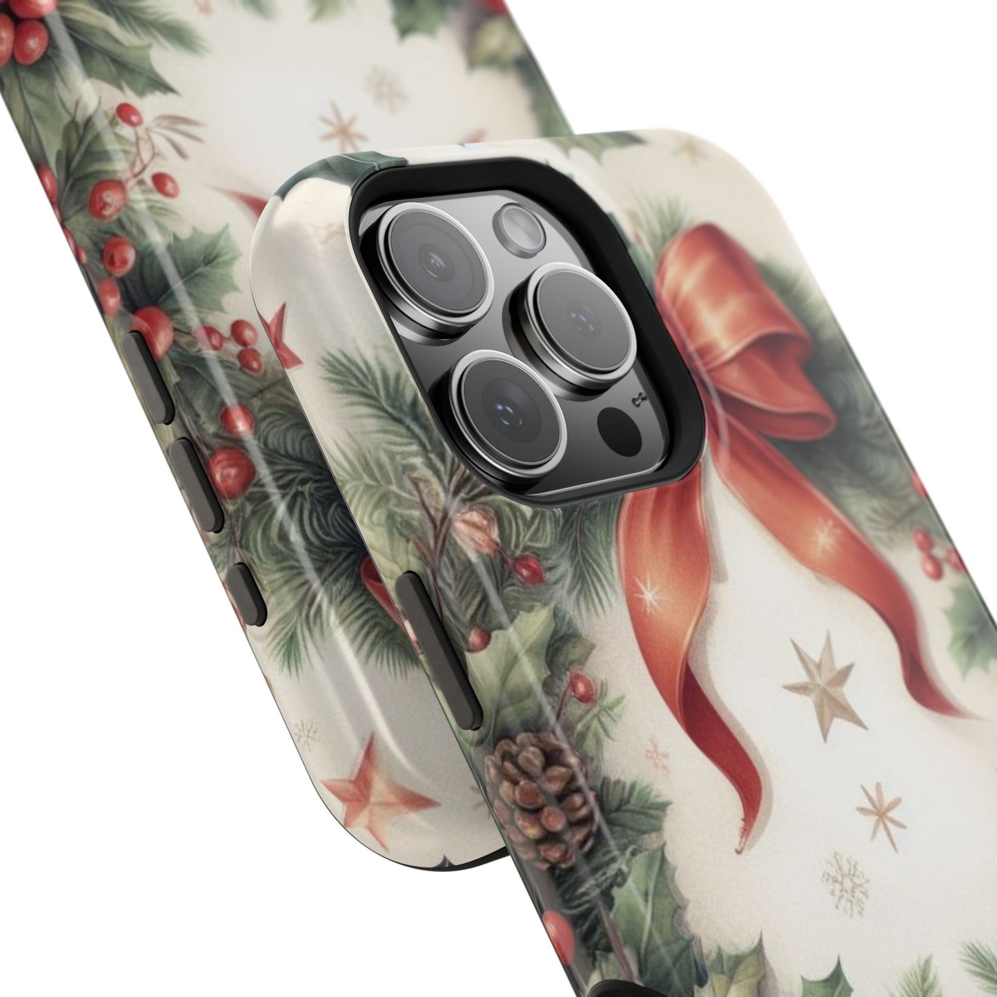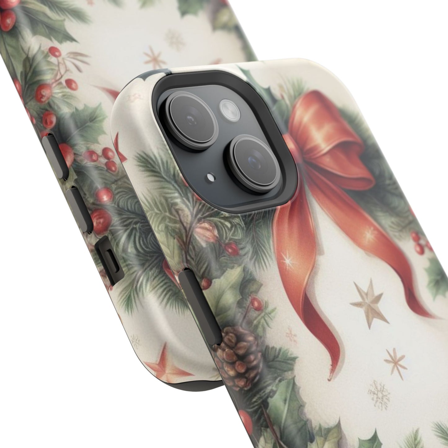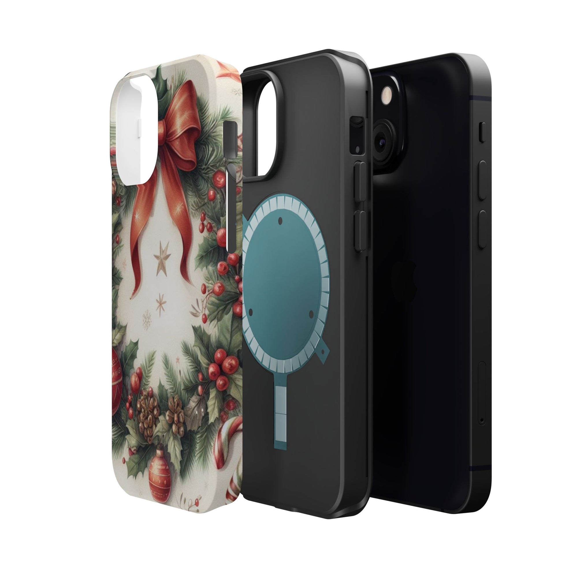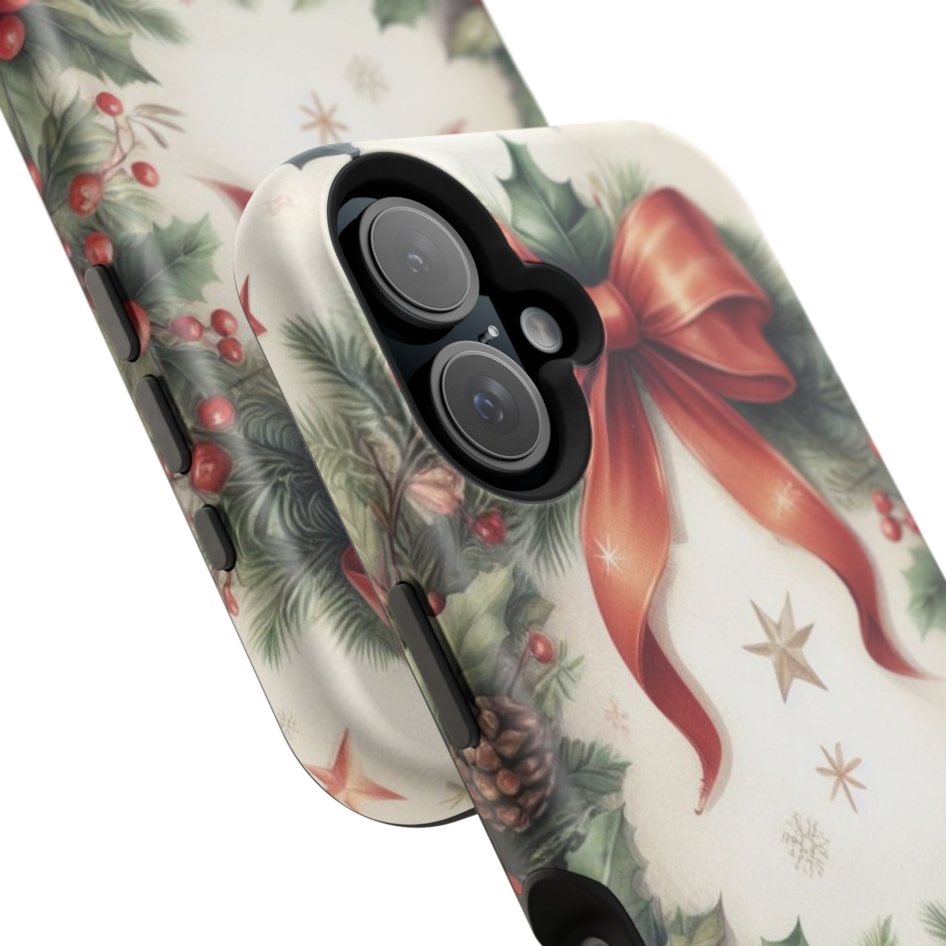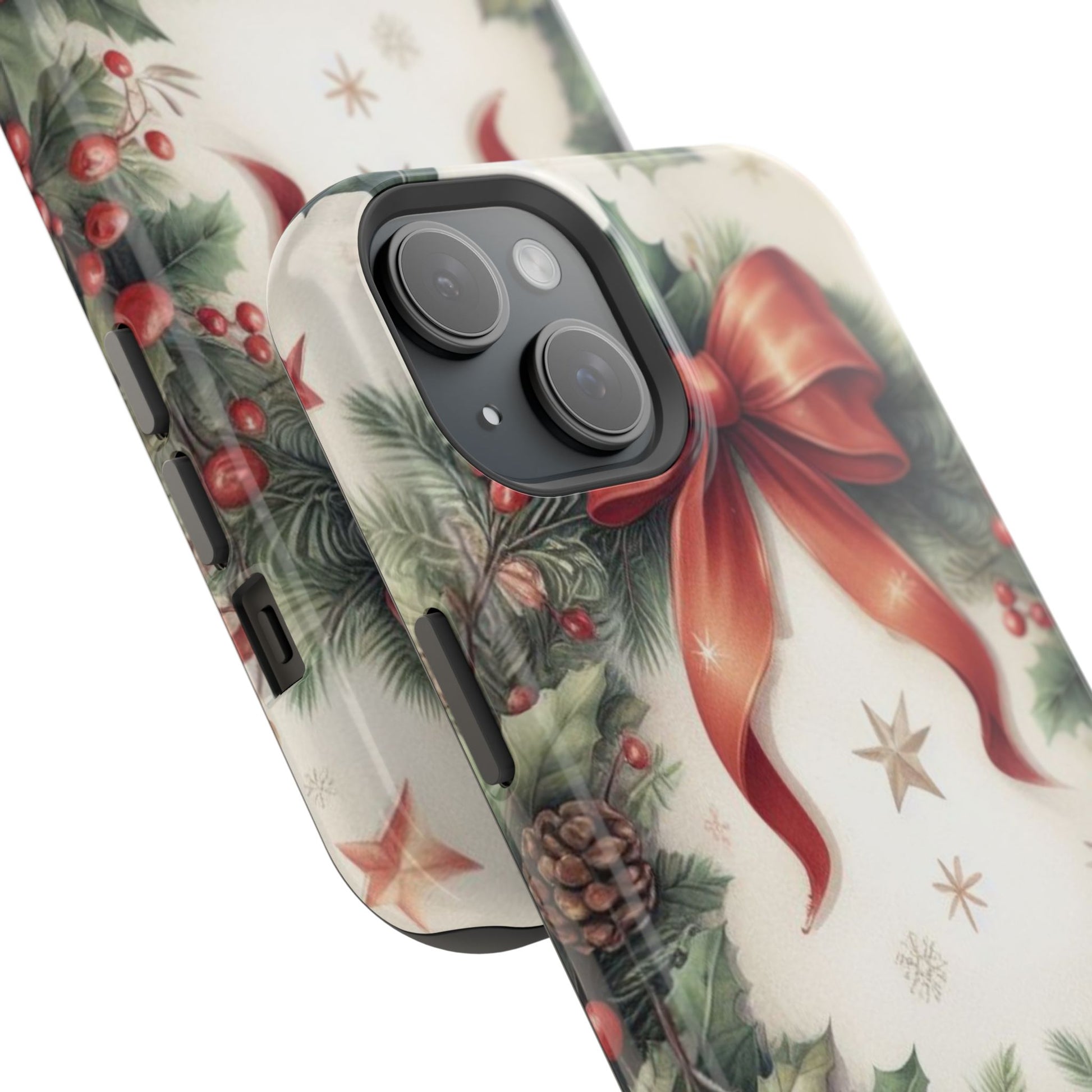 Wrap your phone in timeless holiday elegance with our Classic Christmas Wreath MagSafe  iPhone Case! Featuring a beautifully illustrated wreath adorned with red ribbons, pine cones, ornaments, holly berries, and evergreen branches, this case brings festive charm and a touch of vintage style. Perfect for getting into the holiday spirit, the intricate details and soft, warm colors make it a stunning seasonal accessory. Made from sturdy materials, it protects your phone from everyday bumps and scratches while adding a touch of Christmas cheer. Celebrate the season in style with this beautifully crafted case!