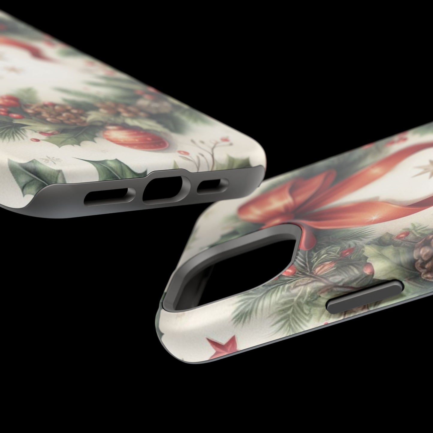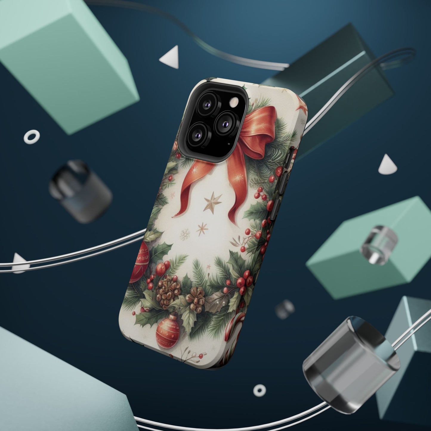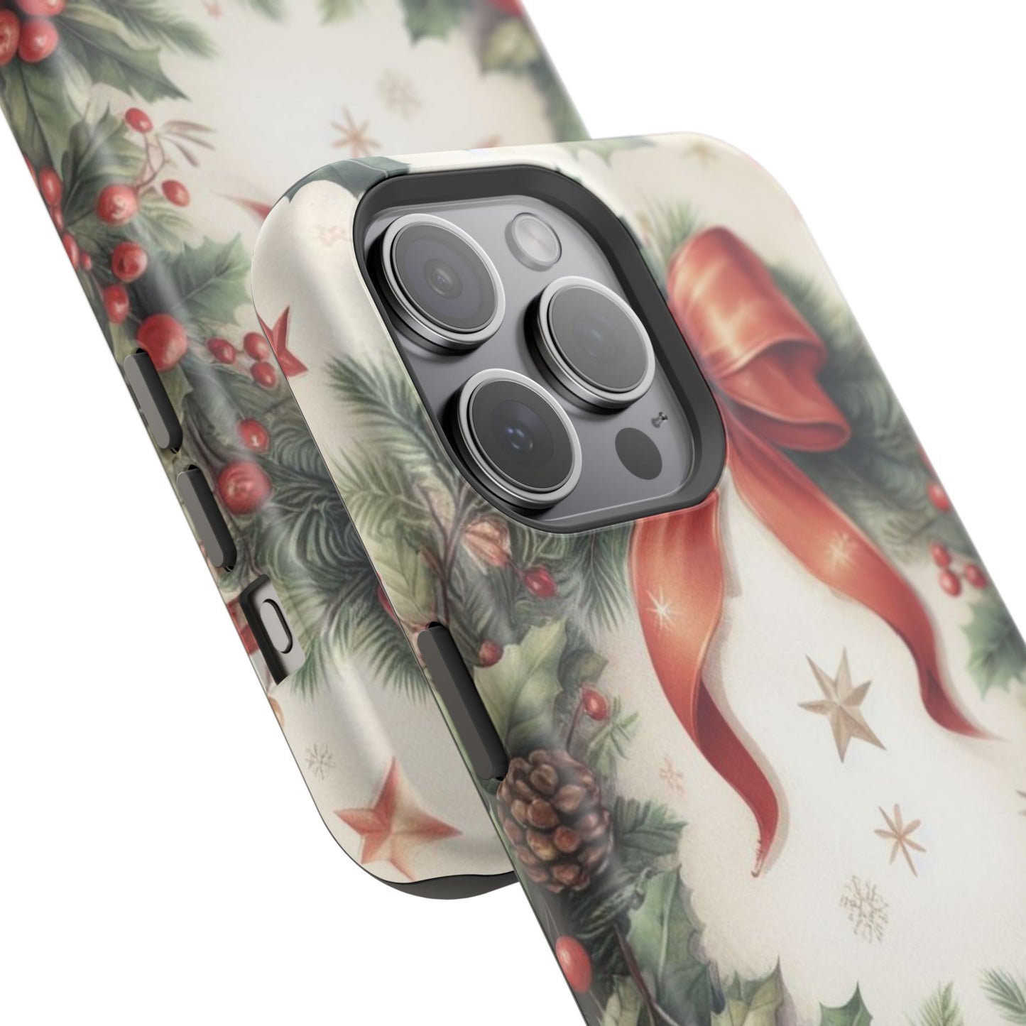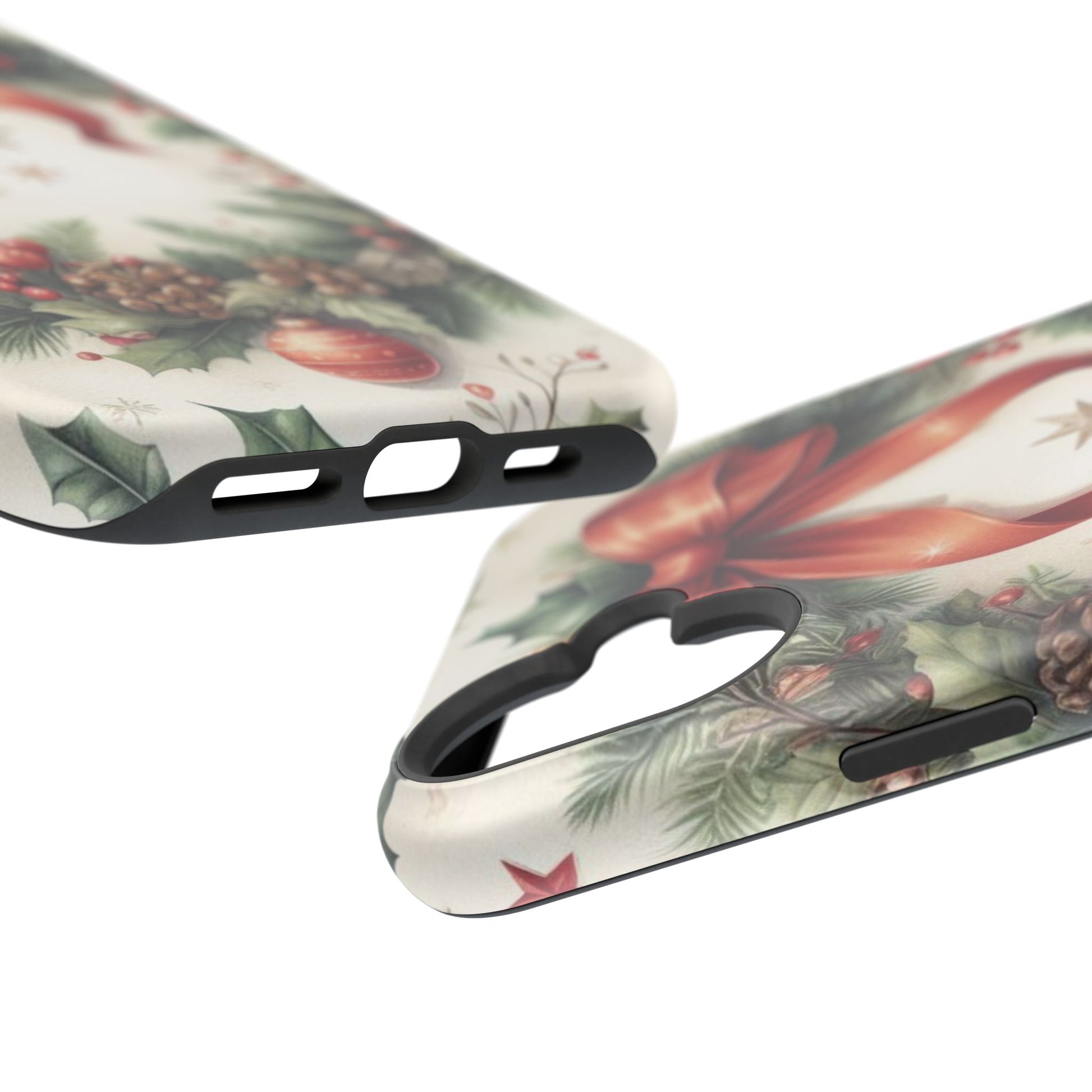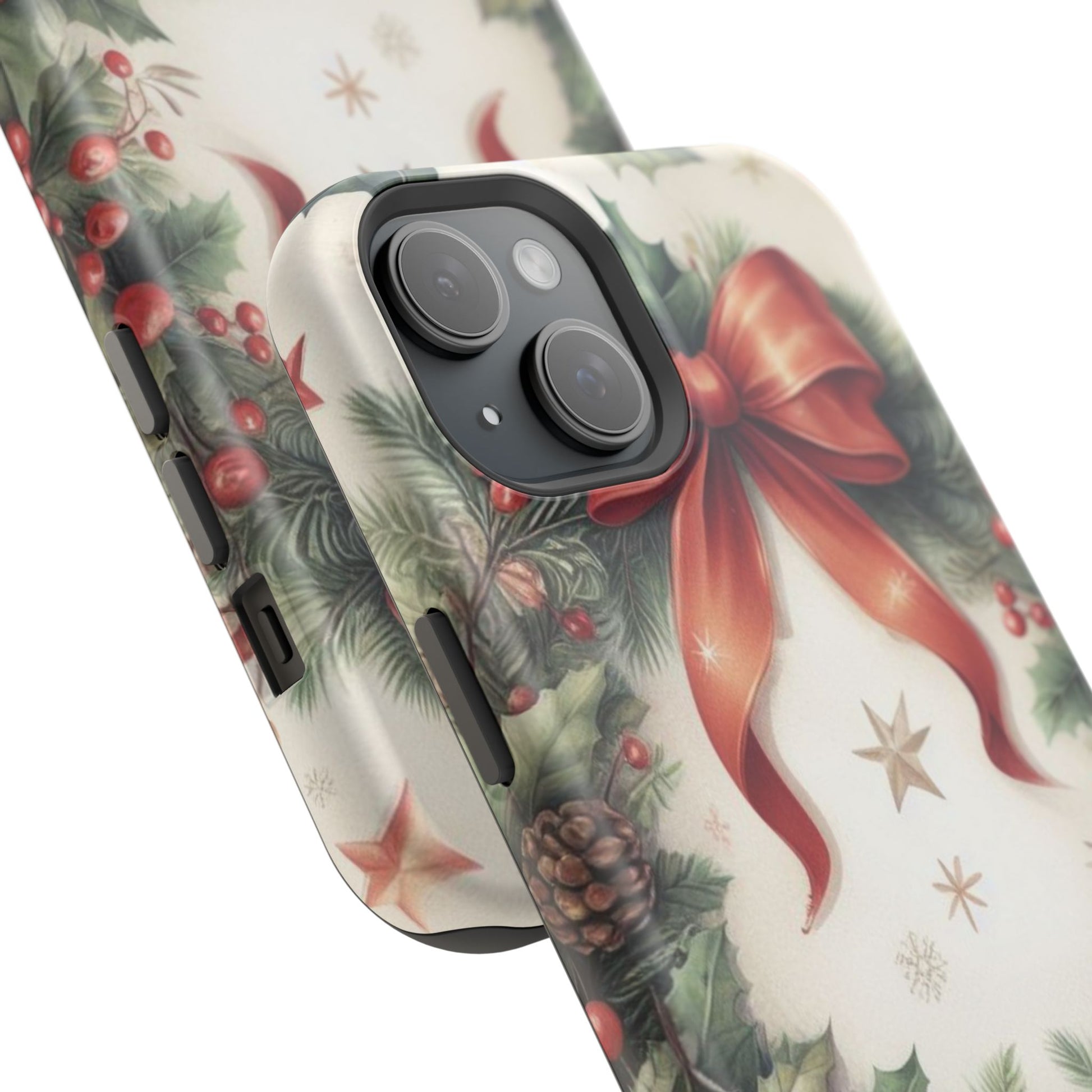 Wrap your phone in timeless holiday elegance with our Classic Christmas Wreath MagSafe  iPhone Case! Featuring a beautifully illustrated wreath adorned with red ribbons, pine cones, ornaments, holly berries, and evergreen branches, this case brings festive charm and a touch of vintage style. Perfect for getting into the holiday spirit, the intricate details and soft, warm colors make it a stunning seasonal accessory. Made from sturdy materials, it protects your phone from everyday bumps and scratches while adding a touch of Christmas cheer. Celebrate the season in style with this beautifully crafted case!