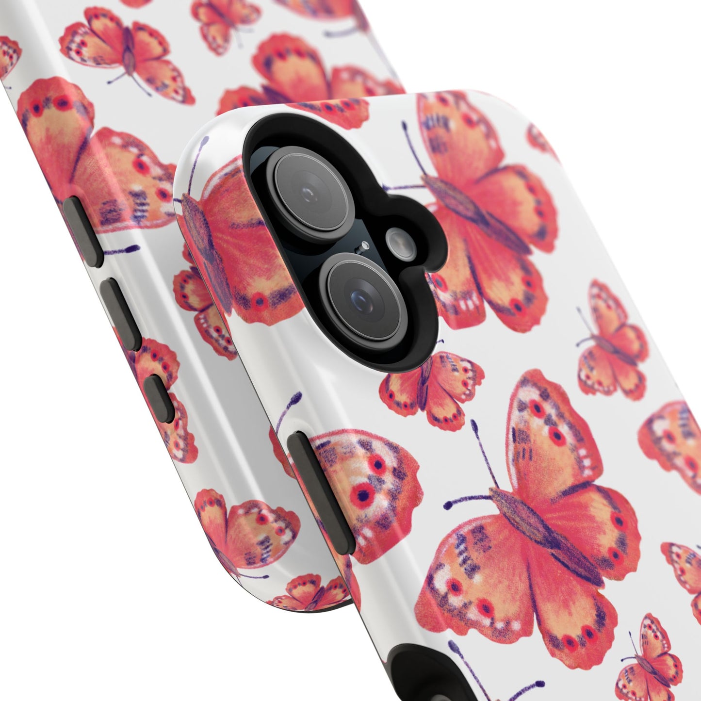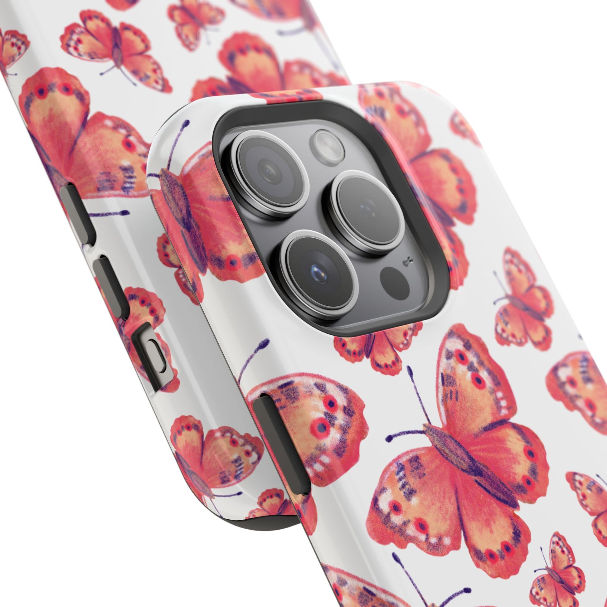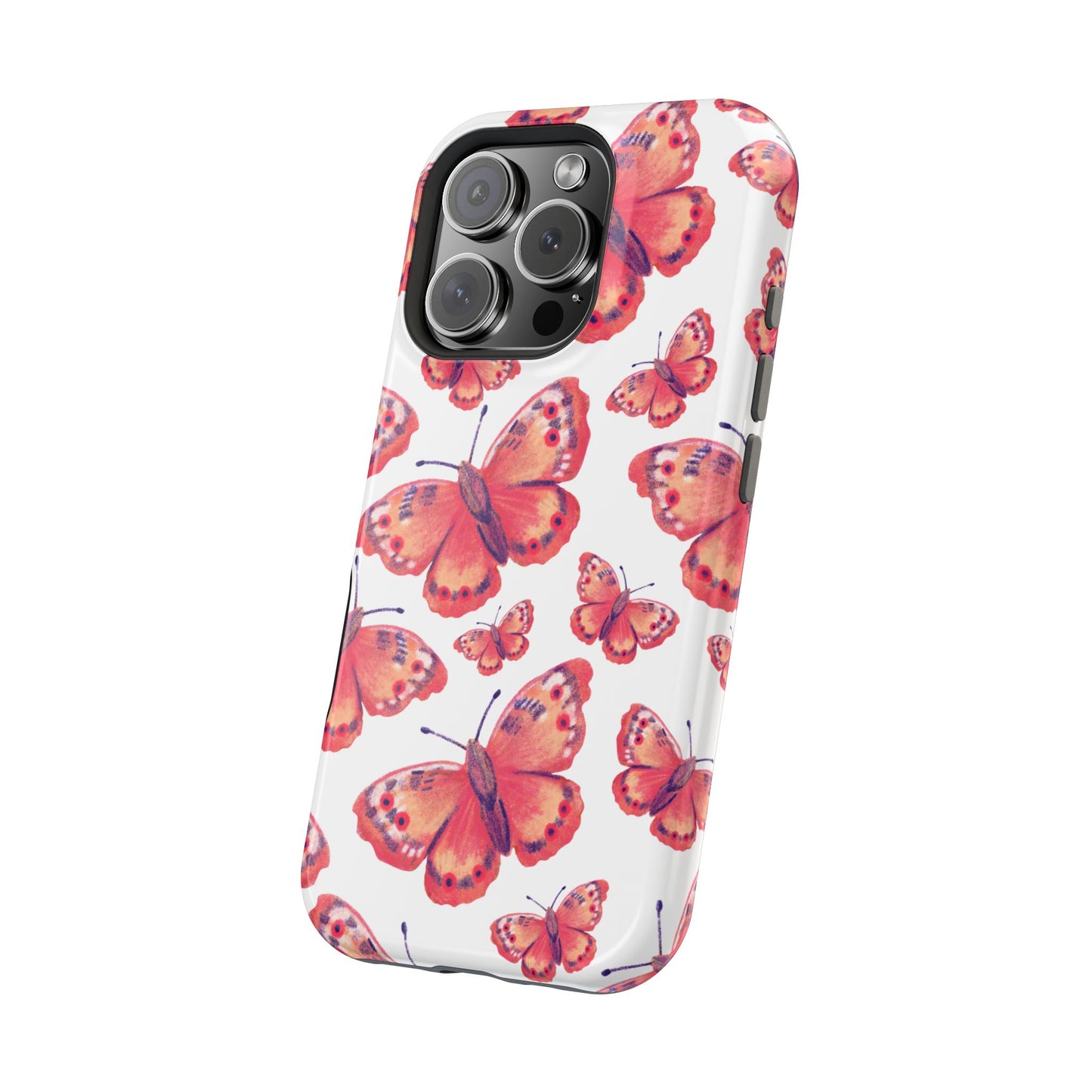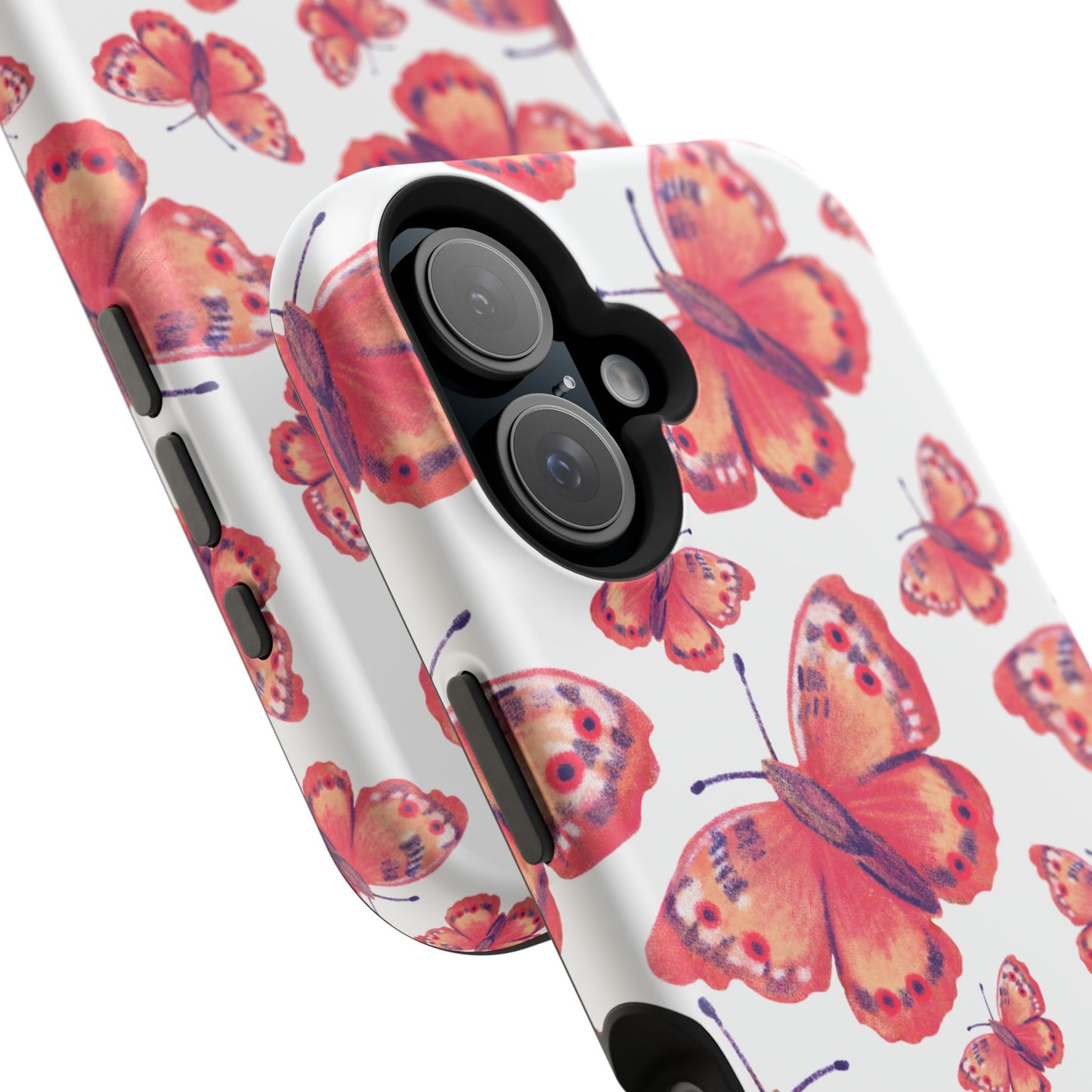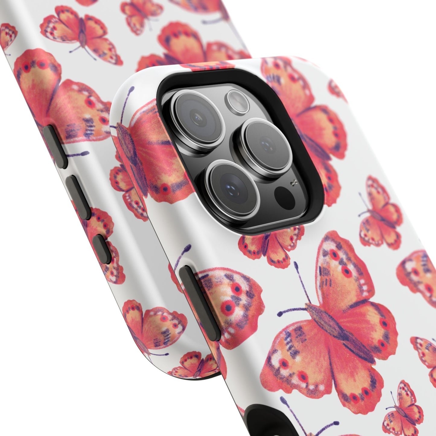 Coral Butterfly MagSafe iPhone Case – Slim, Protective Design with Bold Watercolor Print