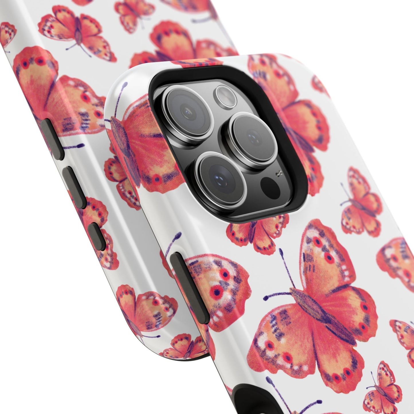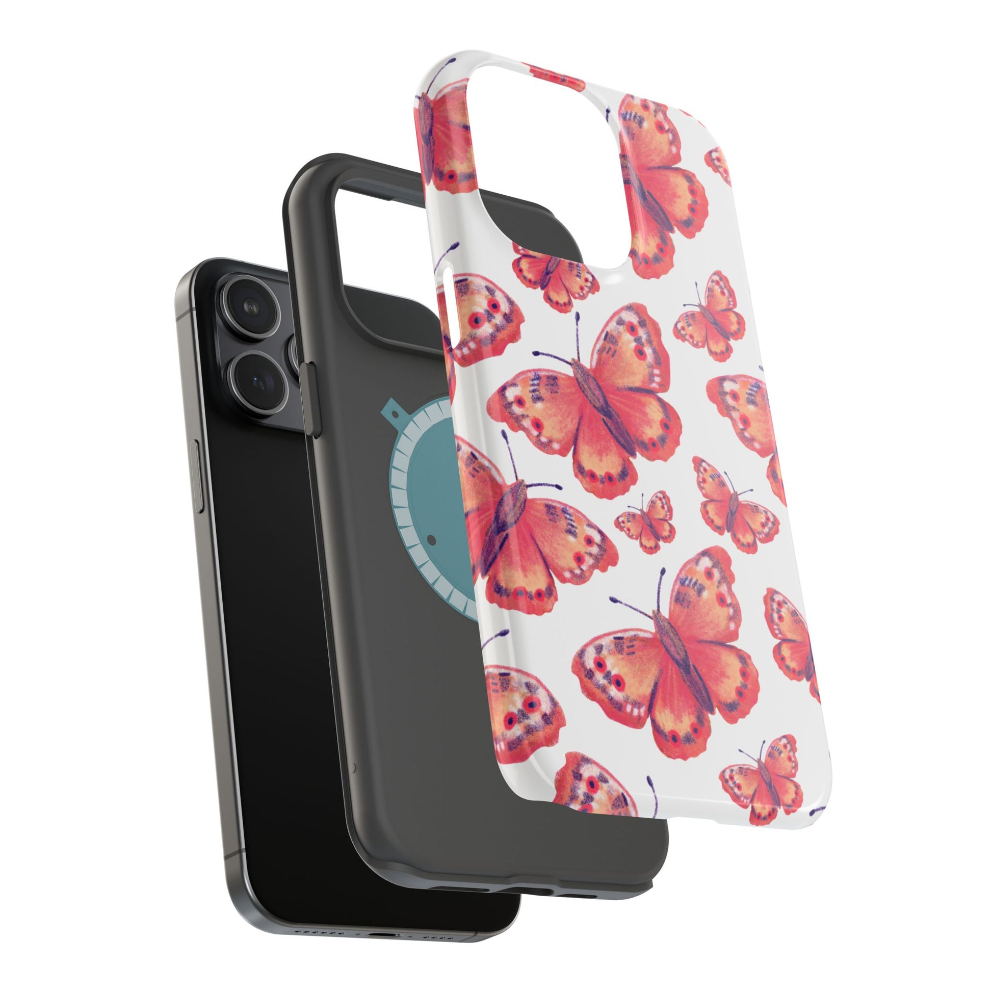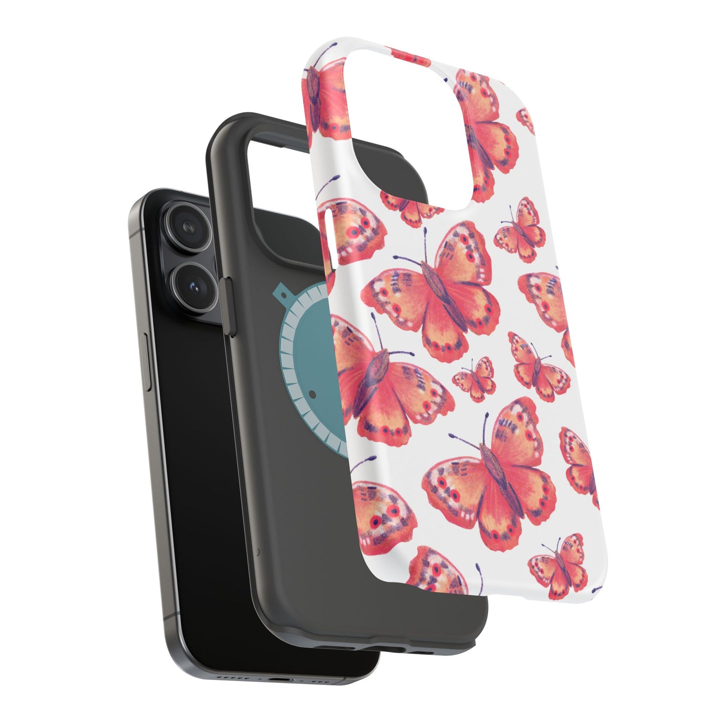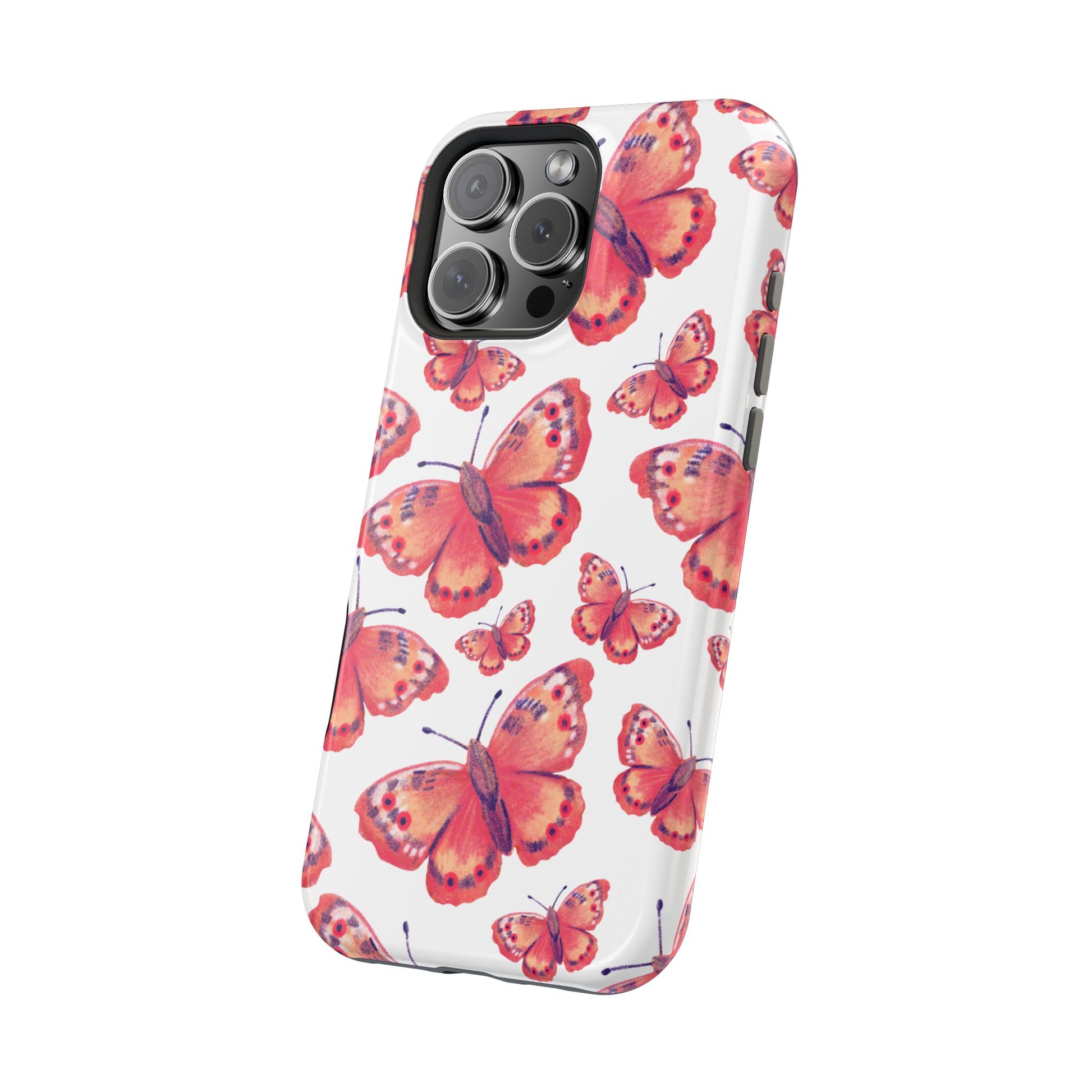 Coral Butterfly MagSafe iPhone Case – Slim, Protective Design with Bold Watercolor Print