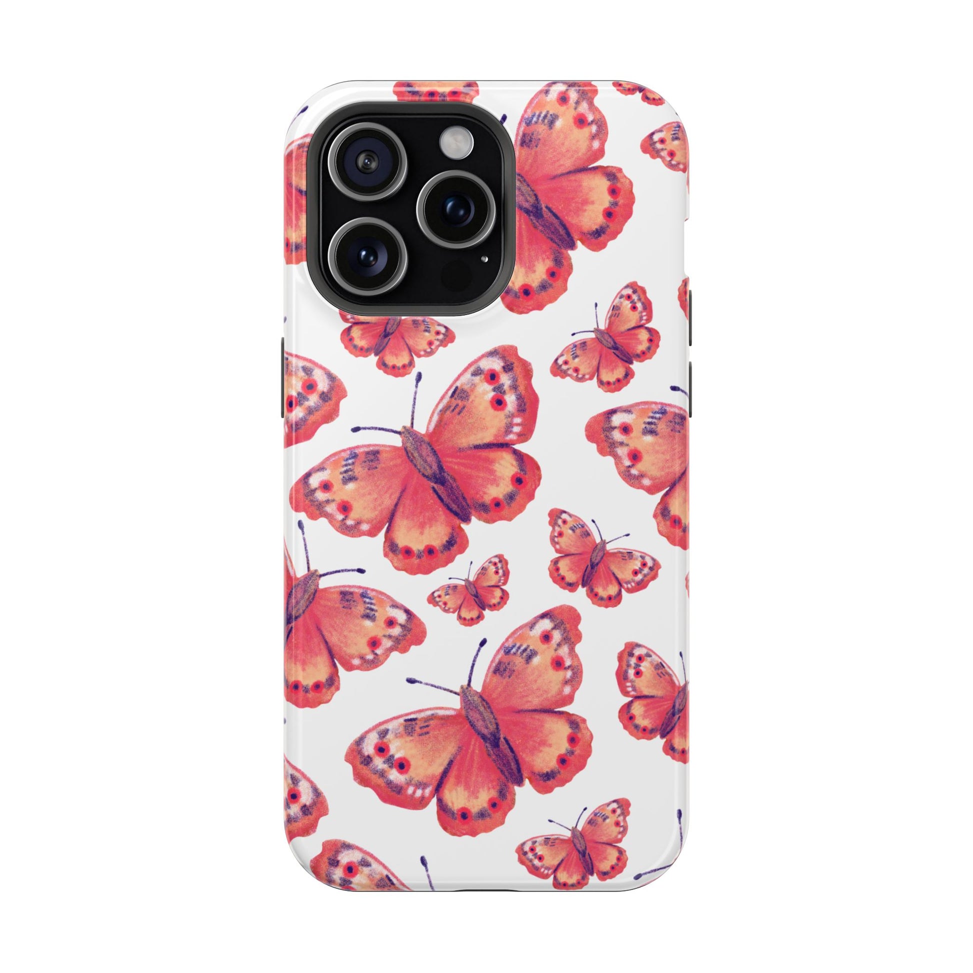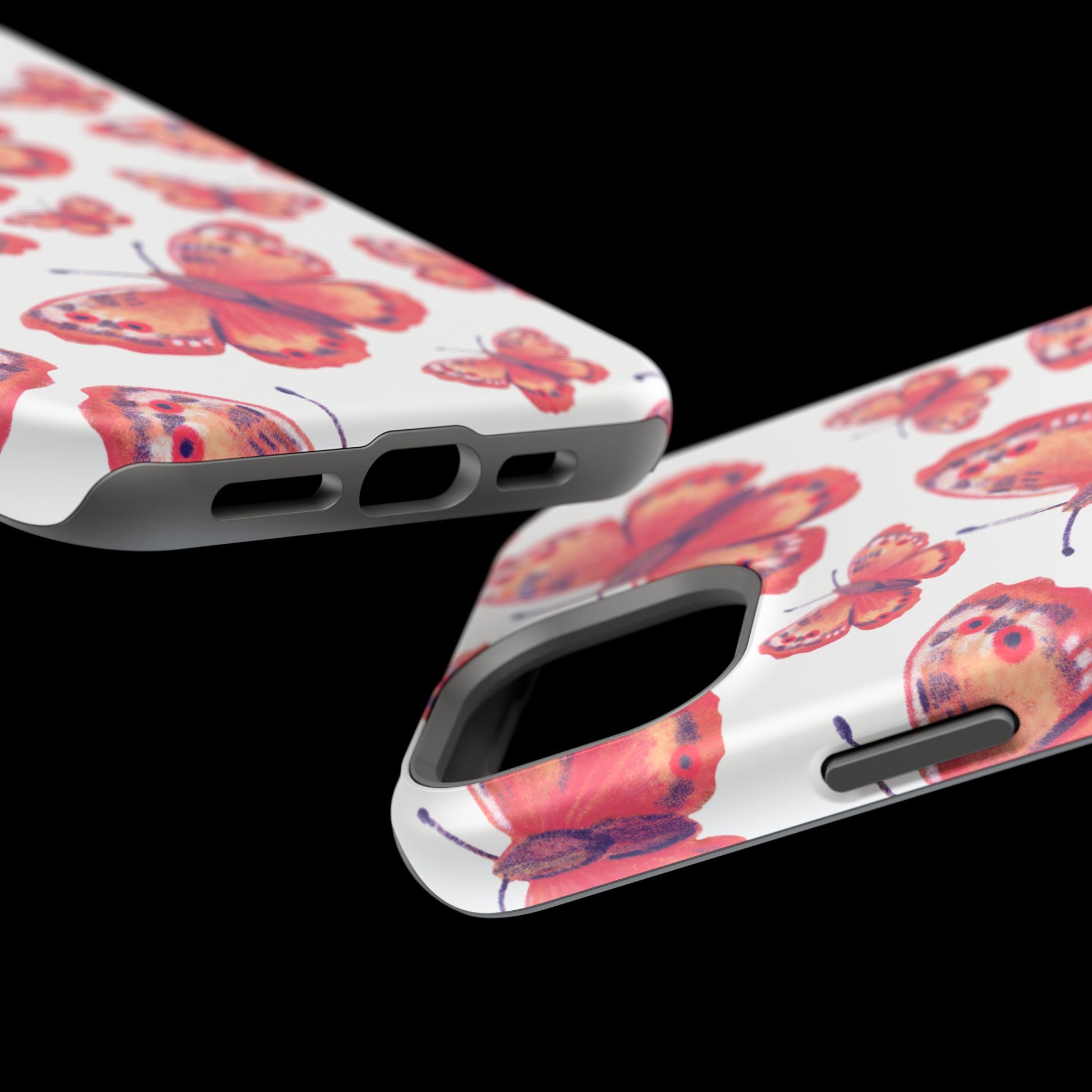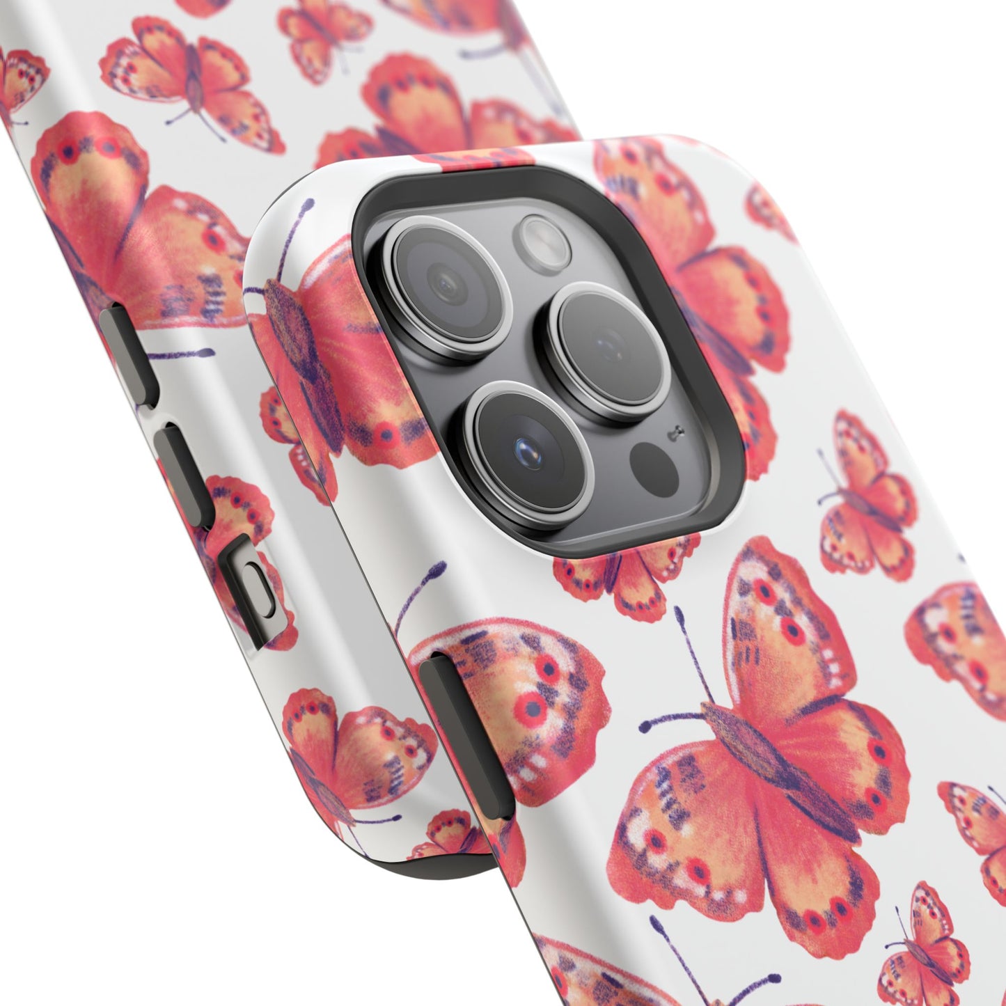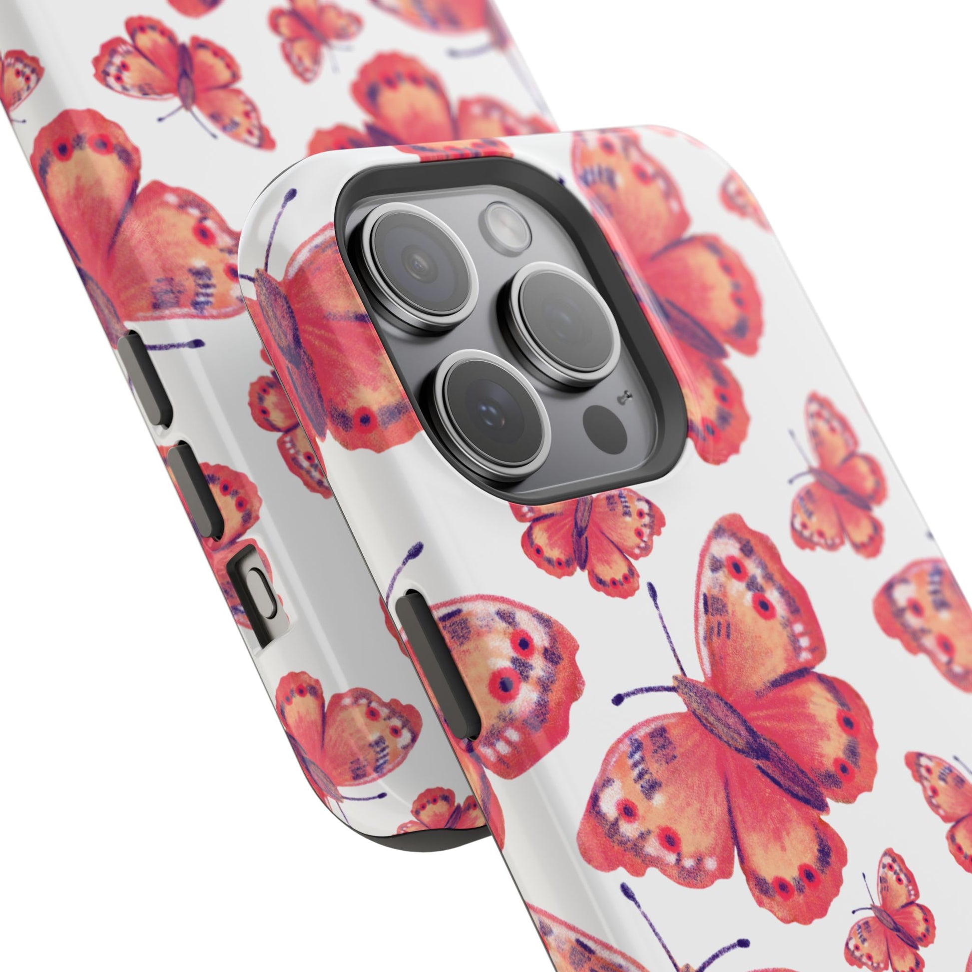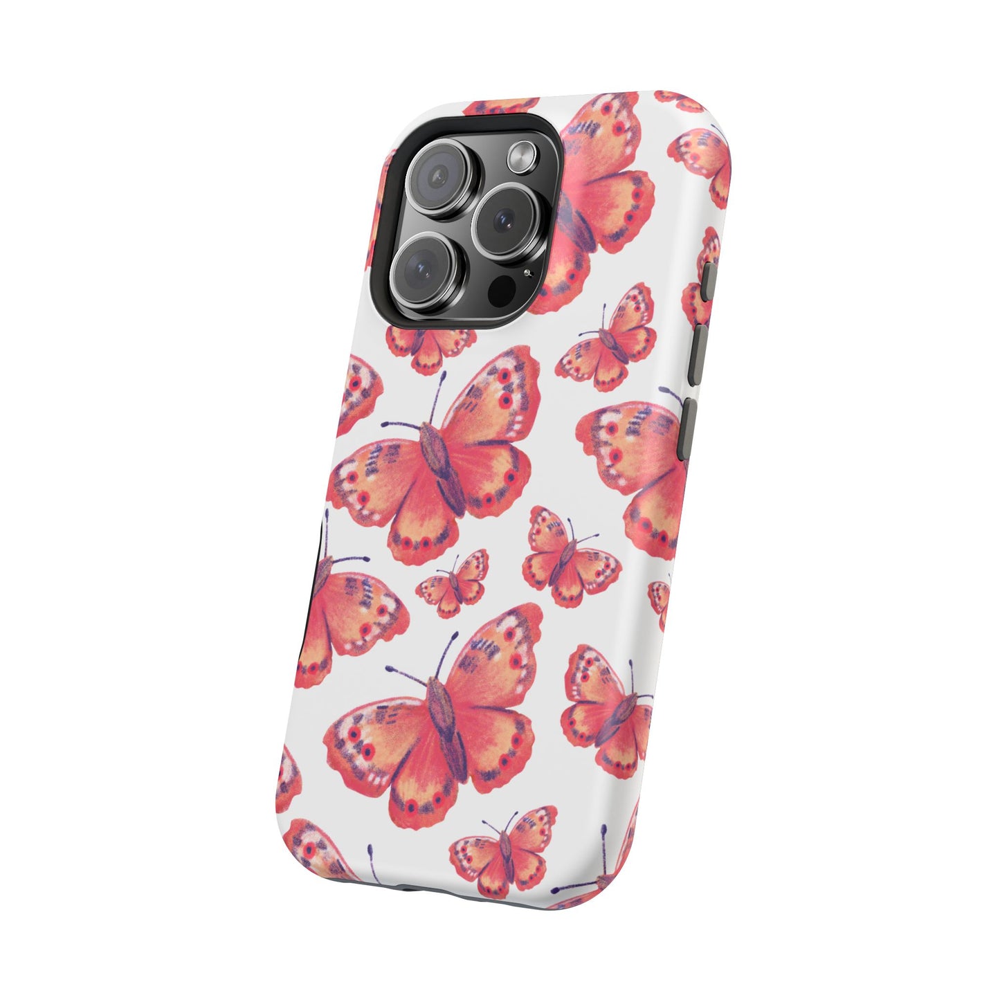 Coral Butterfly MagSafe iPhone Case – Slim, Protective Design with Bold Watercolor Print