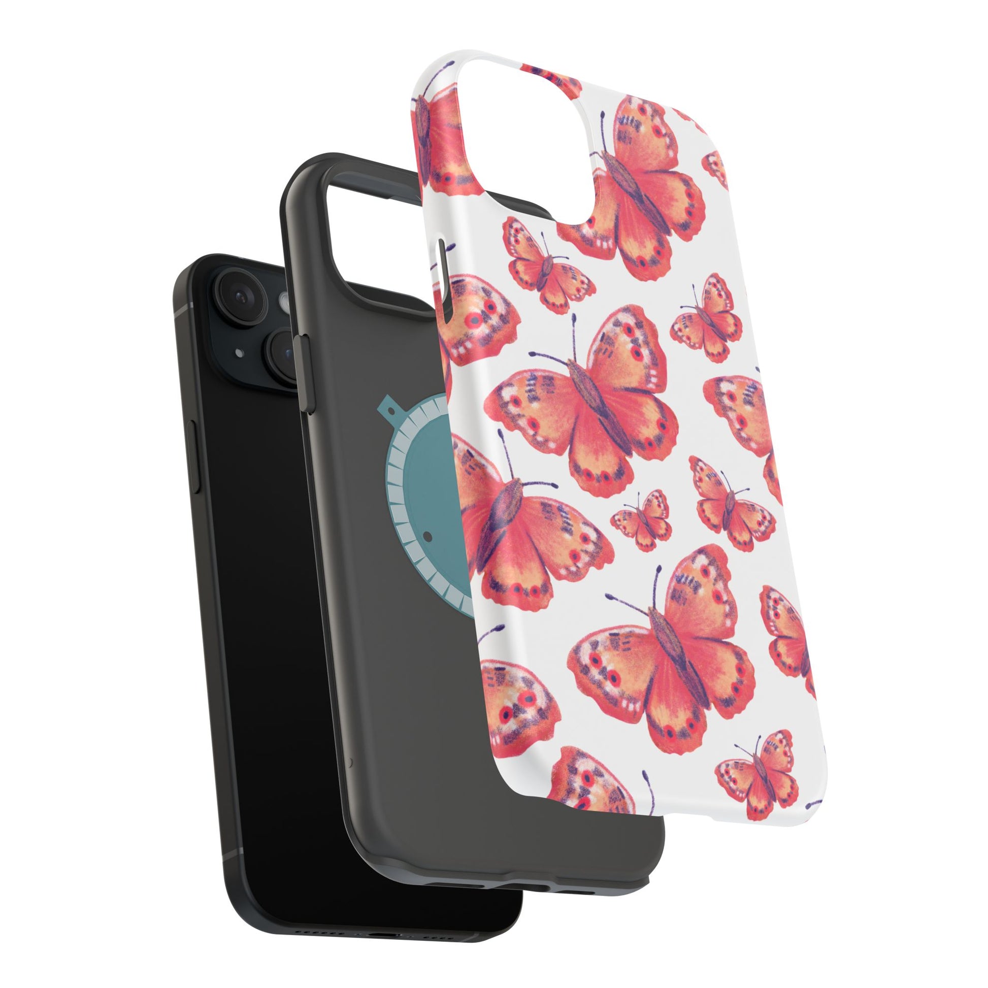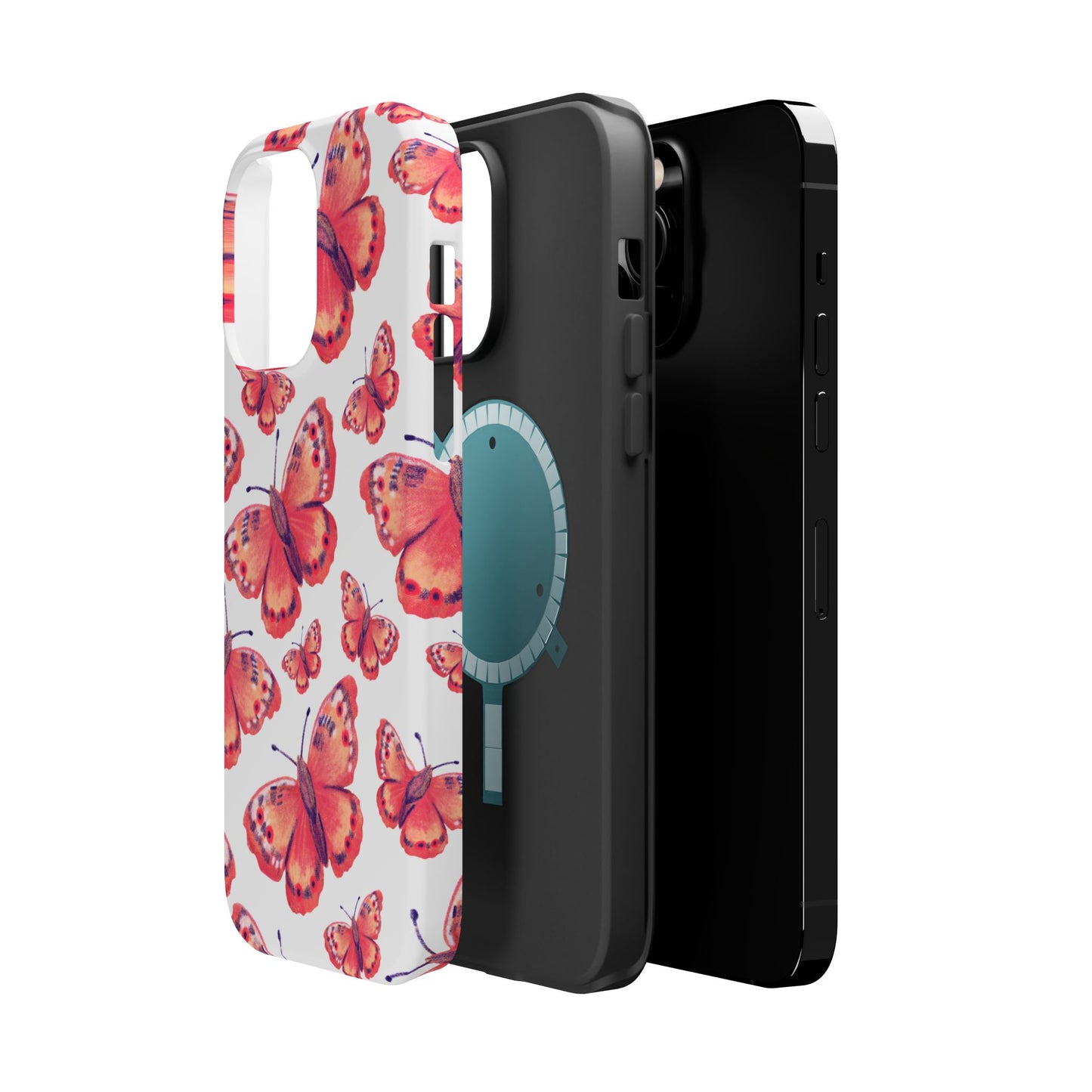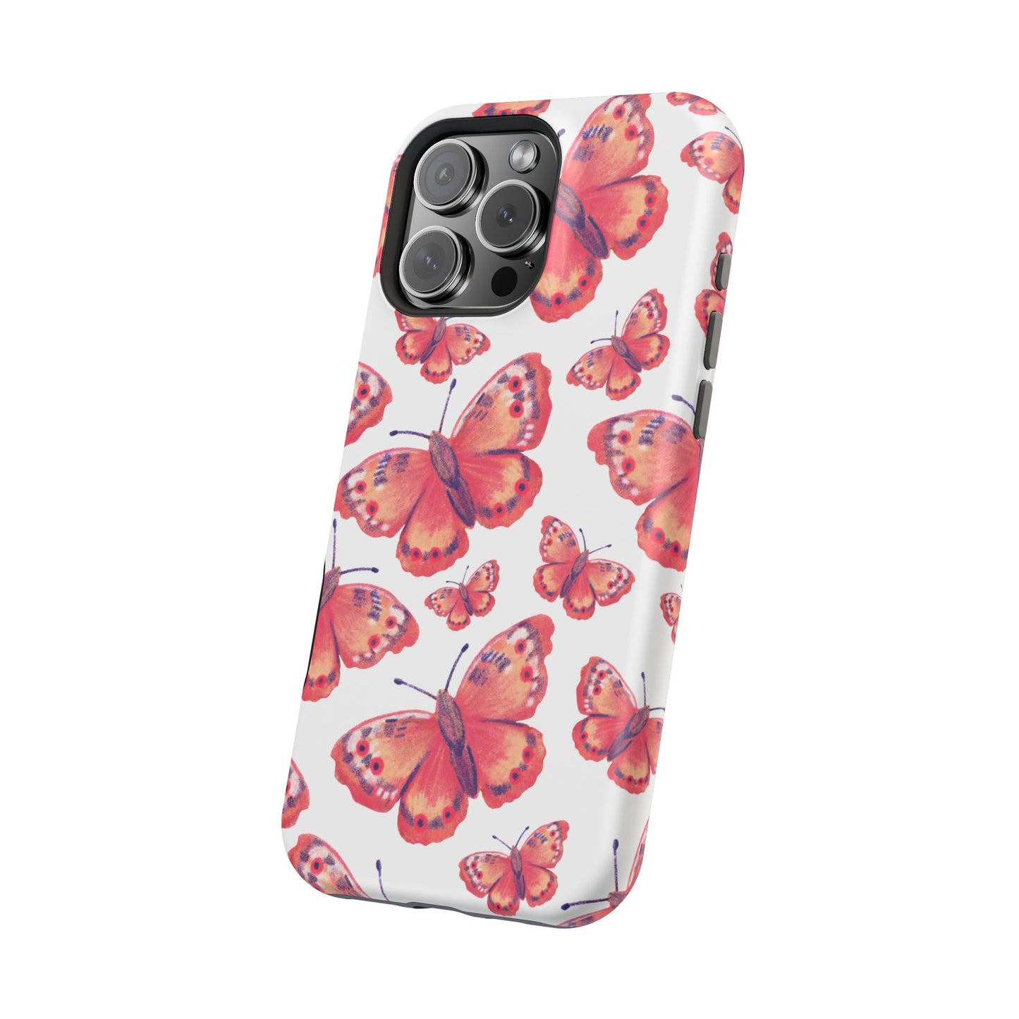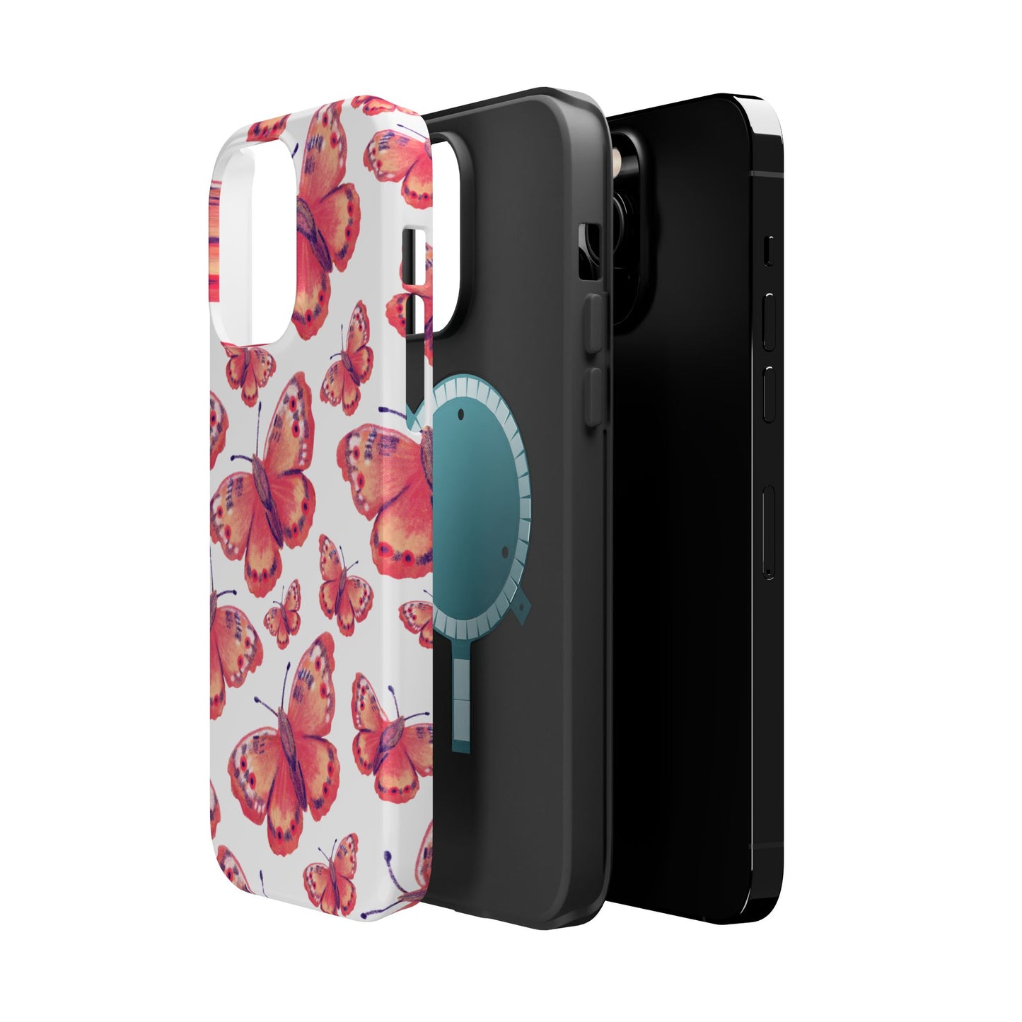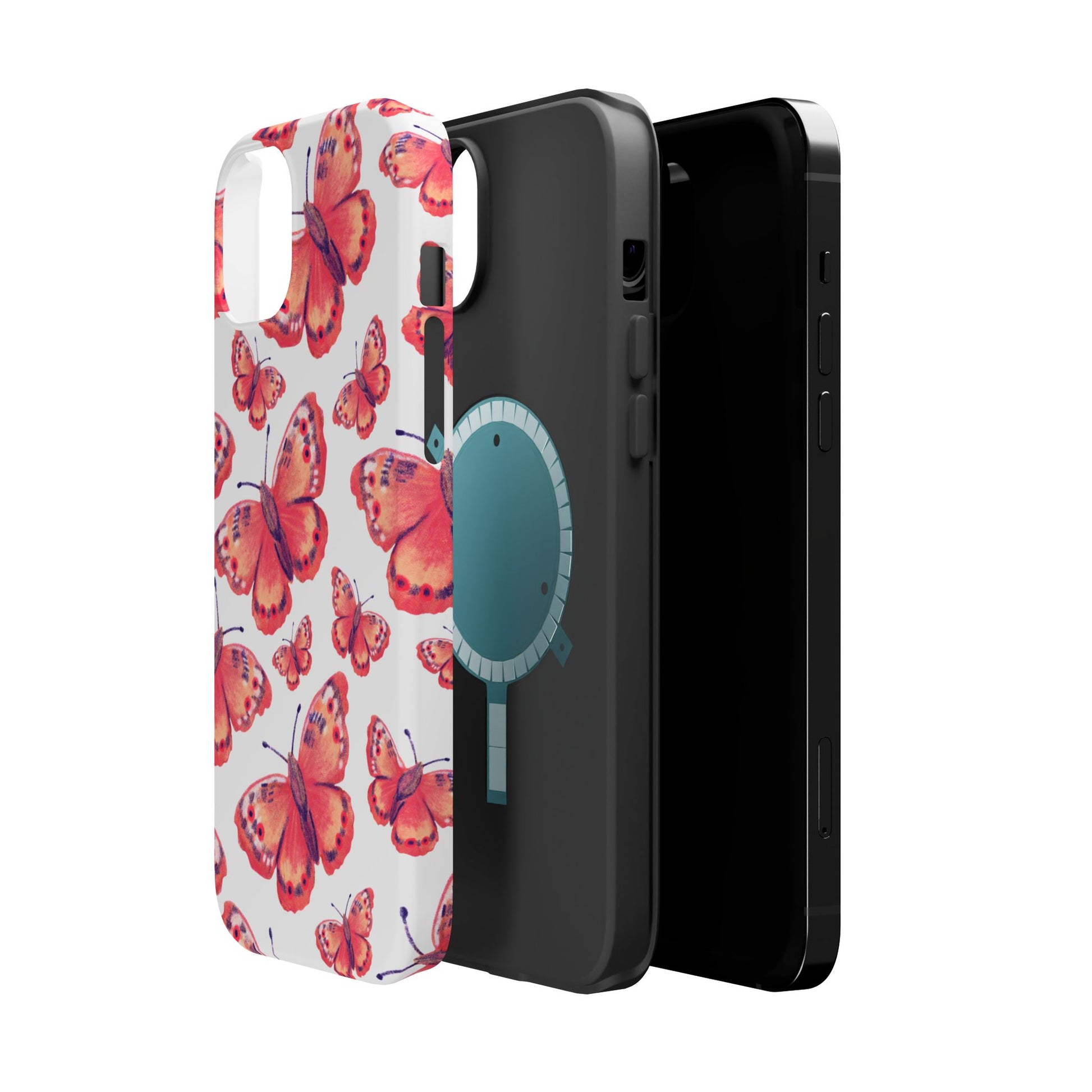 Coral Butterfly MagSafe iPhone Case – Slim, Protective Design with Bold Watercolor Print