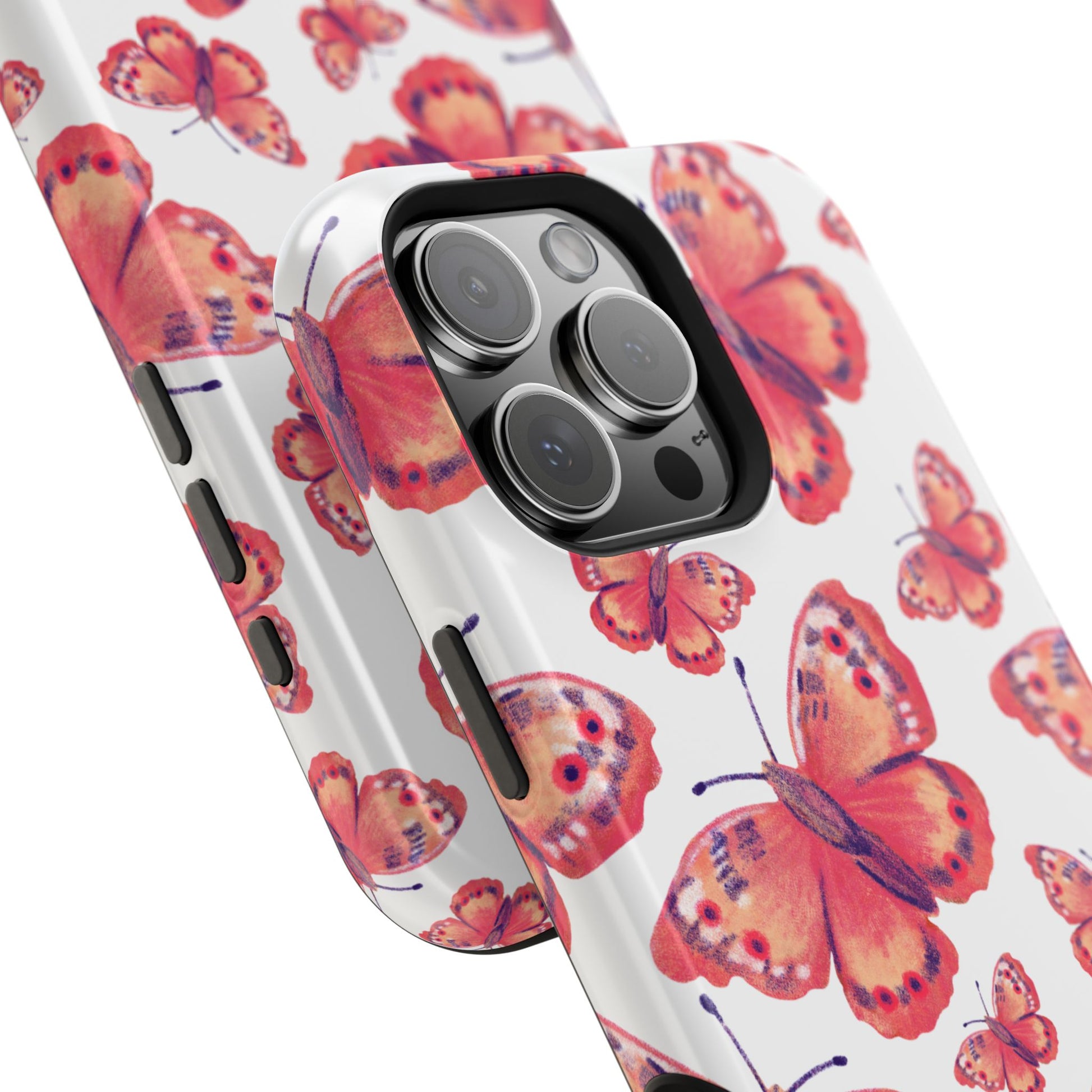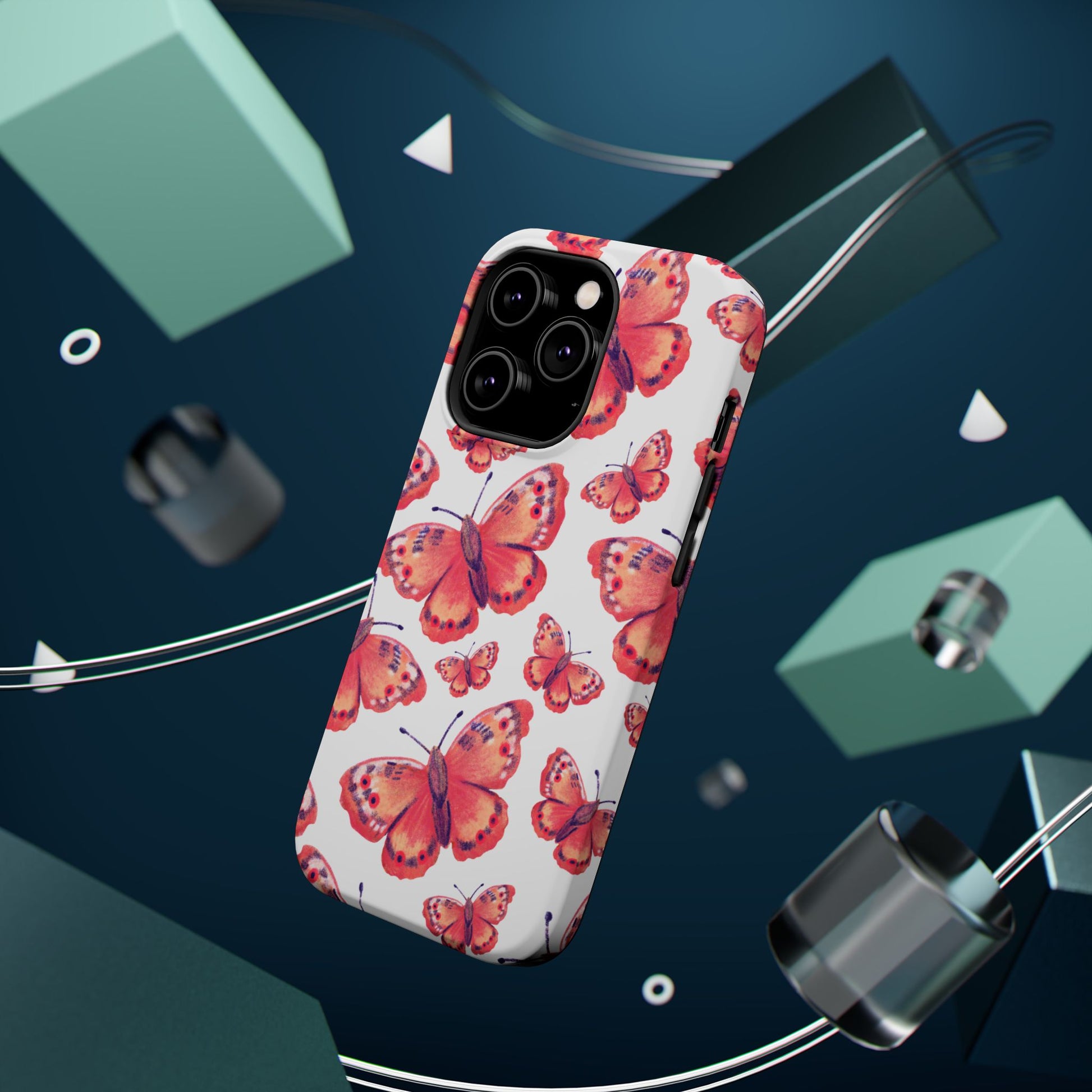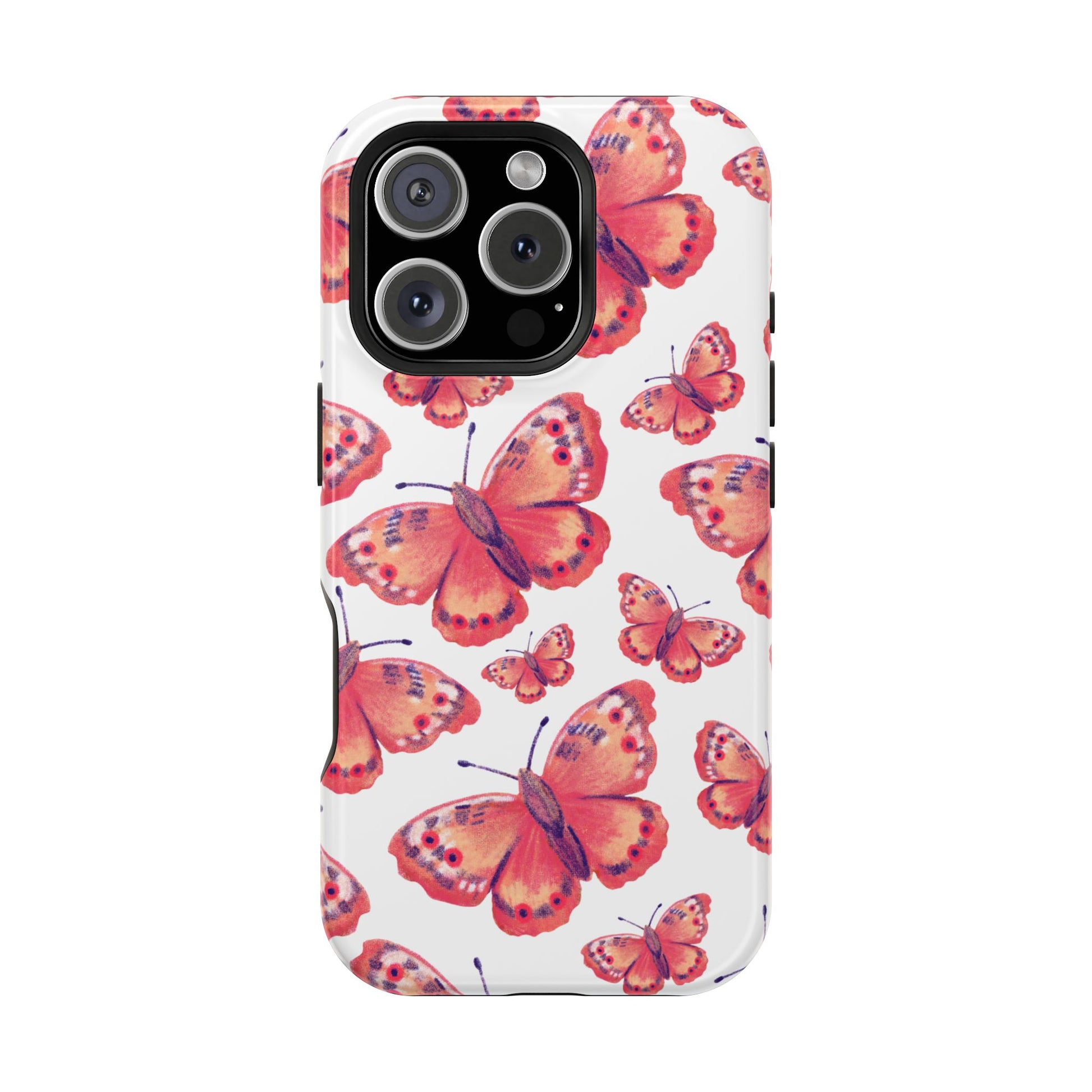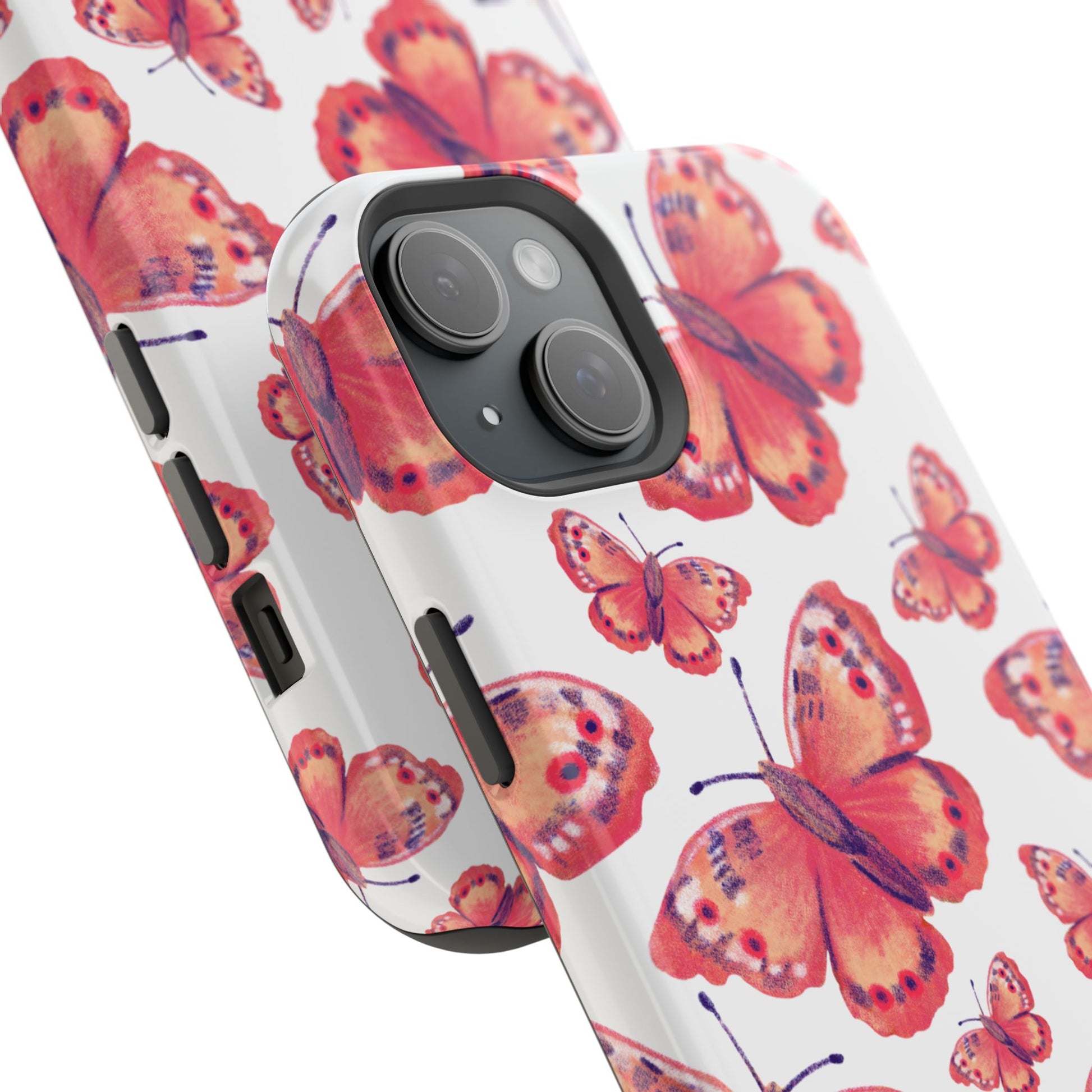 Coral Butterfly MagSafe iPhone Case – Slim, Protective Design with Bold Watercolor Print